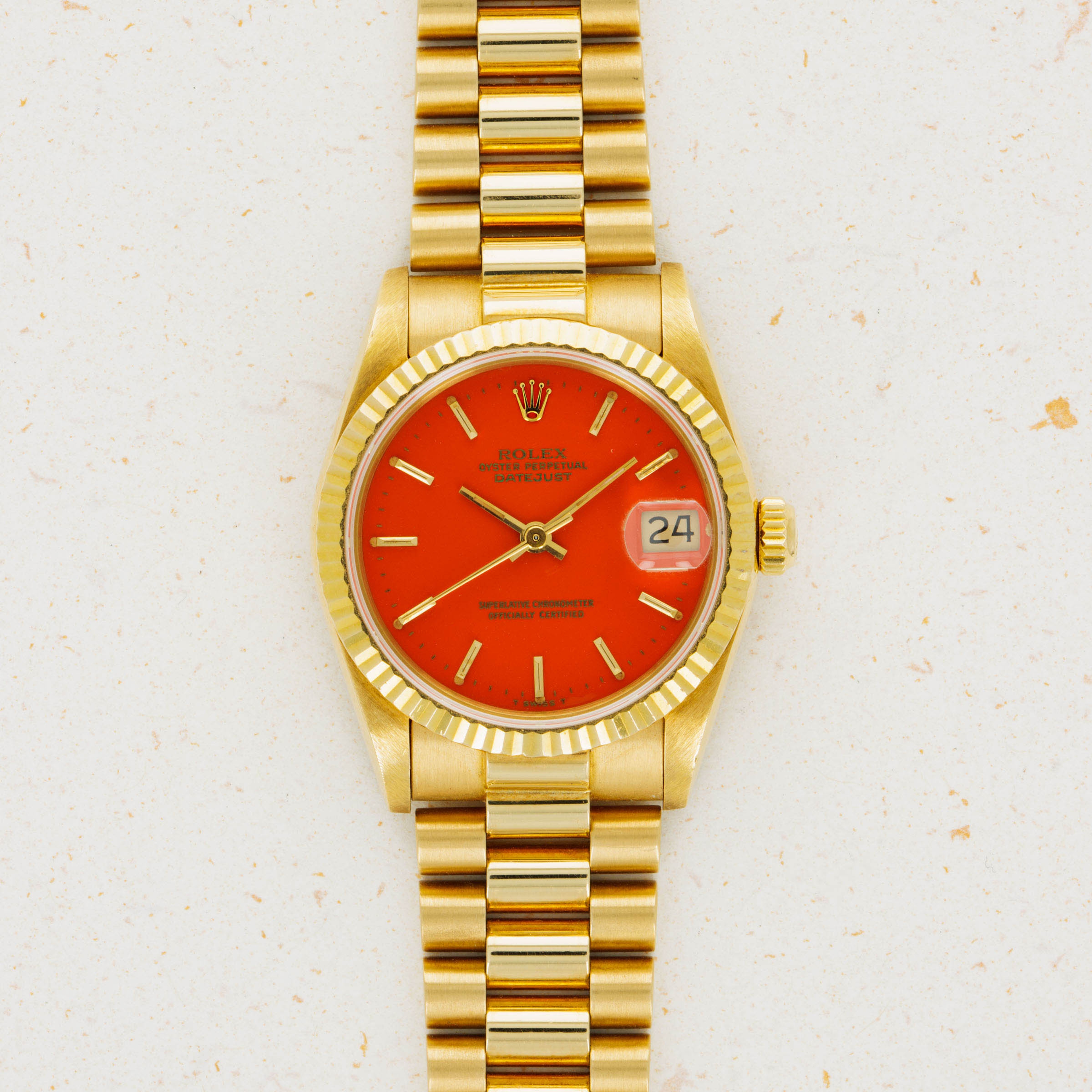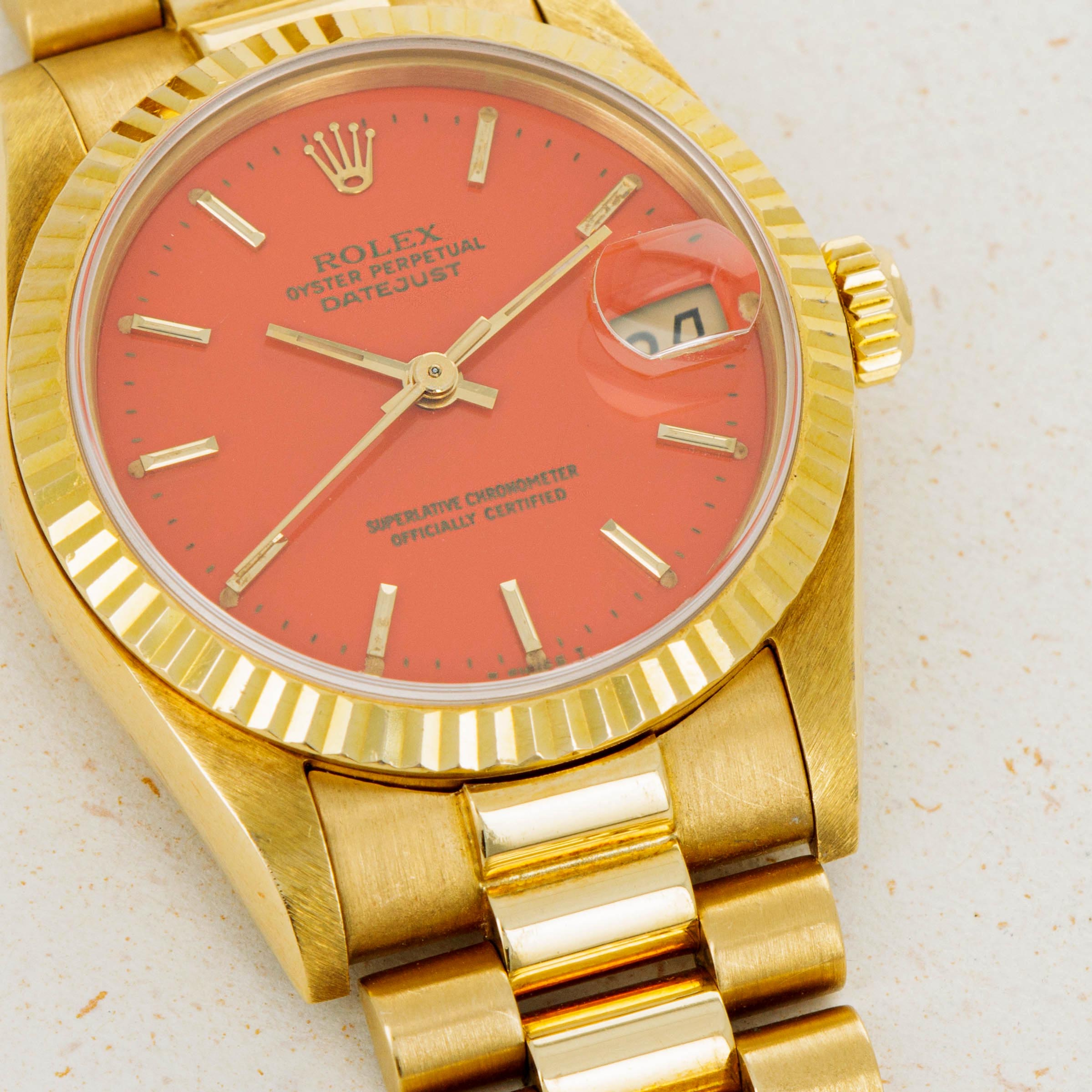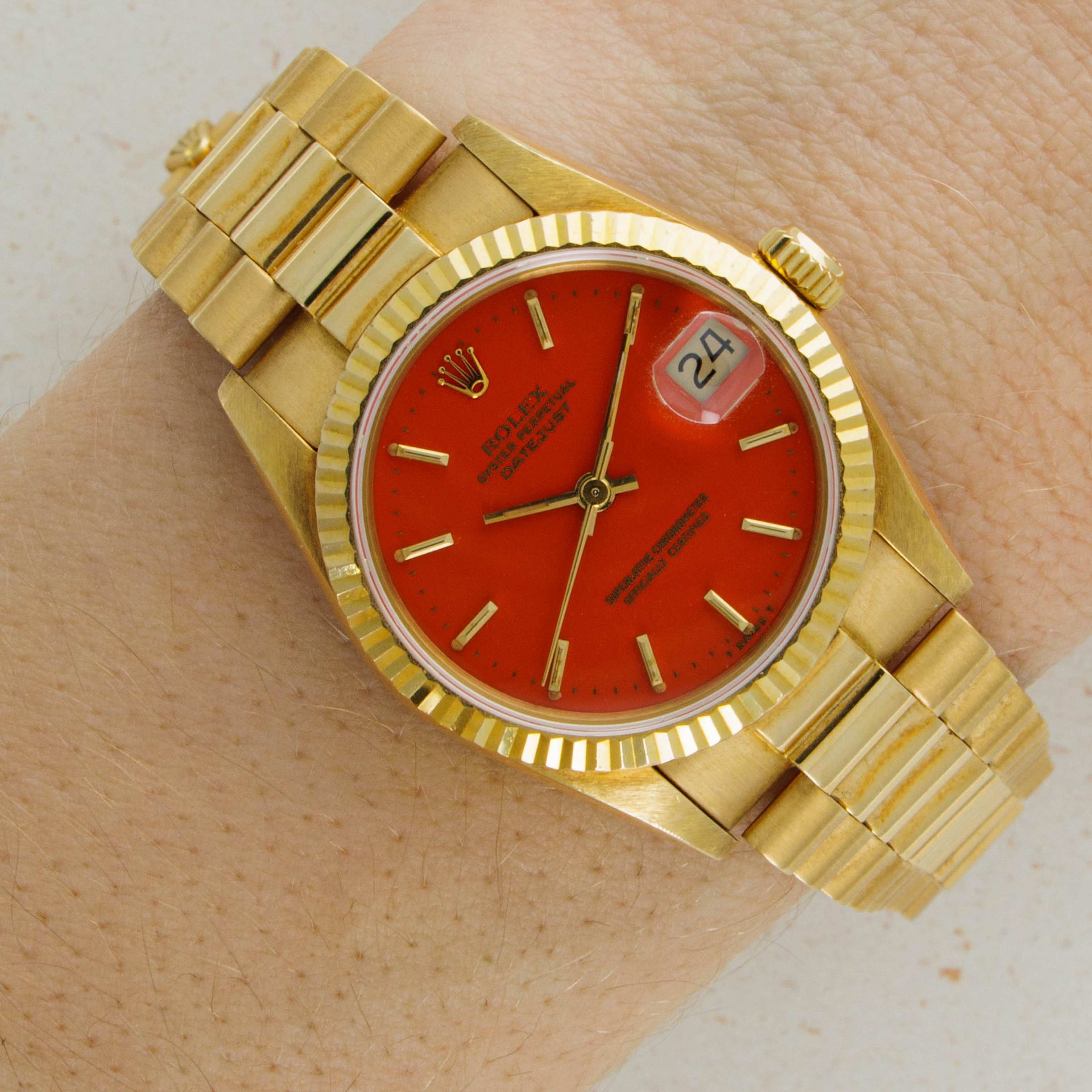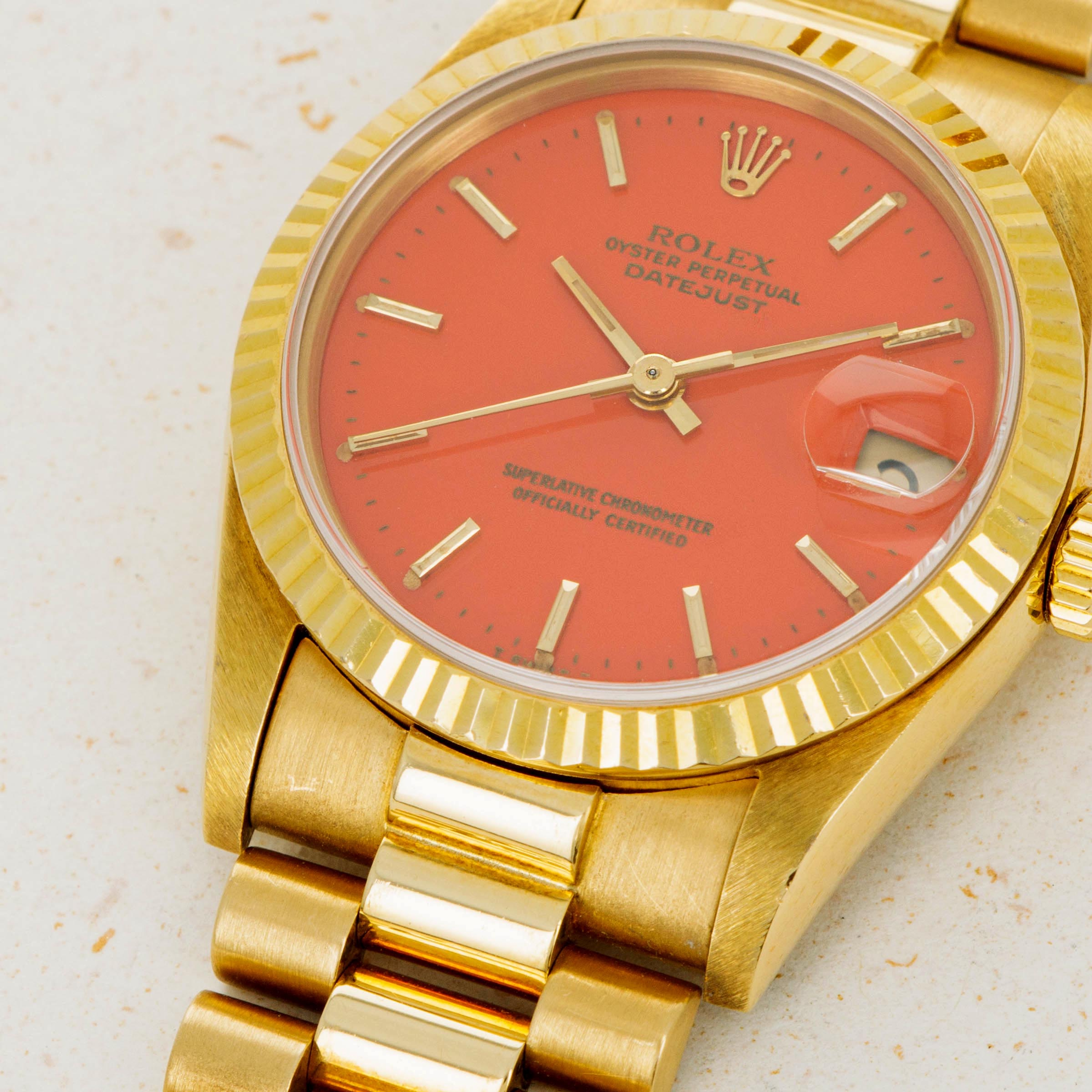 While this is a Datejust, the Ladies Datejust can be found in solid 18kt yellow gold with the addition of Rolex's iconic President bracelet as opposed to the Jubilee or Oyster bracelet which are more commonly found in the collection.