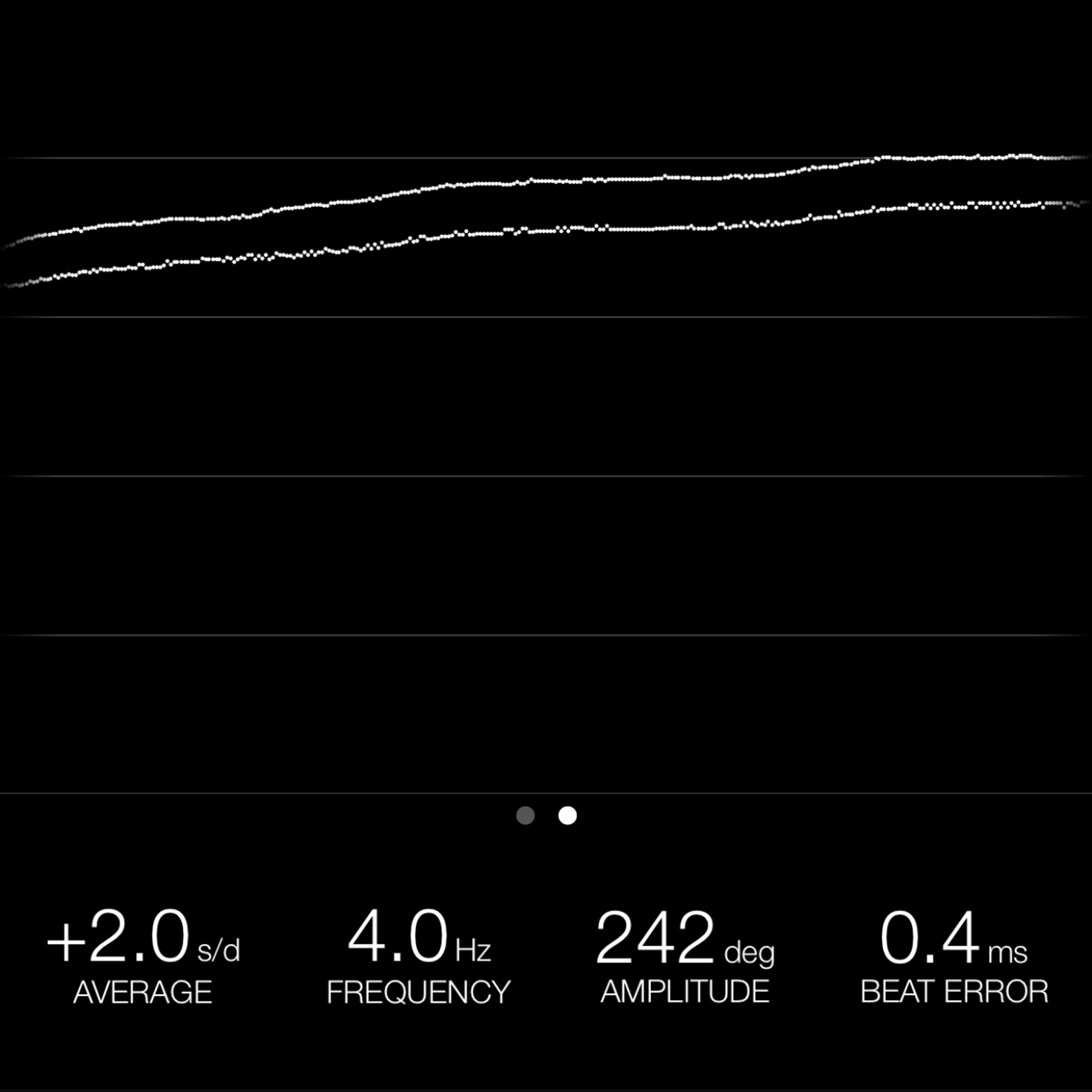 This reading was taken (crown down) with a ONEOF Accuracy Boutique Edition timing machine at time of cataloging. It is provided as a courtesy only, and shall not be construed as a warranty or guarantee of any kind. Please refer to our terms and conditions of sale for more information.