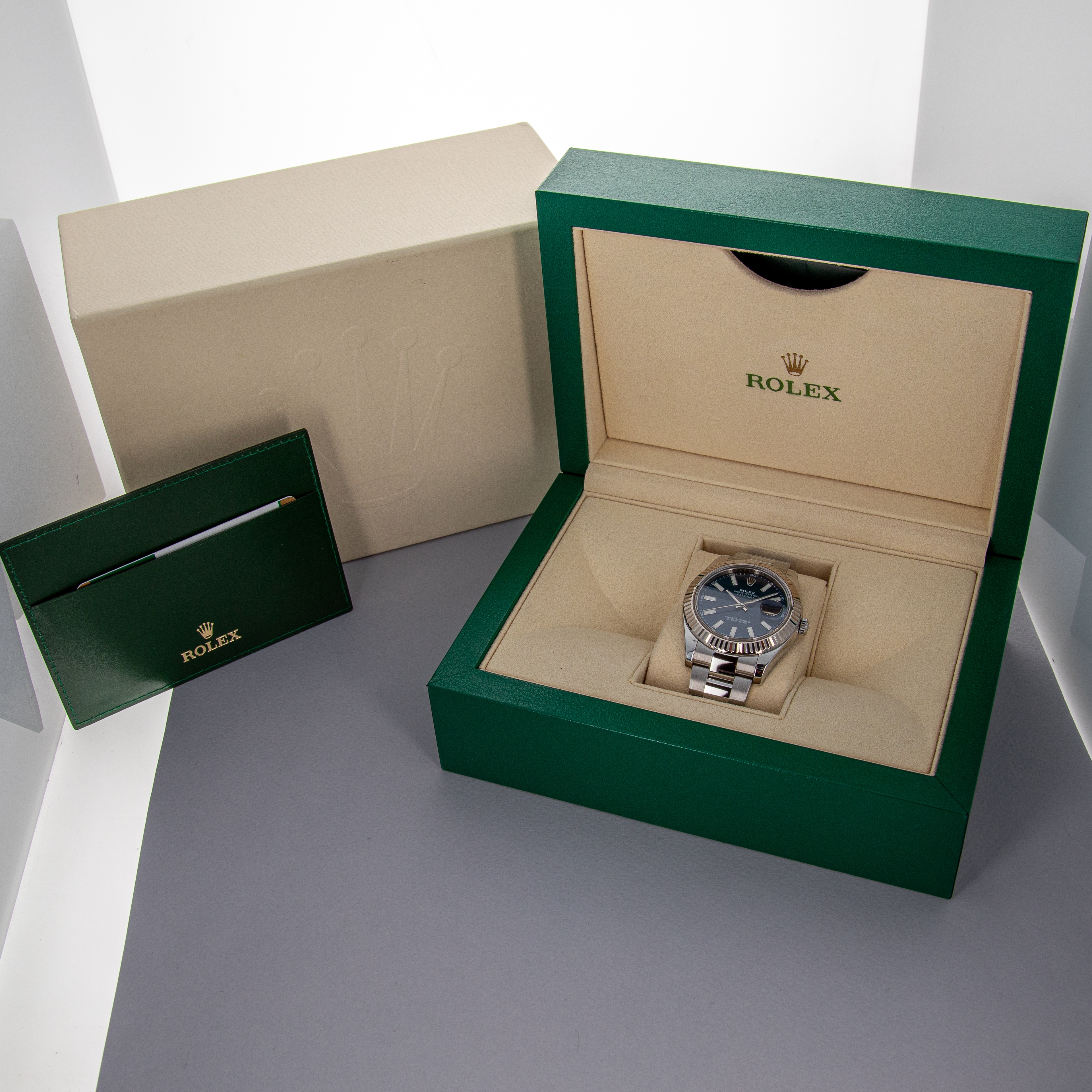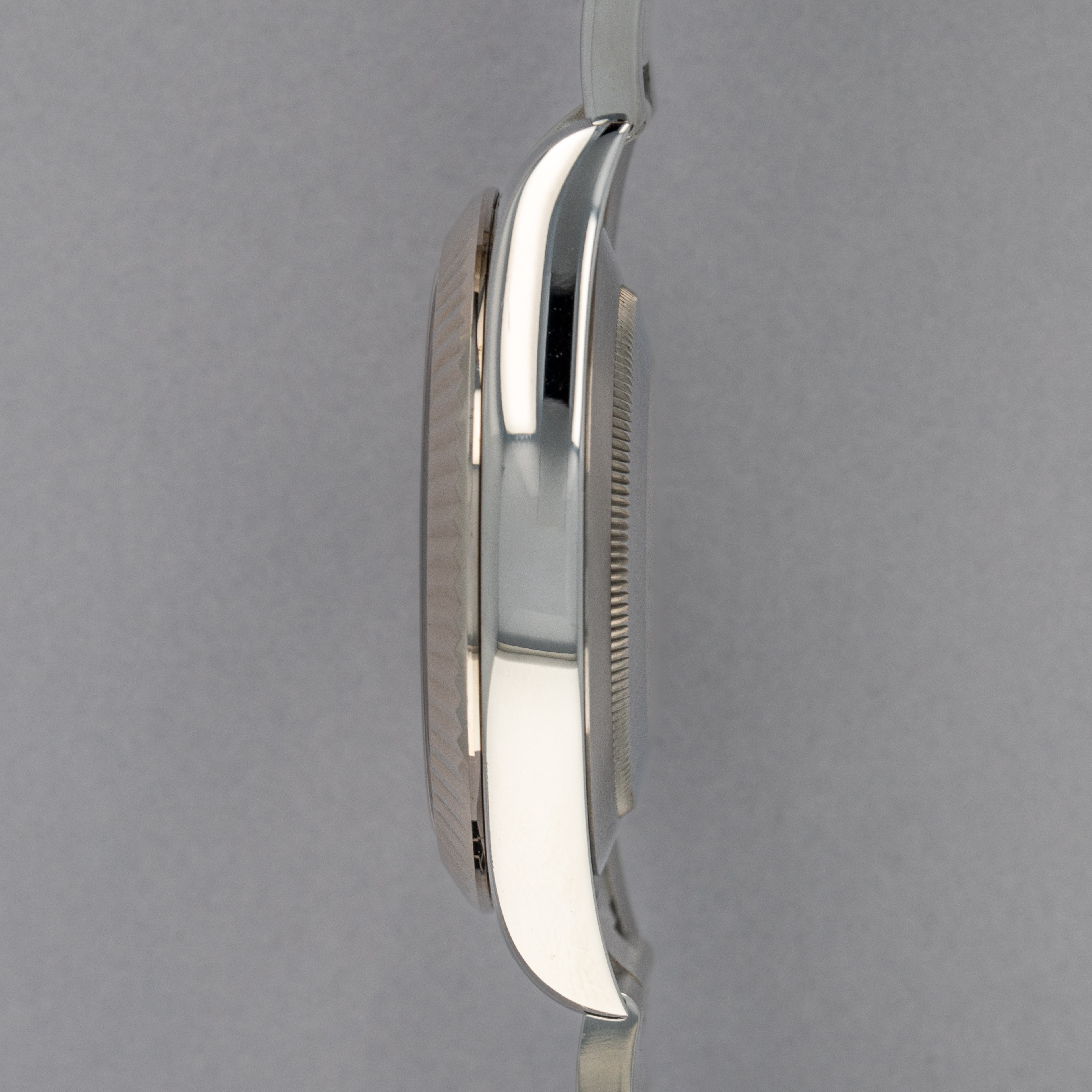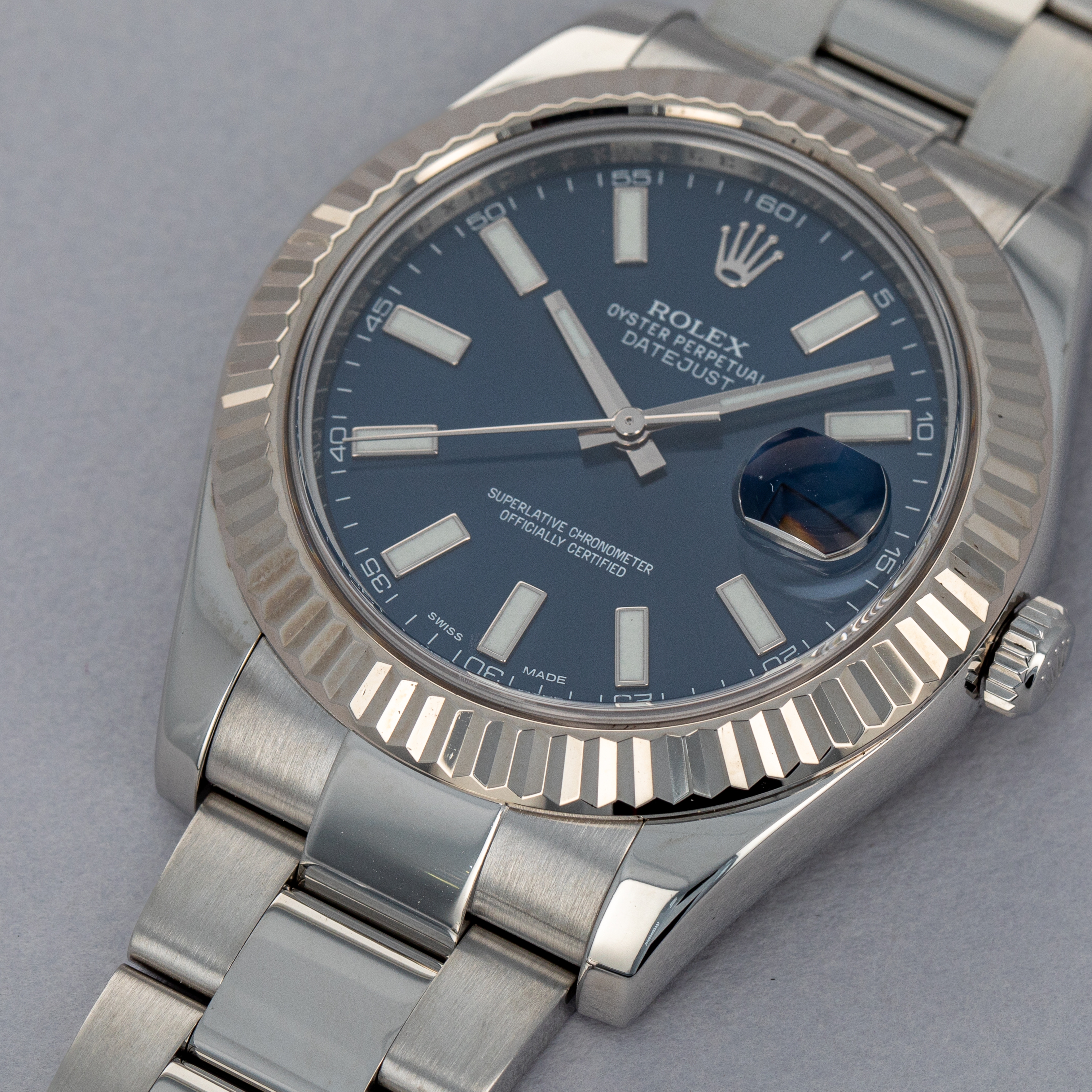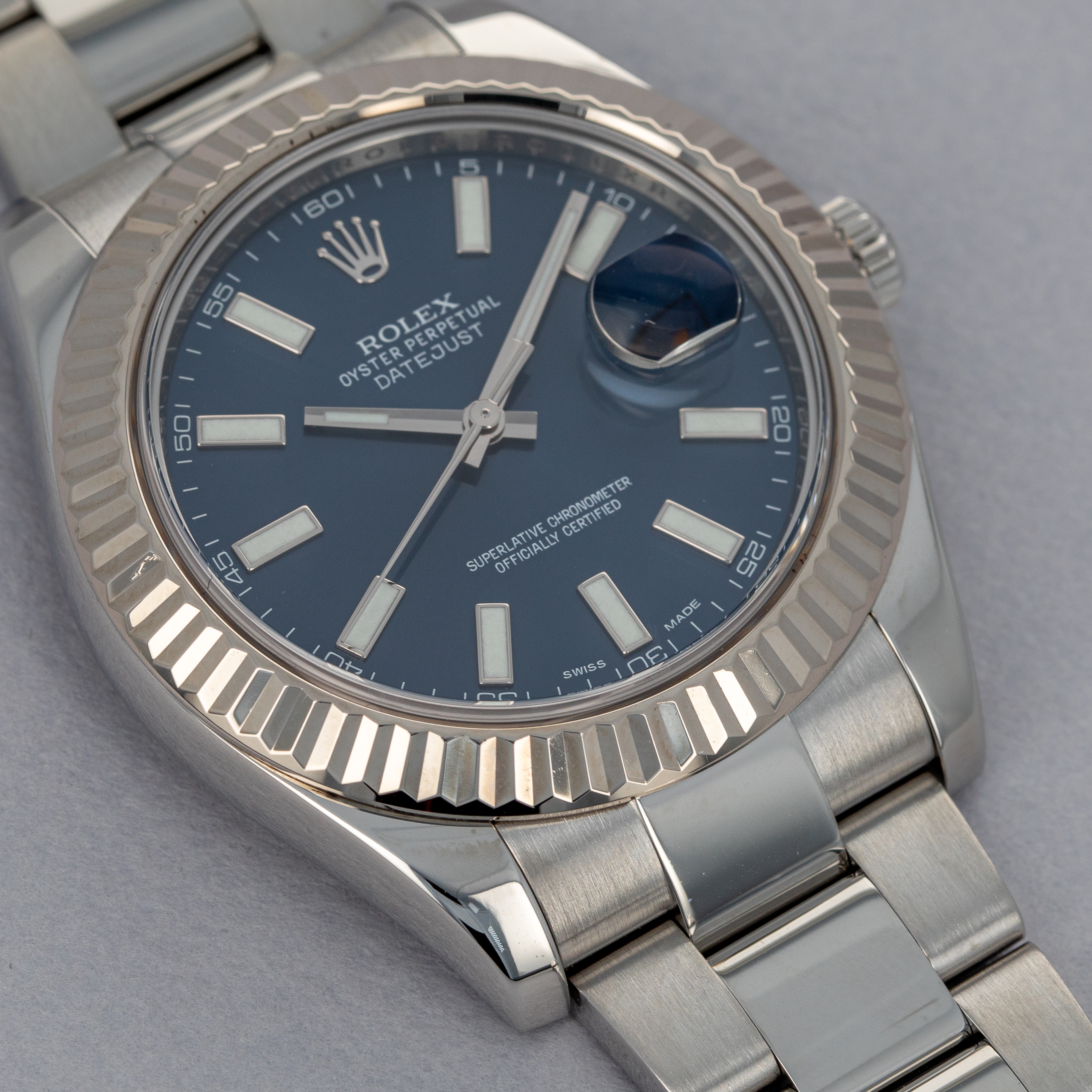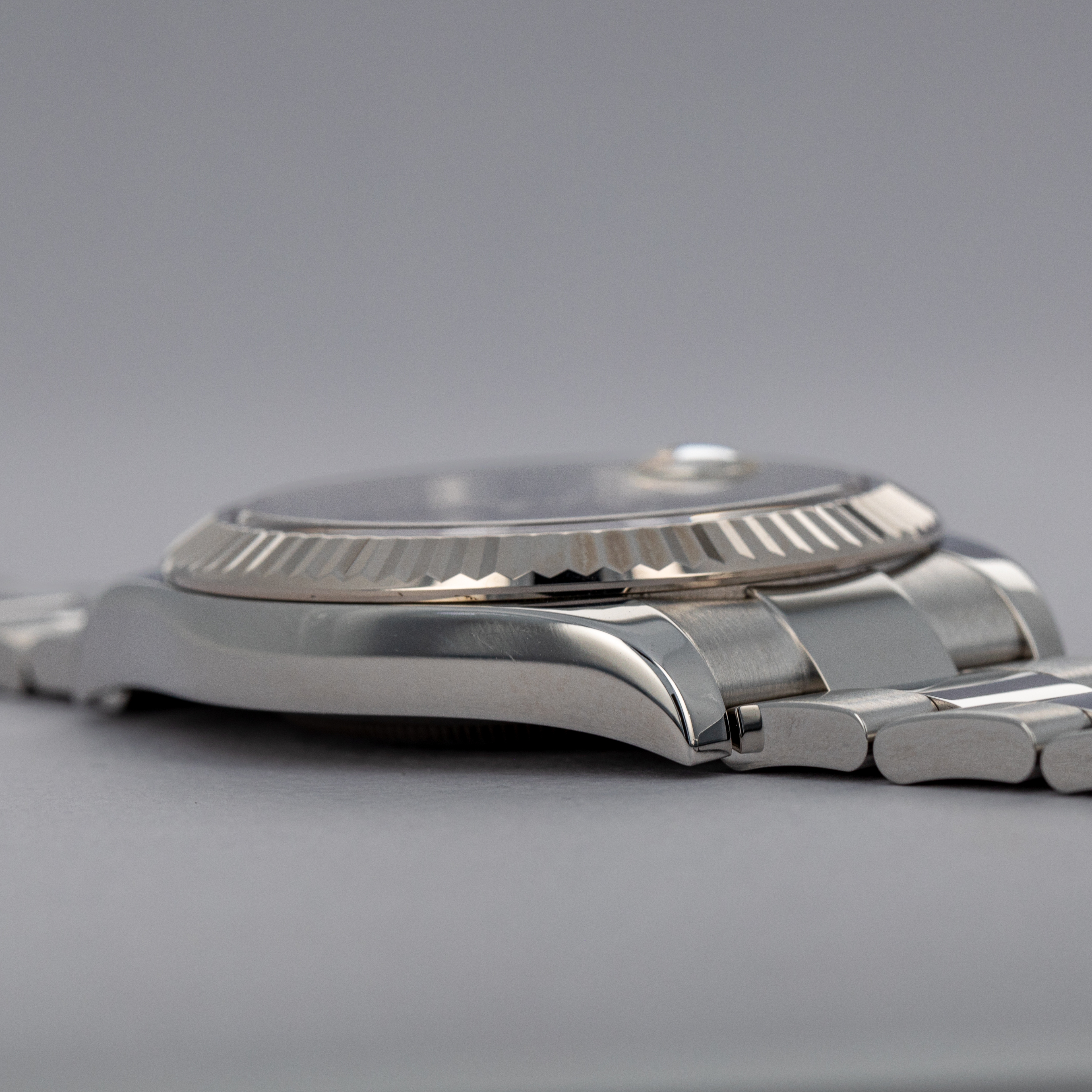 Modern in its sizing, the 41mm Datejust brings a familiar silhouette to the wrist that most collectors of modern watches will probably recognize and be comfortable with. Offered with a fluted bezel and Oyster bracelet, this example brings a sporty feeling to the Datejust's typically classical aesthetic.