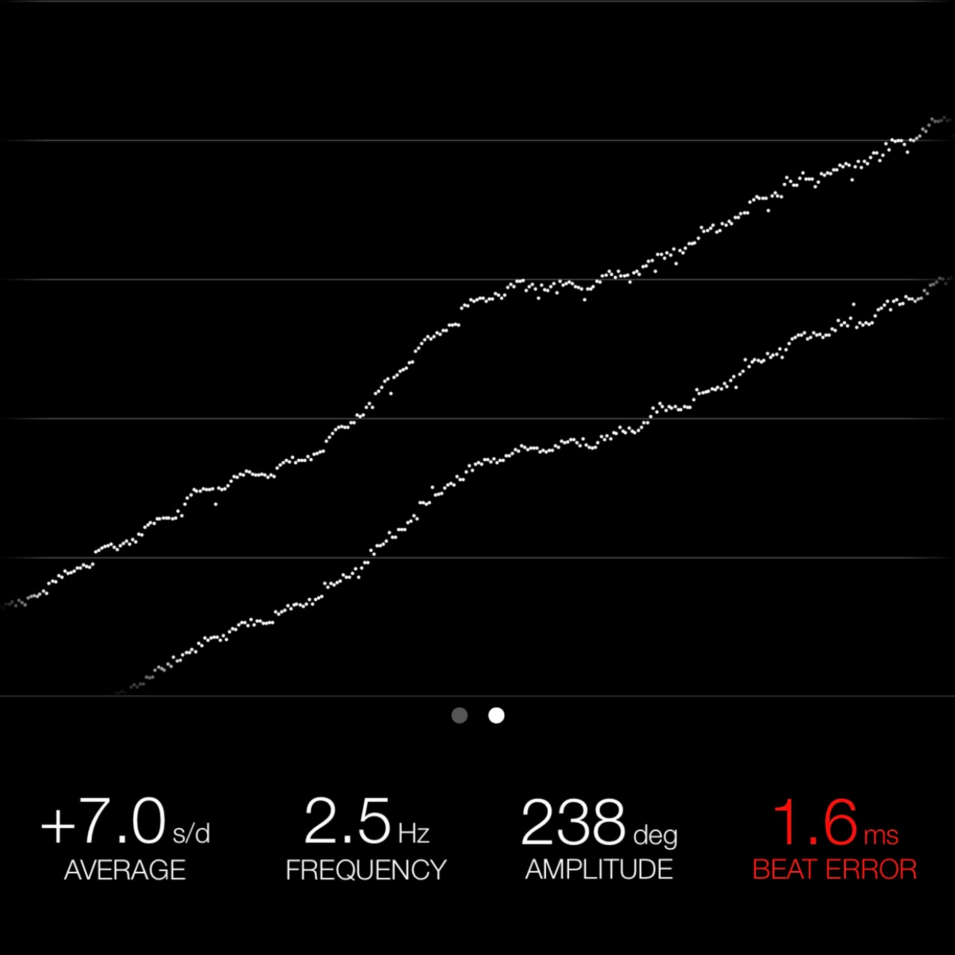 This reading was taken (crown down) with a ONEOF Accuracy Boutique Edition timing machine at time of cataloging. It is provided as a courtesy only, and shall not be construed as a warranty or guarantee of any kind. Please refer to our terms and conditions of sale for more information.