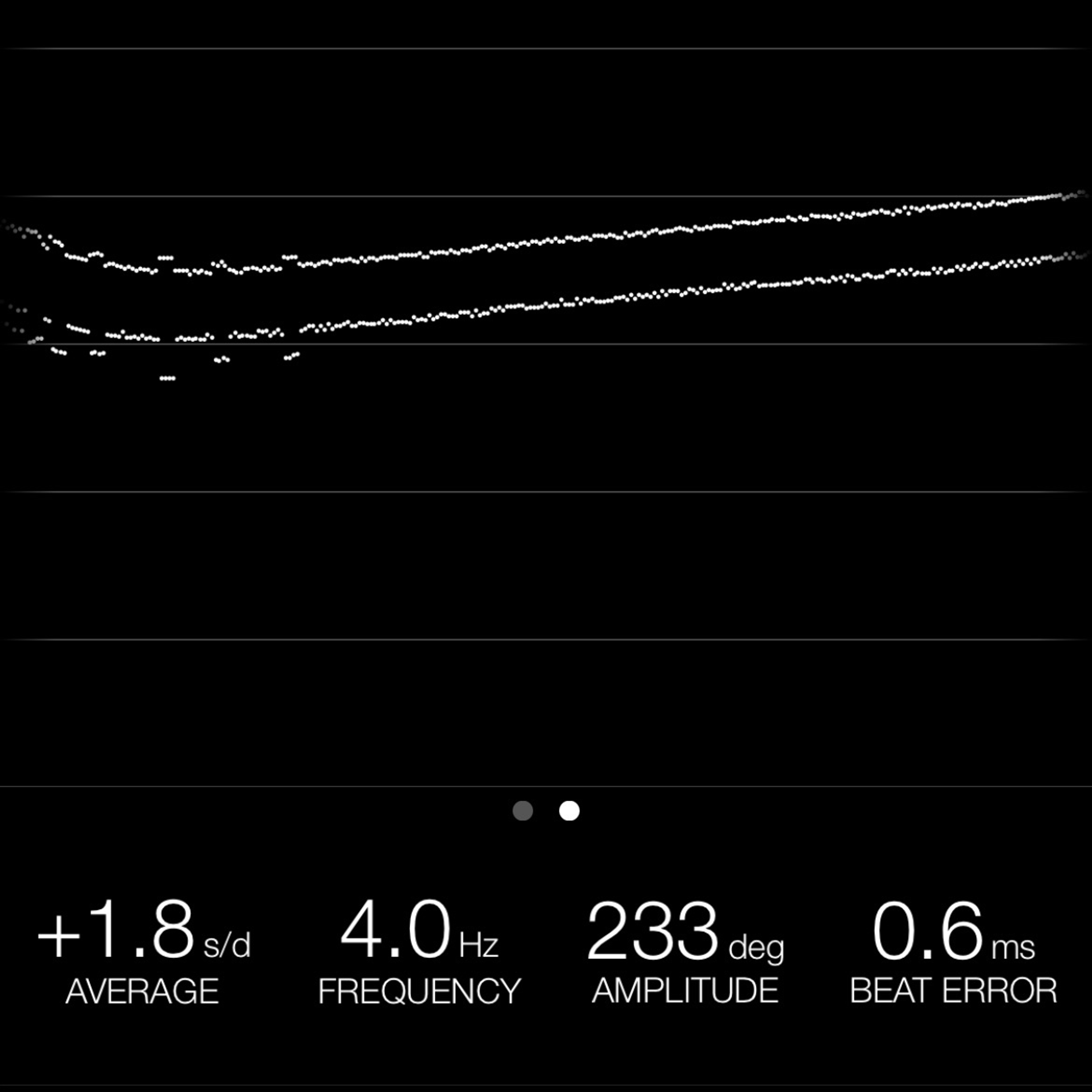 This reading was taken (crown down) with a ONEOF Accuracy Boutique Edition timing machine at time of cataloging. It is provided as a courtesy only, and shall not be construed as a warranty or guarantee of any kind. Please refer to our terms and conditions of sale for more information.