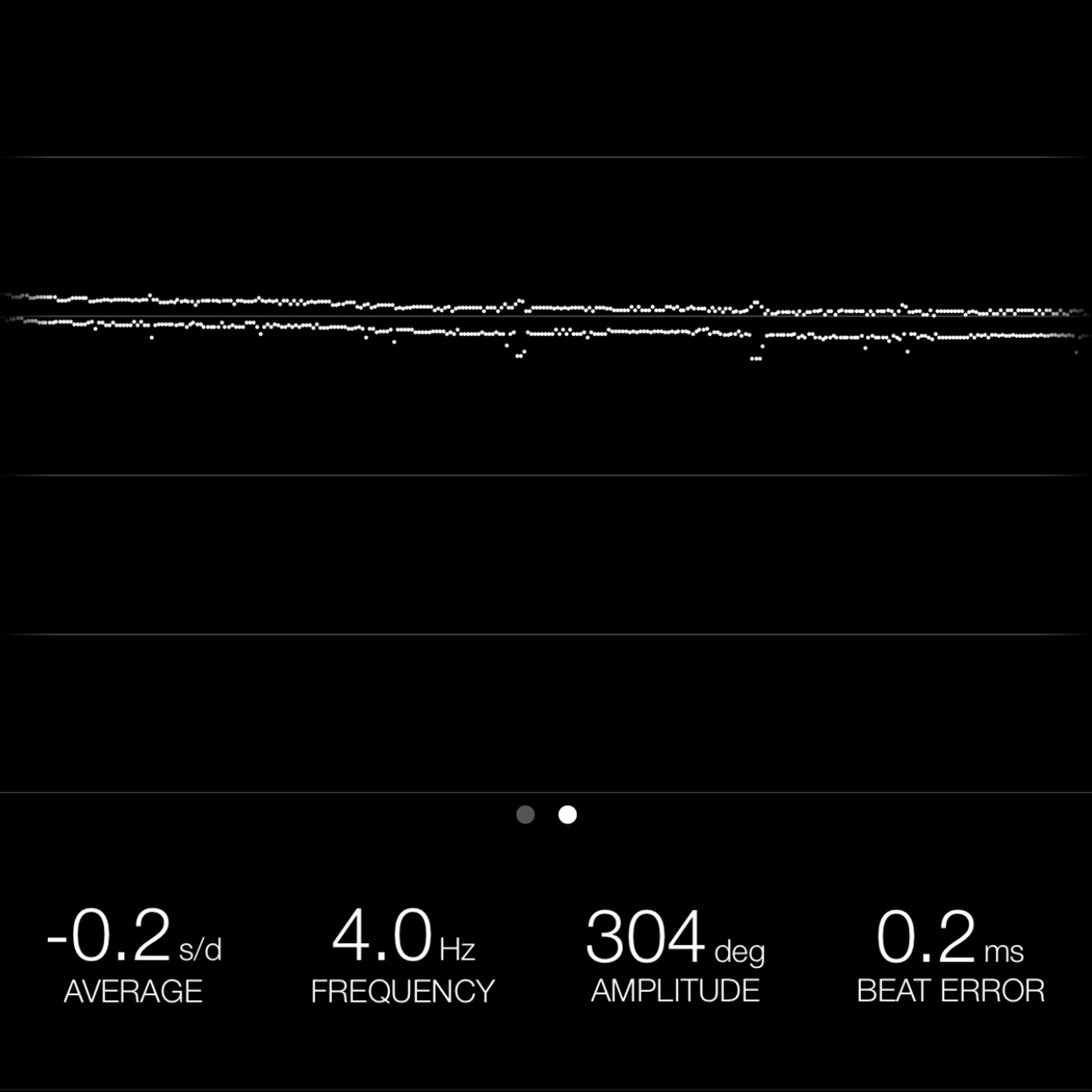 This reading was taken (crown down) with a ONEOF Accuracy Boutique Edition timing machine at time of cataloging. It is provided as a courtesy only, and shall not be construed as a warranty or guarantee of any kind. Please refer to our terms and conditions of sale for more information.