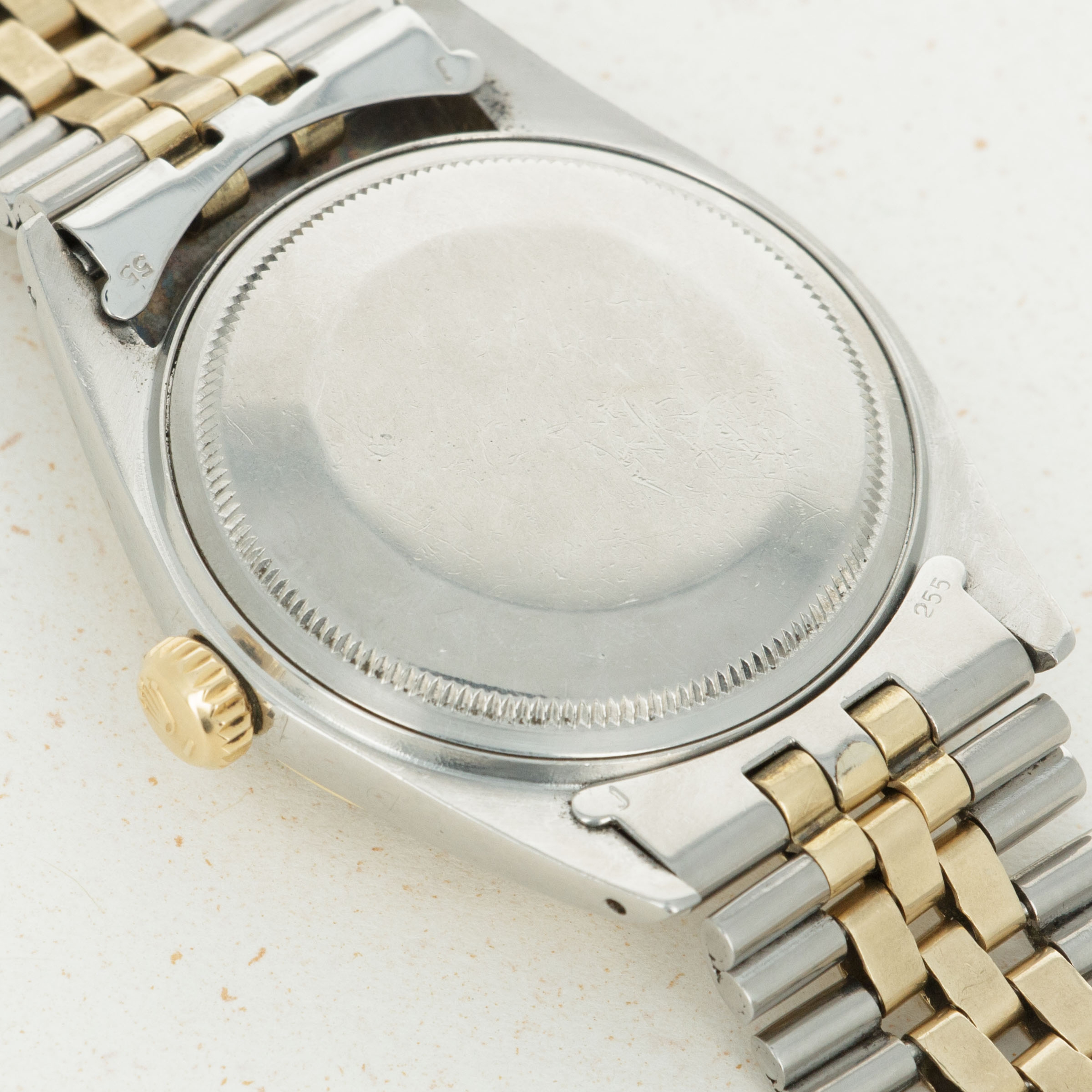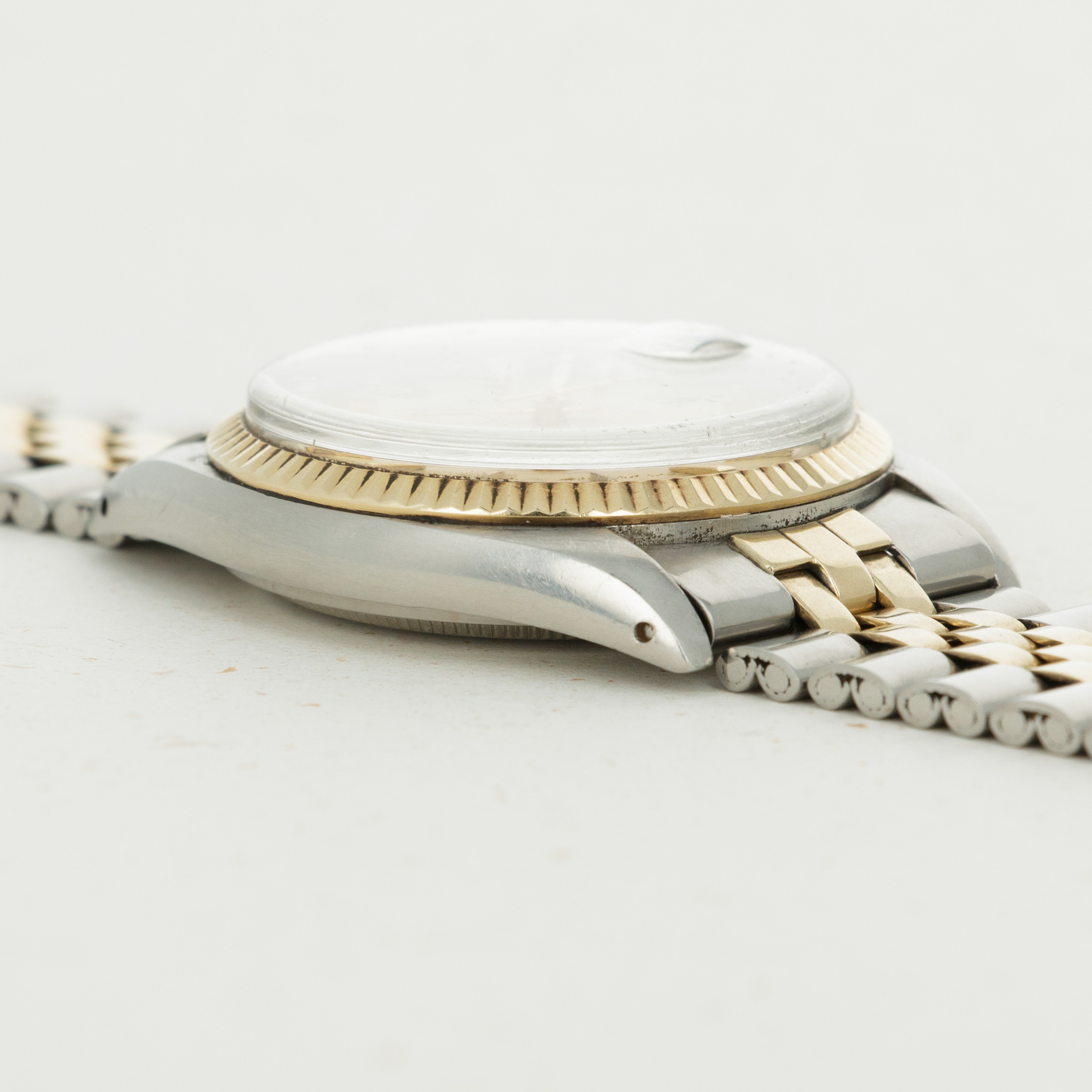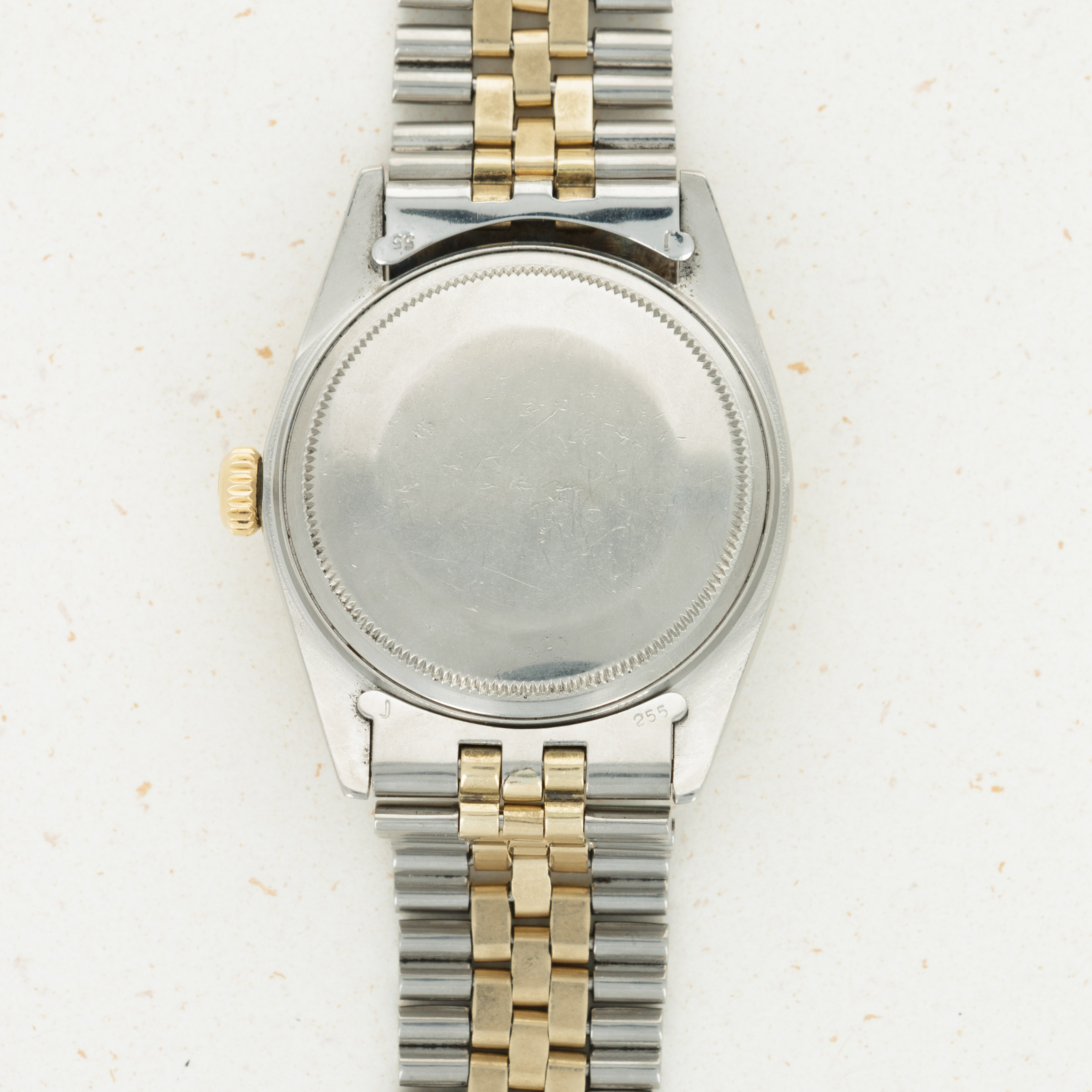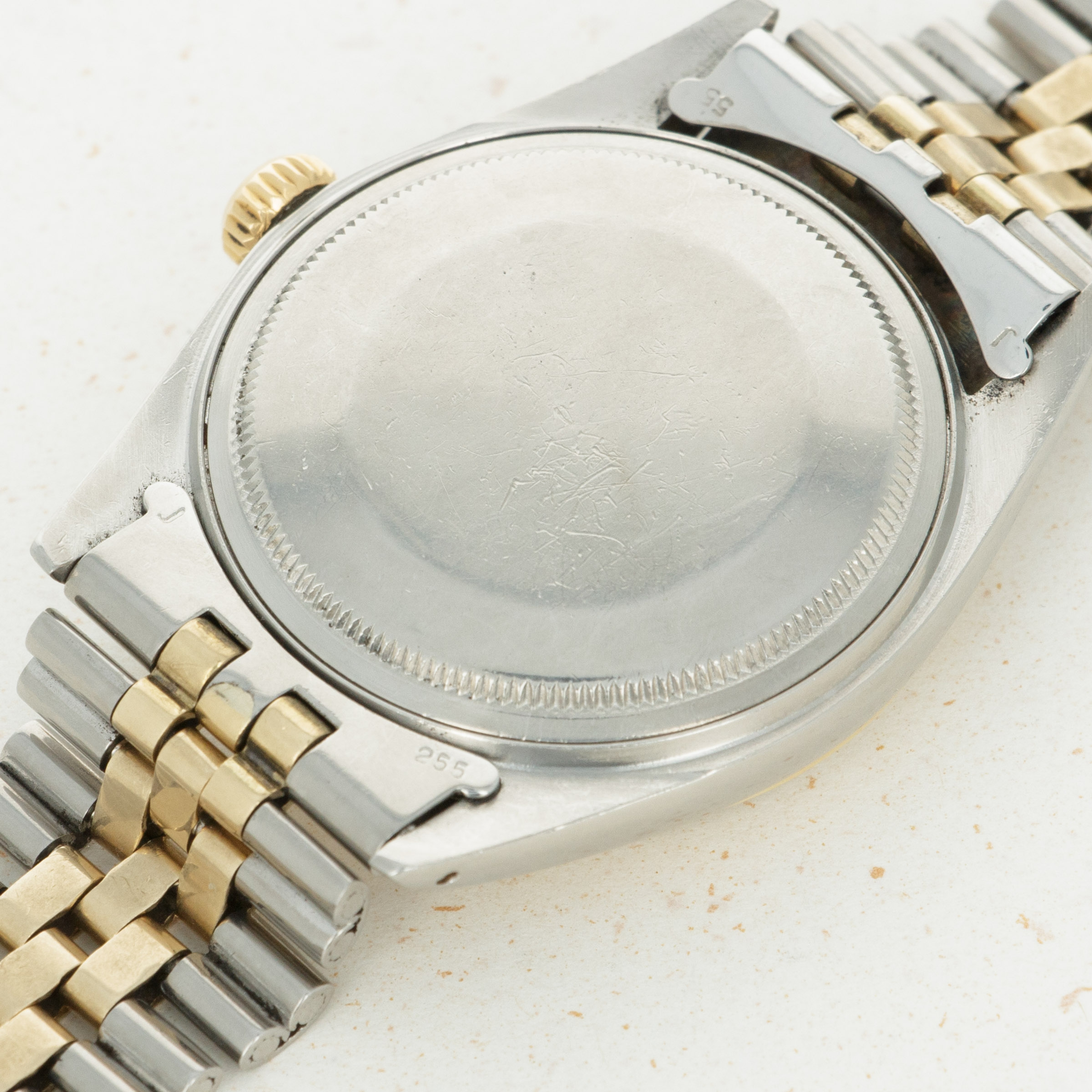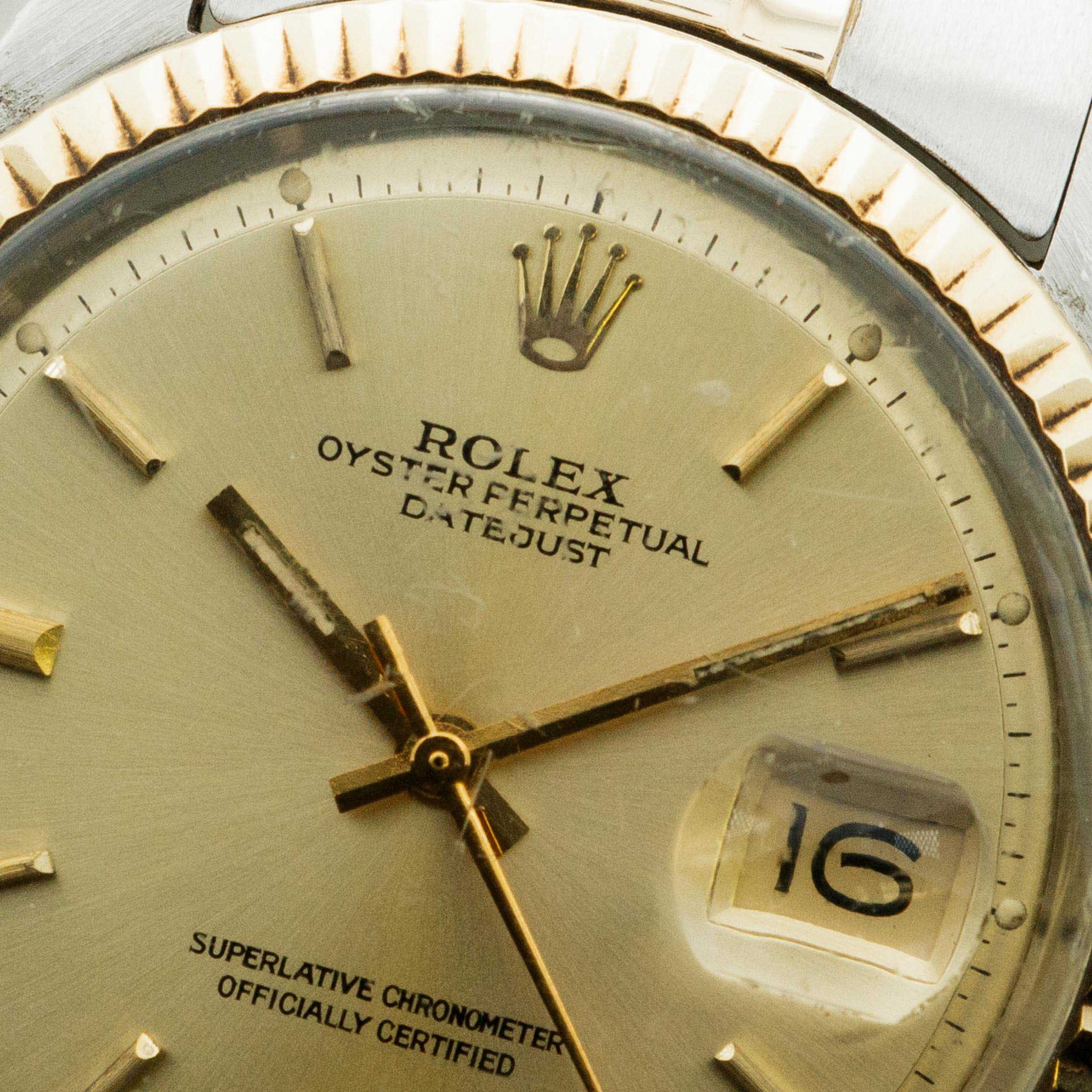 With its soft champagne-colored dial and date window, this ref. 1601's display works wonderfully with its bi-metal construction.