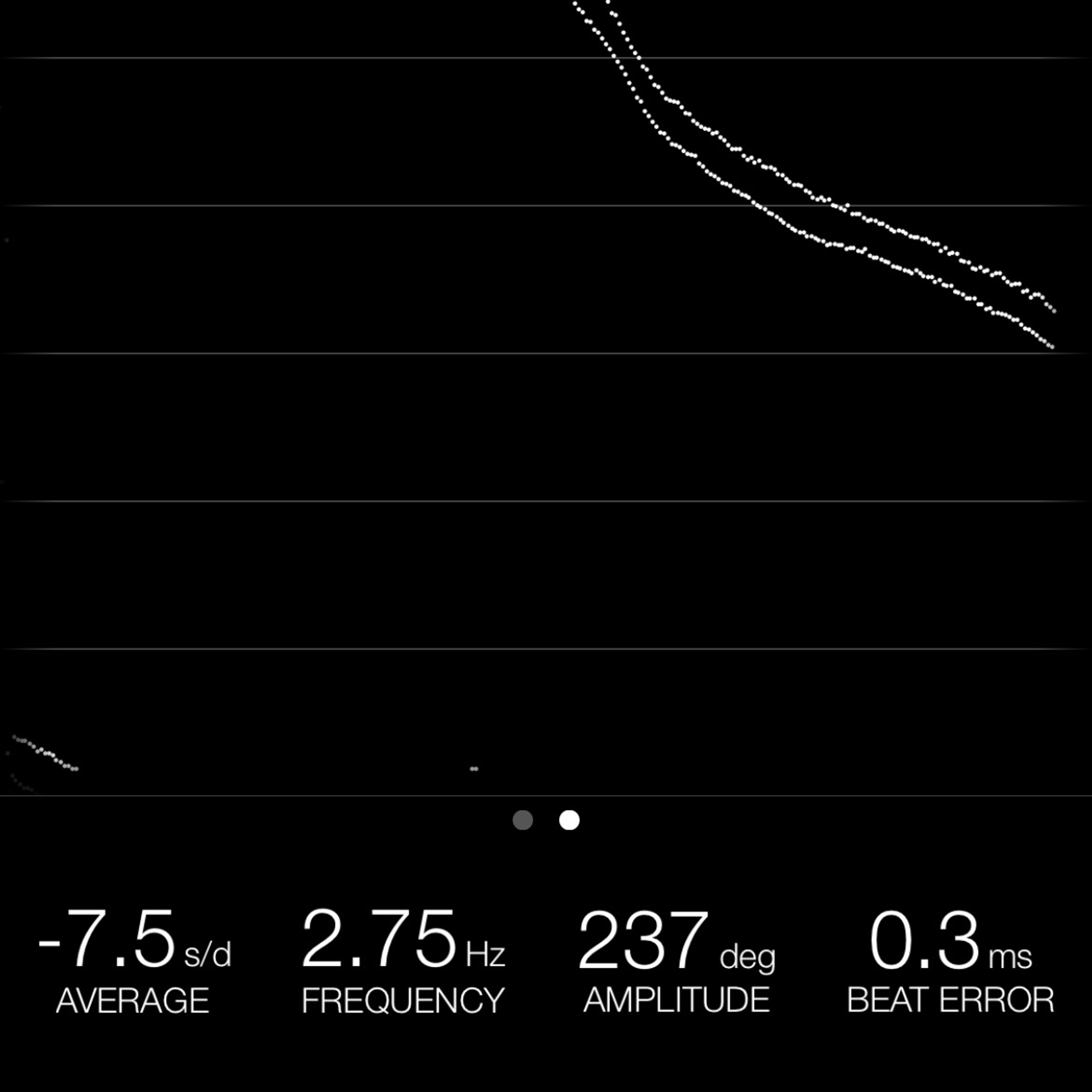 This reading was taken (crown down) with a ONEOF Accuracy Boutique Edition timing machine at time of cataloging. It is provided as a courtesy only, and shall not be construed as a warranty or guarantee of any kind. Please refer to our terms and conditions of sale for more information.