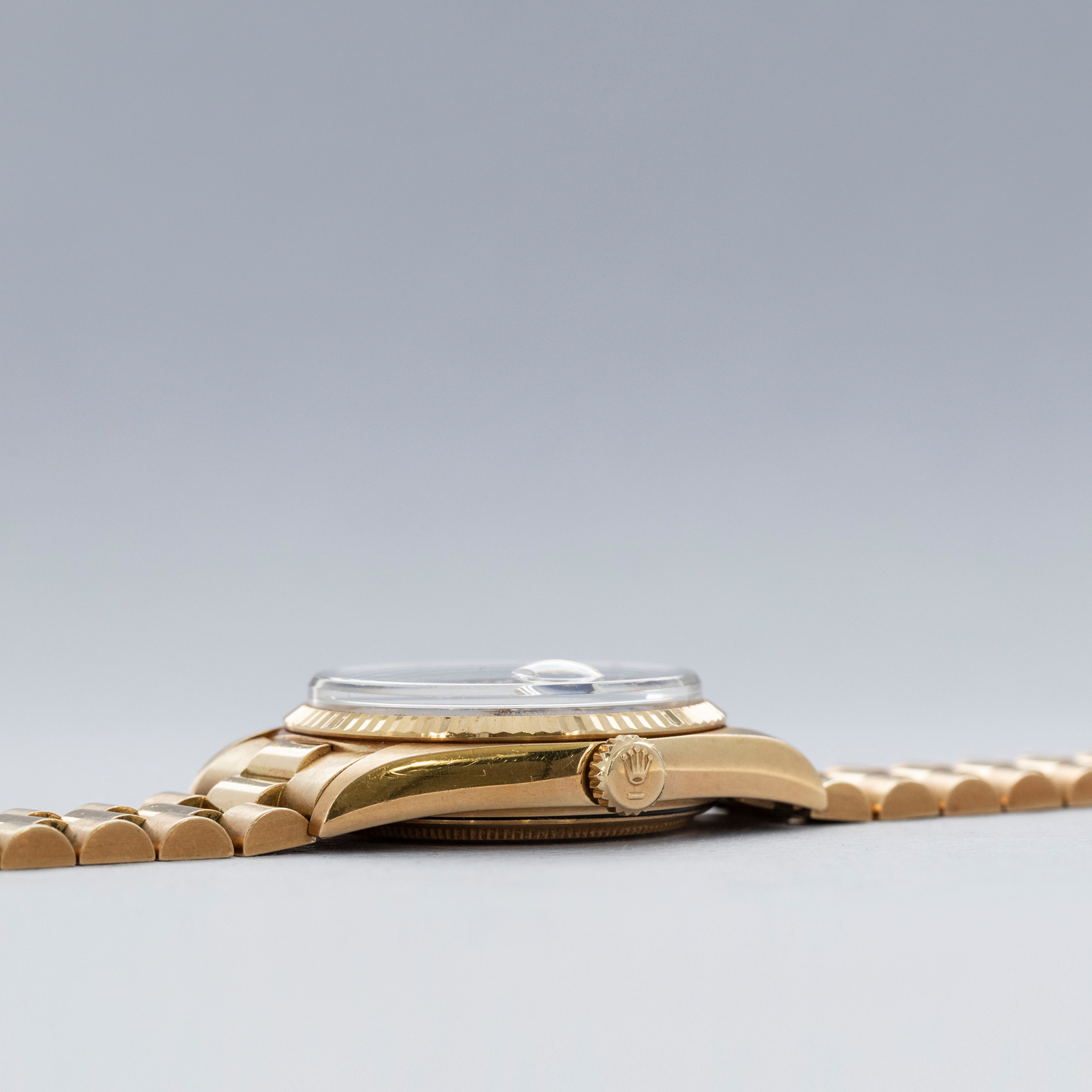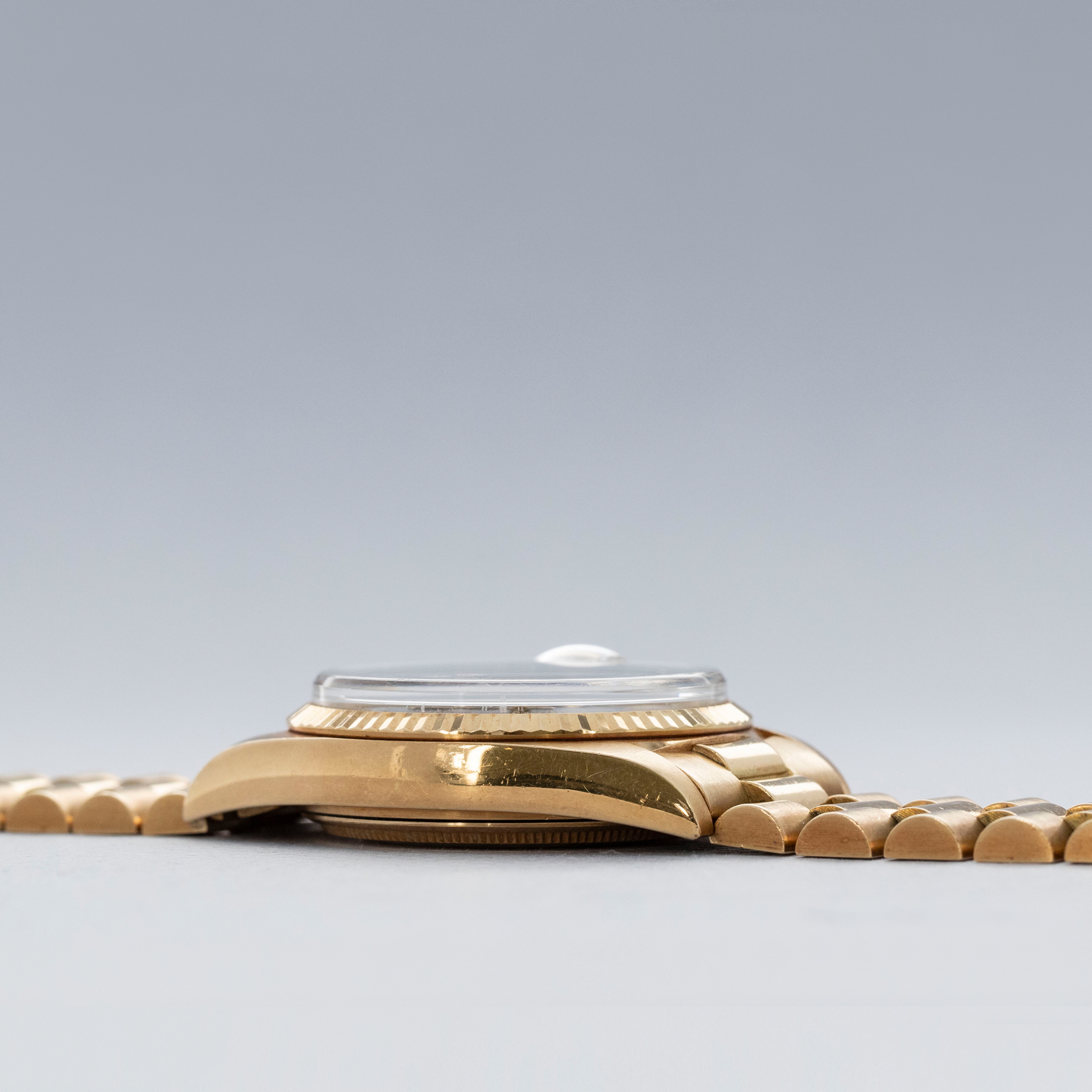 Retaining the essence of vintage Rolex, the ref. 1803 is filled with character and appeal that has since been lost in modern Day-Dates, with its plexi crystal and pie-pan Buckley dial.