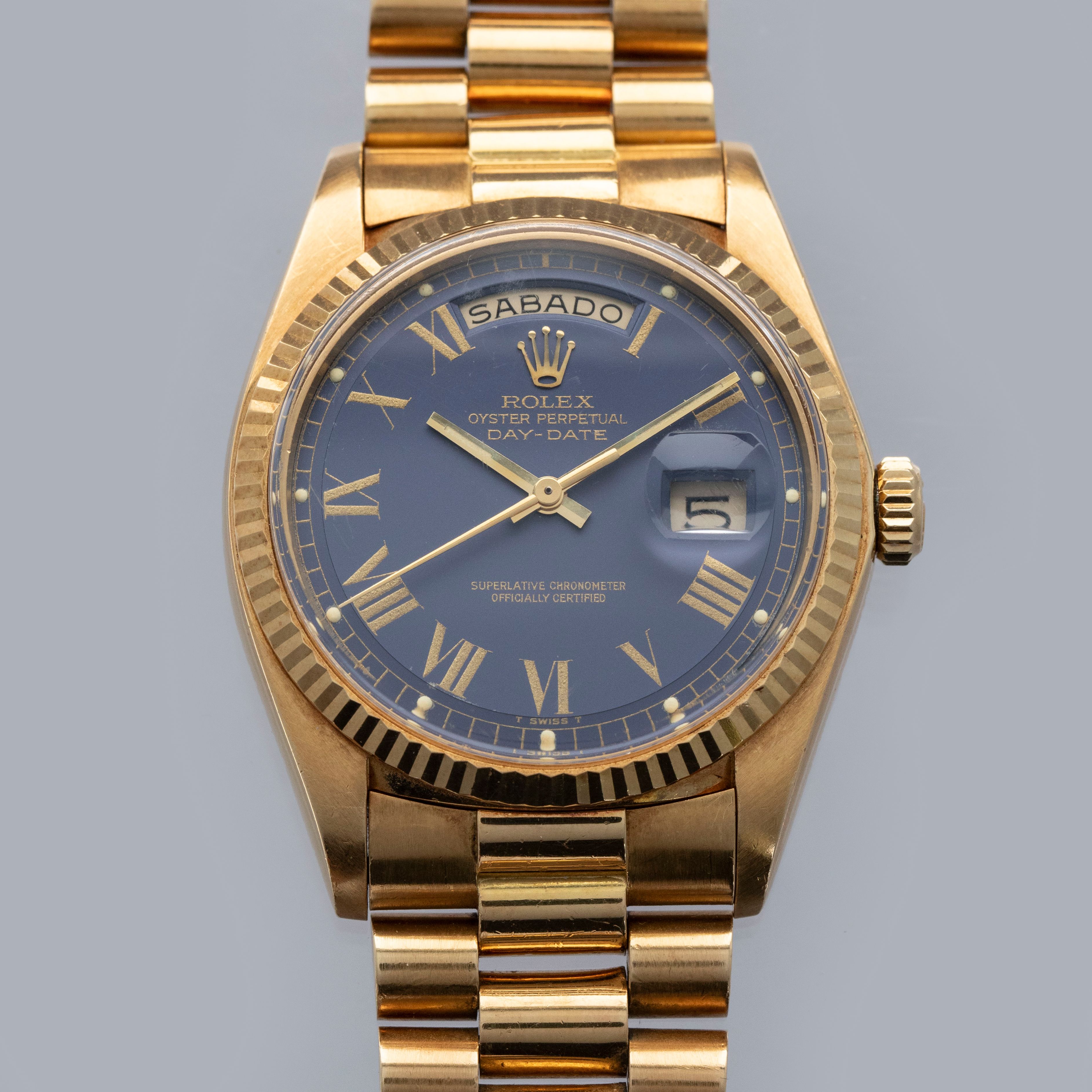 Featuring all of the Day-Date's most iconic design elements such as its fluted bezel, Presidential bracelet, and 36mm case - all in its signature 18kt yellow gold, this ref. 1803 is a vintage delight.