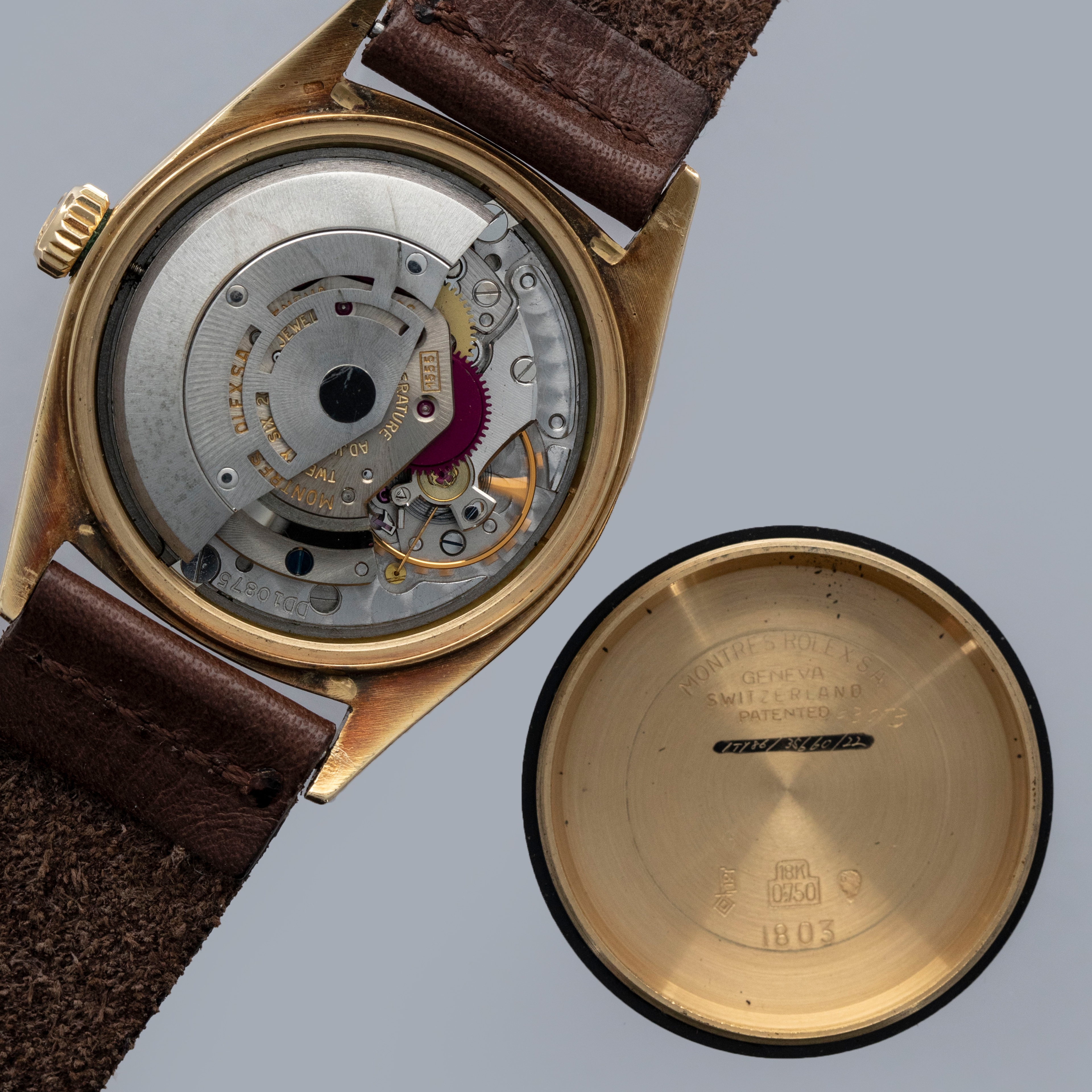 Offered on a leather strap instead of the Day-Date's typical Presidential bracelet, this ref. 1803 features a dressier aesthetic than we normally ascribe to the Day-Date collection.