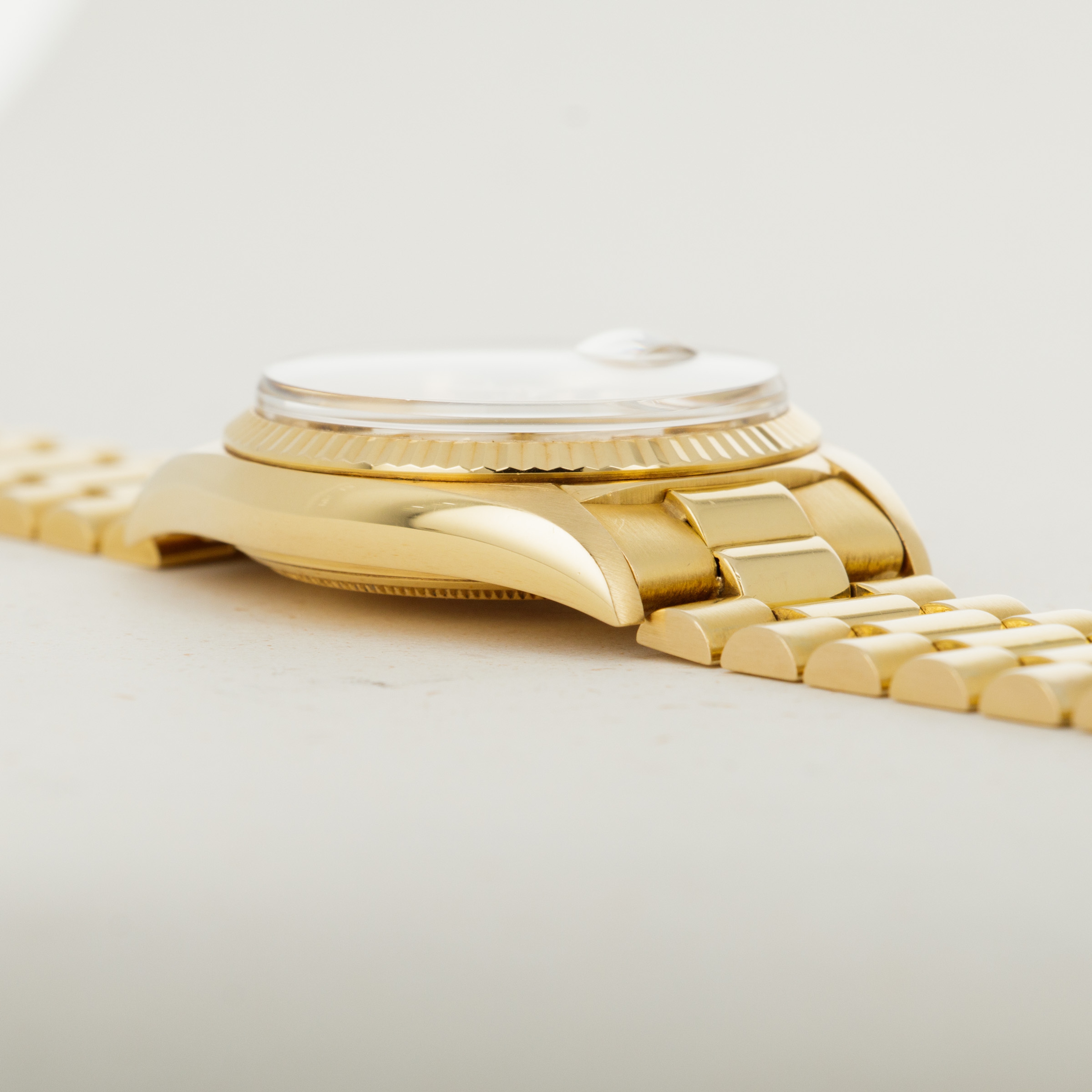 A legendary timepiece with an unrivaled history, the Rolex Day-Date has earned its place as "The Ultimate Watch of Prestige" from its decades on the wrists of the world's most influential people. Released in 1956, the Day-Date quickly became synonymous with luxury, prestige, and exclusivity thanks to being the watch of choice for the world's athletes, visionaries, and world leaders alike. Only ever constructed of precious metals to the public, the Day-Date's aesthetic is that of sheer elegance and grace. Aside from the beautiful array of dial options that have been available over the decades, the Day-Date's most iconic piece of design is its three-piece "Presidential" or "President" bracelet. Forming the bedrock of its design, the Presidential bracelet has become synonymous with Rolex's flagship collection and their desire to create the very best and most iconic watches that the world has ever seen. With its timeless design and inescapable impact on horology, the Day-Date stands as a vivid reminder of just how successful they have been in realizing that very mission.