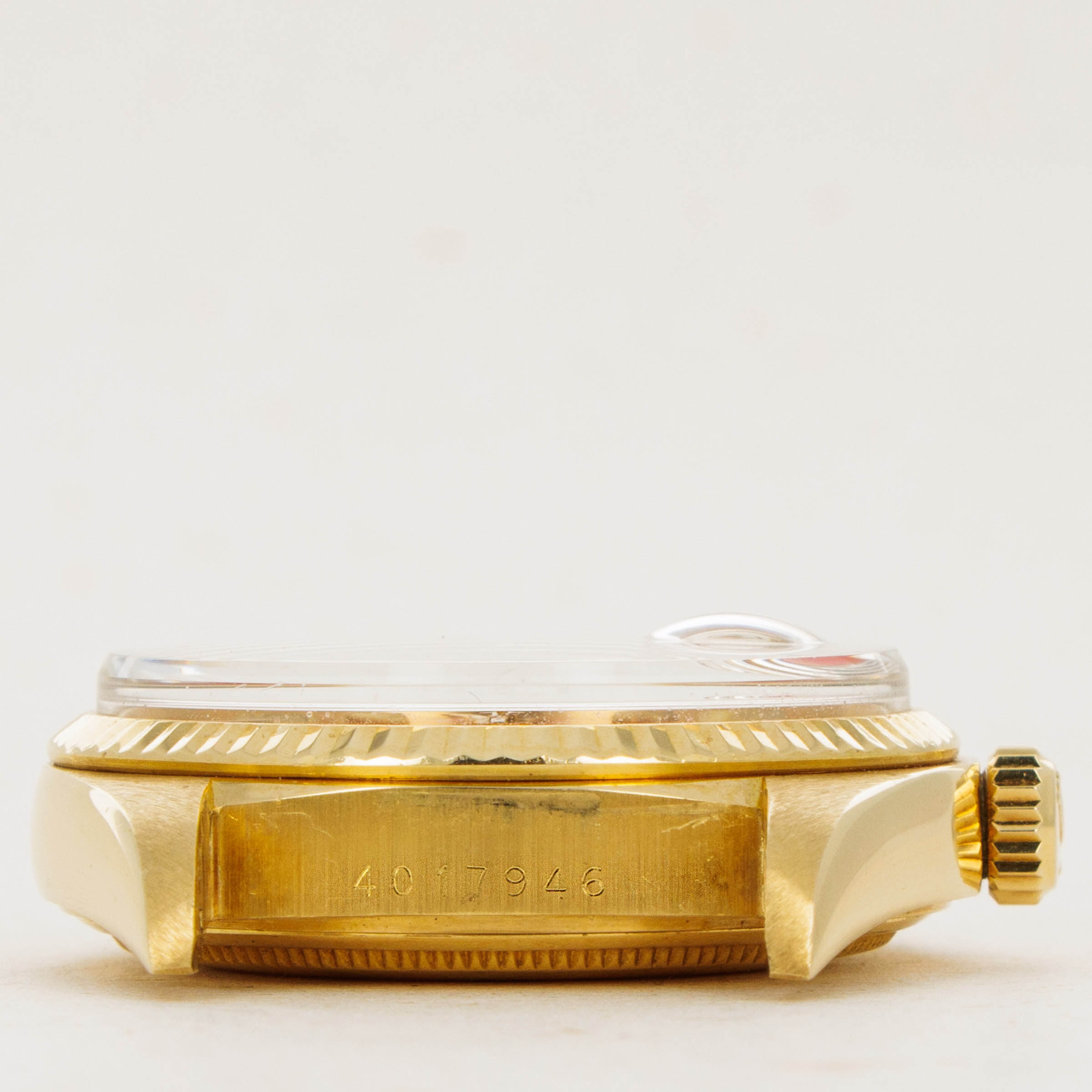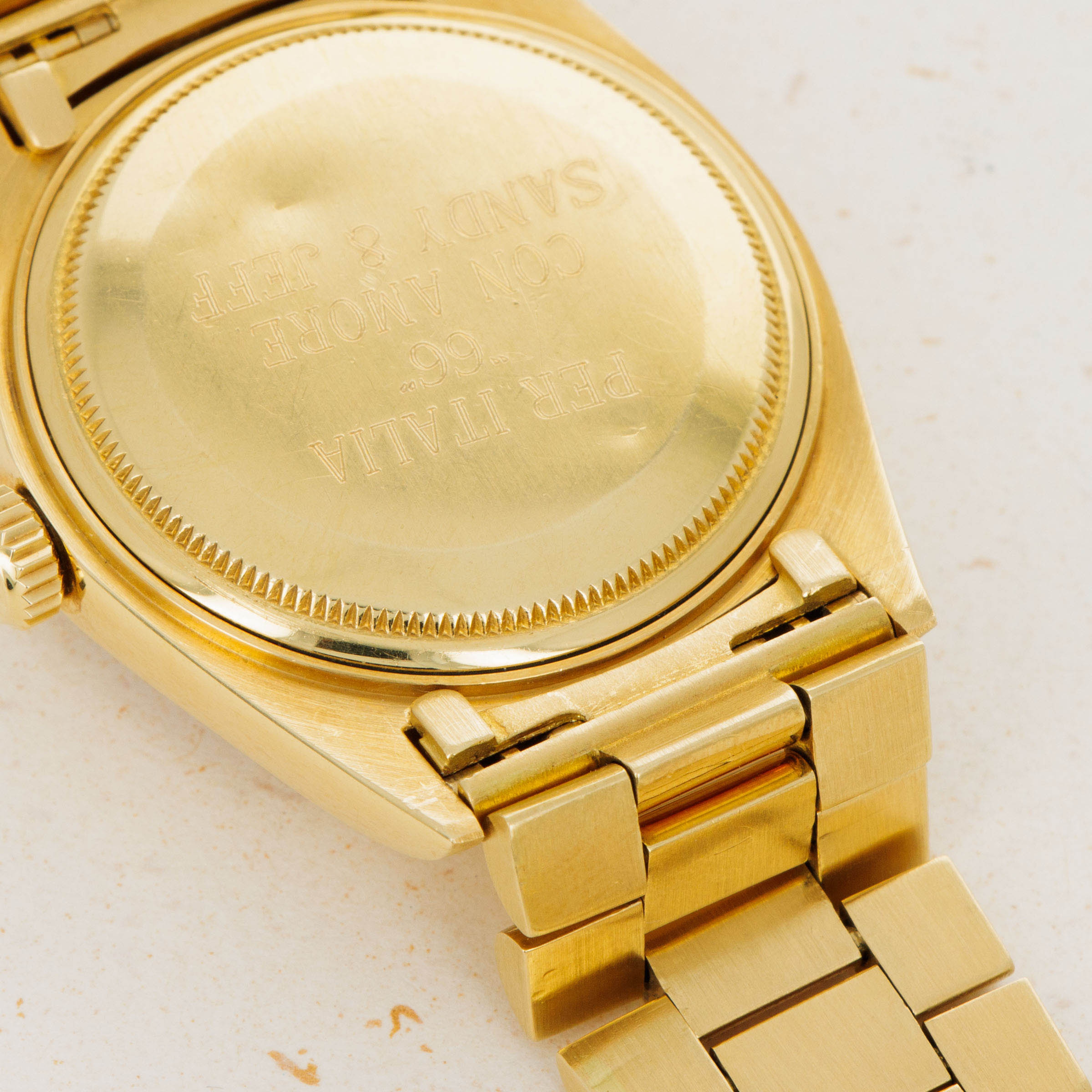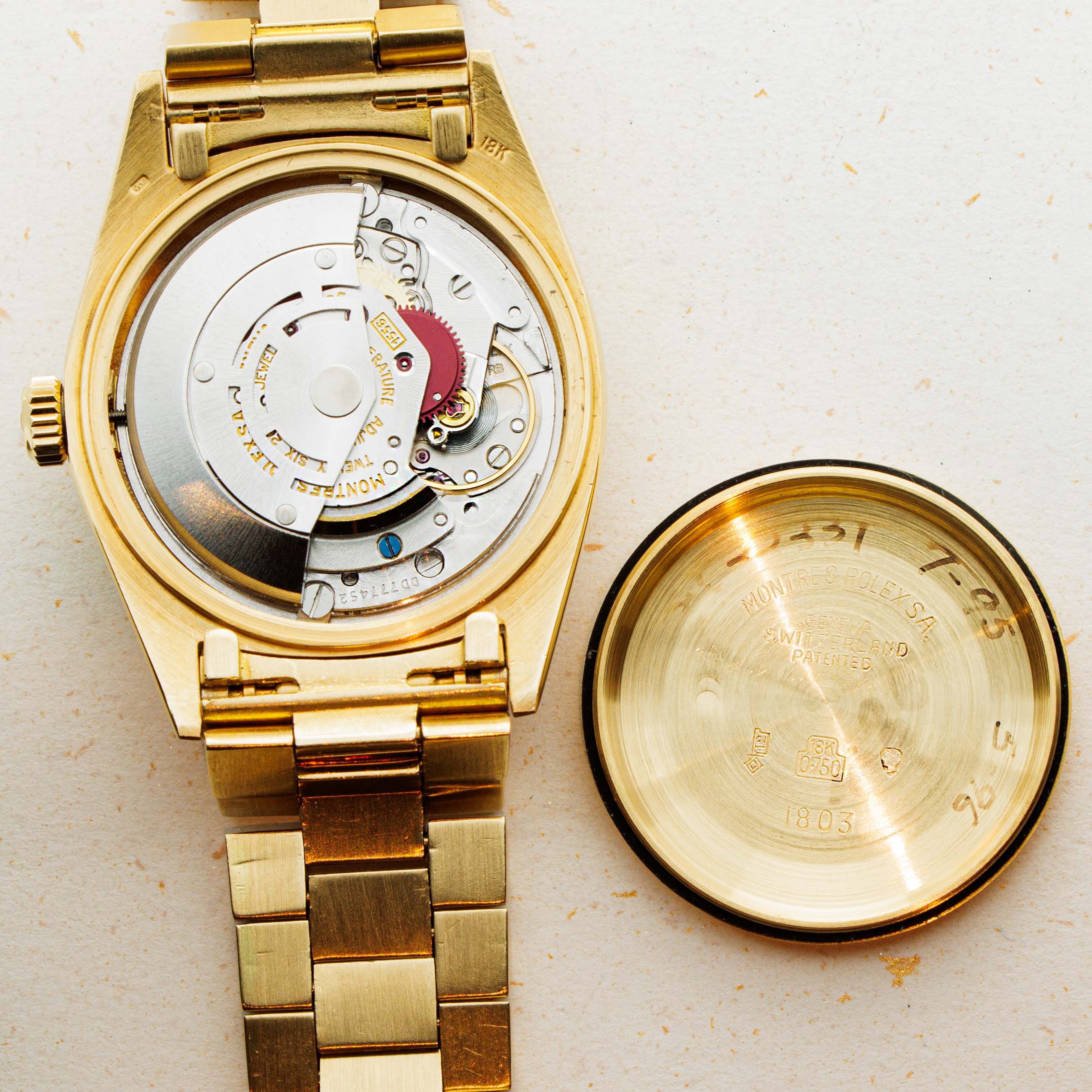 While its pie-pan orange Stella dial is certainly the star of the show, this ref. 1803's well-preserved 18kt yellow gold case, bracelet, and bezel combine to top off its exceptional dial very nicely.
