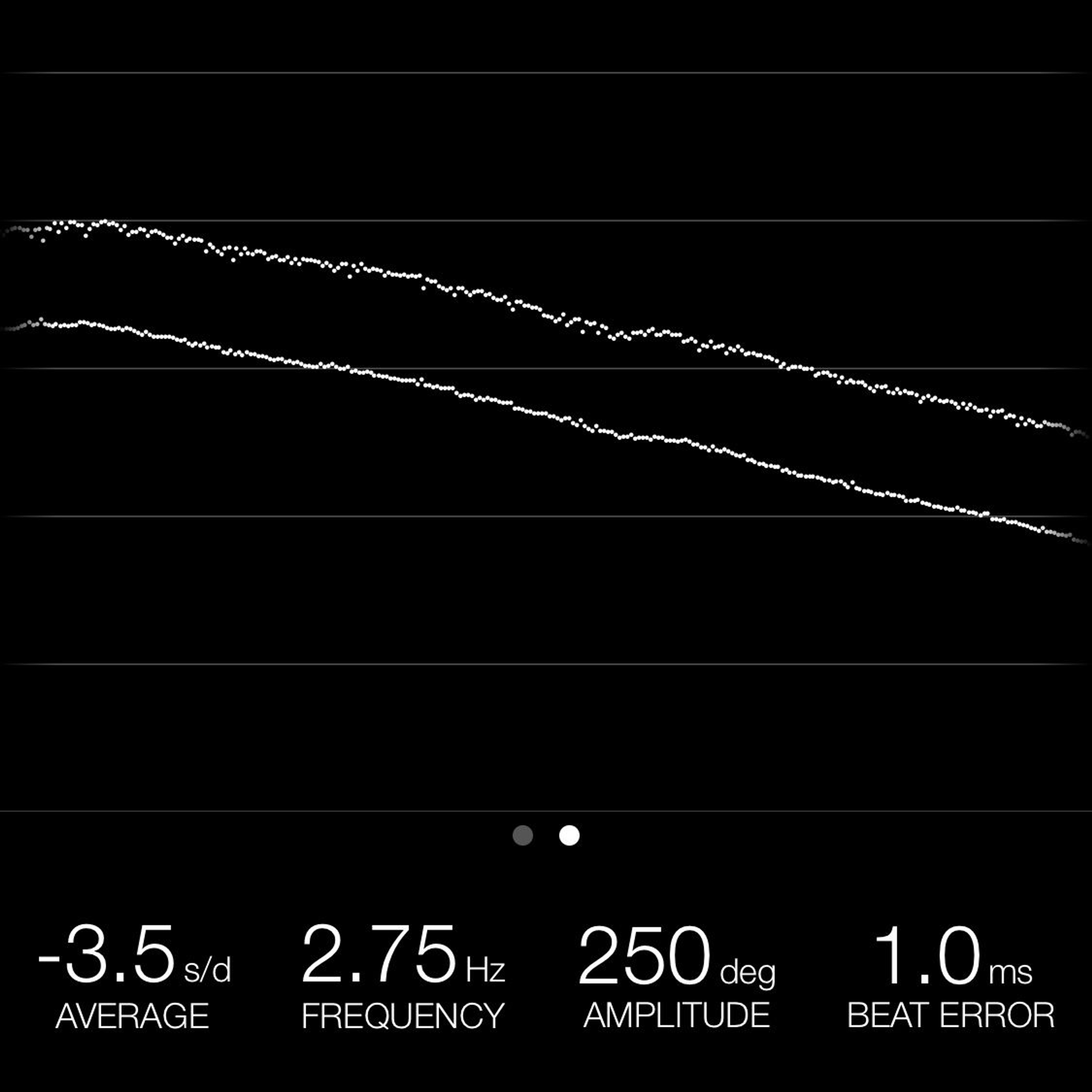 This reading was taken (crown down) with a ONEOF Accuracy Boutique Edition timing machine at time of cataloging. It is provided as a courtesy only, and shall not be construed as a warranty or guarantee of any kind. Please refer to our terms and conditions of sale for more information.