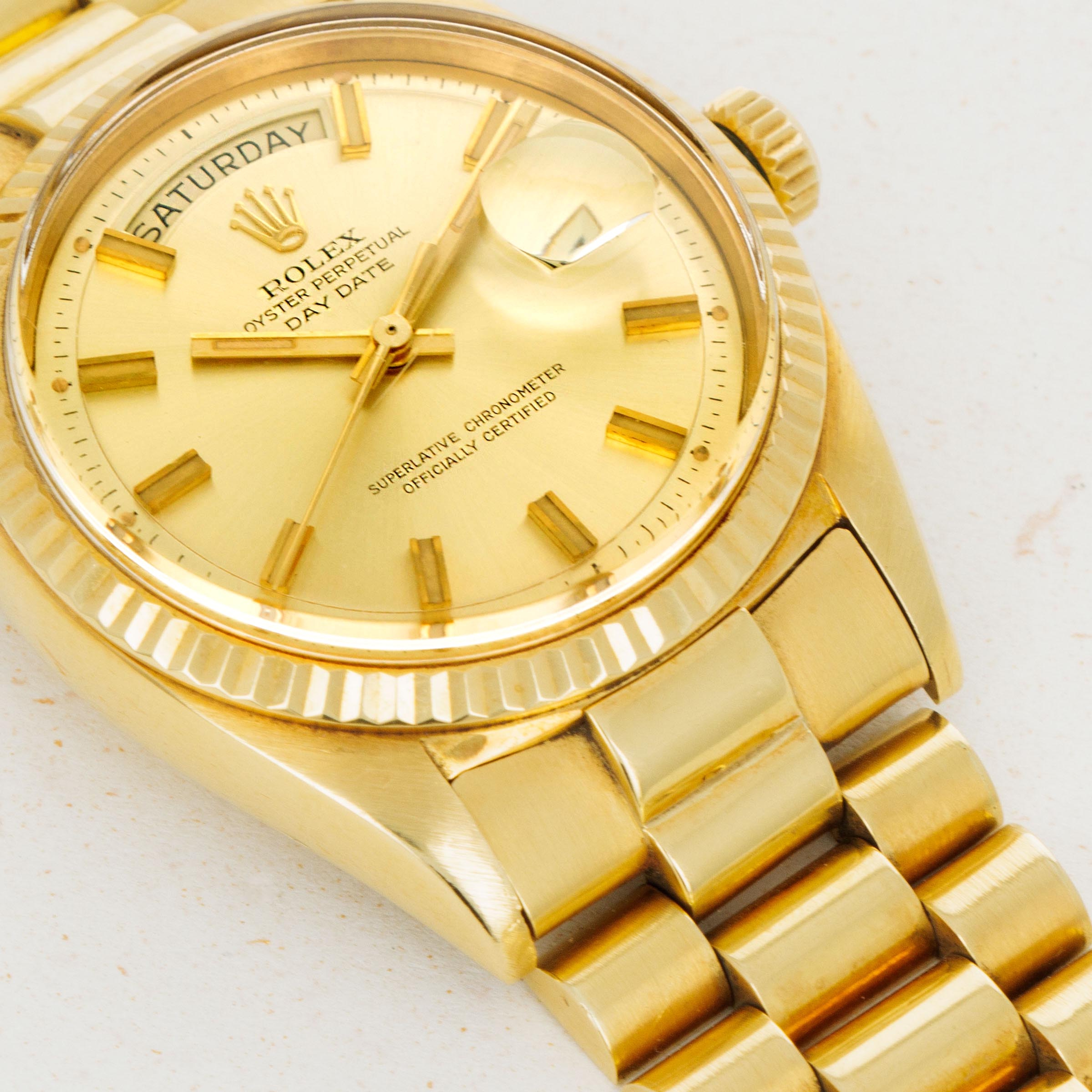 A legendary timepiece with an unrivaled history, the Rolex Day-Date has earned its place as "The Ultimate Watch of Prestige" from its decades on the wrists of the world's most influential people. Released in 1956, the Day-Date quickly became synonymous with luxury, prestige, and exclusivity thanks to being the watch of choice for the world's athletes, visionaries, and world leaders alike. Only ever constructed of precious metals, the Day-Date's aesthetic is that of sheer elegance and grace. Aside from the beautiful array of dial options that have been available over the decades, the Day-Date's most iconic piece of design is its three-piece "Presidential" or "President" bracelet. Forming the bedrock of its design, the Presidential bracelet has become synonymous with Rolex's flagship collection and their desire to create the very best and most iconic watches that the world has ever seen. With its timeless design and inescapable impact on horology, the Day-Date stands as a vivid reminder of just how successful they have been in realizing that very mission.