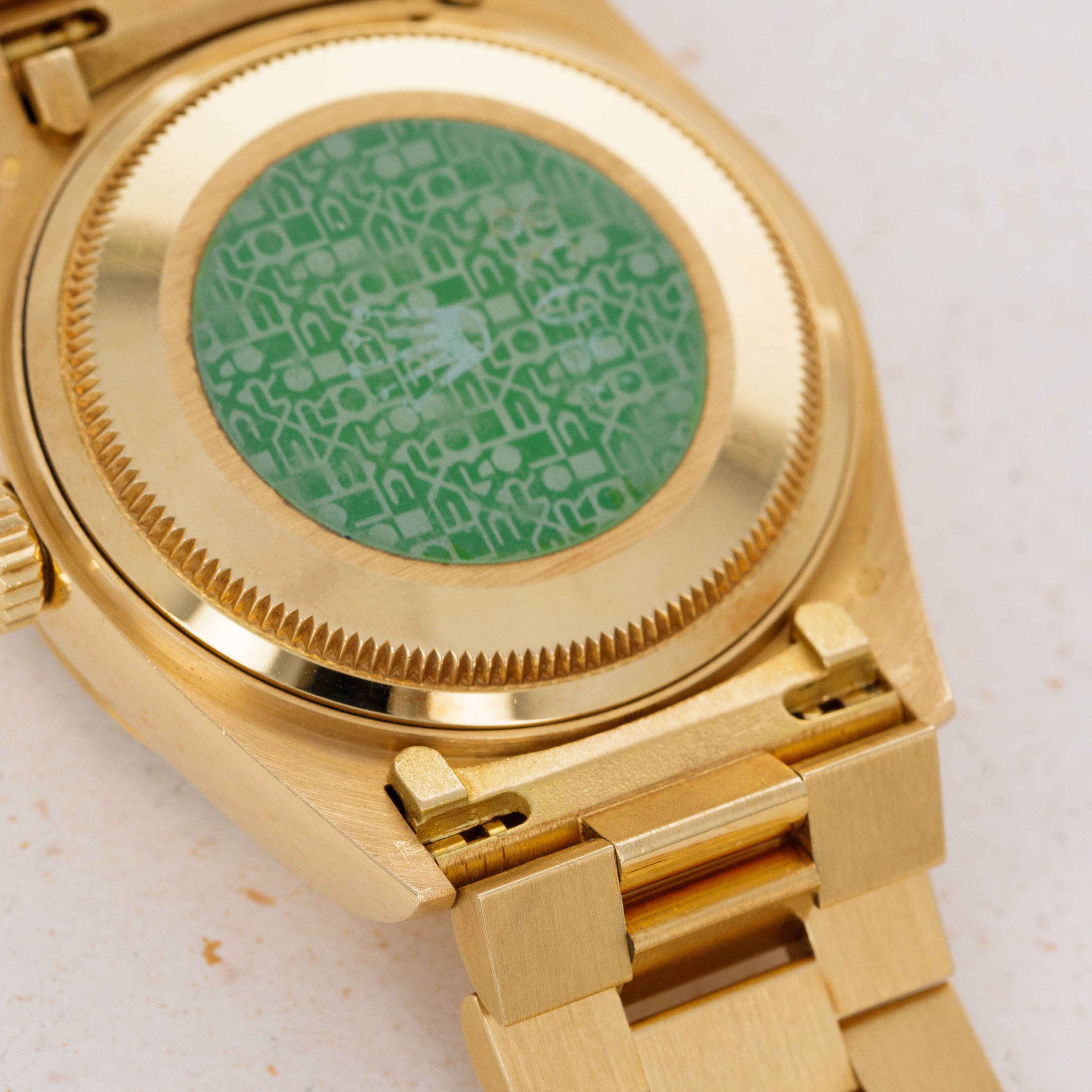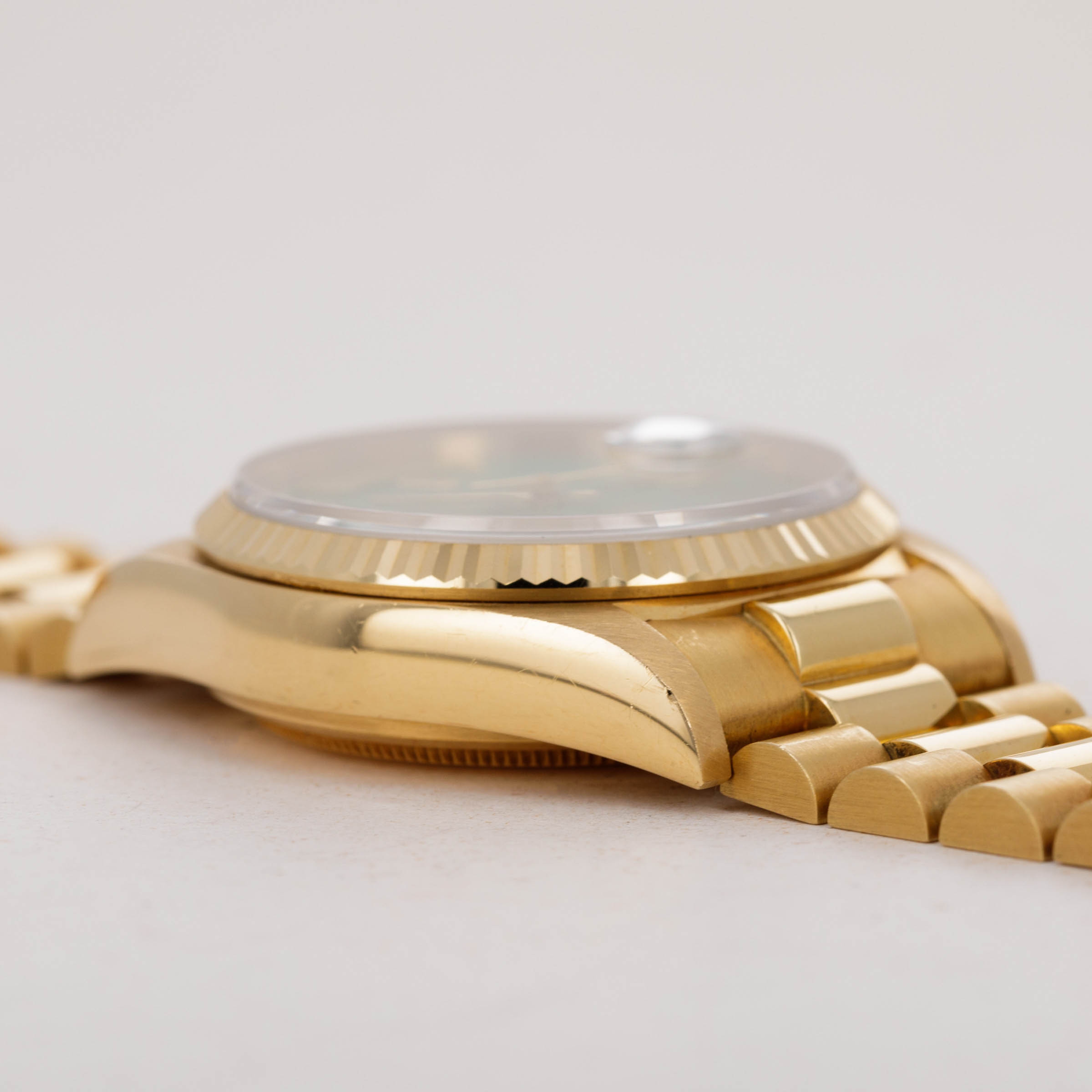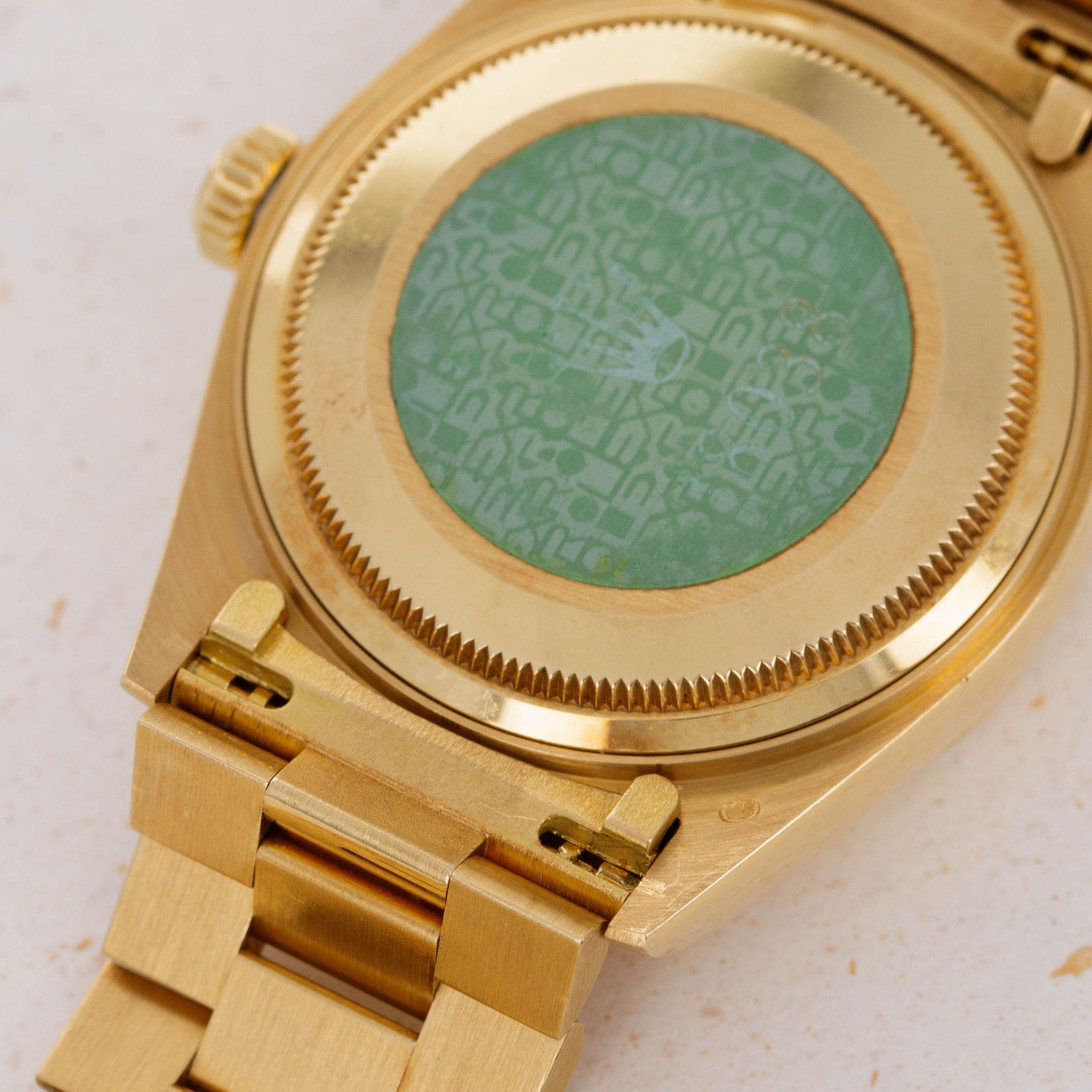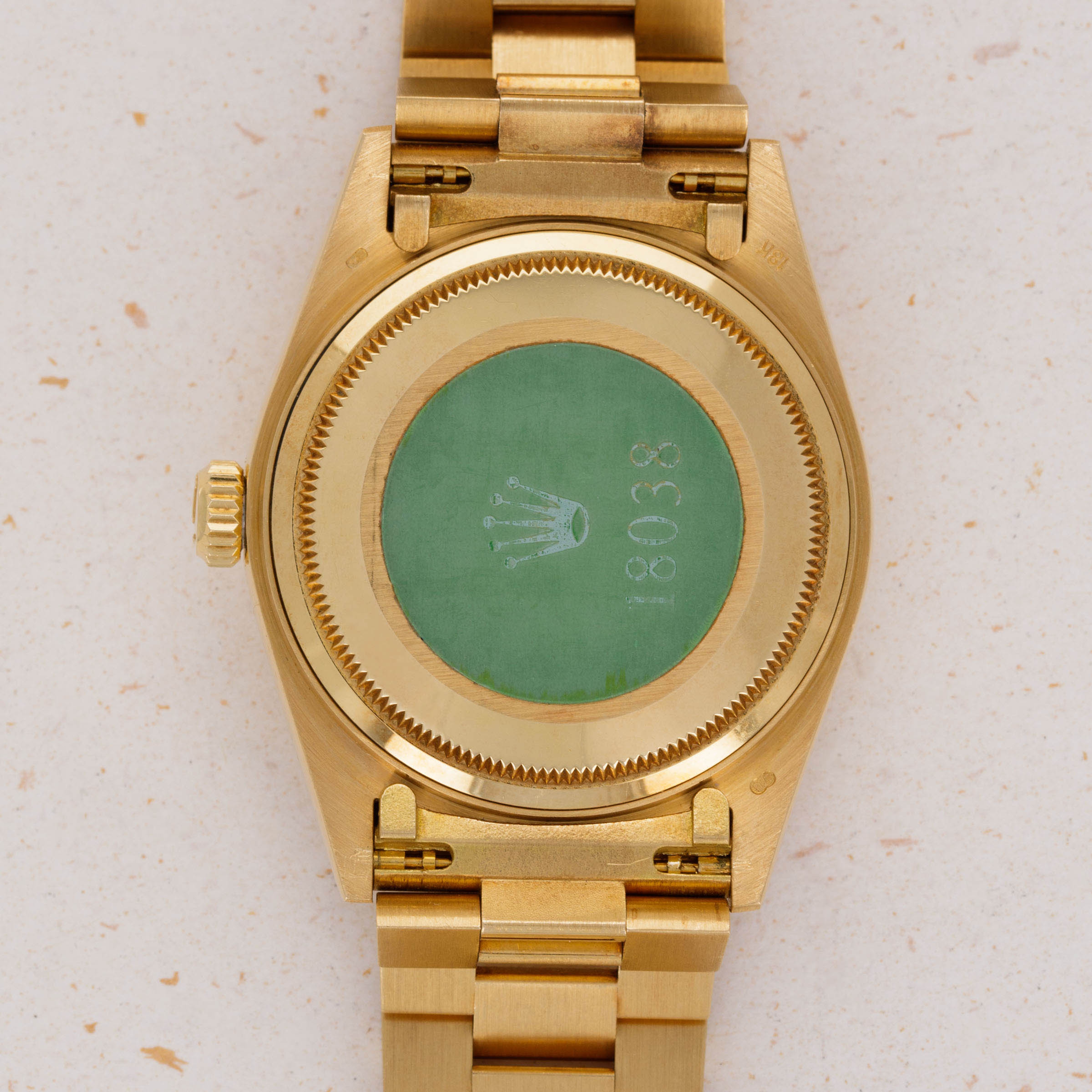 Featuring one of the Day-Date's most sought-after dials, this ref. 18038 is offered as one of the rarest Day-Dates on the market, with its stunning green malachite dial sitting at the pinnacle of every Day-Date collector's wishlist.