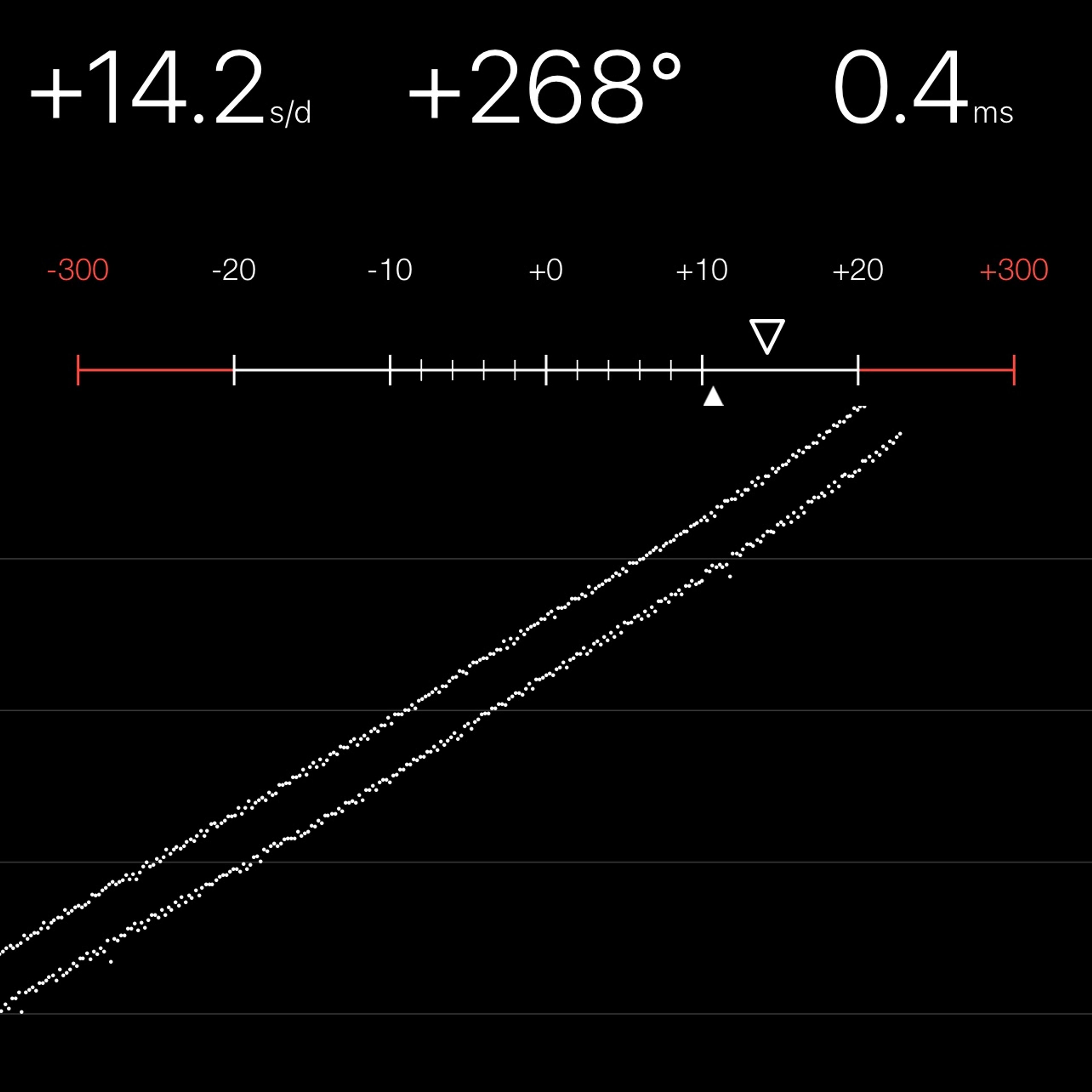 This reading was taken (crown down) with a ONEOF Accuracy Boutique Edition timing machine at time of cataloging. It is provided as a courtesy only, and shall not be construed as a warranty or guarantee of any kind. Please refer to our terms and conditions of sale for more information.