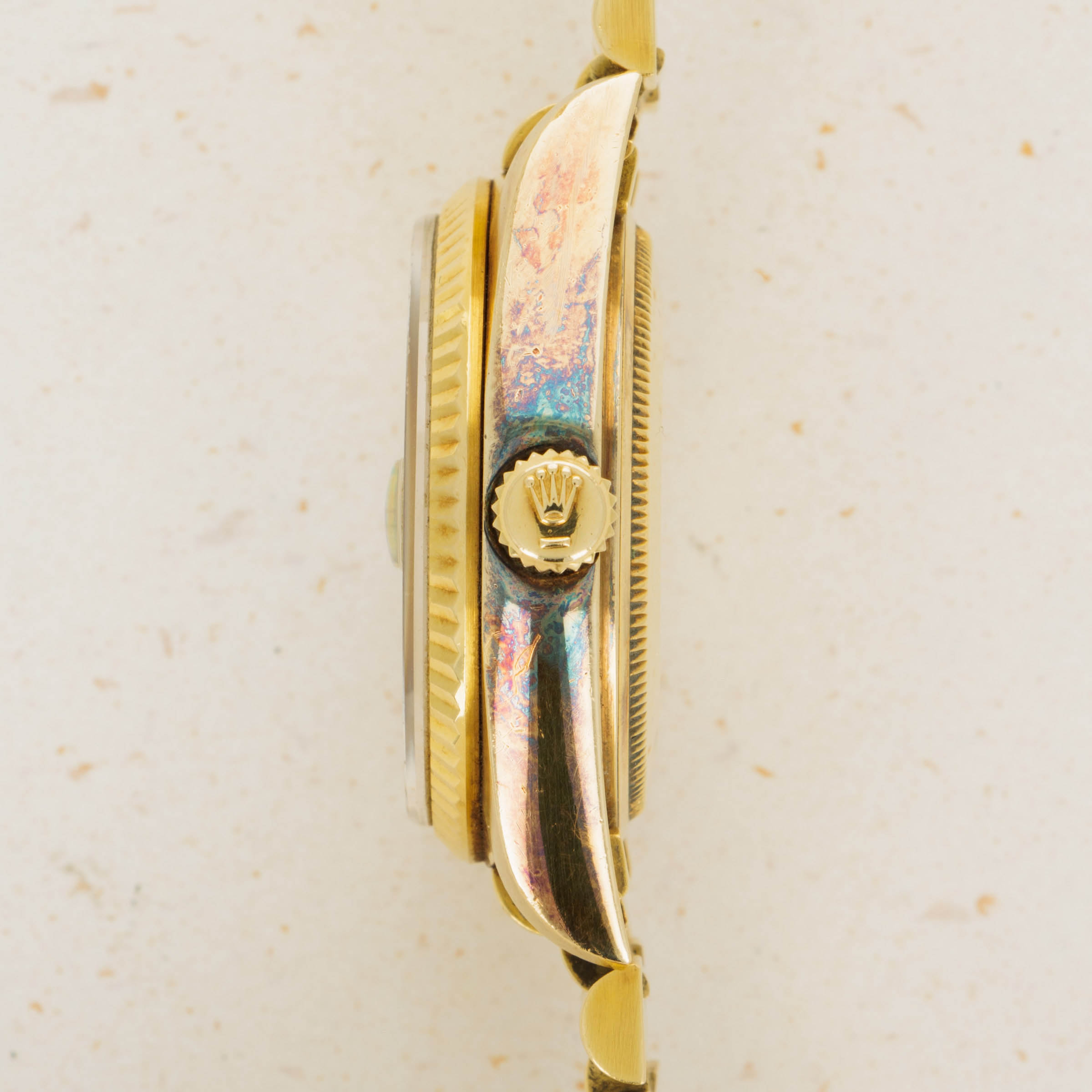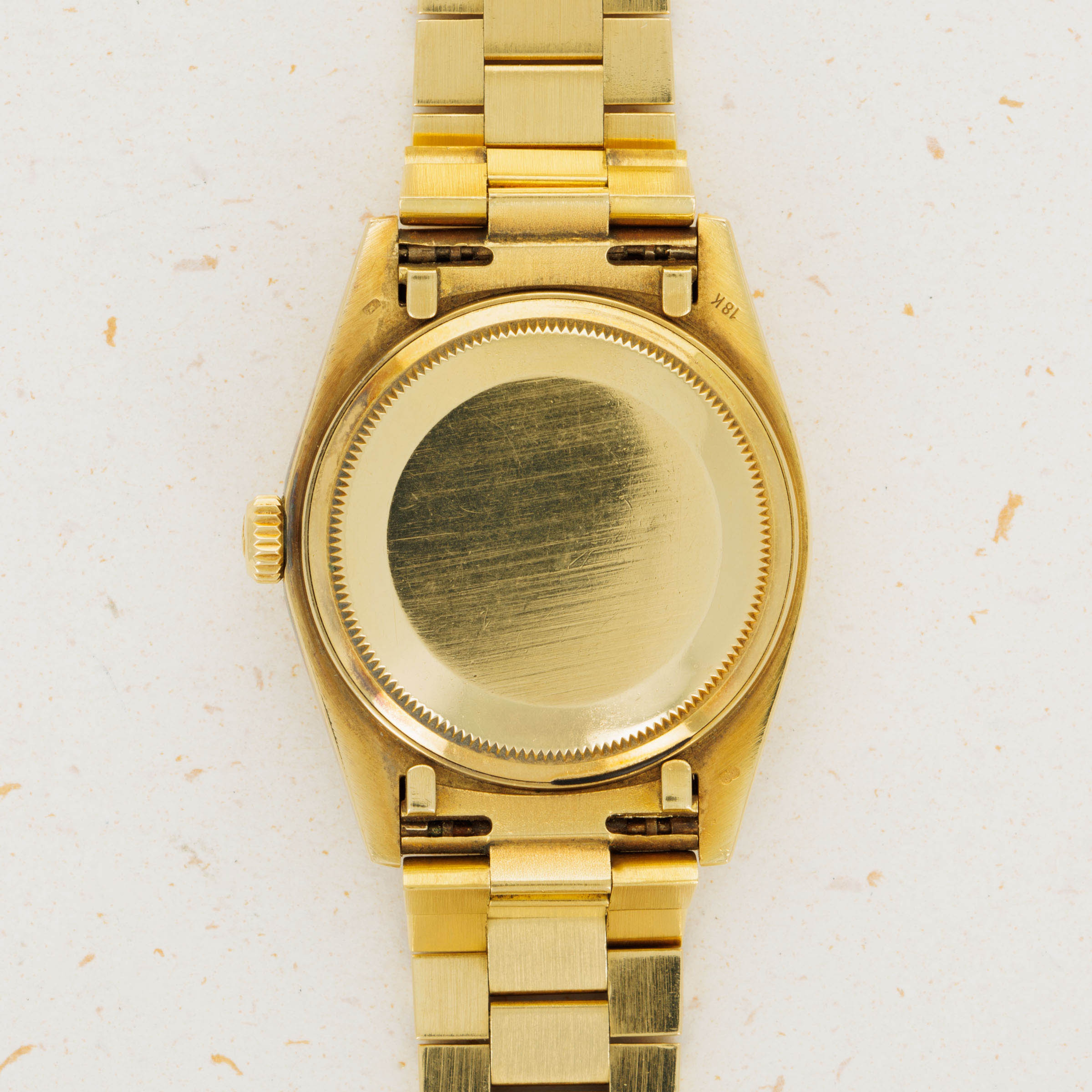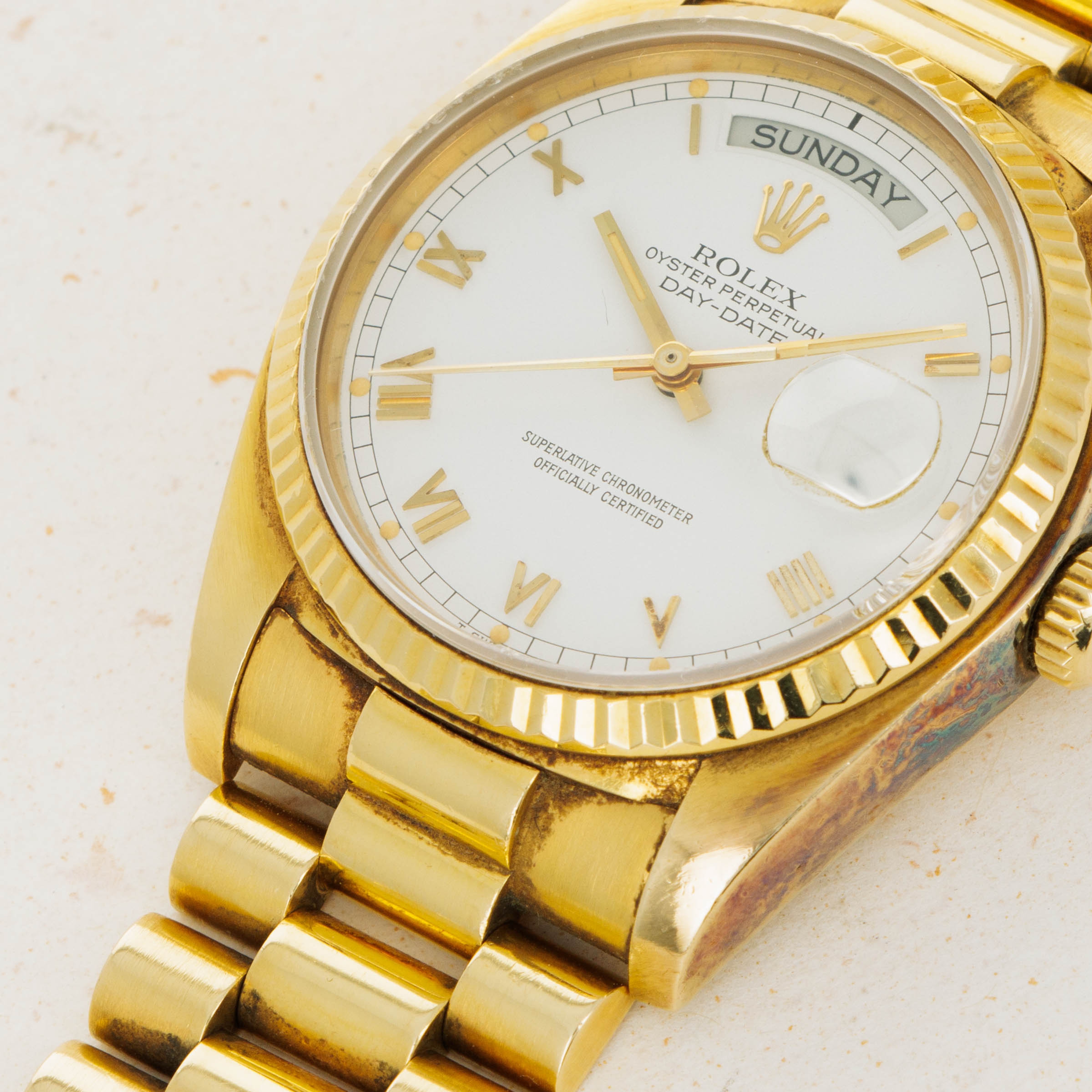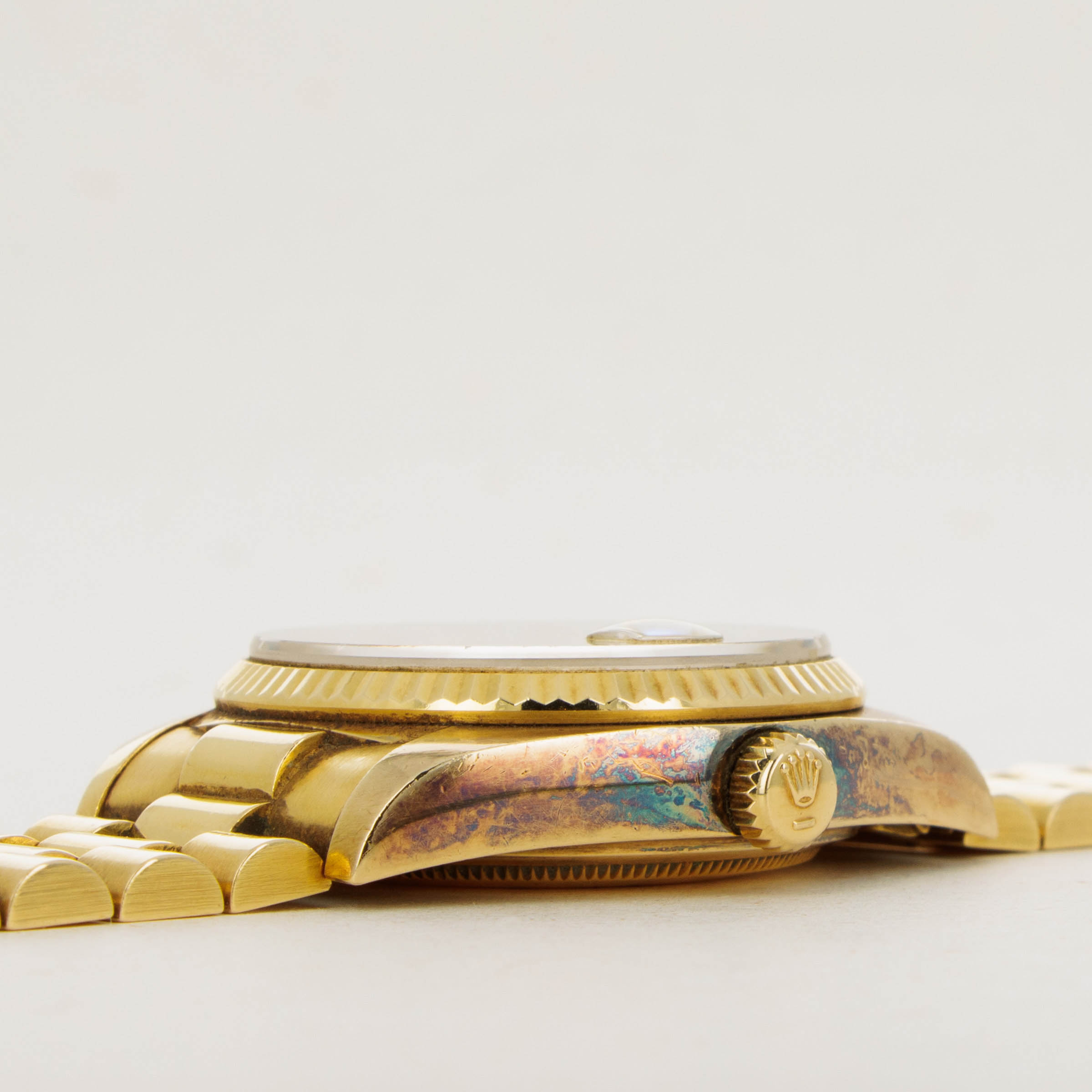 While featuring the Day-Date's iconic design details like its fluted bezel and Presidential bracelet, this Day-Date brings an appealing twist to its aesthetic through the unique patination that has developed across its surfaces.