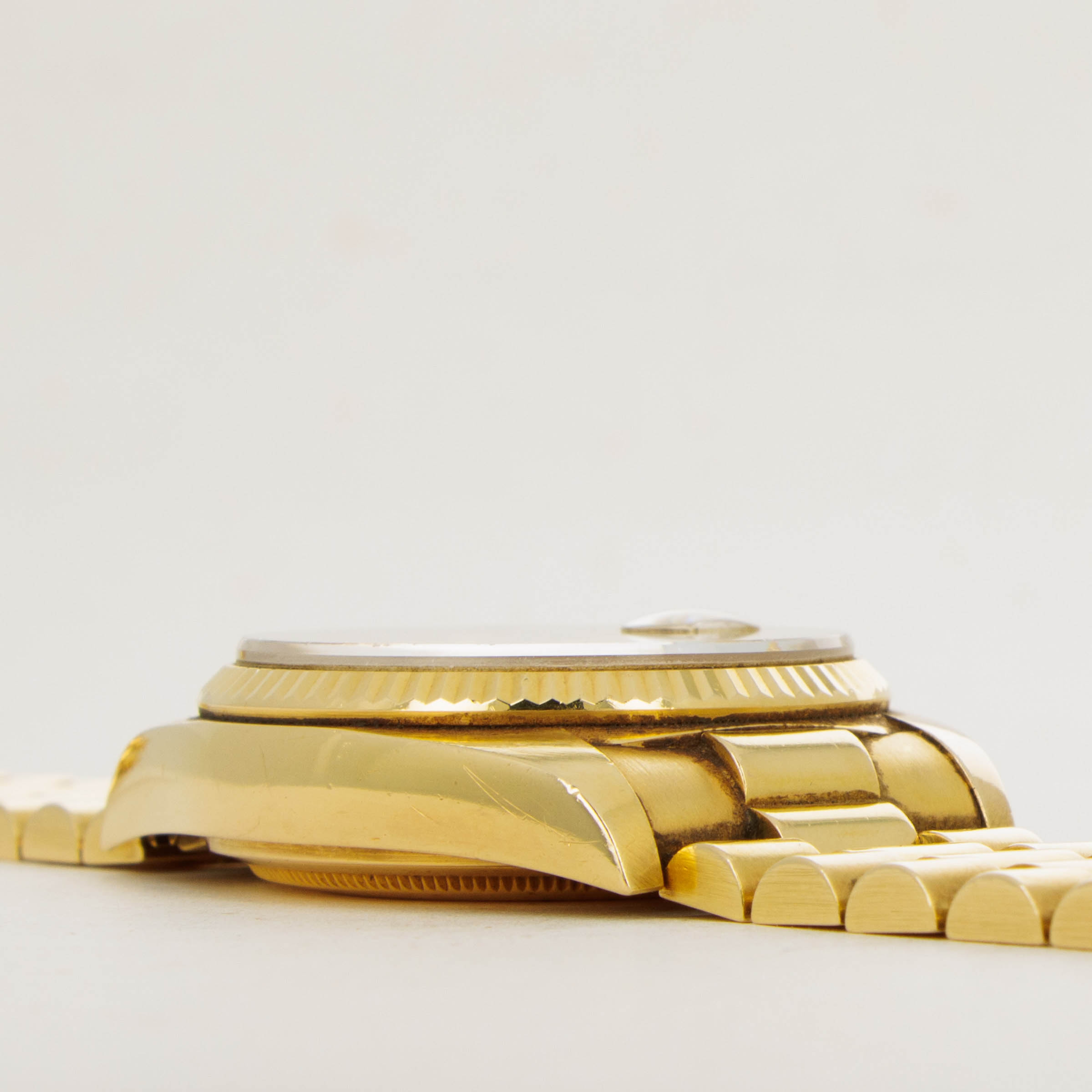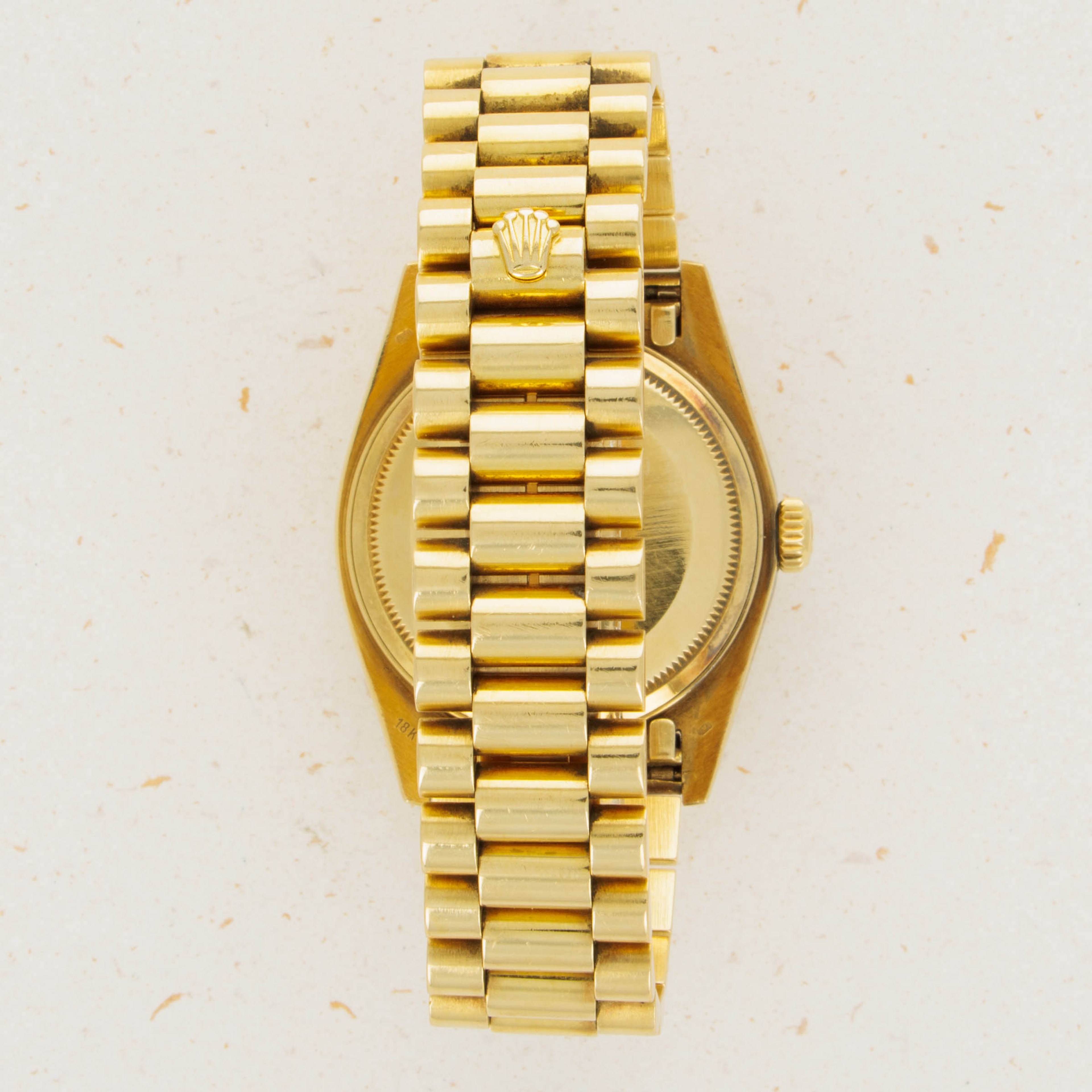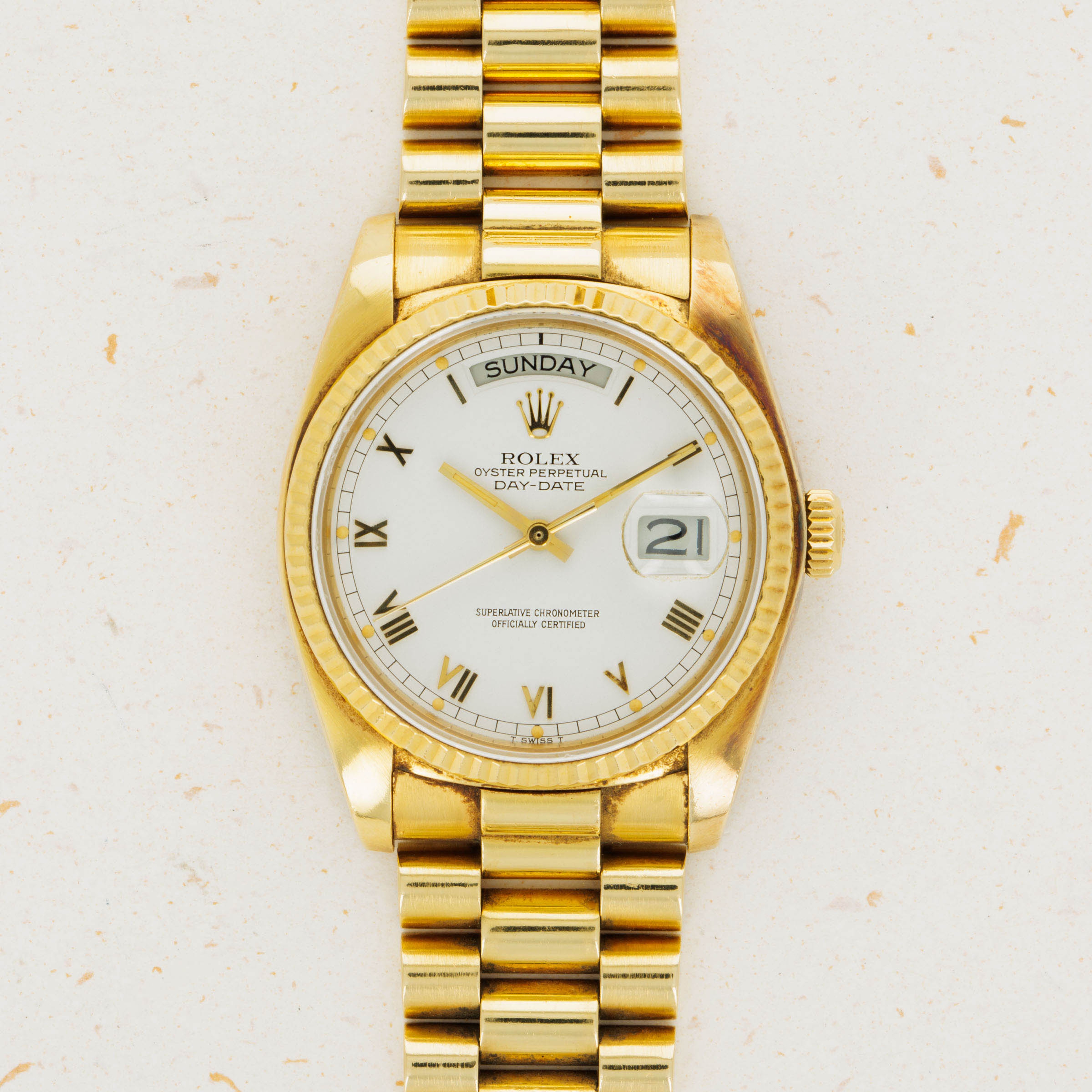 A legendary timepiece with an unrivaled history, the Rolex Day-Date has earned its place as "The Ultimate Watch of Prestige" from its decades on the wrists of the world's most influential people. Released in 1956, the Day-Date quickly became synonymous with luxury, prestige, and exclusivity thanks to being the watch of choice for the world's athletes, visionaries, and world leaders alike. Only ever constructed of precious metals, the Day-Date's aesthetic is that of sheer elegance and grace. Aside from the beautiful array of dial options that have been available over the decades, the Day-Date's most iconic piece of design is its three-piece "Presidential" or "President" bracelet. Forming the bedrock of its design, the Presidential bracelet has become synonymous with Rolex's flagship collection and their desire to create the very best and most iconic watches that the world has ever seen. With its timeless design and inescapable impact on horology, the Day-Date stands as a vivid reminder of just how successful they have been in realizing that very mission.