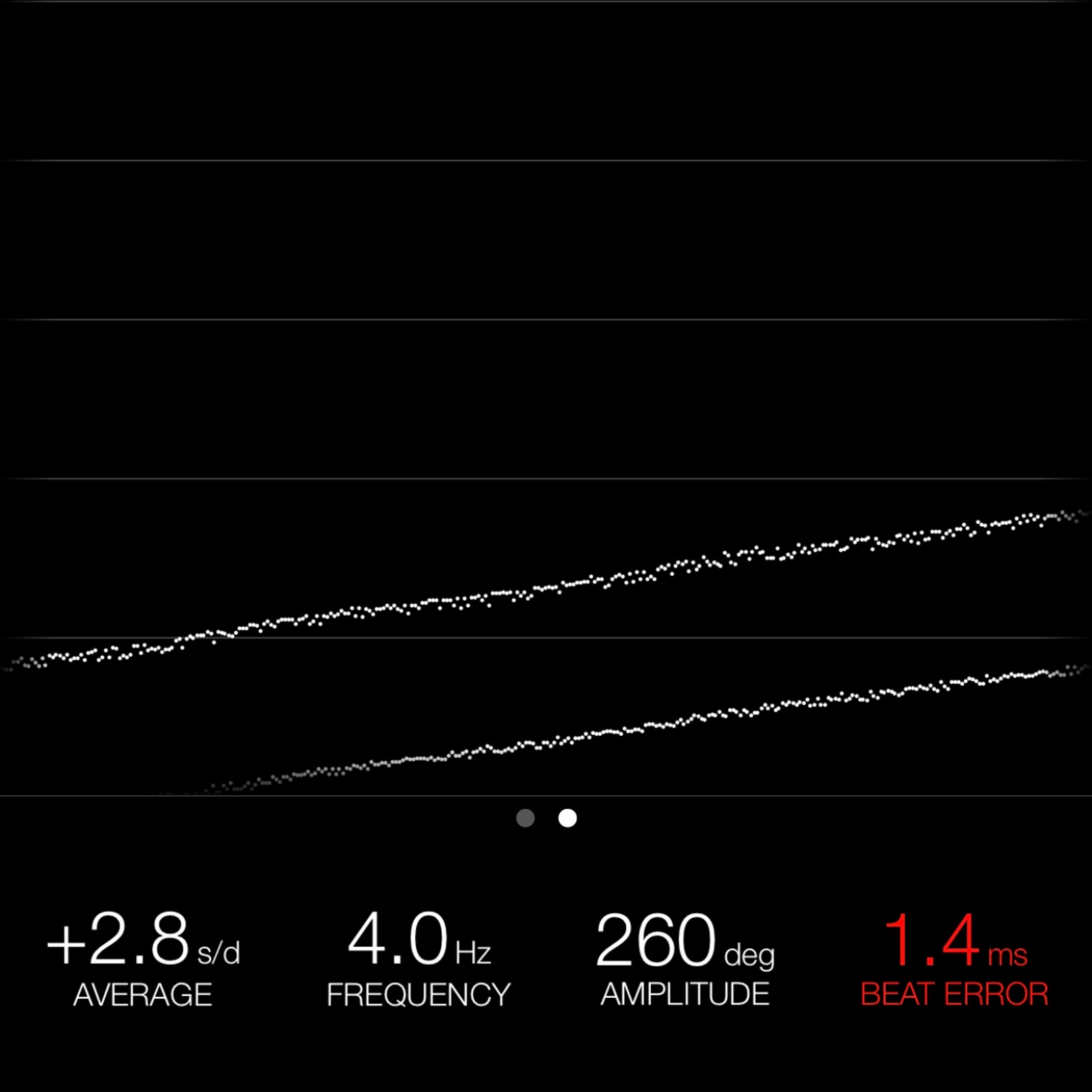 This reading was taken (crown down) with a ONEOF Accuracy Boutique Edition timing machine at time of cataloging. It is provided as a courtesy only, and shall not be construed as a warranty or guarantee of any kind. Please refer to our terms and conditions of sale for more information.