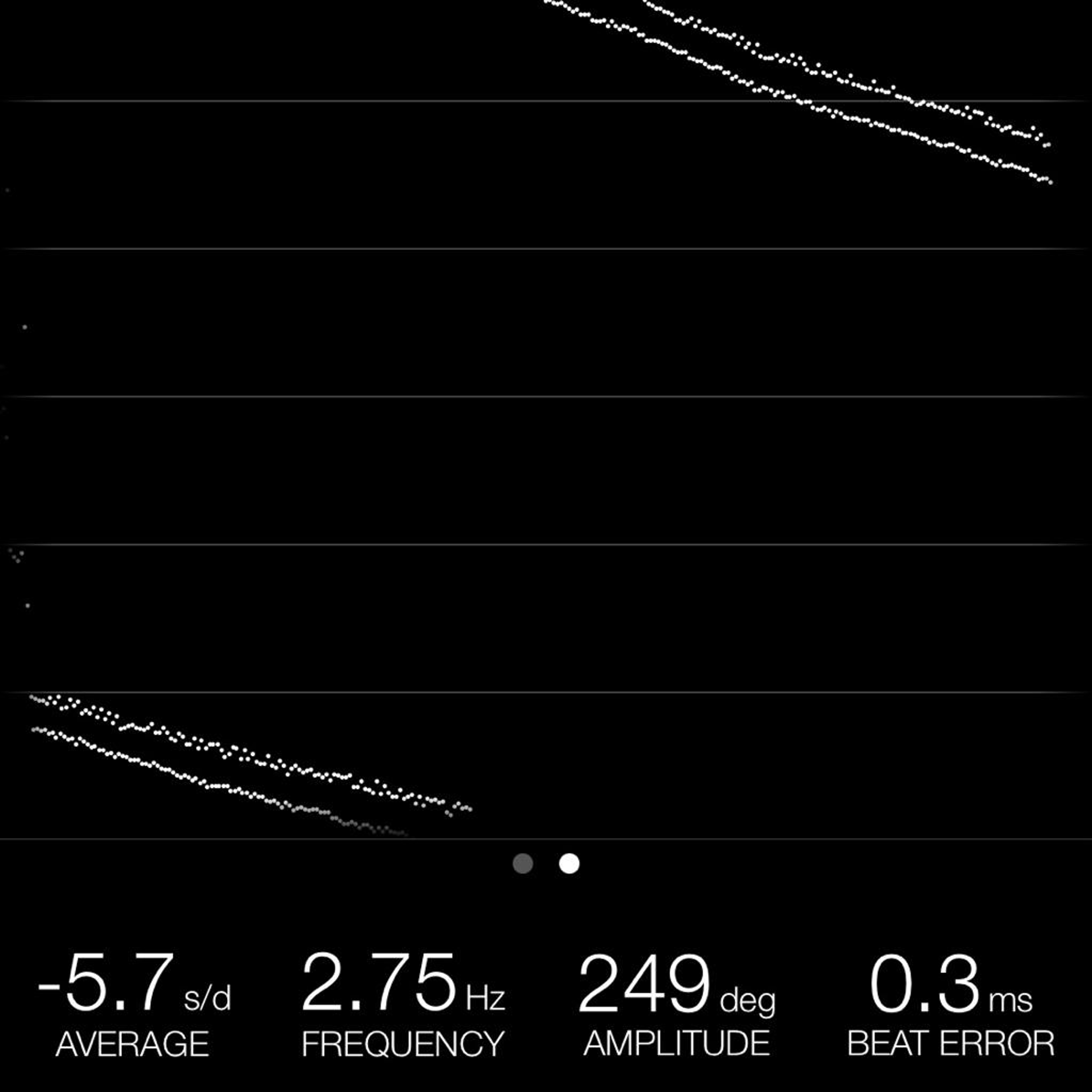This reading was taken (crown down) with a ONEOF Accuracy Boutique Edition timing machine at time of cataloging. It is provided as a courtesy only, and shall not be construed as a warranty or guarantee of any kind. Please refer to our terms and conditions of sale for more information.