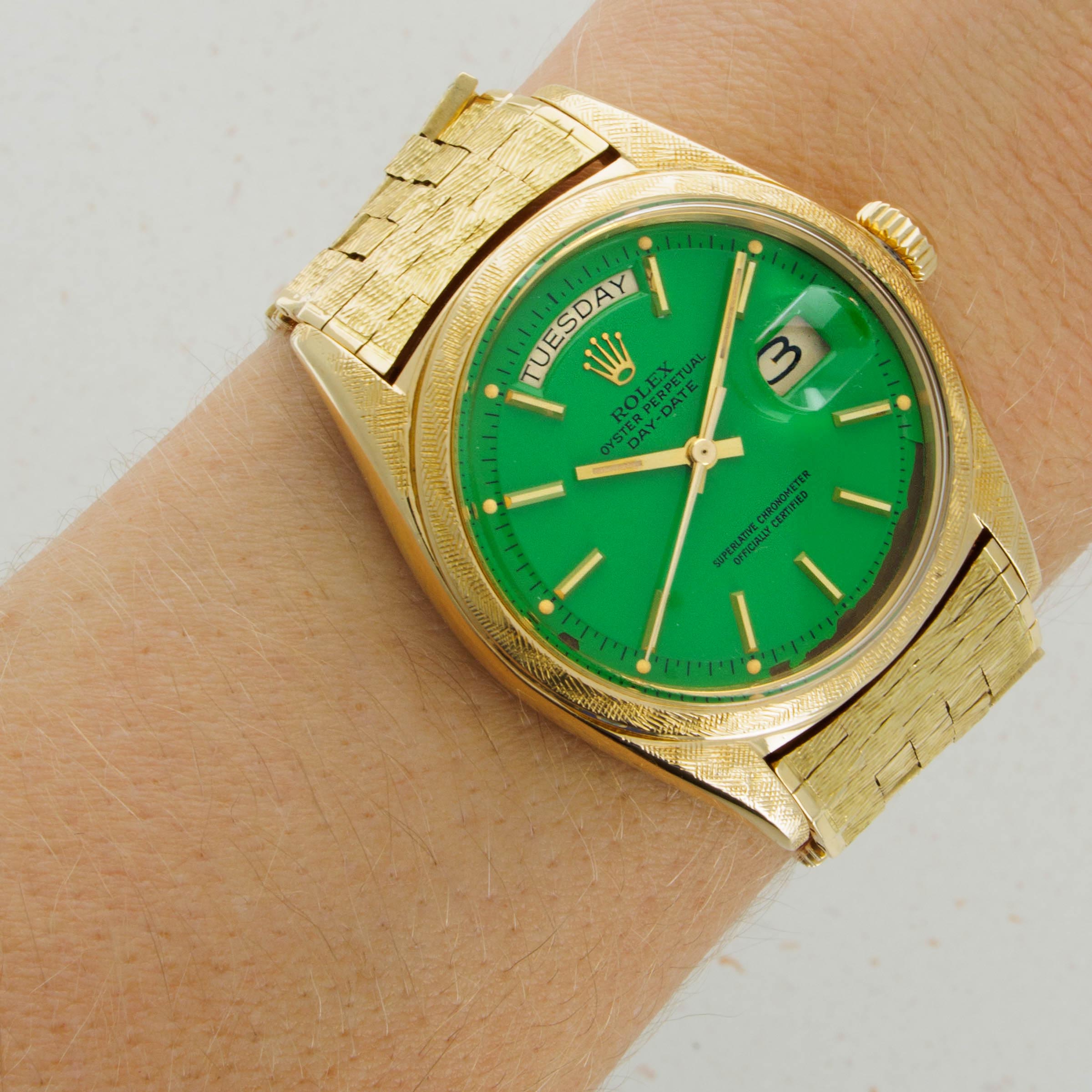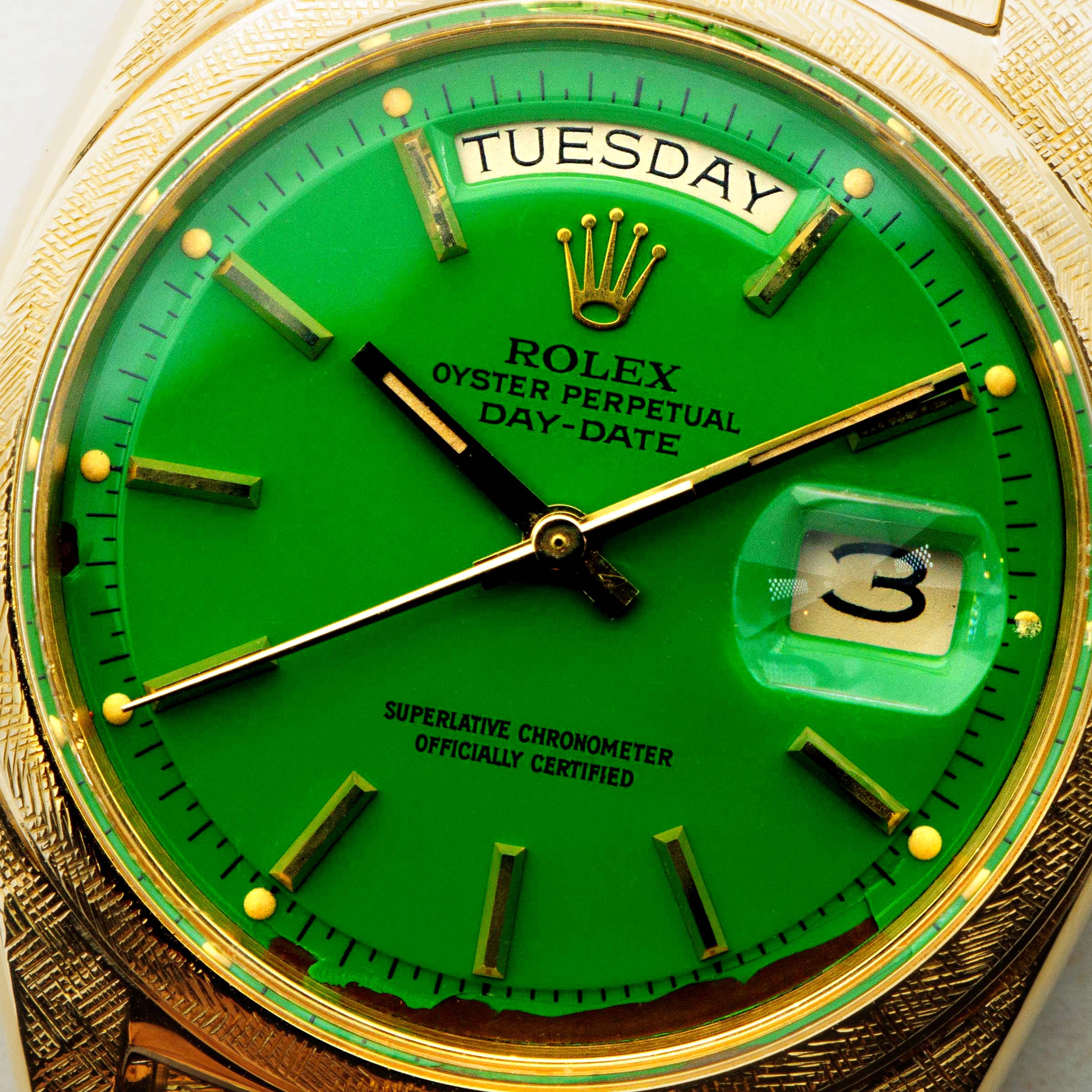 Rolex Day-Date 1806 Green Stella Dial Florentine Finish Brick Bracelet