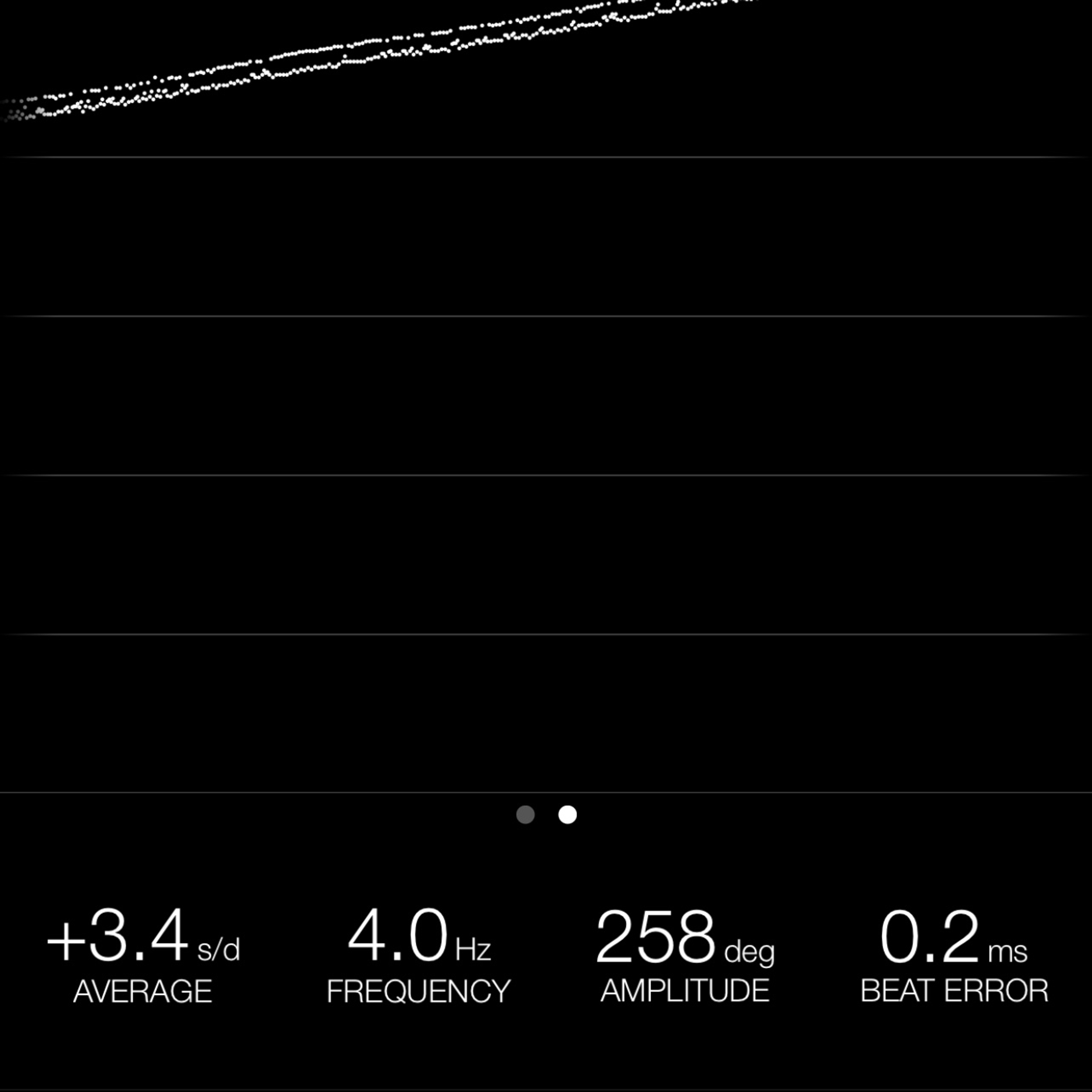 This reading was taken (crown down) with a ONEOF Accuracy Boutique Edition timing machine at time of cataloging. It is provided as a courtesy only, and shall not be construed as a warranty or guarantee of any kind. Please refer to our terms and conditions of sale for more information.