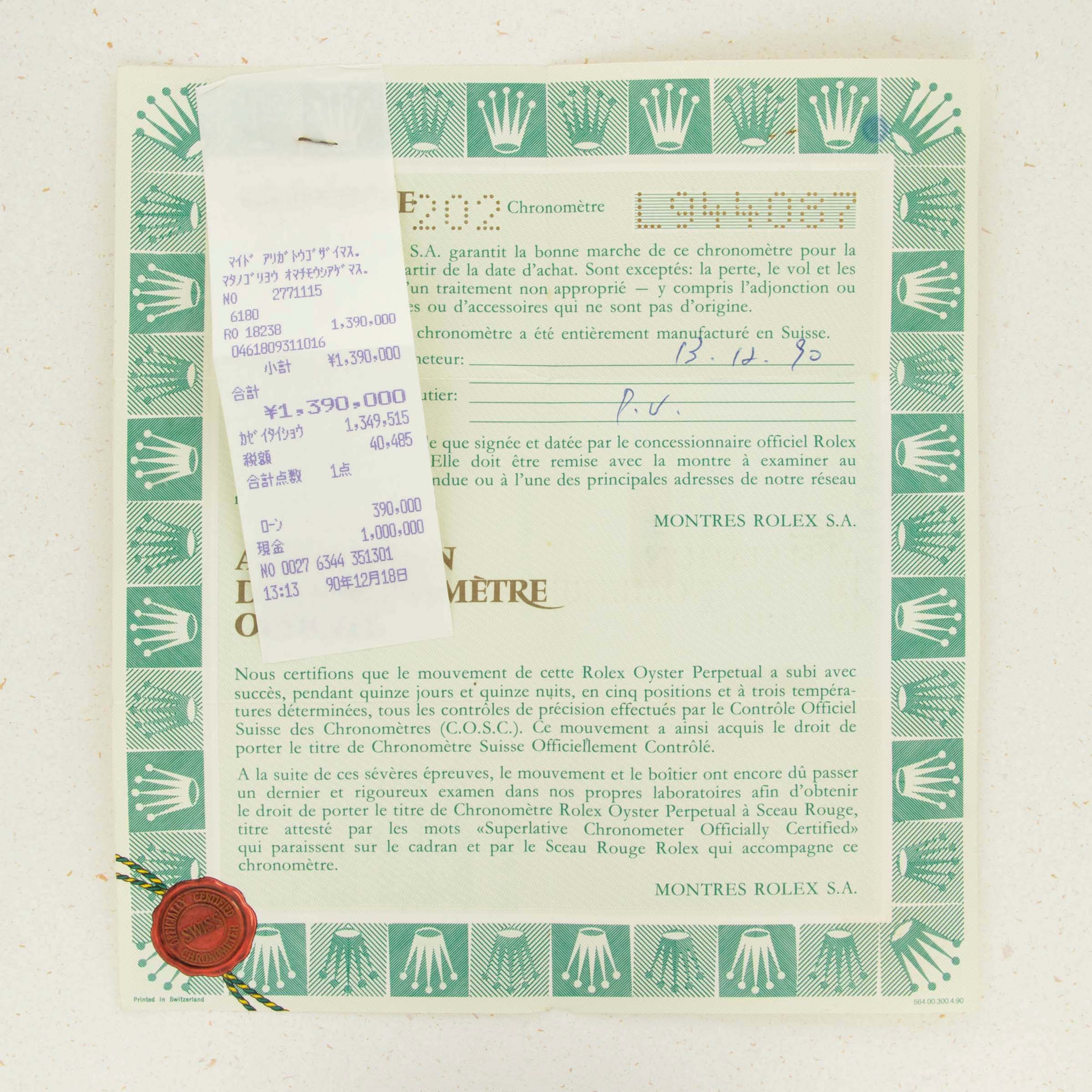 This reading was taken (crown down) with a ONEOF Accuracy Boutique Edition timing machine at time of cataloging. It is provided as a courtesy only, and shall not be construed as a warranty or guarantee of any kind. Please refer to our terms and conditions of sale for more information.