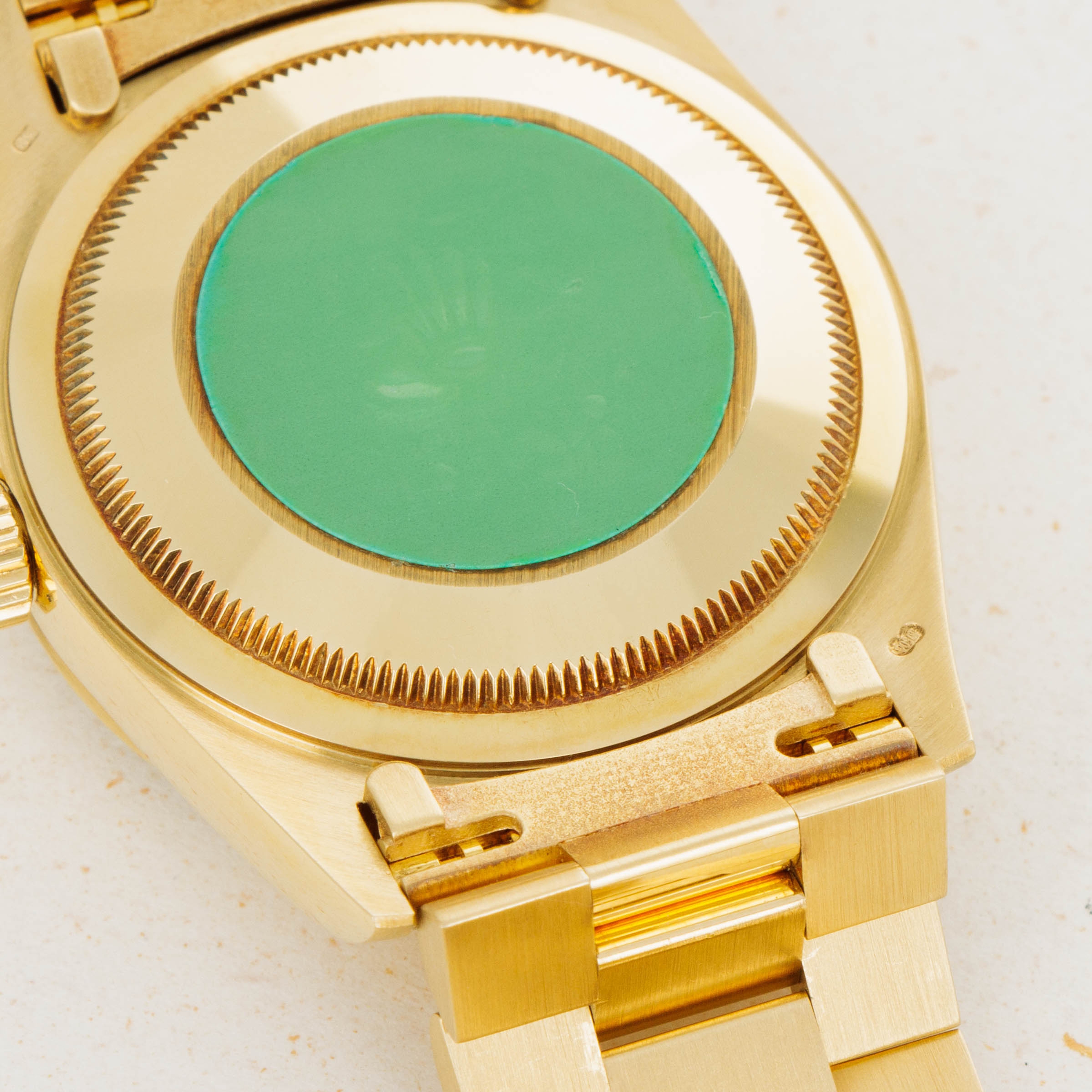 A legendary timepiece with an unrivaled history, the Rolex Day-Date has earned its place as "The Ultimate Watch of Prestige" from its decades on the wrists of the world's most influential people. Released in 1956, the Day-Date quickly became synonymous with luxury, prestige, and exclusivity thanks to being the watch of choice for the world's athletes, visionaries, and world leaders alike. Only ever constructed of precious metals, the Day-Date's aesthetic is that of sheer elegance and grace. Aside from the beautiful array of dial options that have been available over the decades, the Day-Date's most iconic piece of design is its three-piece "Presidential" or "President" bracelet. Forming the bedrock of its design, the Presidential bracelet has become synonymous with Rolex's flagship collection and their desire to create the very best and most iconic watches that the world has ever seen. With its timeless design and inescapable impact on horology, the Day-Date stands as a vivid reminder of just how successful they have been in realizing that very mission.