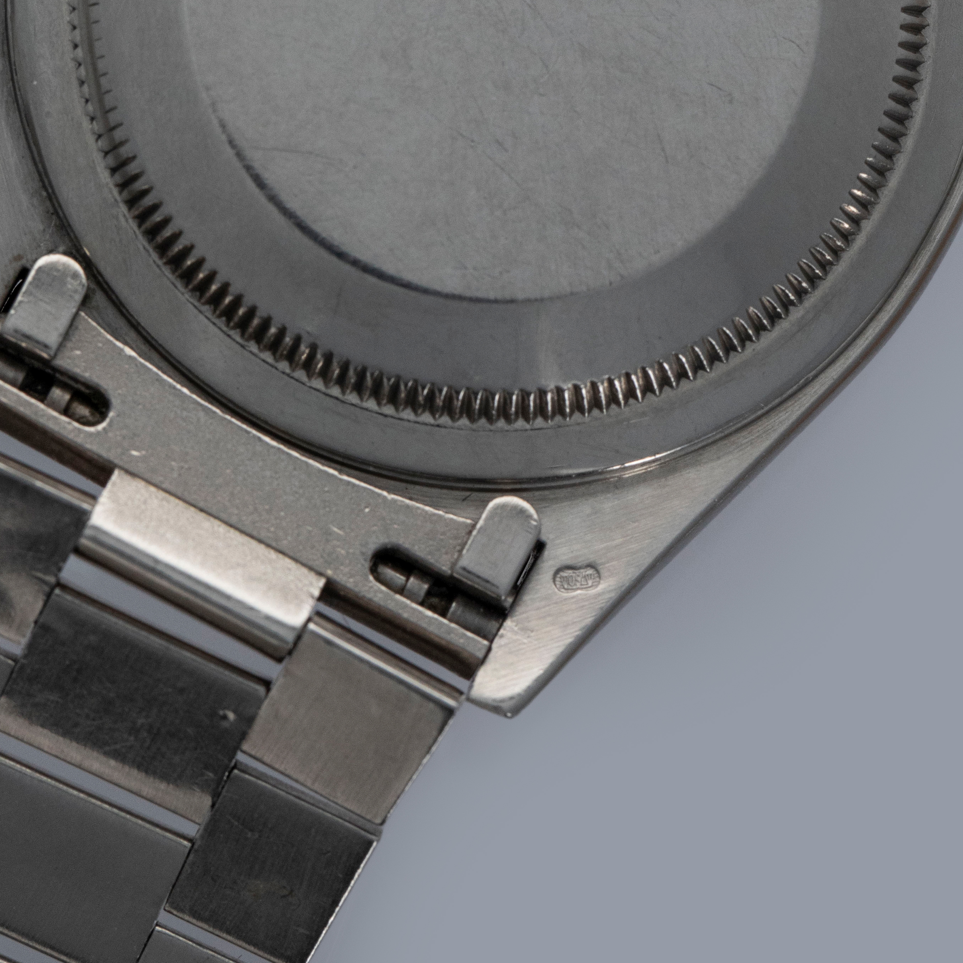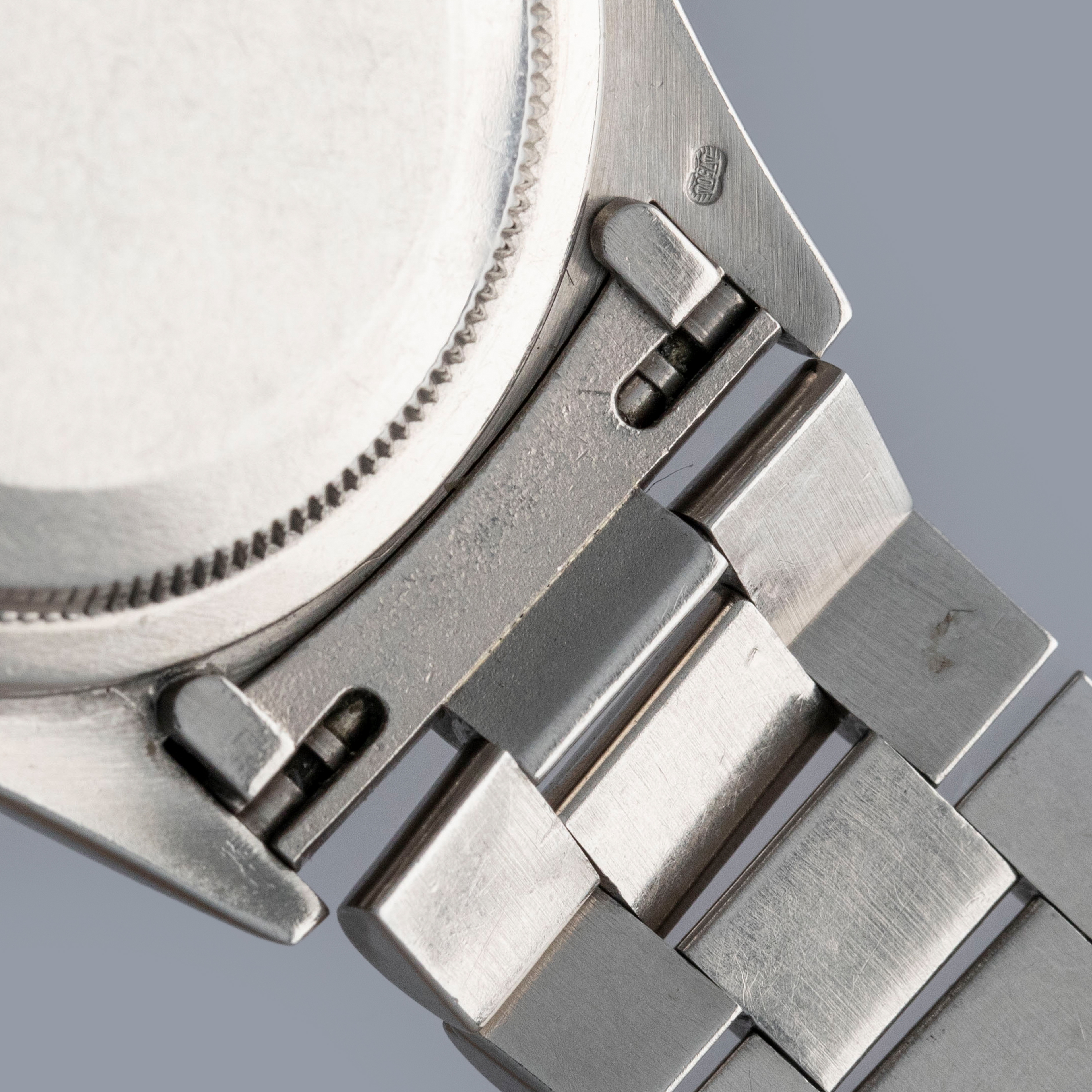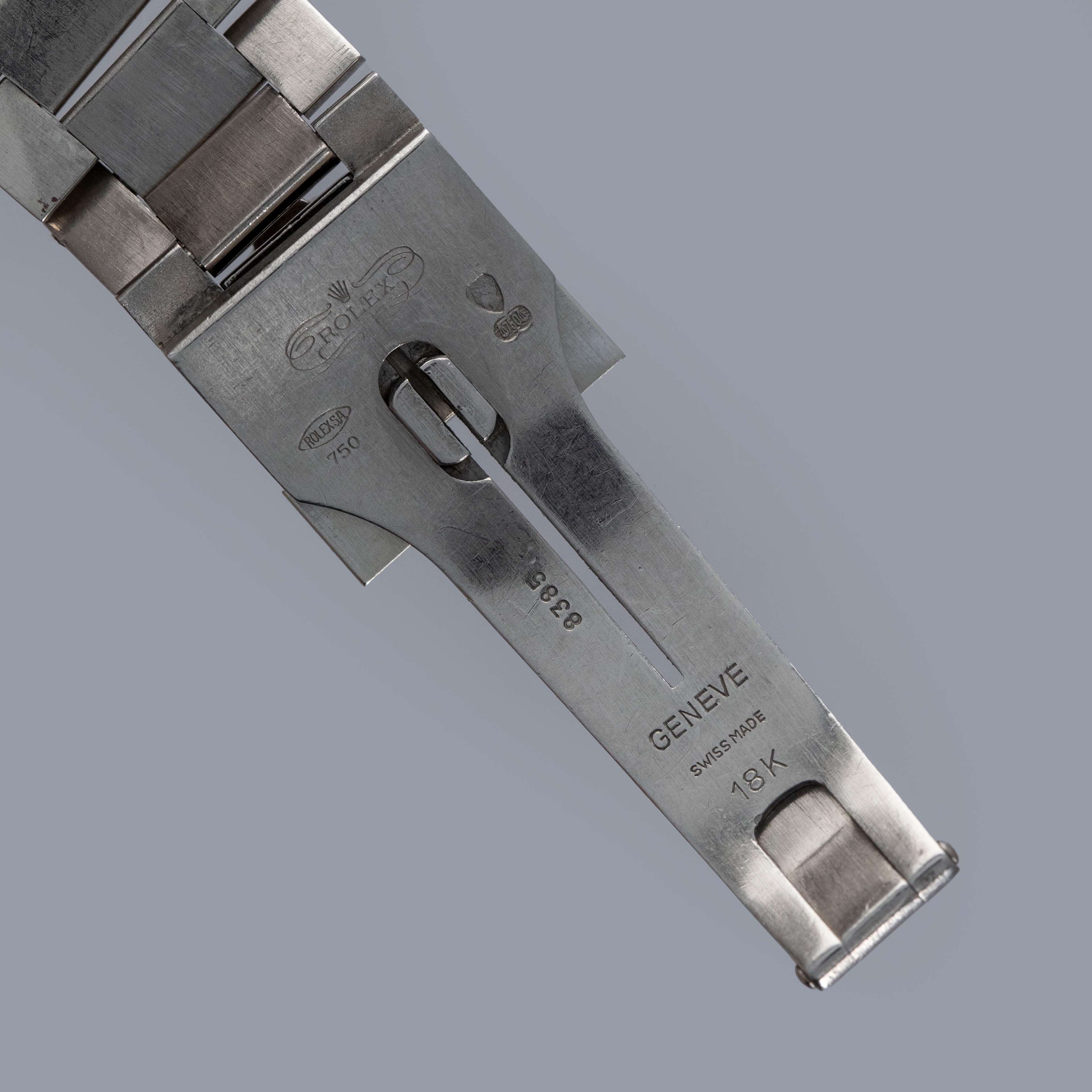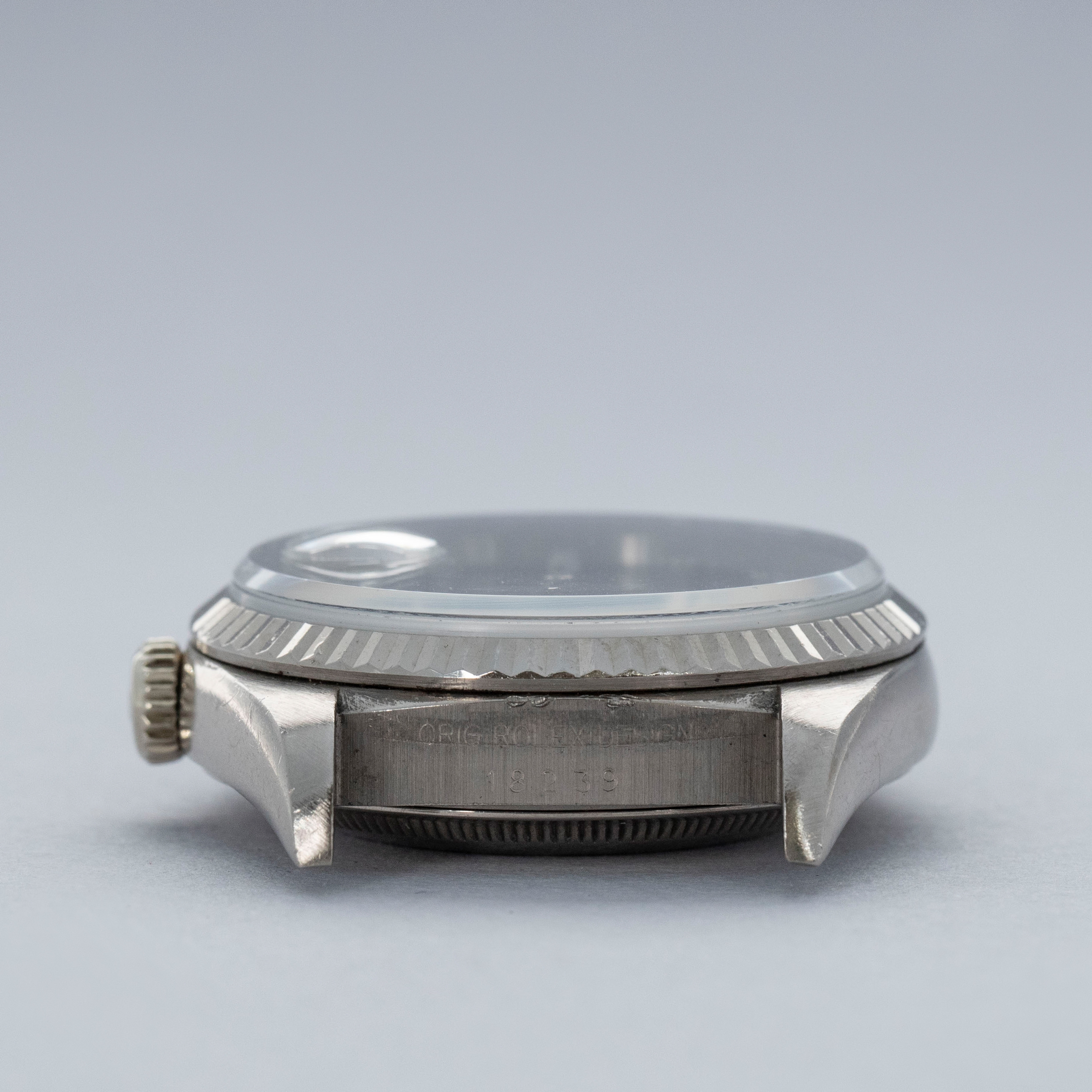 Watch is in overall very good condition. The white gold case shows numerous surface scratches and nicks, while the hallmarks on the backs of the lugs remain well defined. The bezel shows scratches with some nicks to the peaks, and the winding crown displays noticeable wear. The dial shows degradation across the surface with some lume plots missing. It is fitted with a white gold President bracelet with concealed clasp showing scratches and moderate play between the links. The bracelet is fitted with 24 links, 5 of which are removable, and fits approximately a 7¾” wrist.