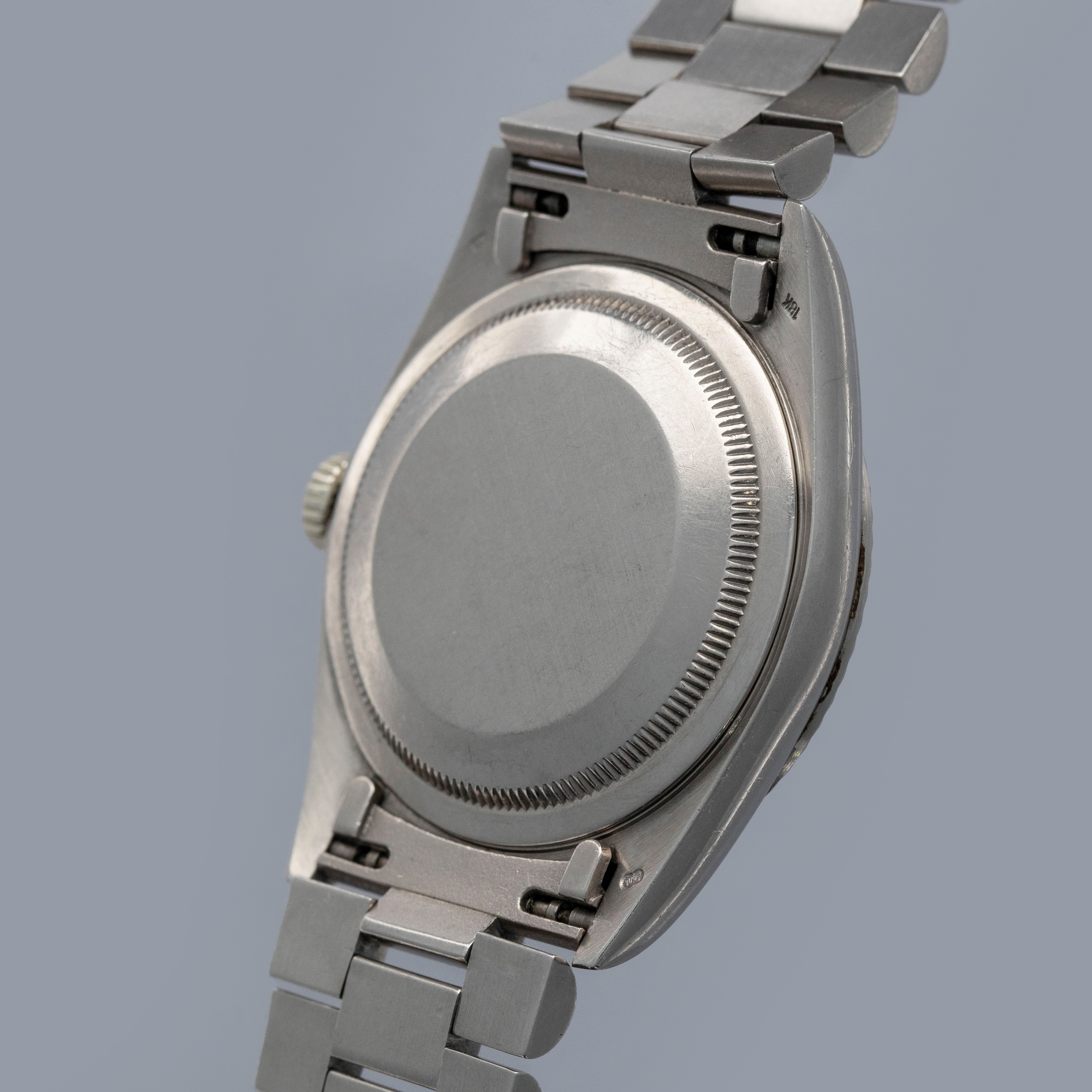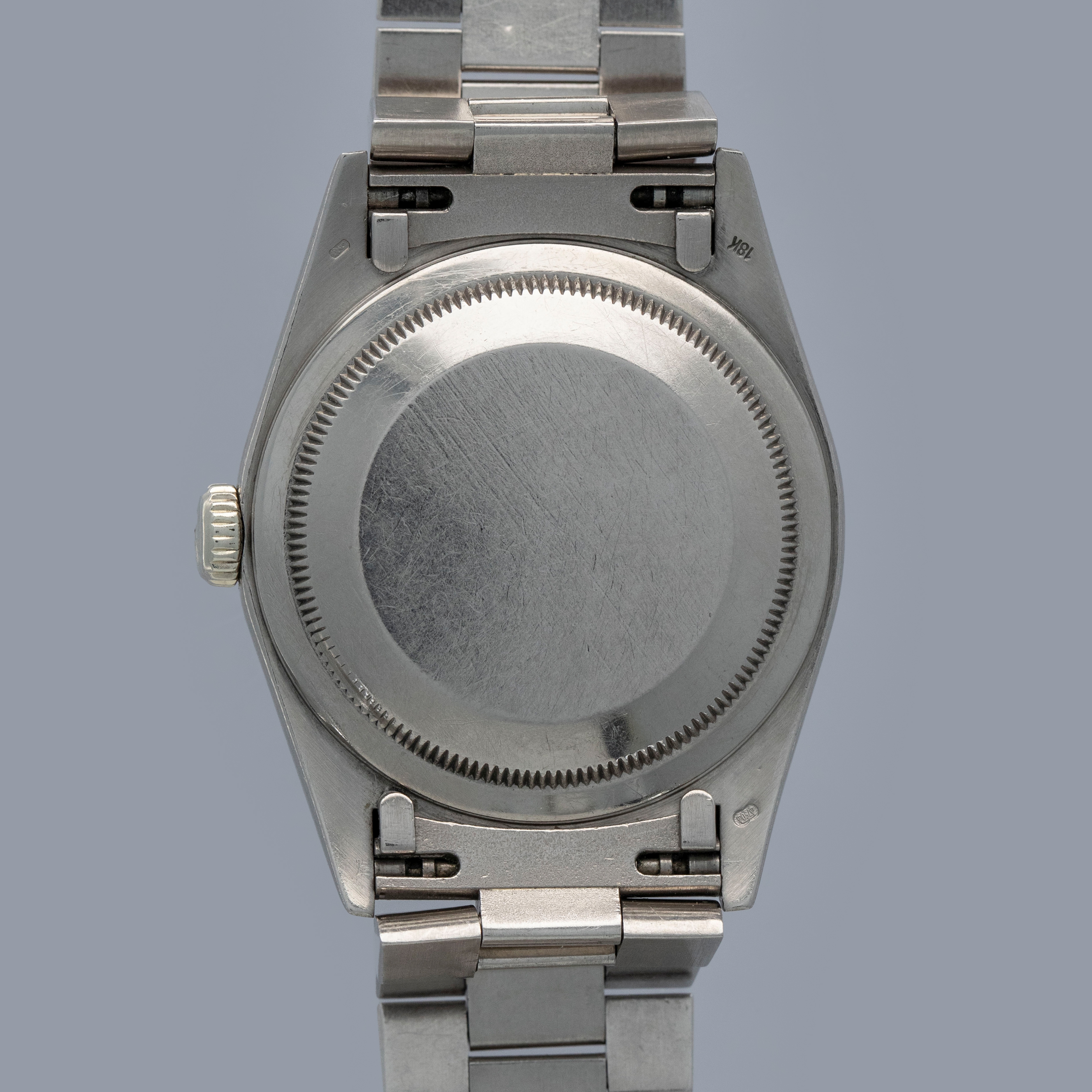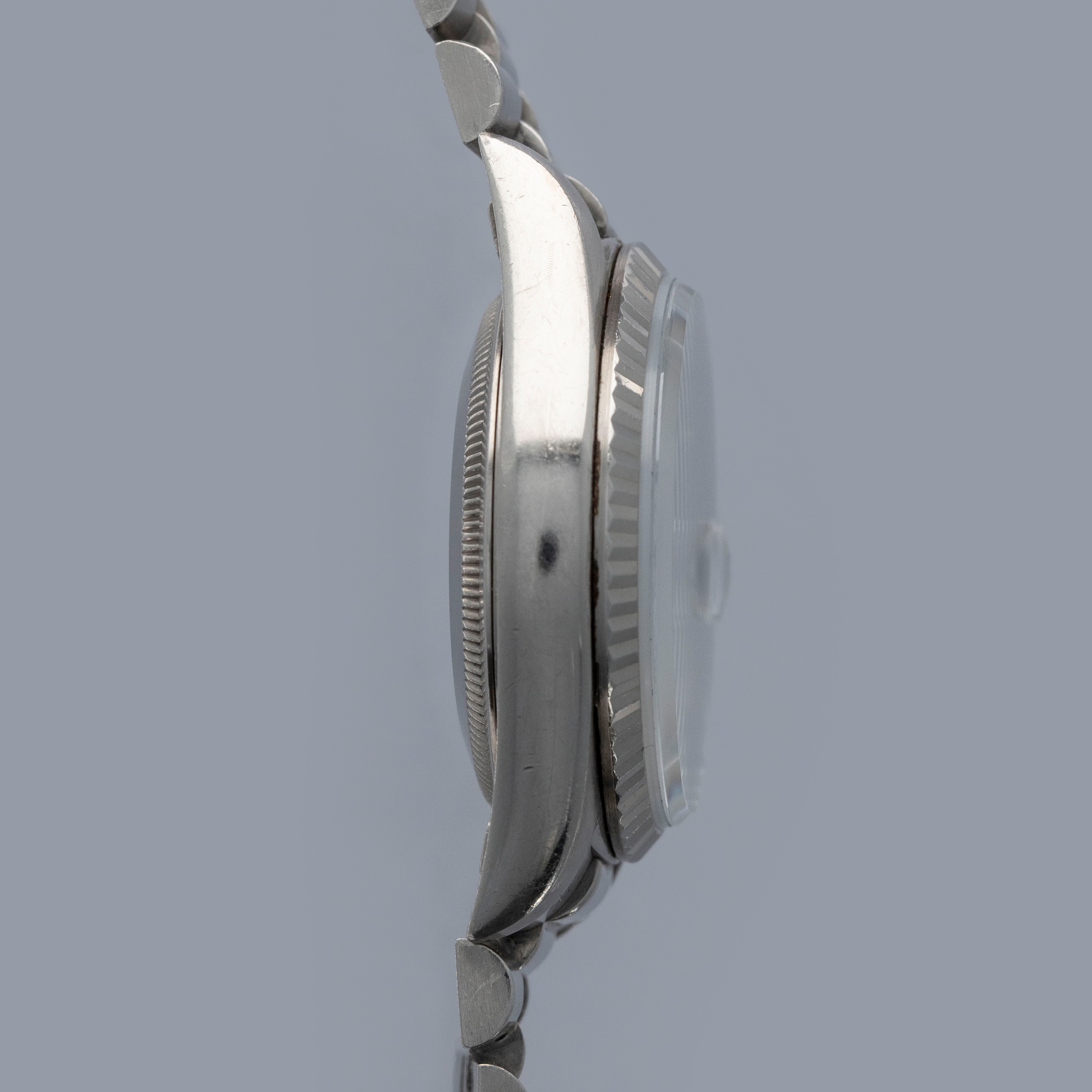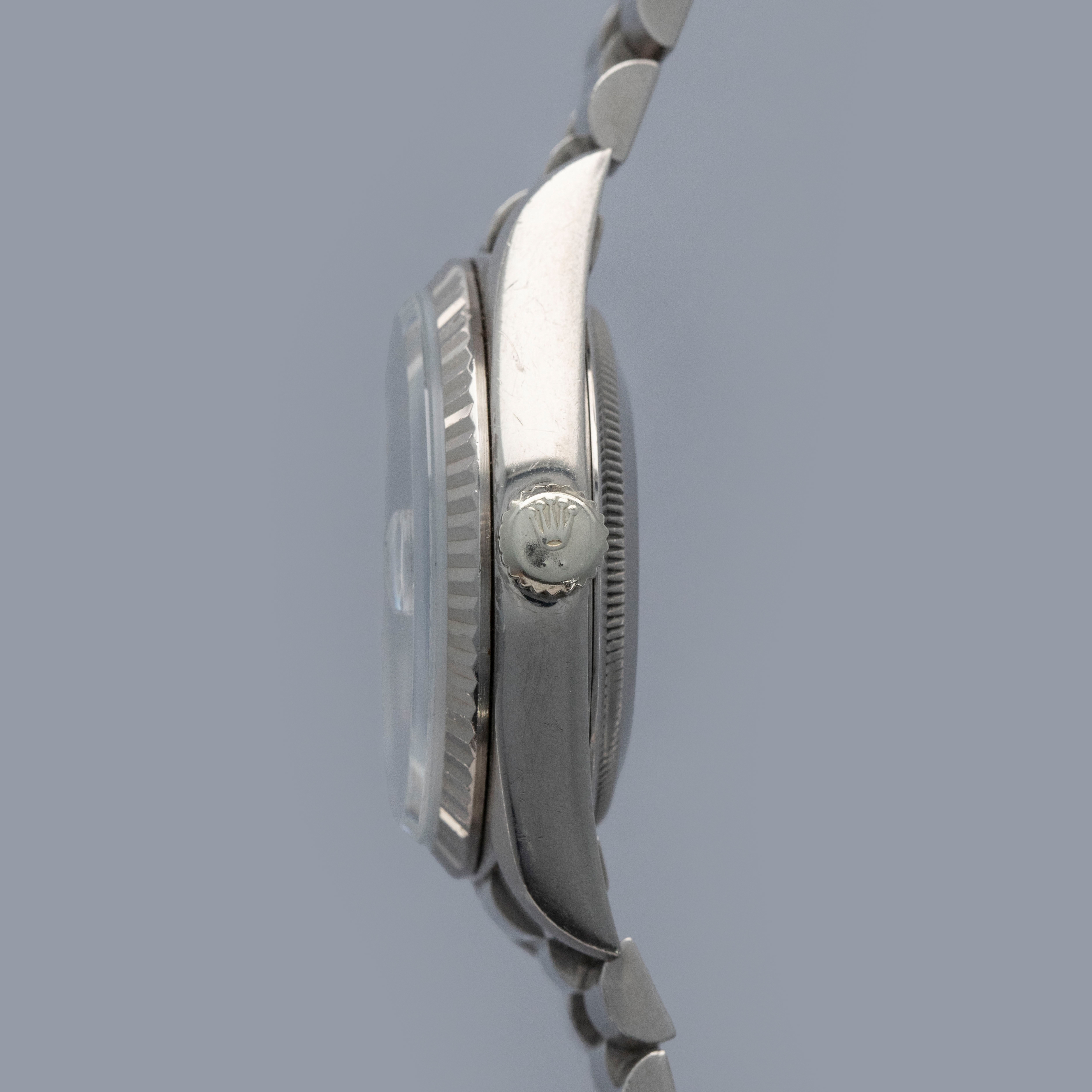A wonderfully executed piece of exuberant Rolex design, this example's faded blue dial serves as the perfect backdrop for its bright 18kt white gold construction and diamond-set hour markers.