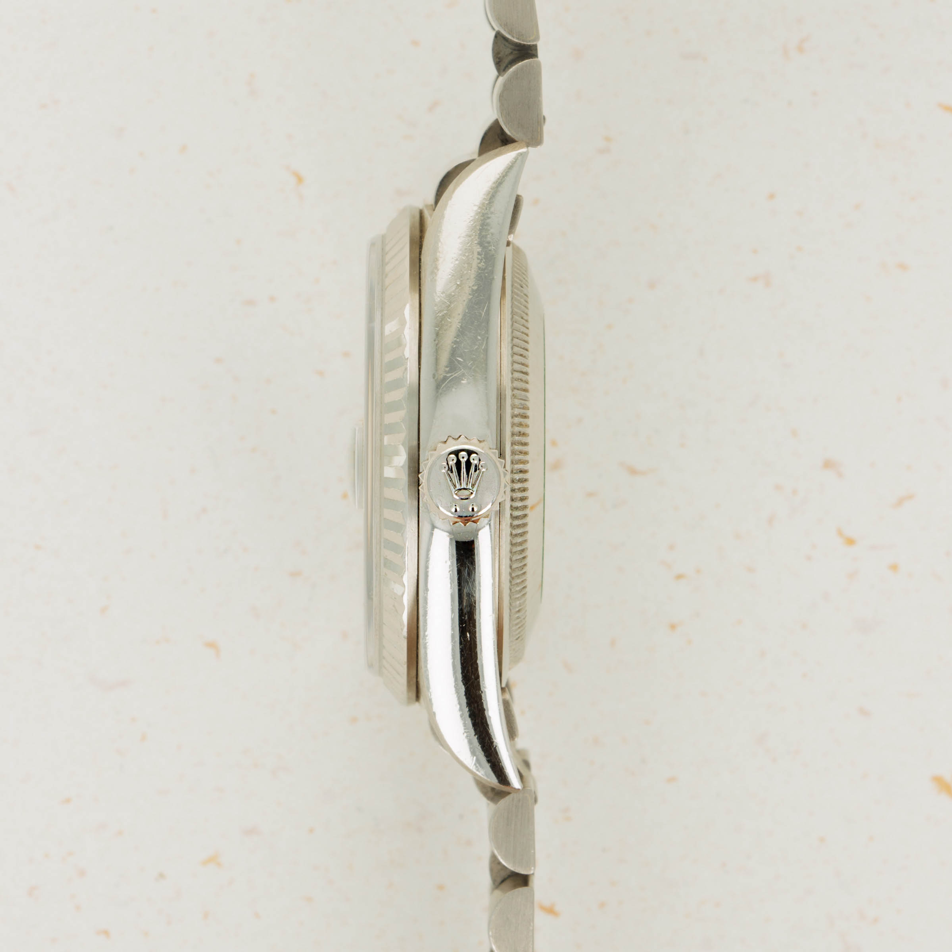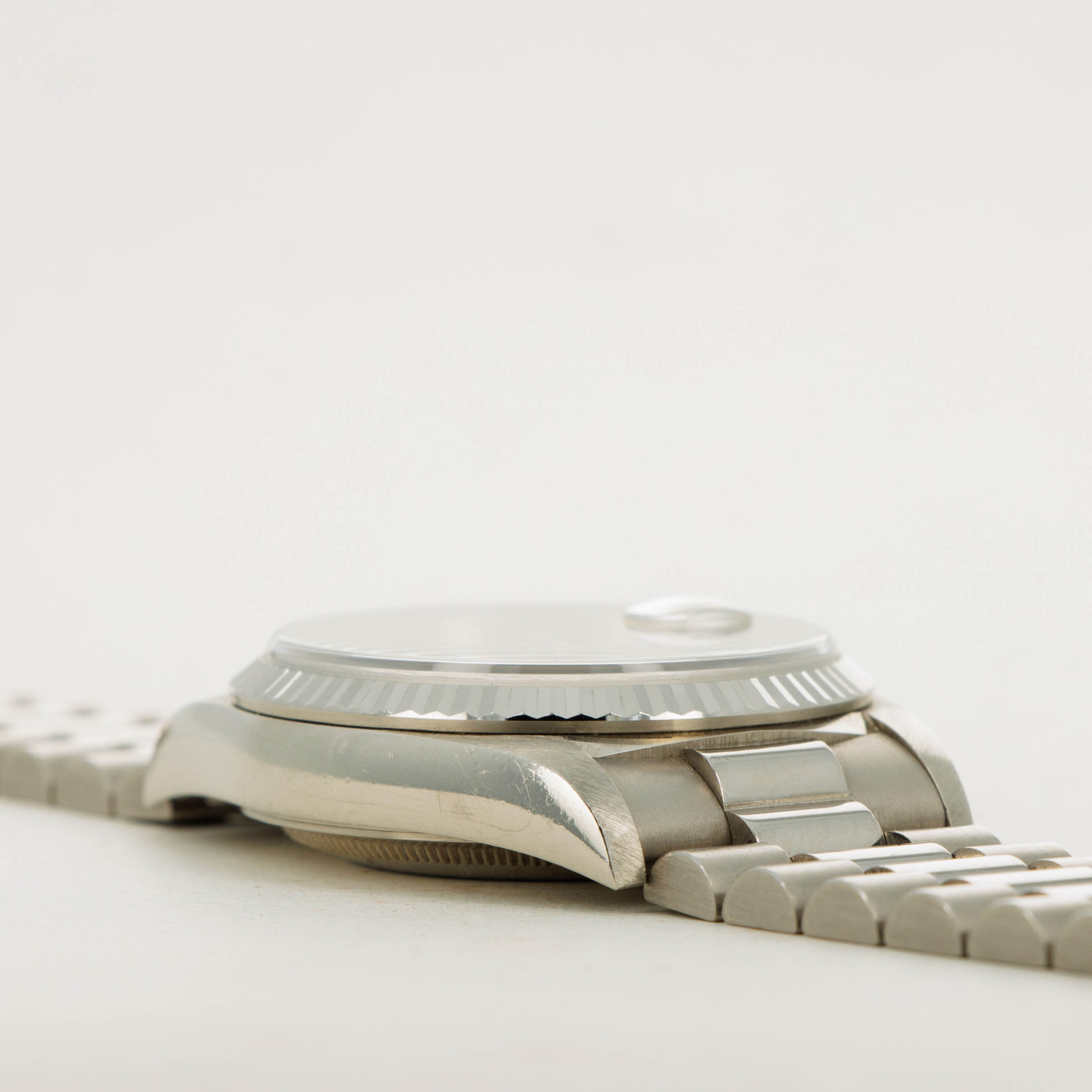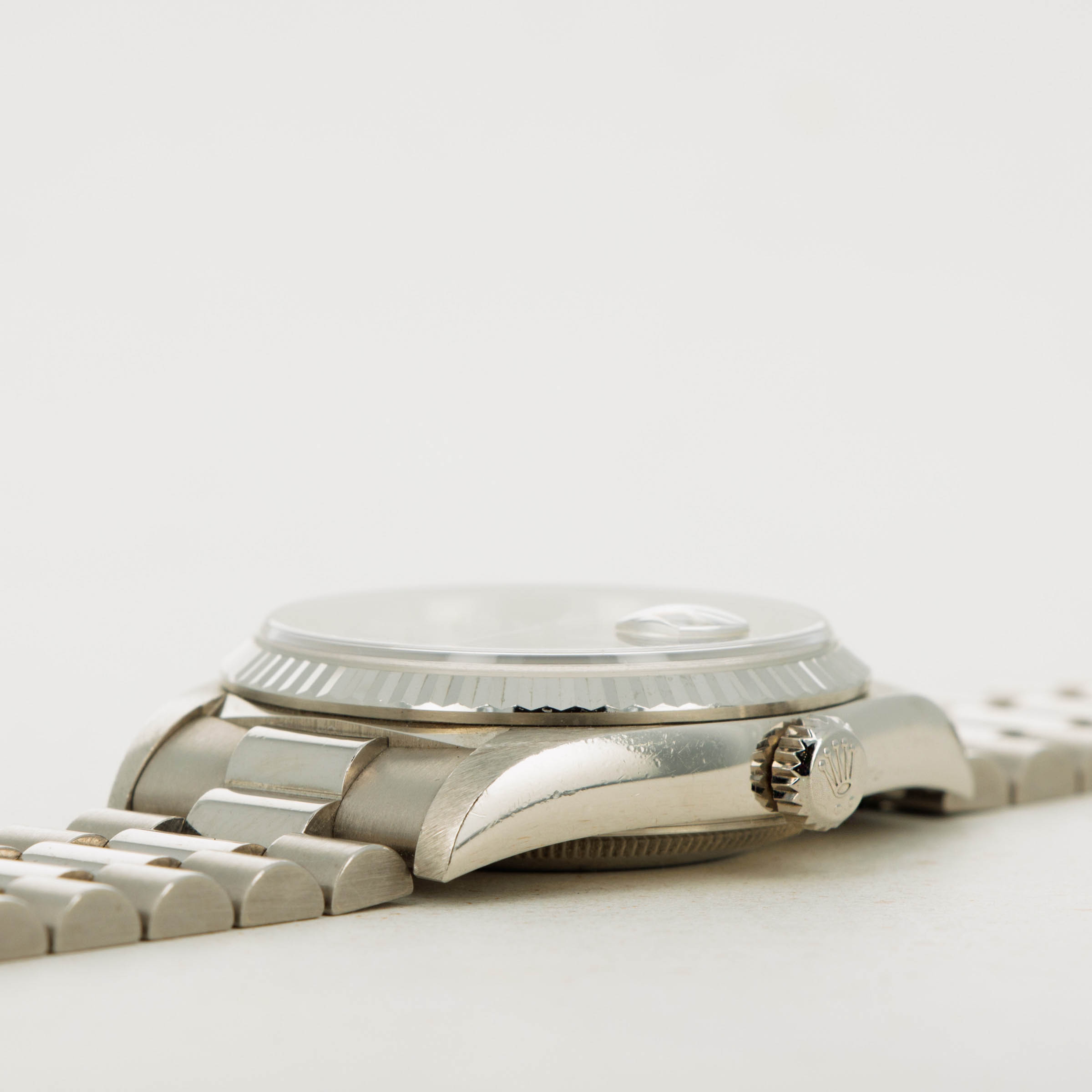 Boasting the Day-Date's presidential bracelet and Rolex's iconic fluted bezel, this example's 18kt white gold construction beautifully enhances the already opulent design of its diamond-set dial.