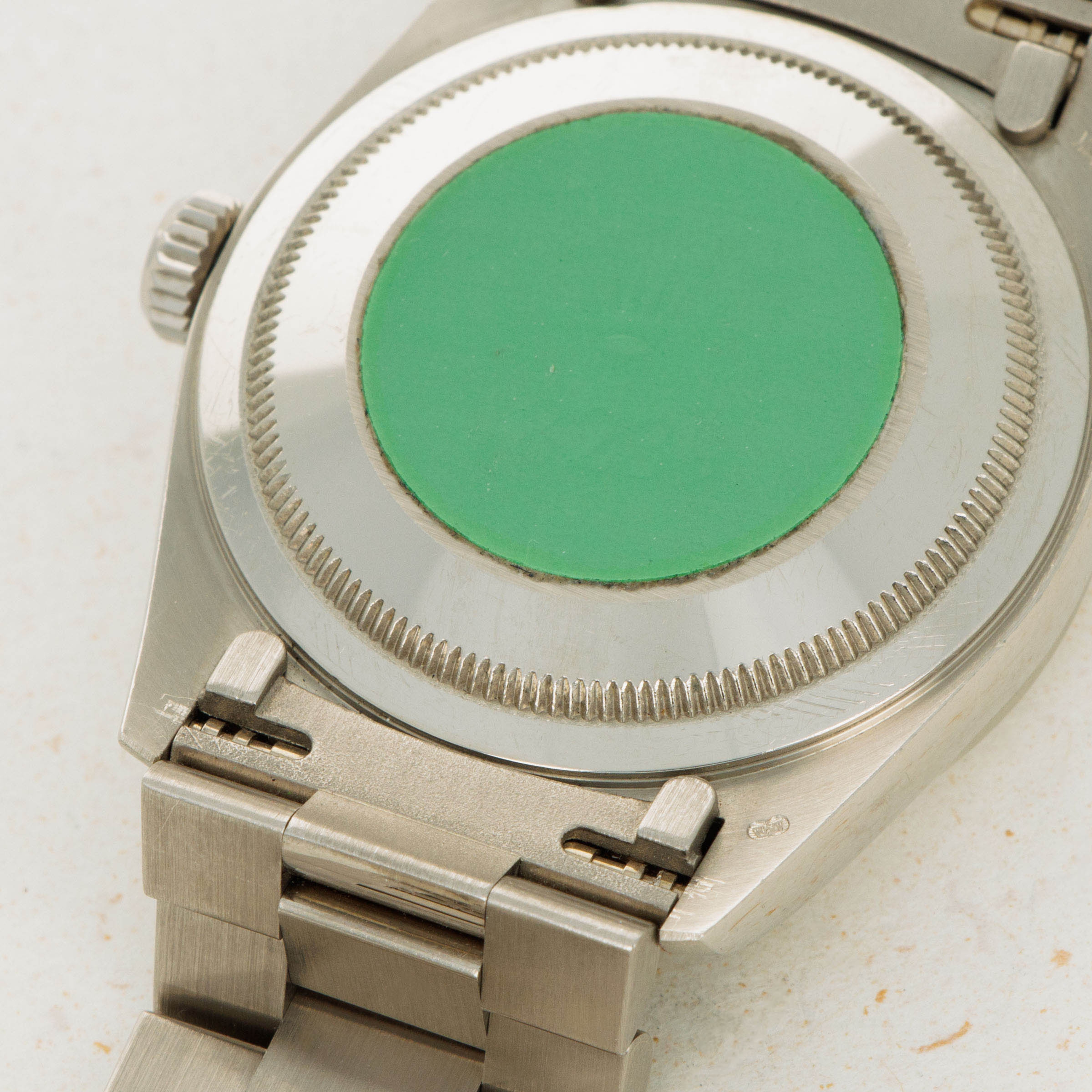 Watch is in near-mint overall condition. Watch exhibits minor surface wear along case and bracelet, with most wear being visible on polished case sides. The bezel is sharp and has only minor wear on the edge. The lapis lazuli dial with diamond indexes is free from chips or cracks, and is in near-mint condition. The bracelet has 22 links total, 3 of which are removable. There is little stretch.