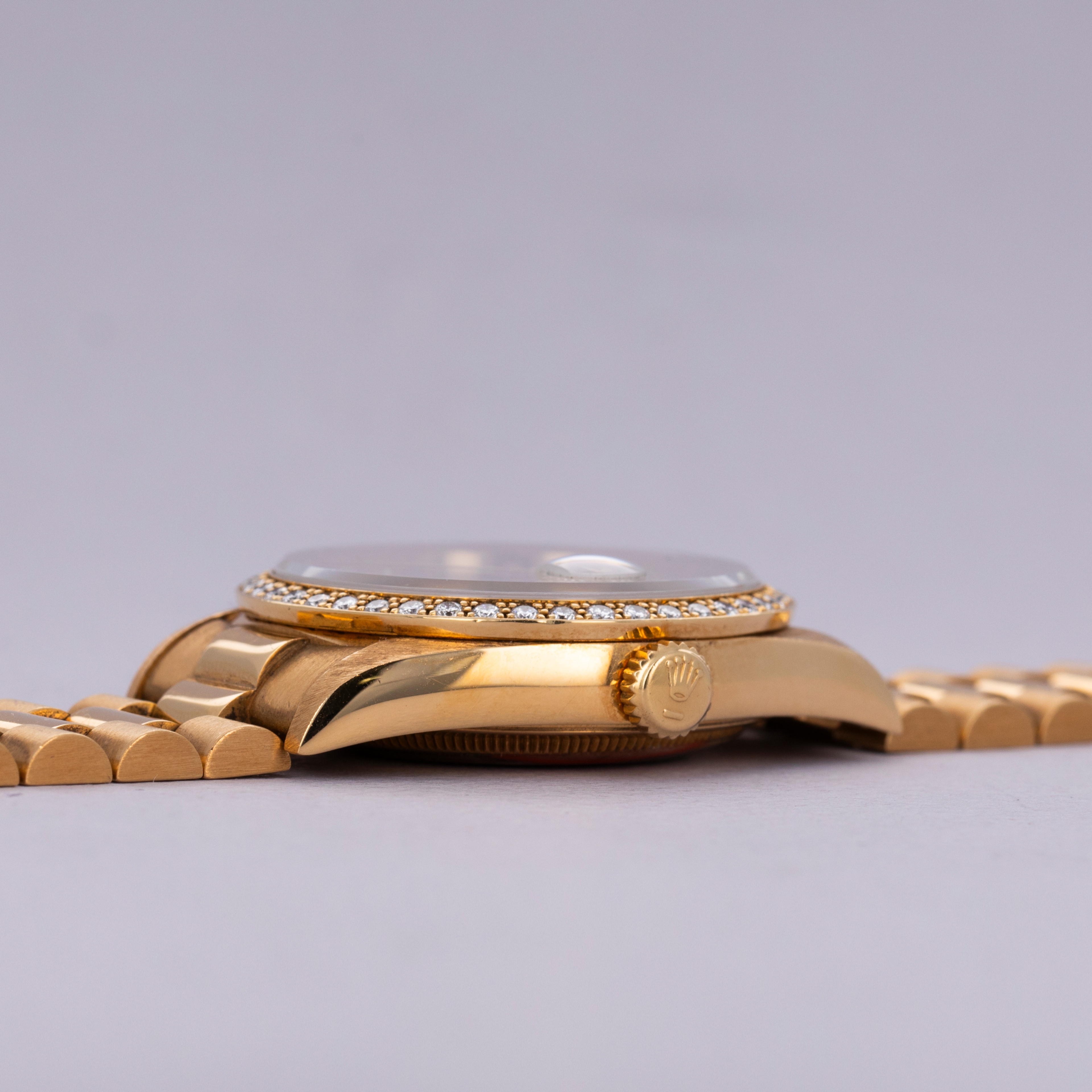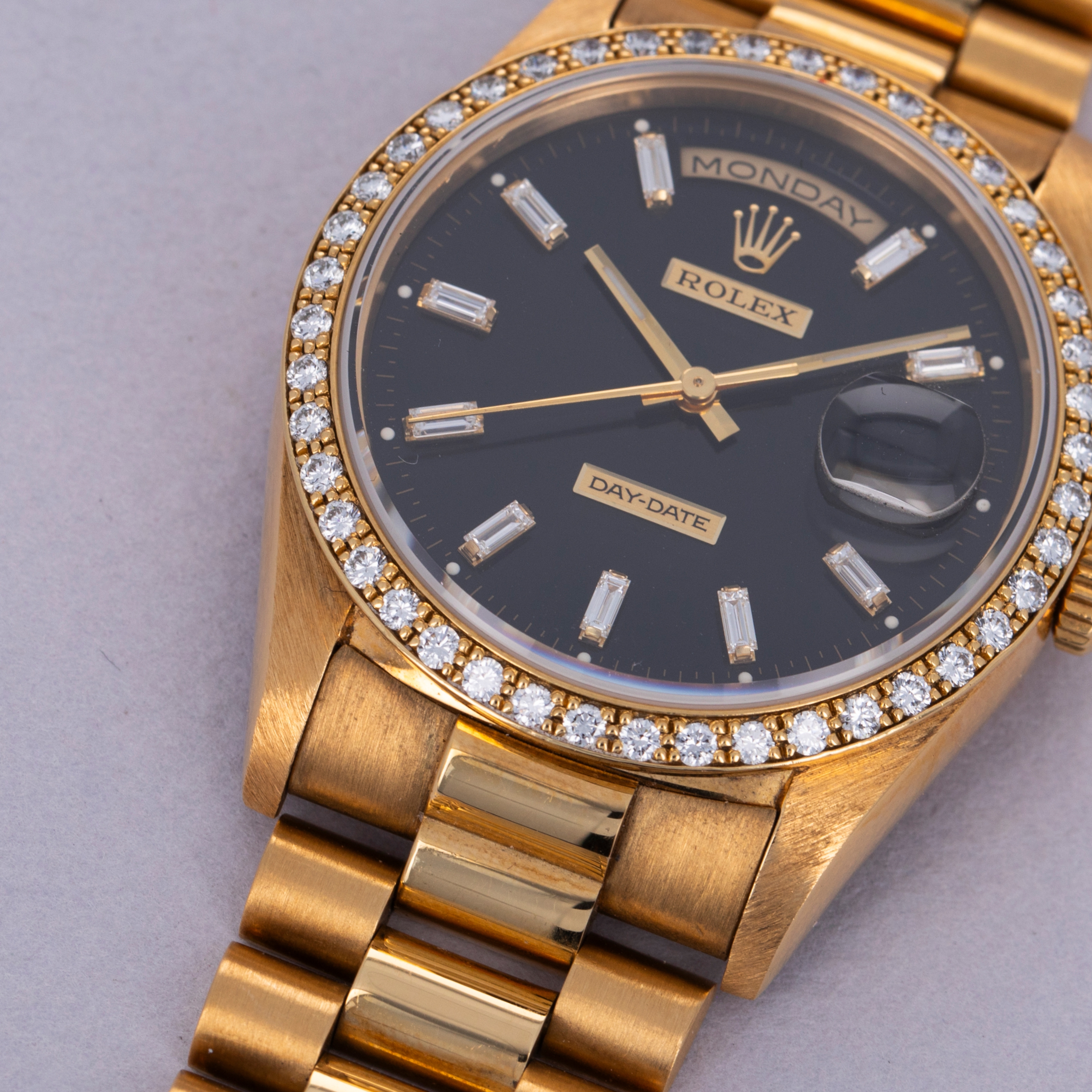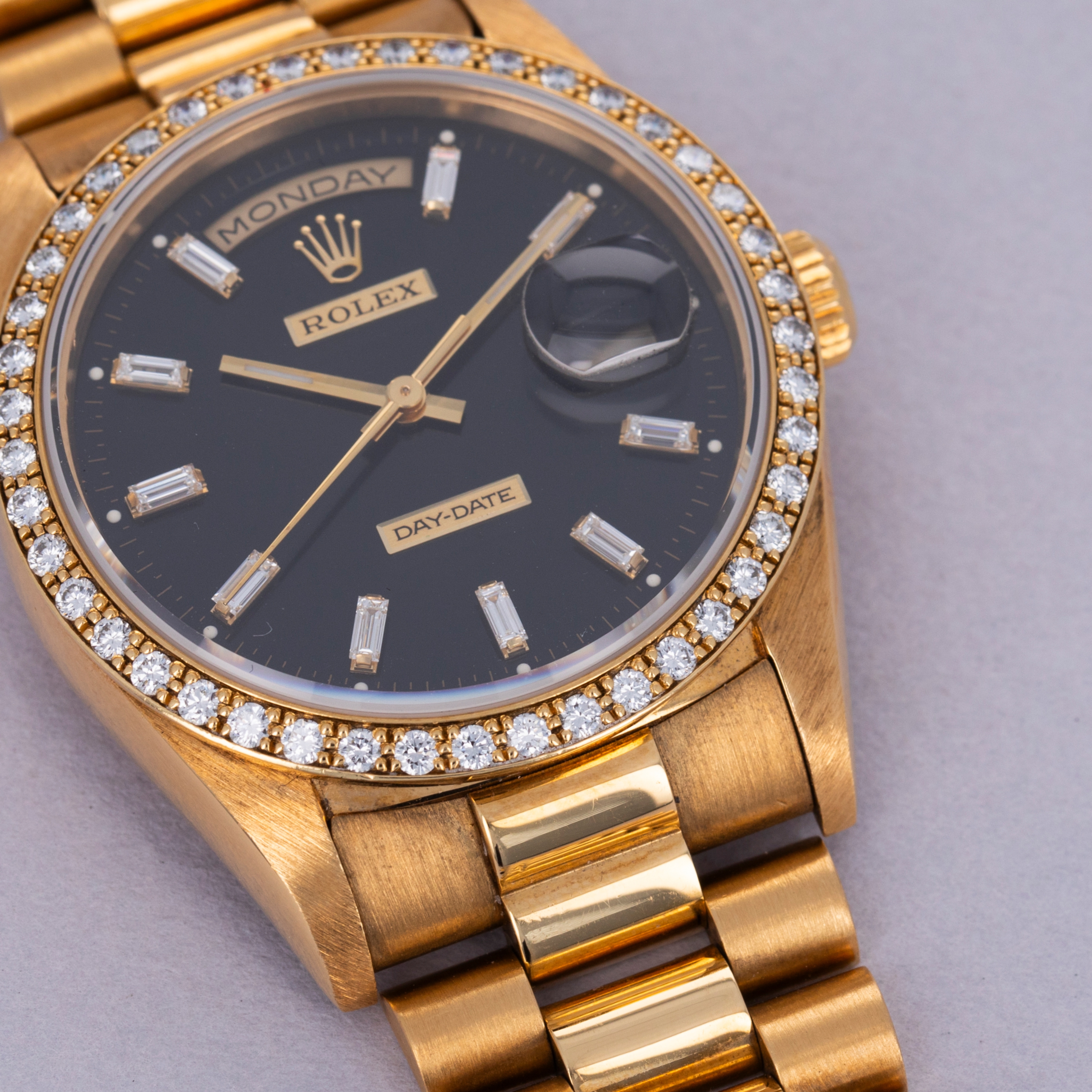 Offered as part of Rolex's incredibly prestigious Crown Collection, this example boasts a diamond-set bezel that serves to top off the Presidential's construction with a total sense of opulence and exuberance.