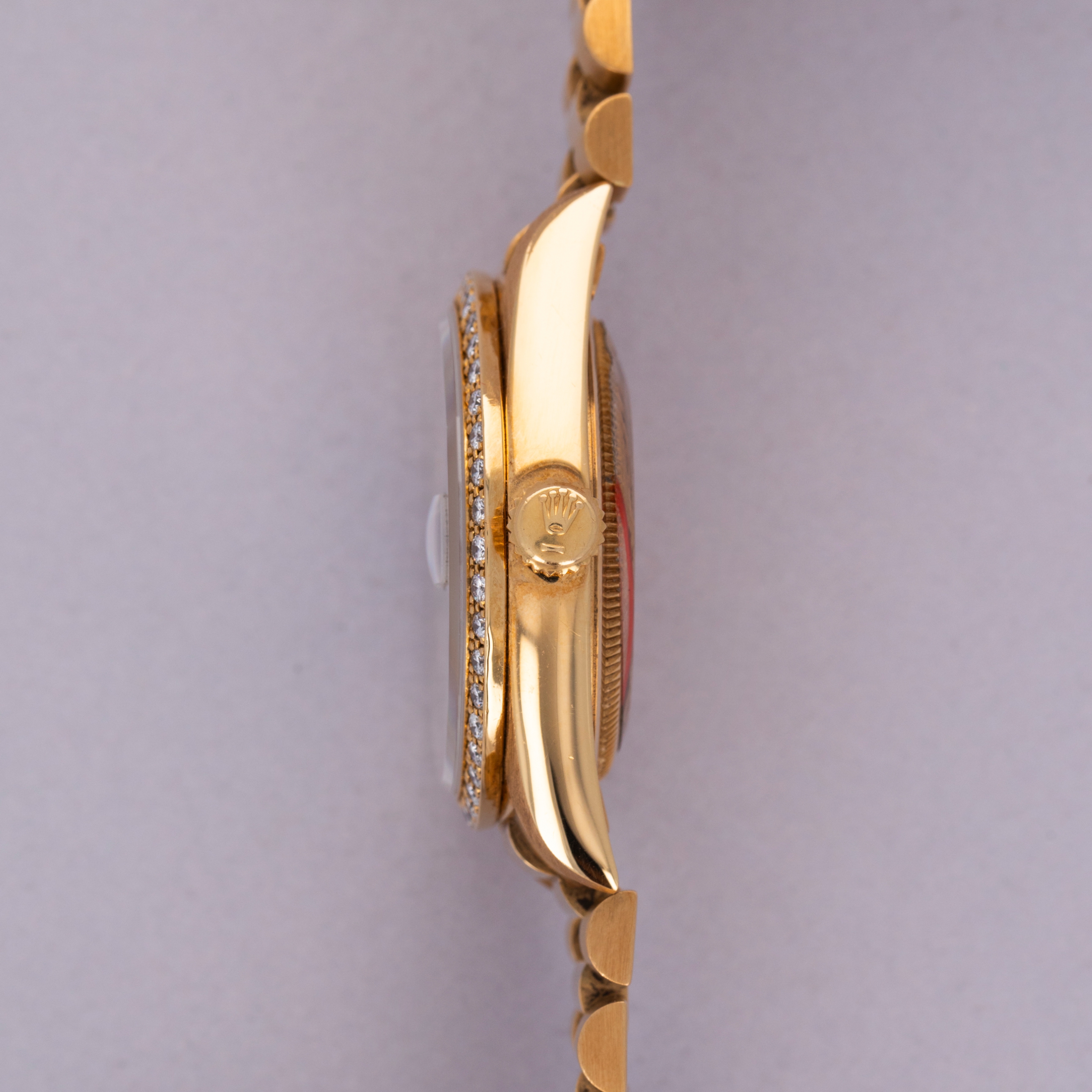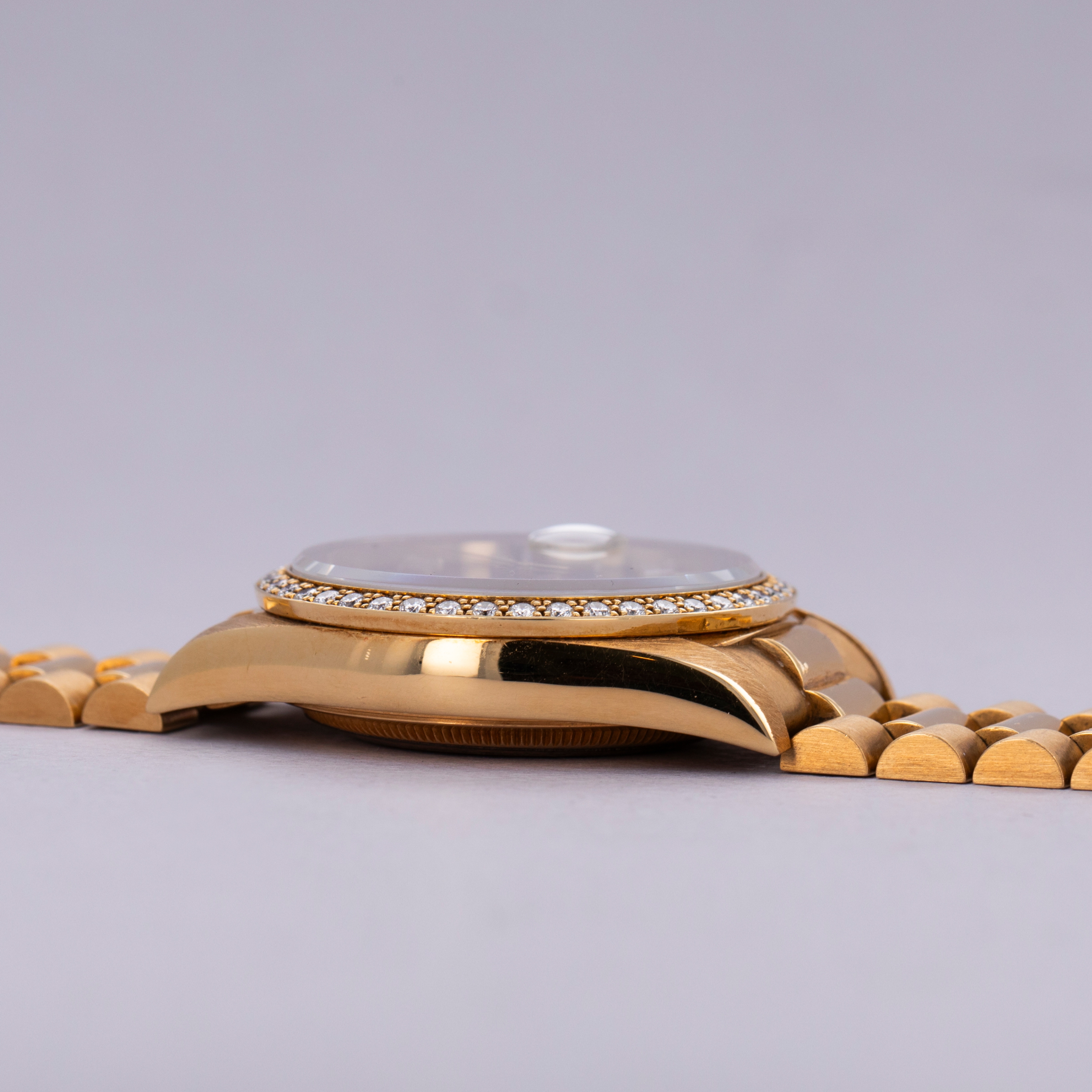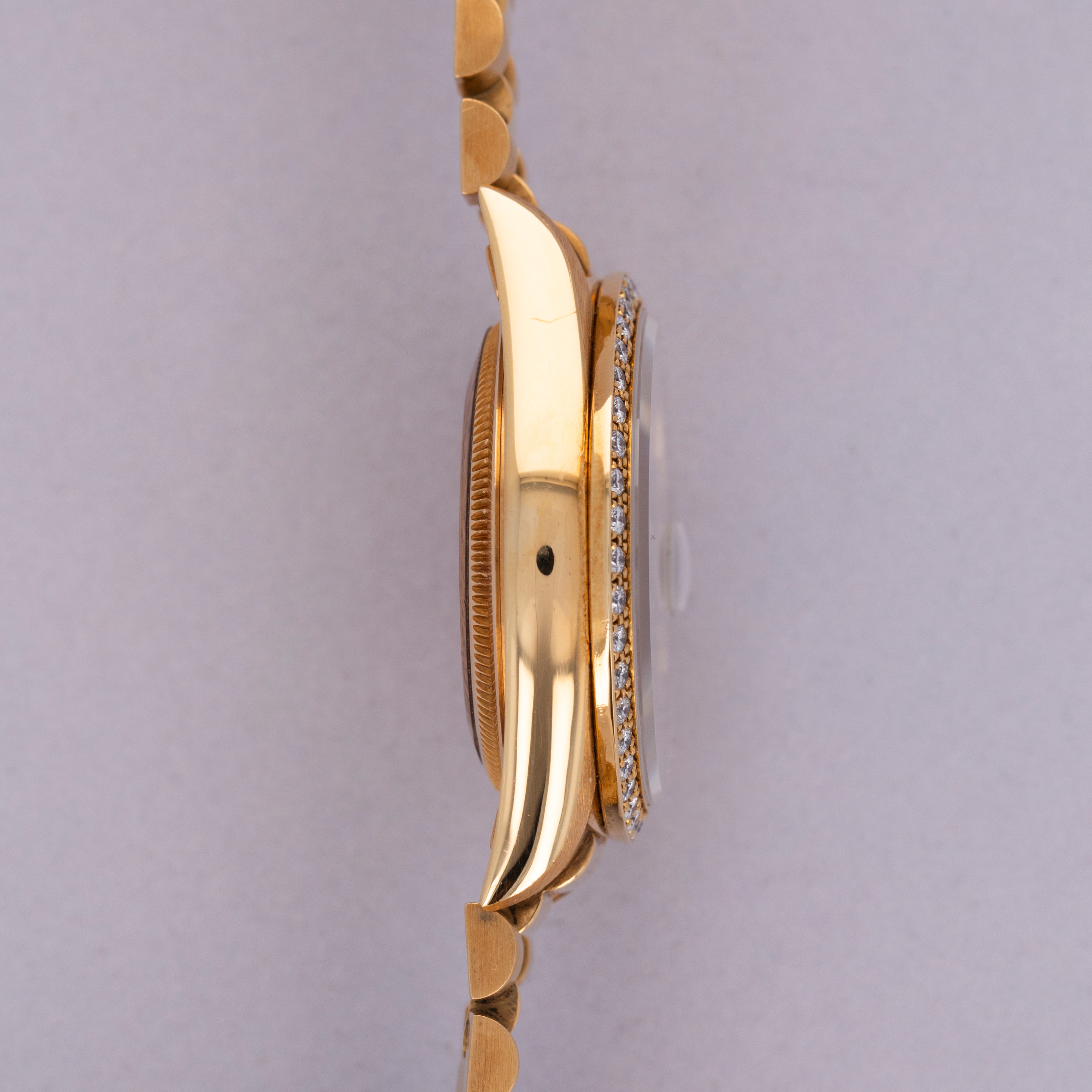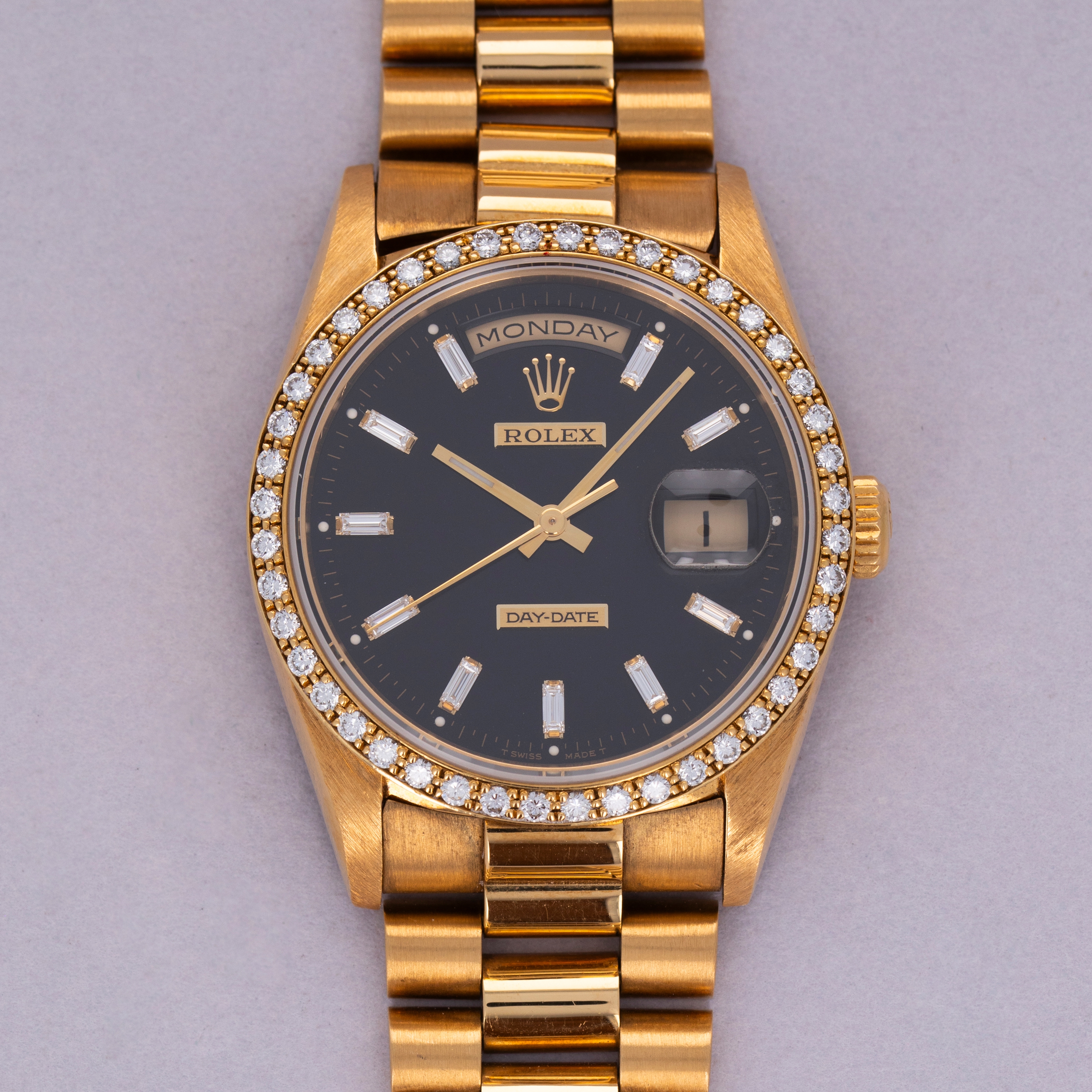 Offered as part of Rolex's incredibly prestigious Crown Collection, this example boasts a diamond-set bezel that serves to top off the Presidential's construction with a total sense of opulence and exuberance.