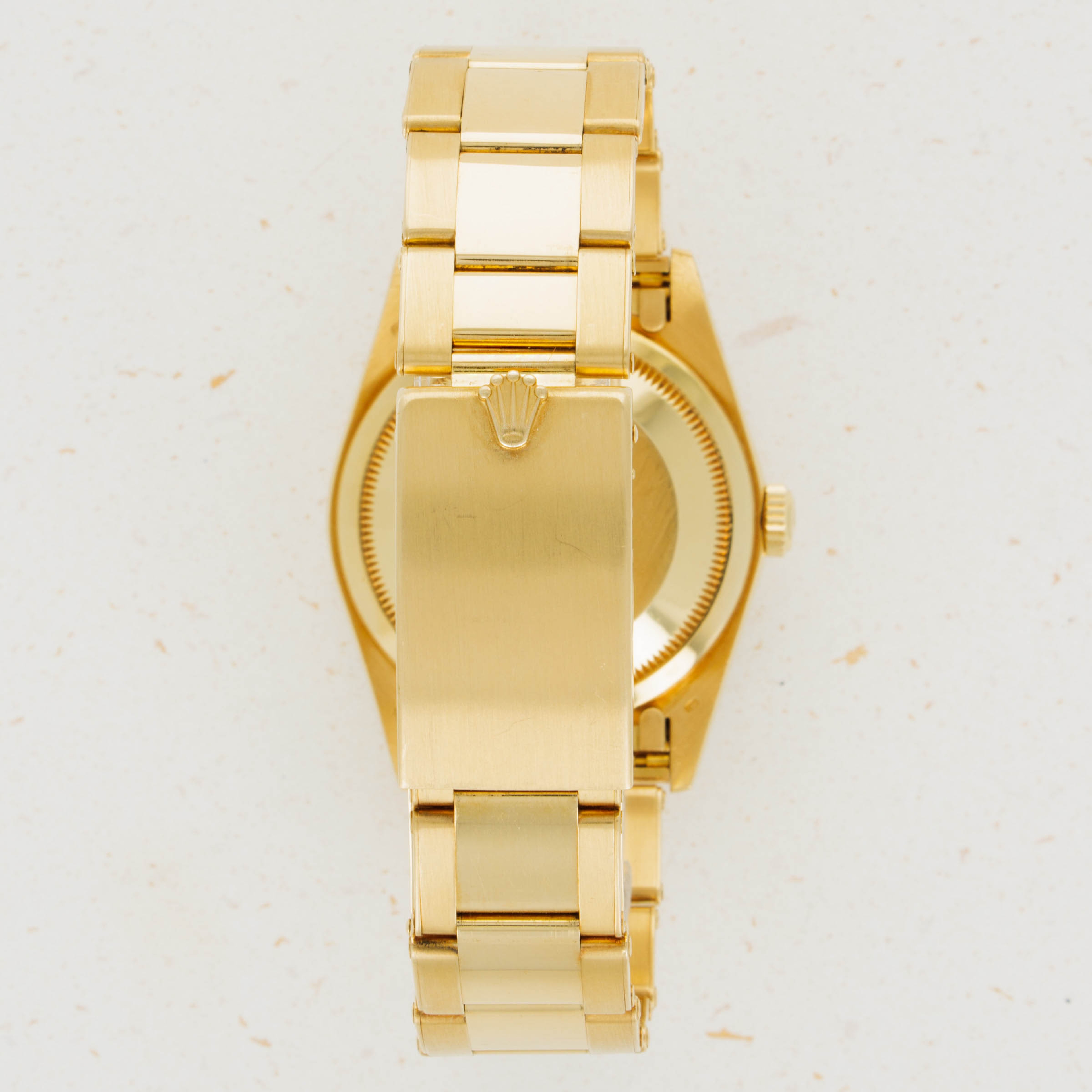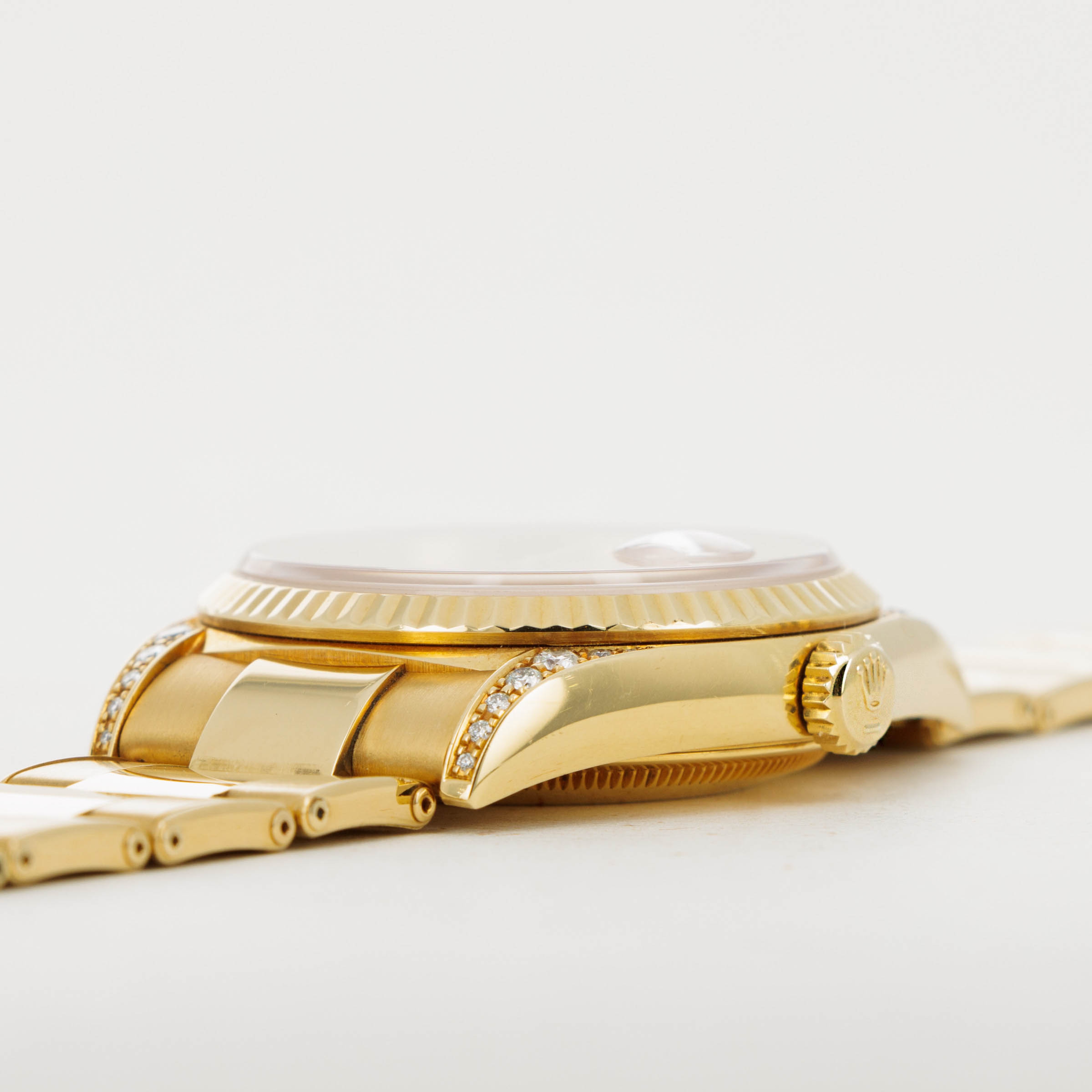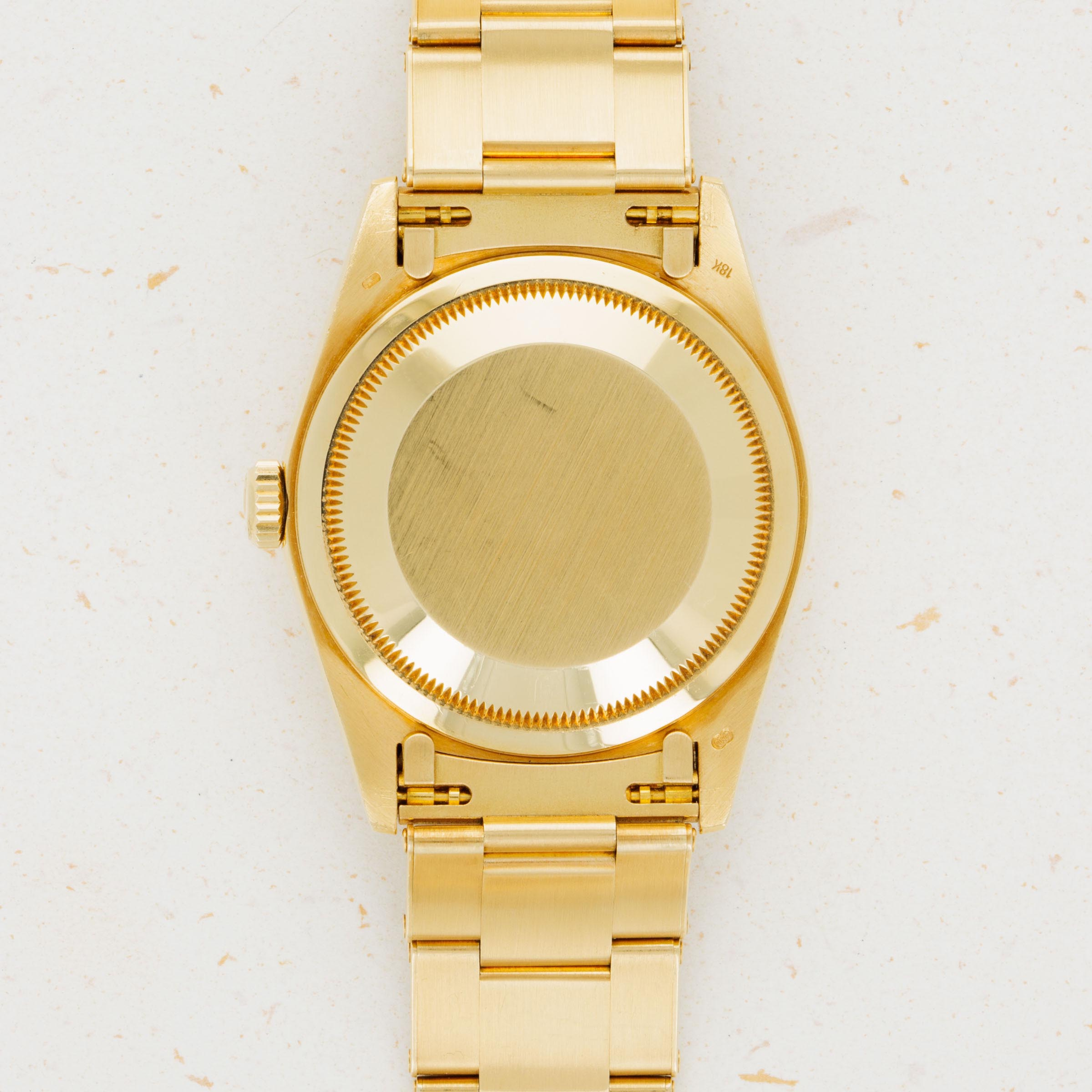 A legendary timepiece with an unrivaled history, the Rolex Day-Date has earned its place as "The Ultimate Watch of Prestige" from its decades on the wrists of the world's most influential people. Released in 1956, the Day-Date quickly became synonymous with luxury, prestige, and exclusivity thanks to being the watch of choice for the world's athletes, visionaries, and world leaders alike. Only ever constructed of precious metals, the Day-Date's aesthetic is that of sheer elegance and grace. Aside from the beautiful array of dial options that have been available over the decades, the Day-Date's most iconic piece of design is its three-piece "Presidential" or "President" bracelet. Forming the bedrock of its design, the Presidential bracelet has become synonymous with Rolex's flagship collection and their desire to create the very best and most iconic watches that the world has ever seen. With its timeless design and inescapable impact on horology, the Day-Date stands as a vivid reminder of just how successful they have been in realizing that very mission.