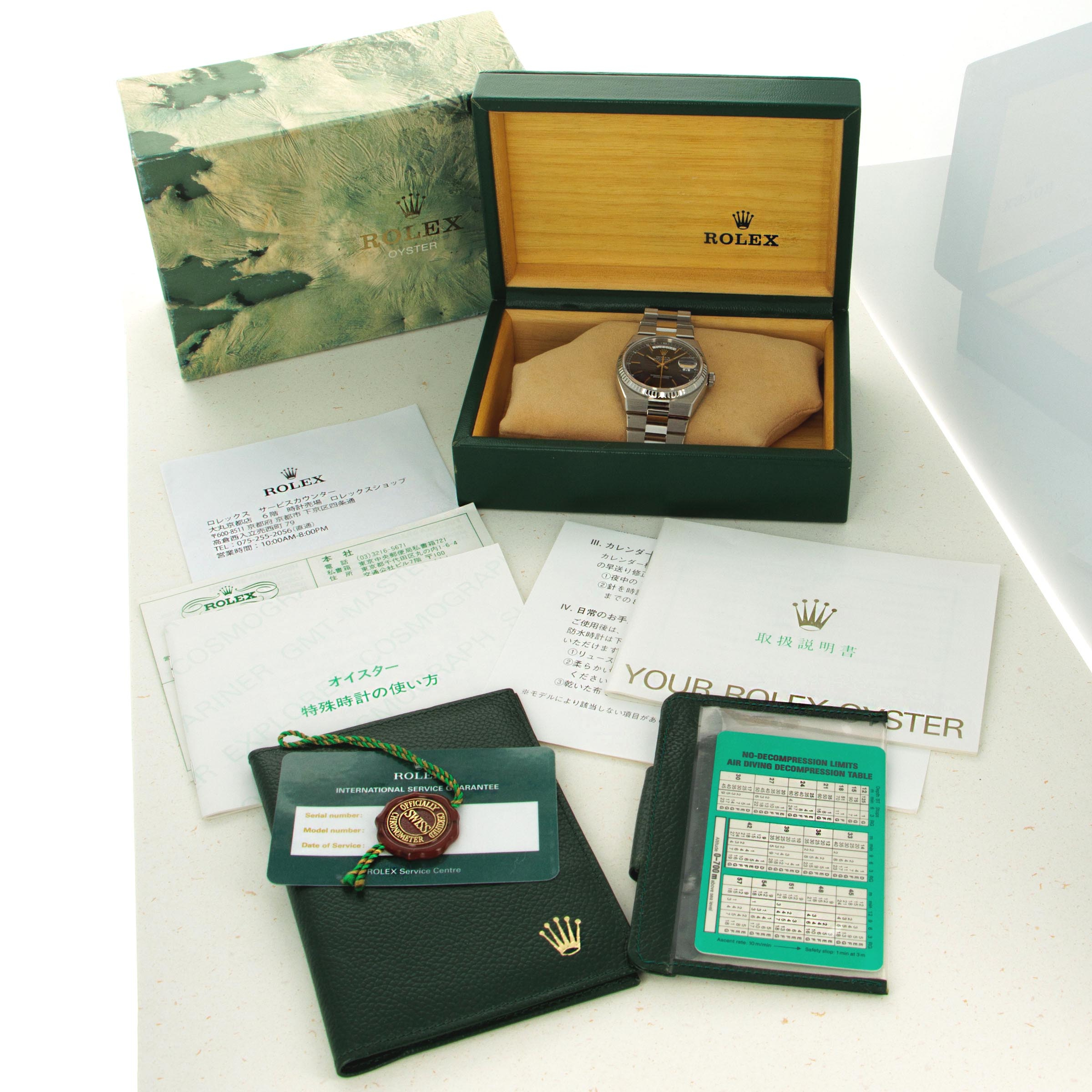 Watch, box, booklets and 2021-dated Rolex service papers