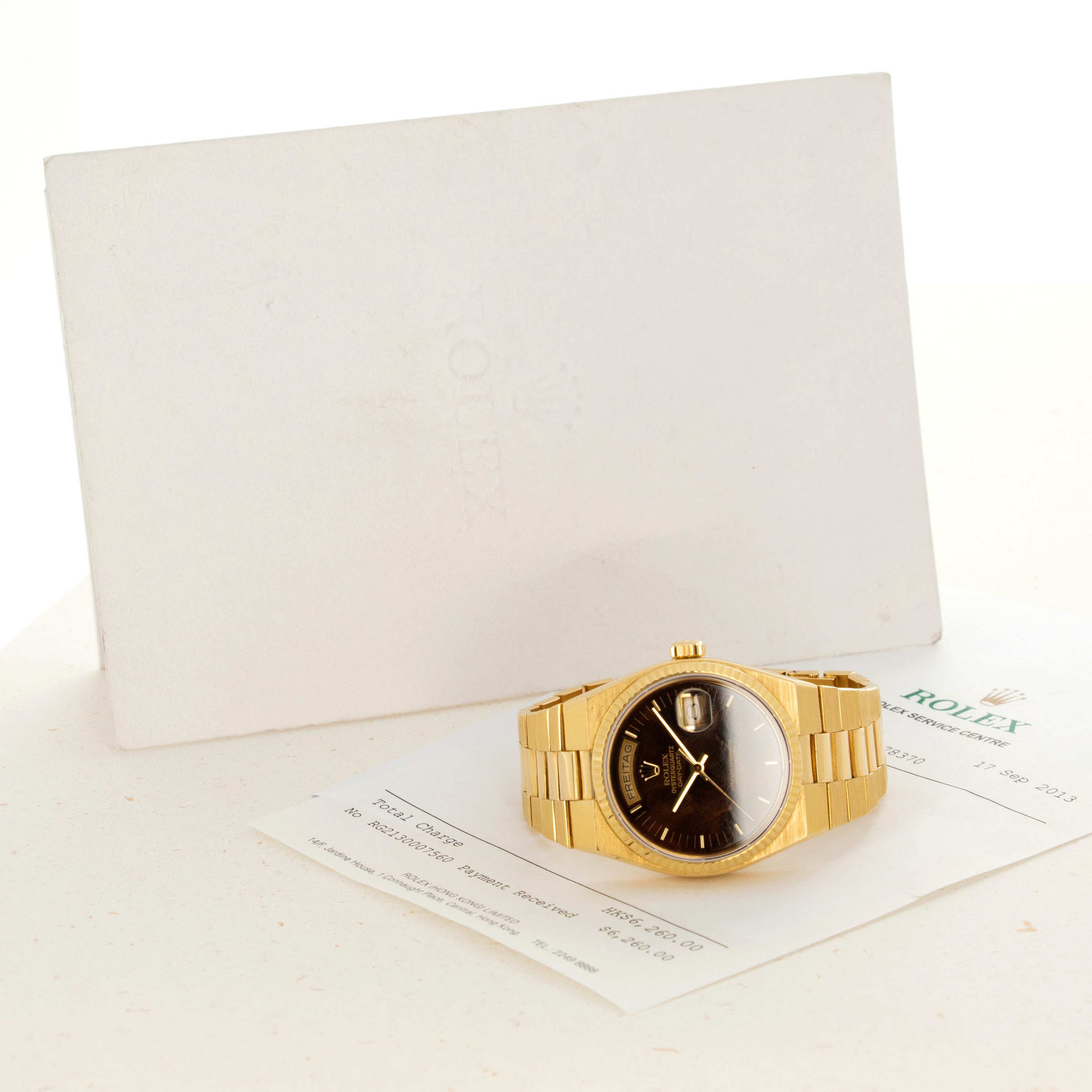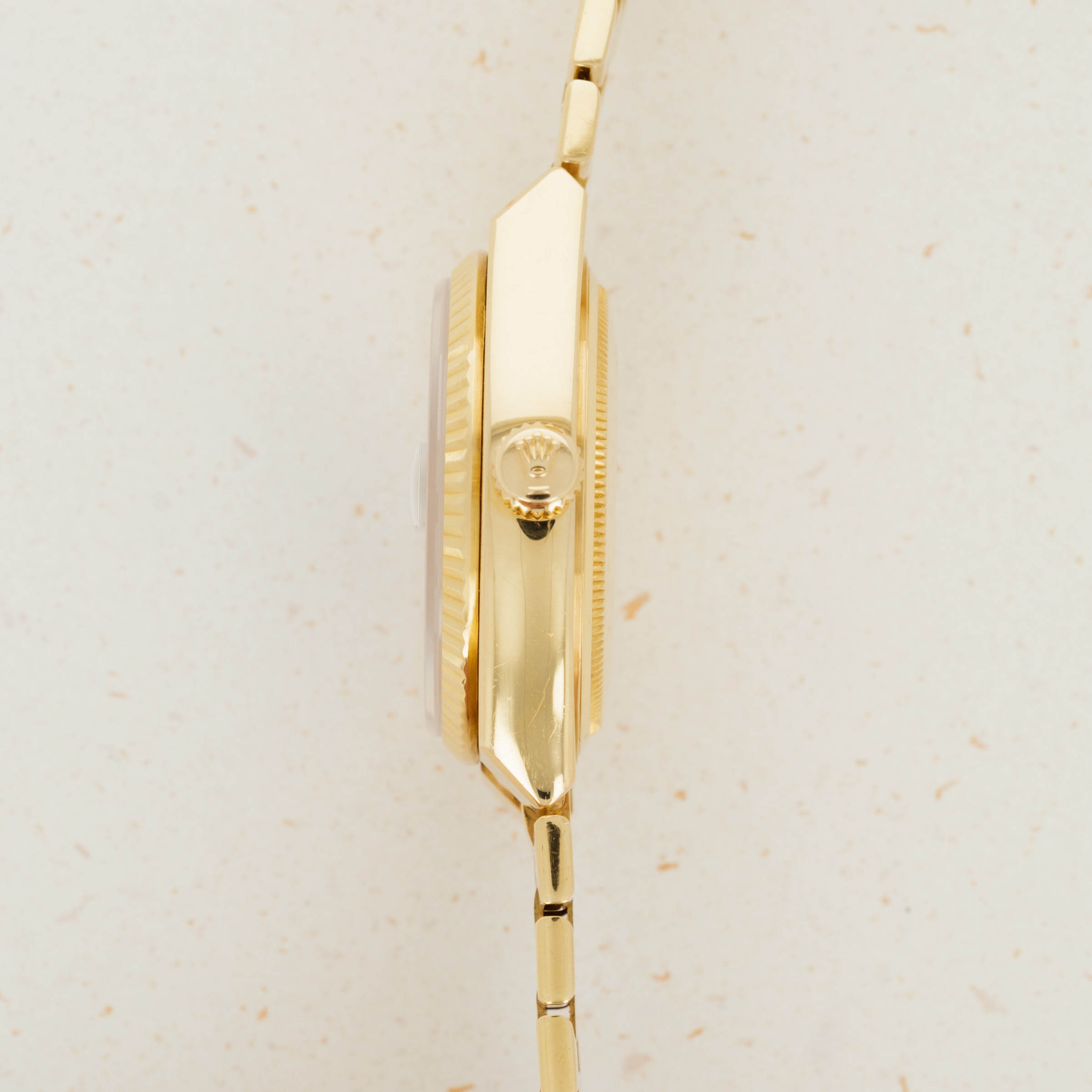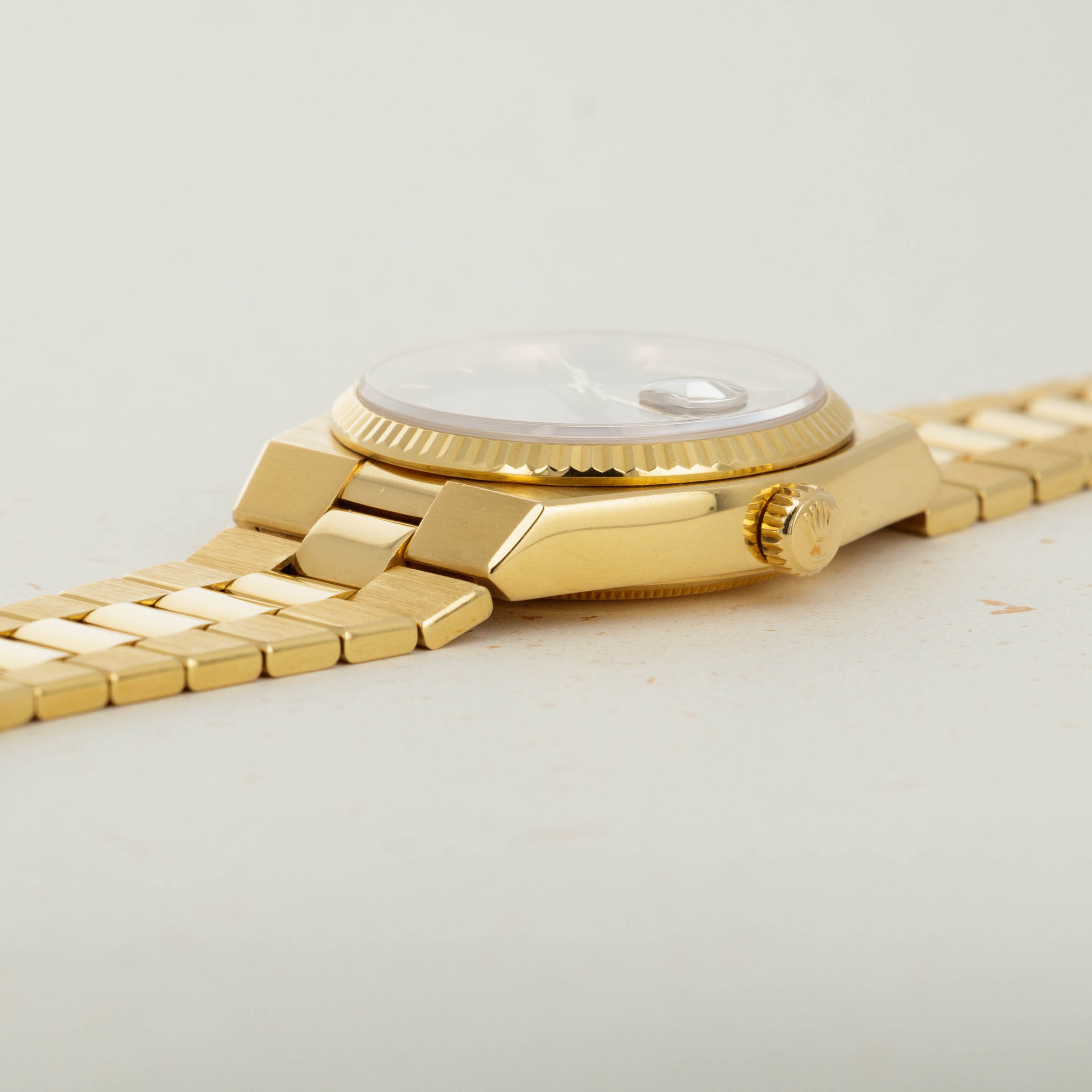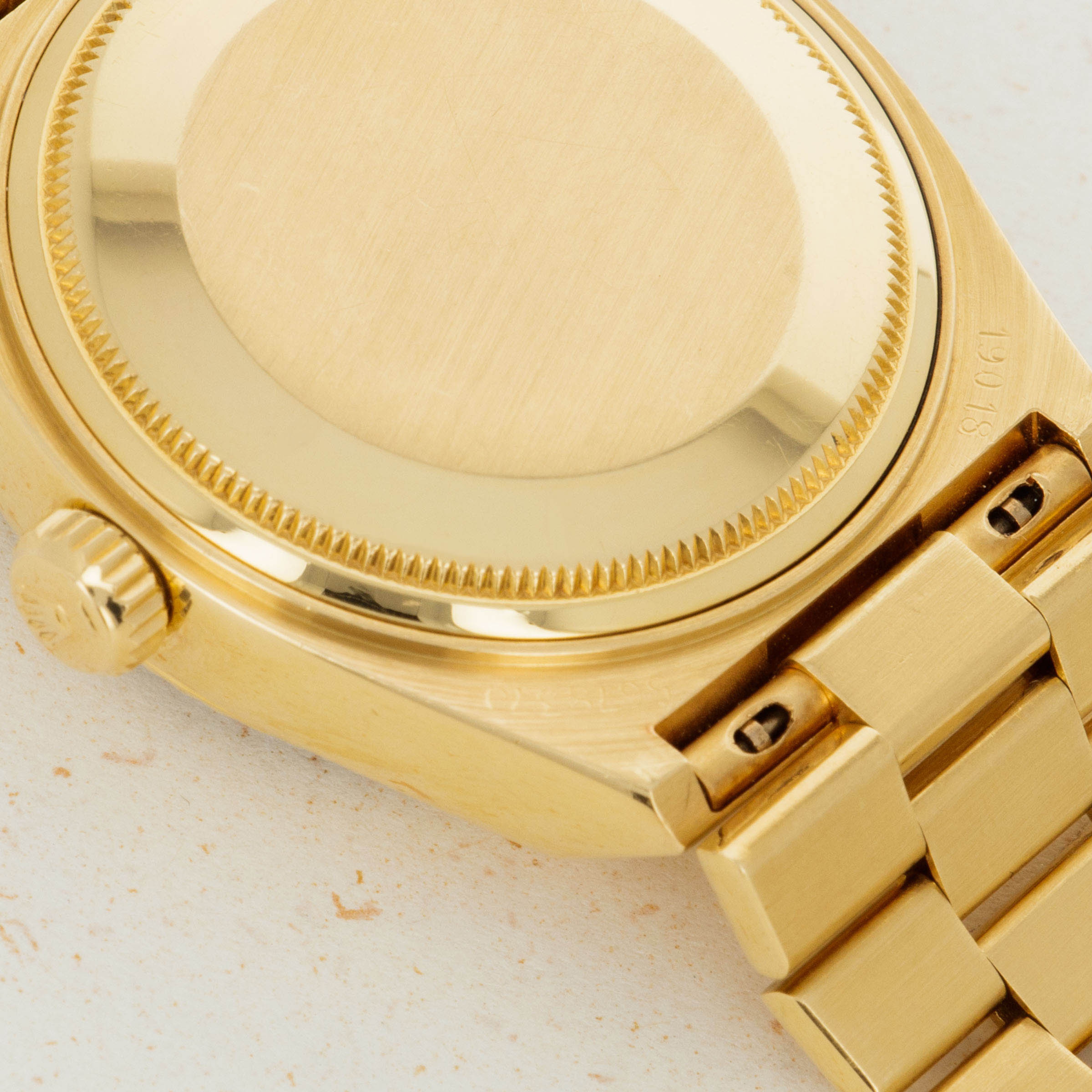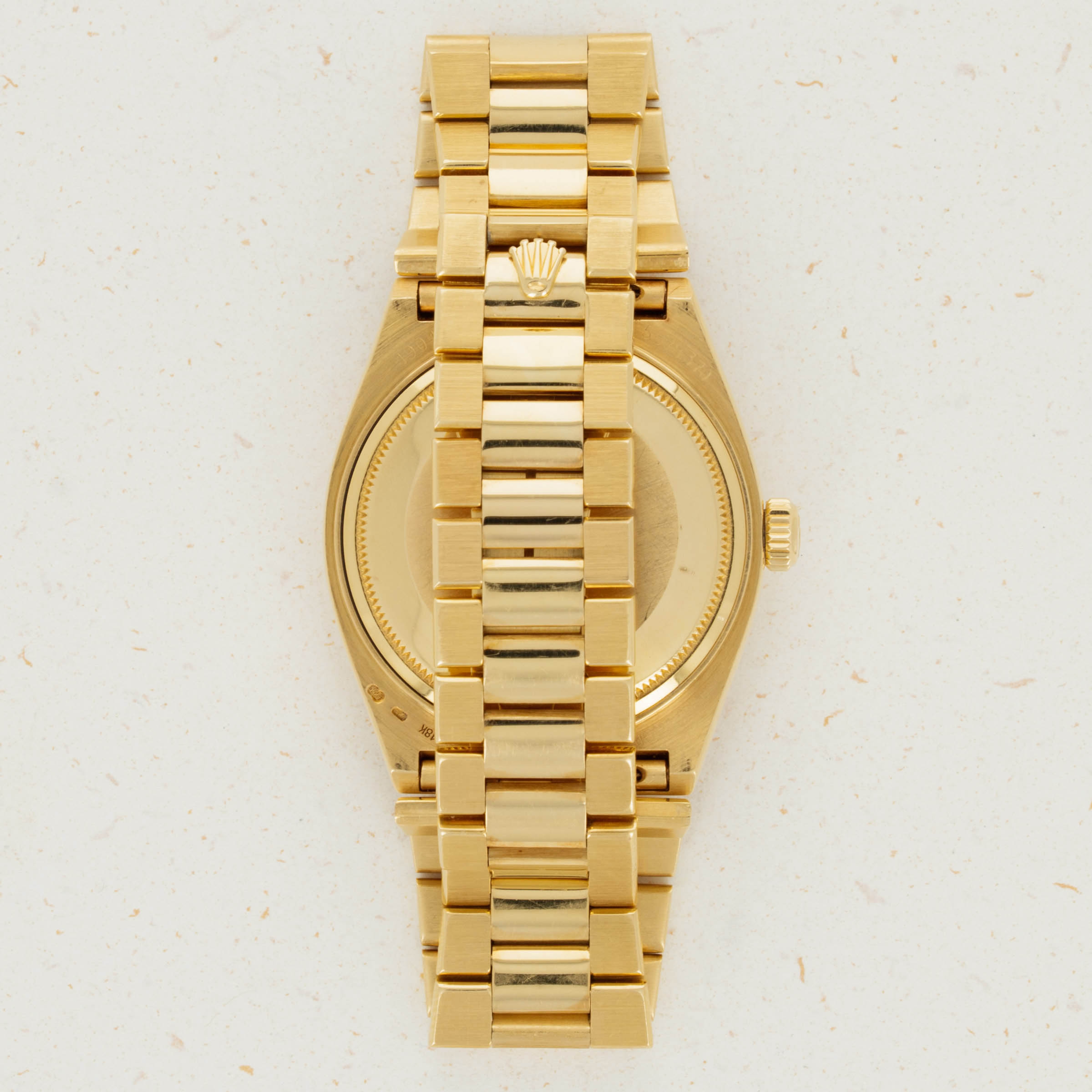 Featuring the very best Rolex had to offer at the time, the ref. 19018 sports an unsurprisingly over-engineered quartz movement, as a result of their response to the Quartz Crisis, and a beautifully executed luxurious construction that is stunning in its own right. Added with its burl dial, this example is truly spectacular.