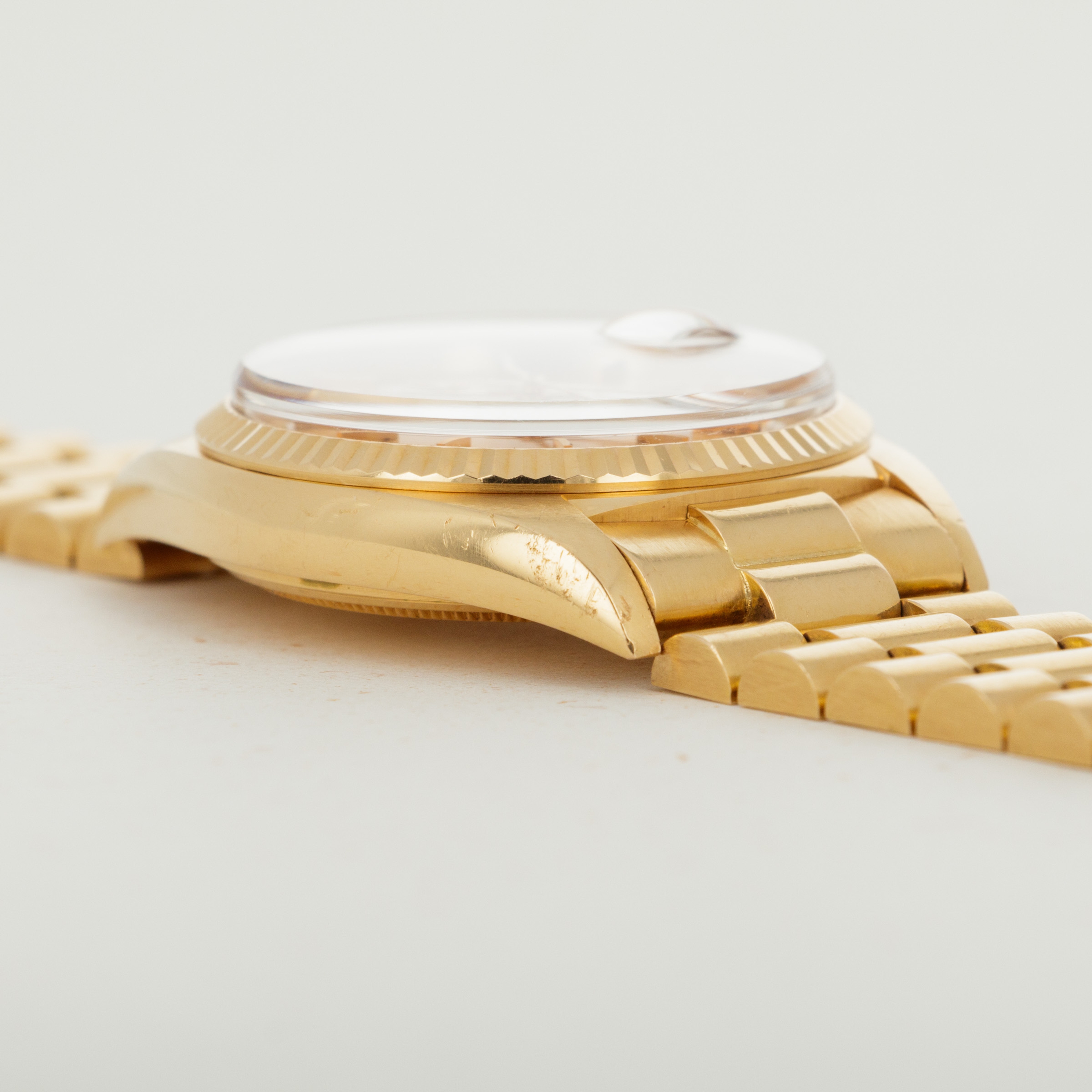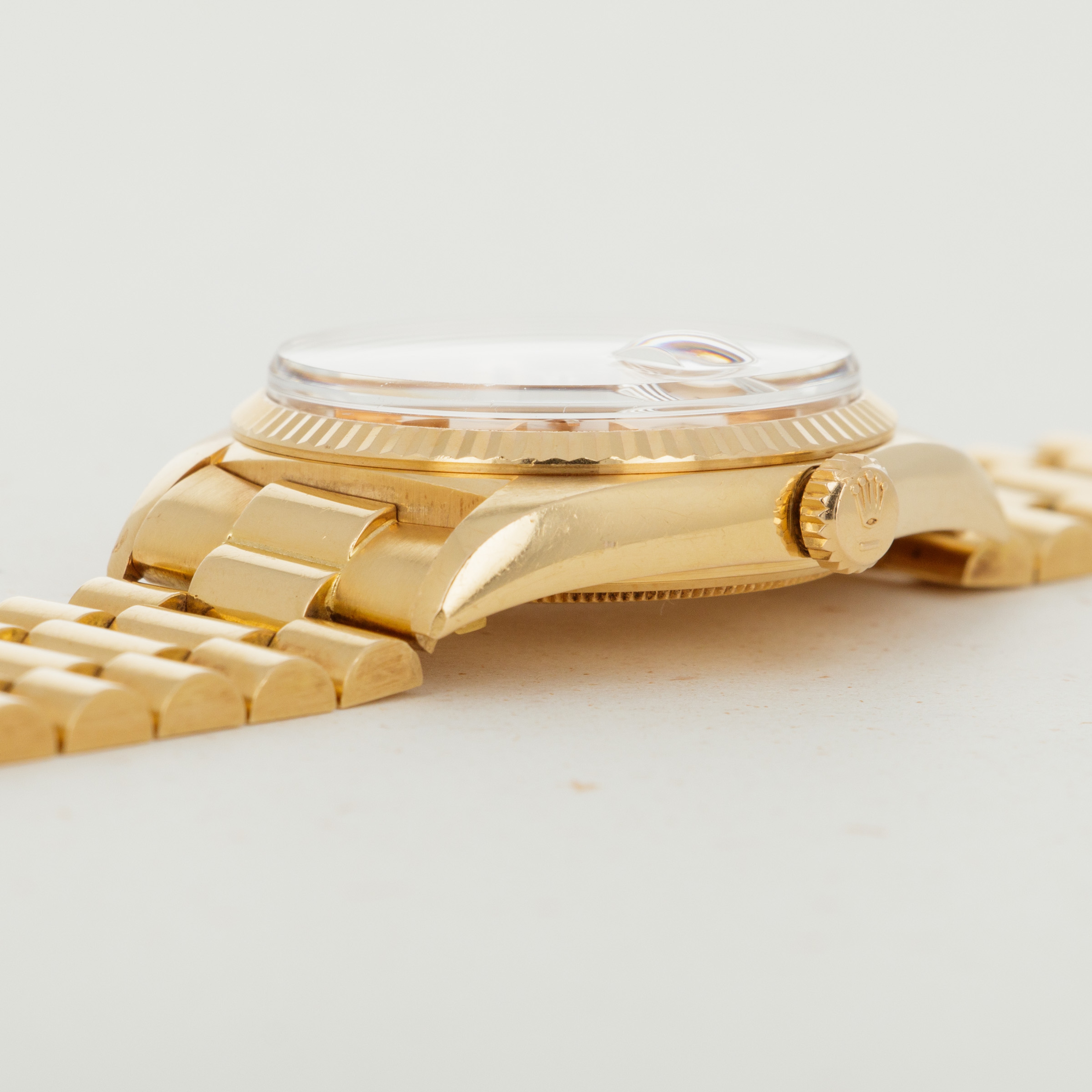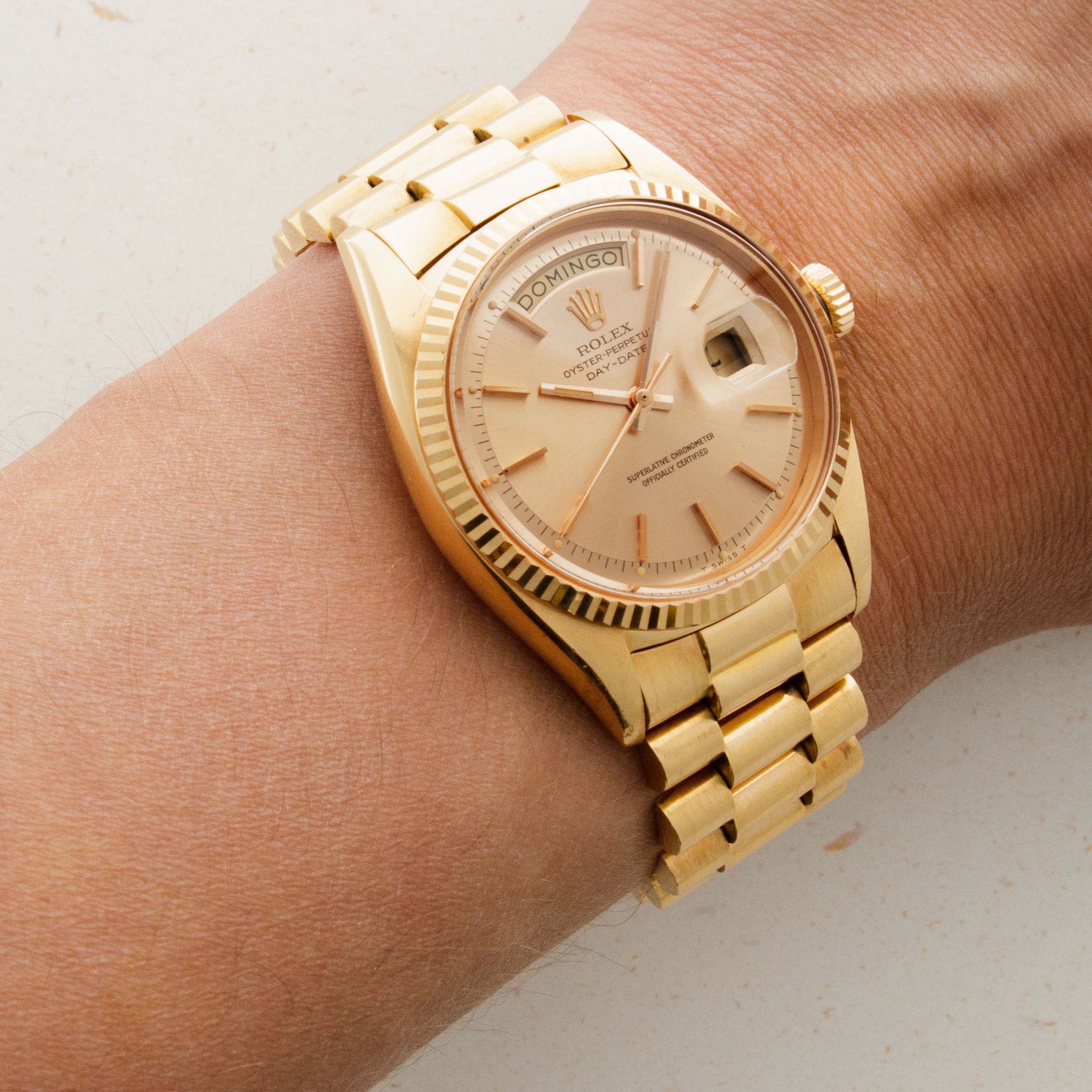 A legendary timepiece with an unrivaled history, the Rolex Day-Date has earned its place as "The Ultimate Watch of Prestige" from its decades on the wrists of the world's most influential people. Released in 1956, the Day-Date quickly became synonymous with luxury, prestige, and exclusivity thanks to being the watch of choice for the world's athletes, visionaries, and world leaders alike. Only ever constructed of precious metals, the Day-Date's aesthetic is that of sheer elegance and grace. Aside from the beautiful array of dial options that have been available over the decades, the Day-Date's most iconic piece of design is its three-piece "Presidential" or "President" bracelet. Forming the bedrock of its design, the Presidential bracelet has become synonymous with Rolex's flagship collection and their desire to create the very best and most iconic watches that the world has ever seen. With its timeless design and inescapable impact on horology, the Day-Date stands as a vivid reminder of just how successful they have been in realizing that very mission.