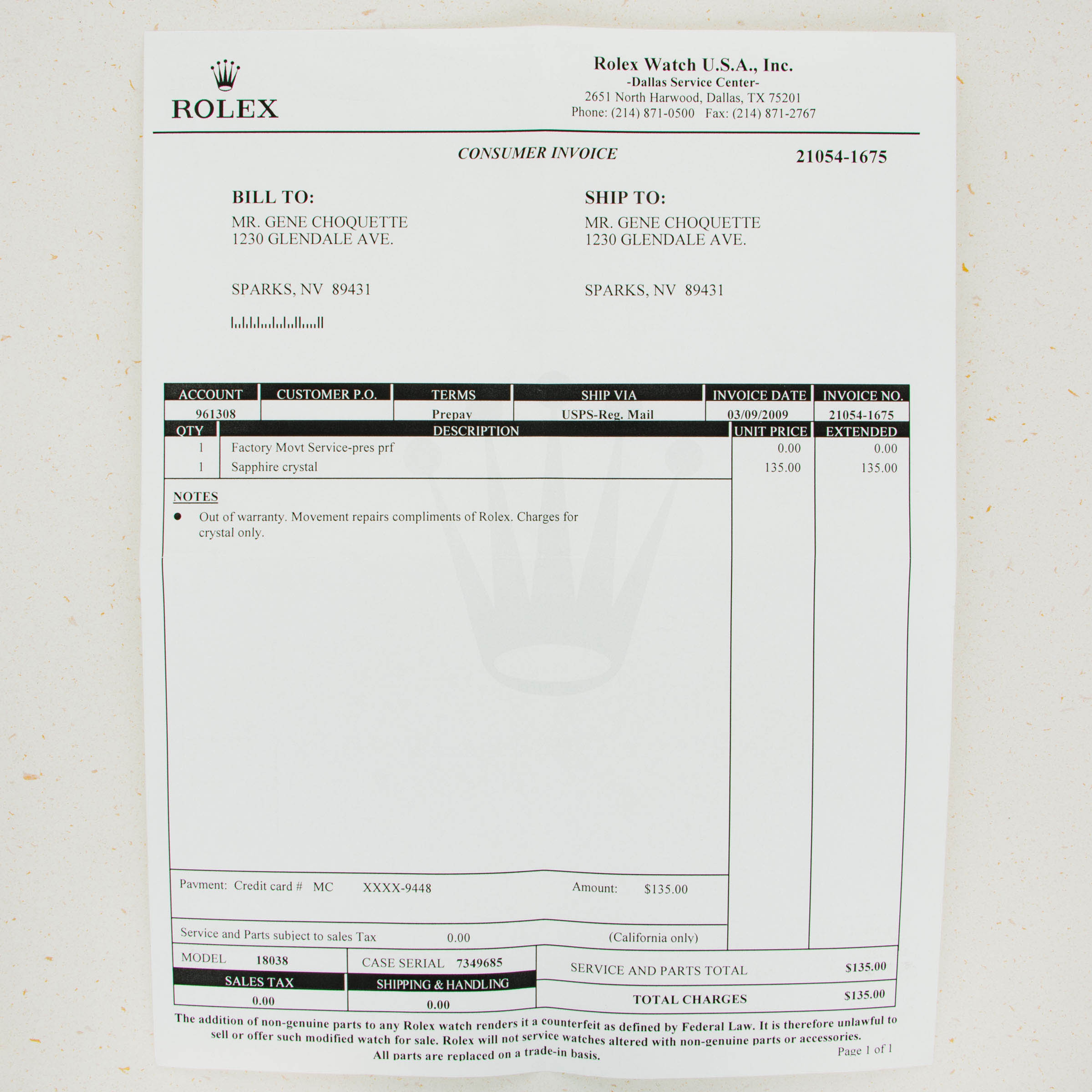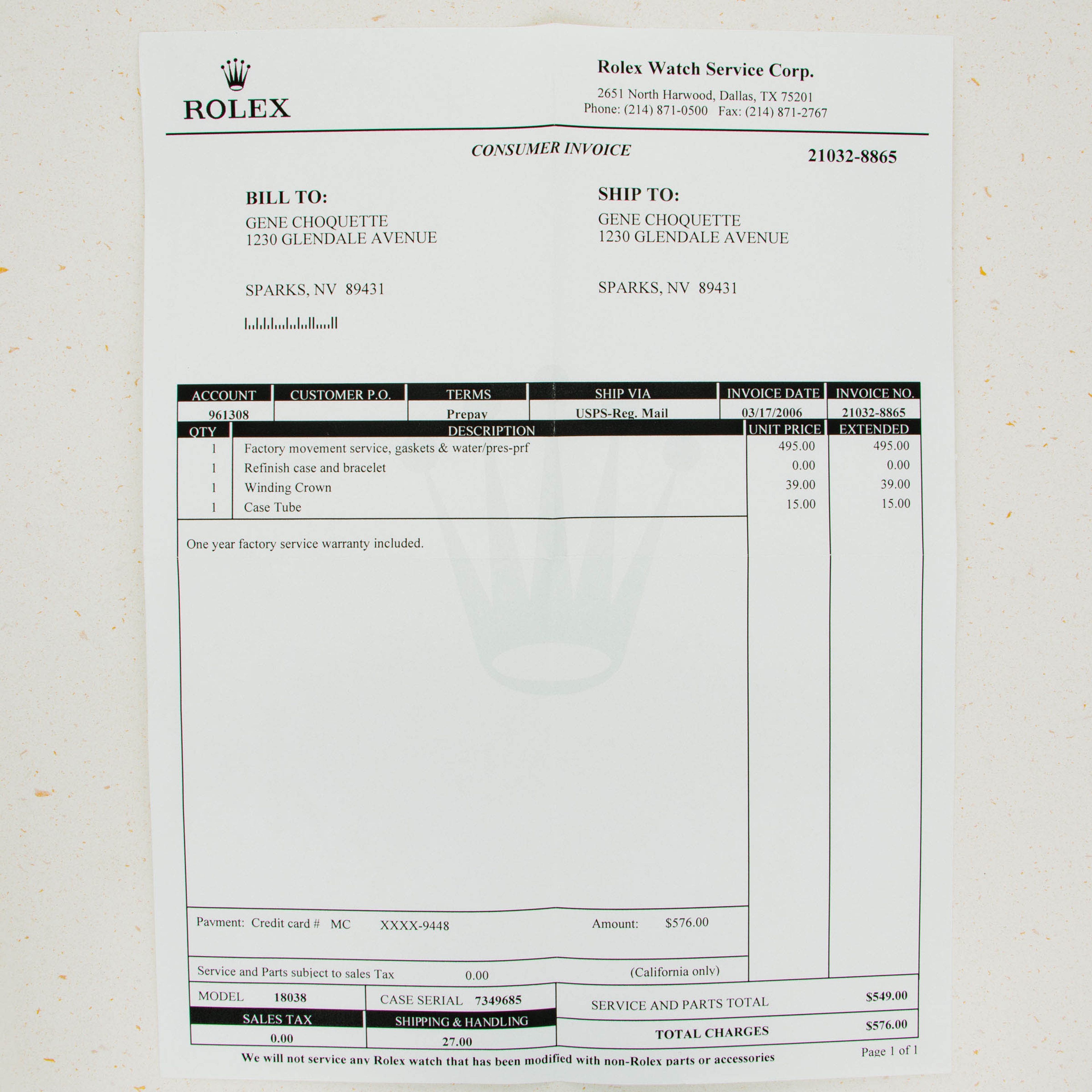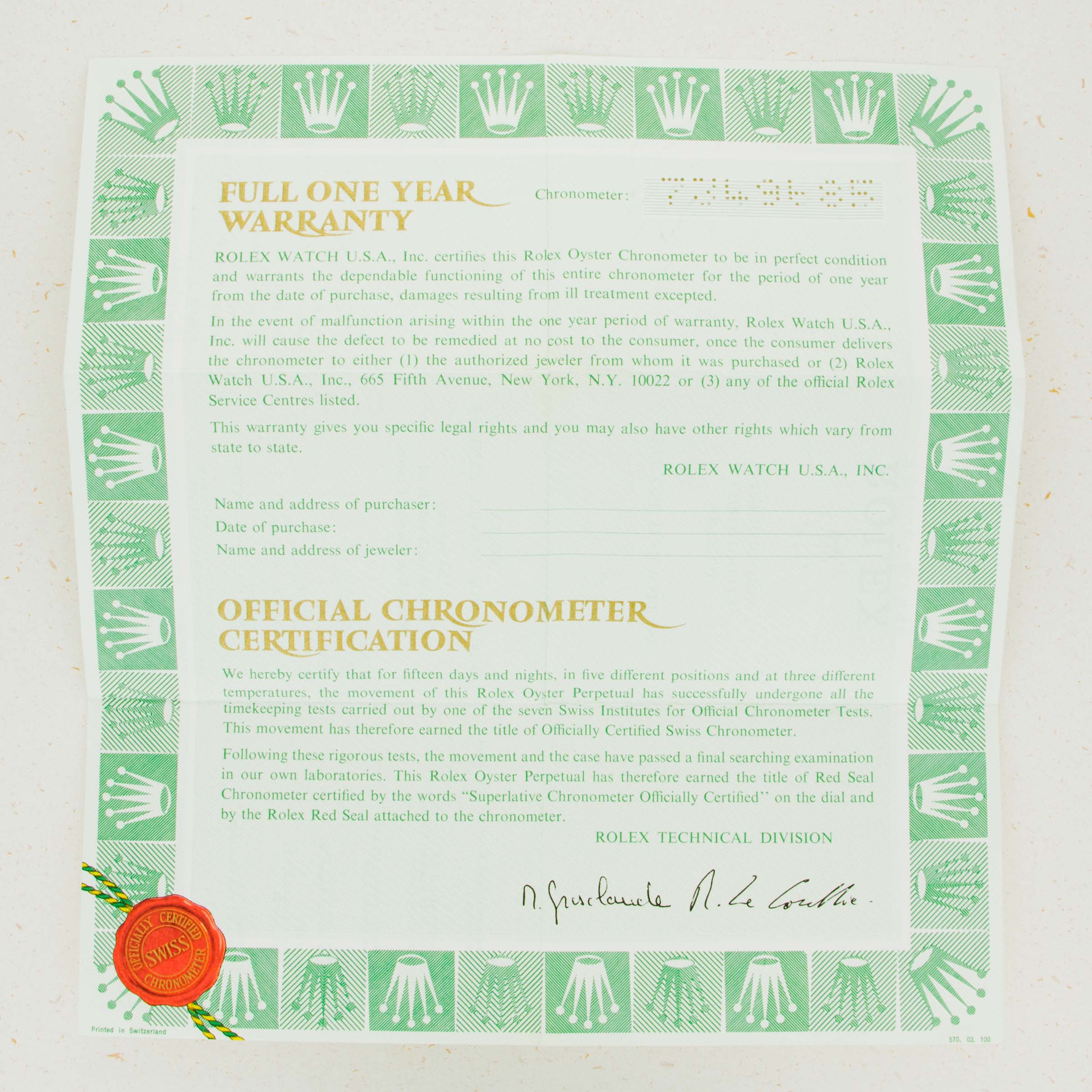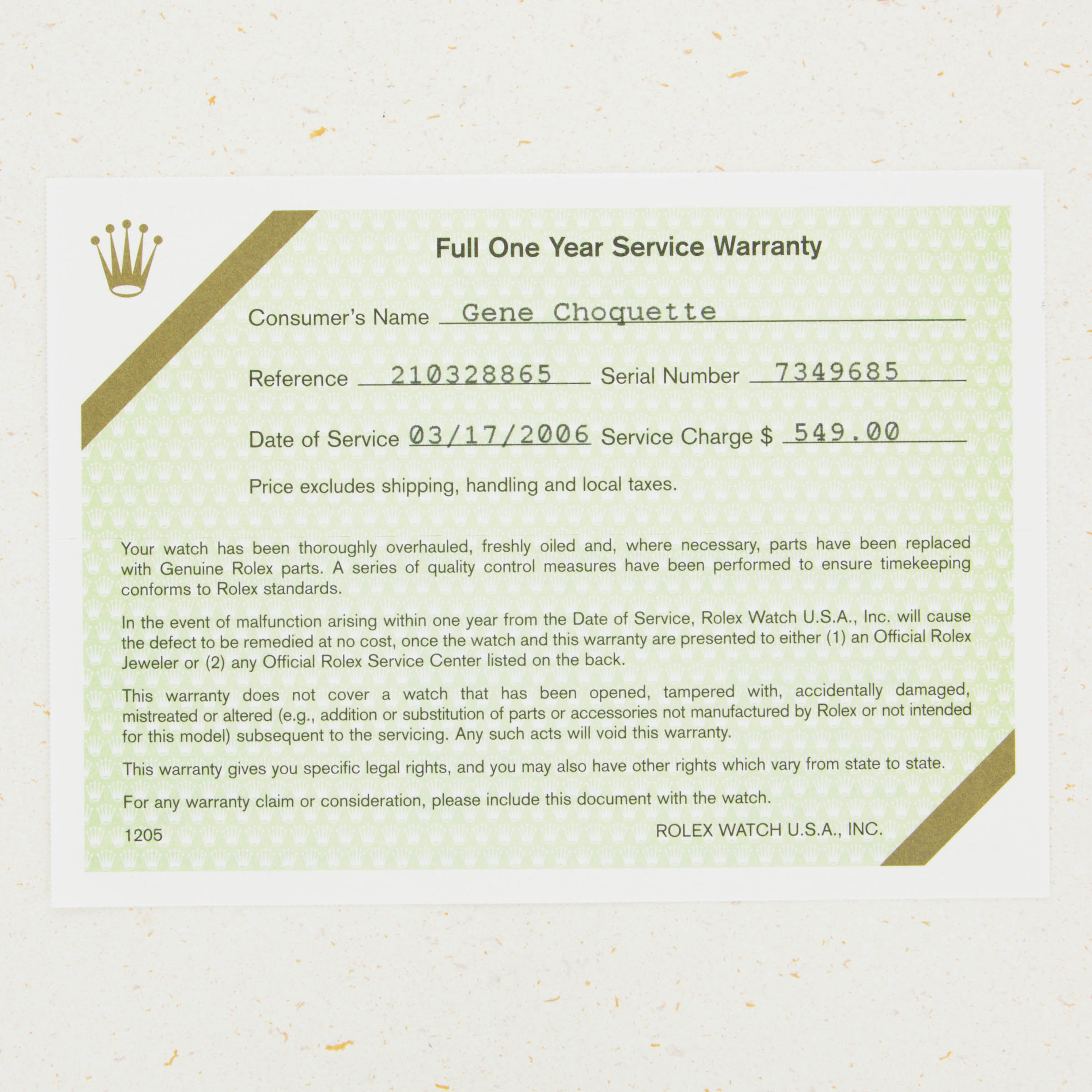 Box, Papers, Rolex Factory Service Paperwork