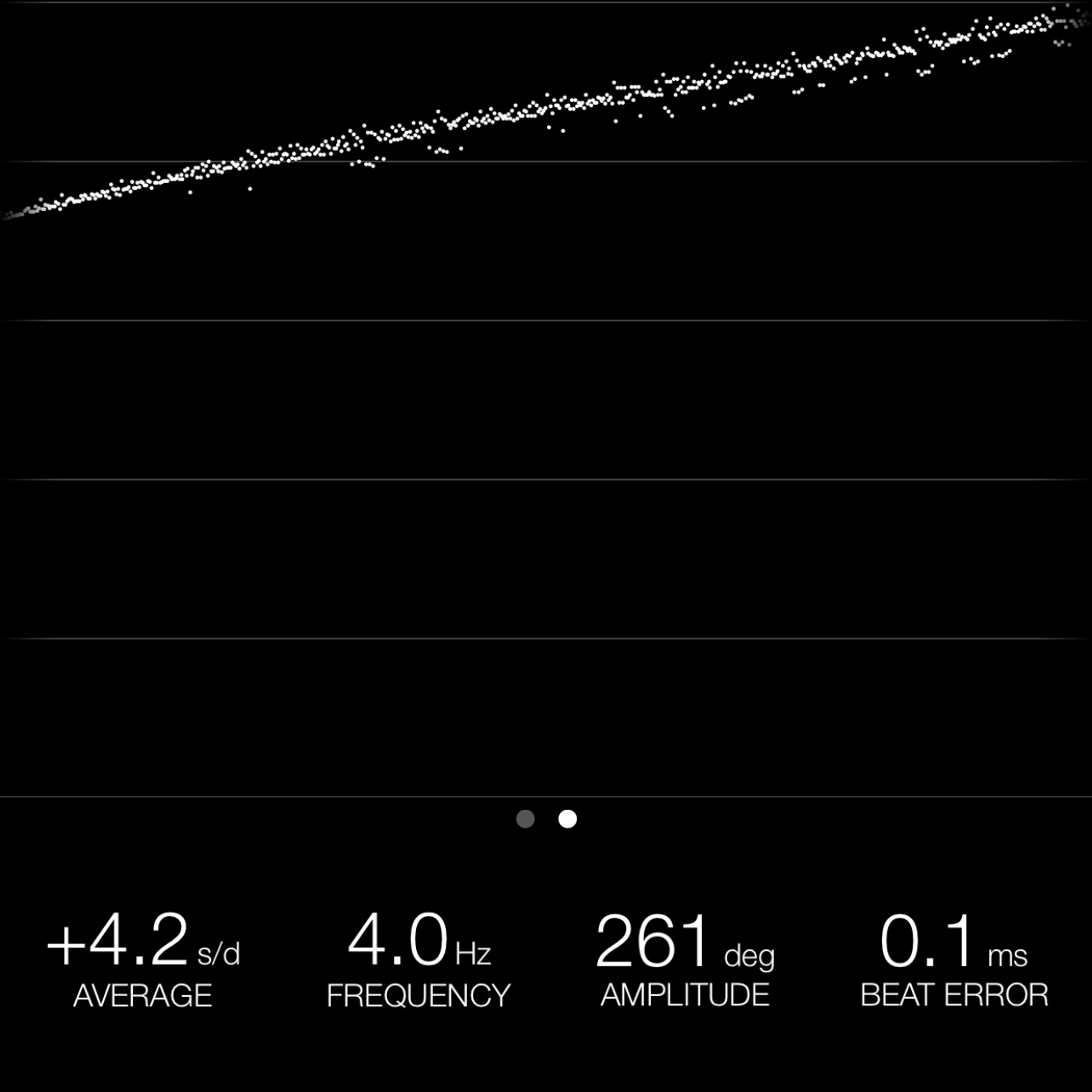 This reading was taken (crown down) with a ONEOF Accuracy Boutique Edition timing machine at time of cataloging. It is provided as a courtesy only, and shall not be construed as a warranty or guarantee of any kind. Please refer to our terms and conditions of sale for more information.