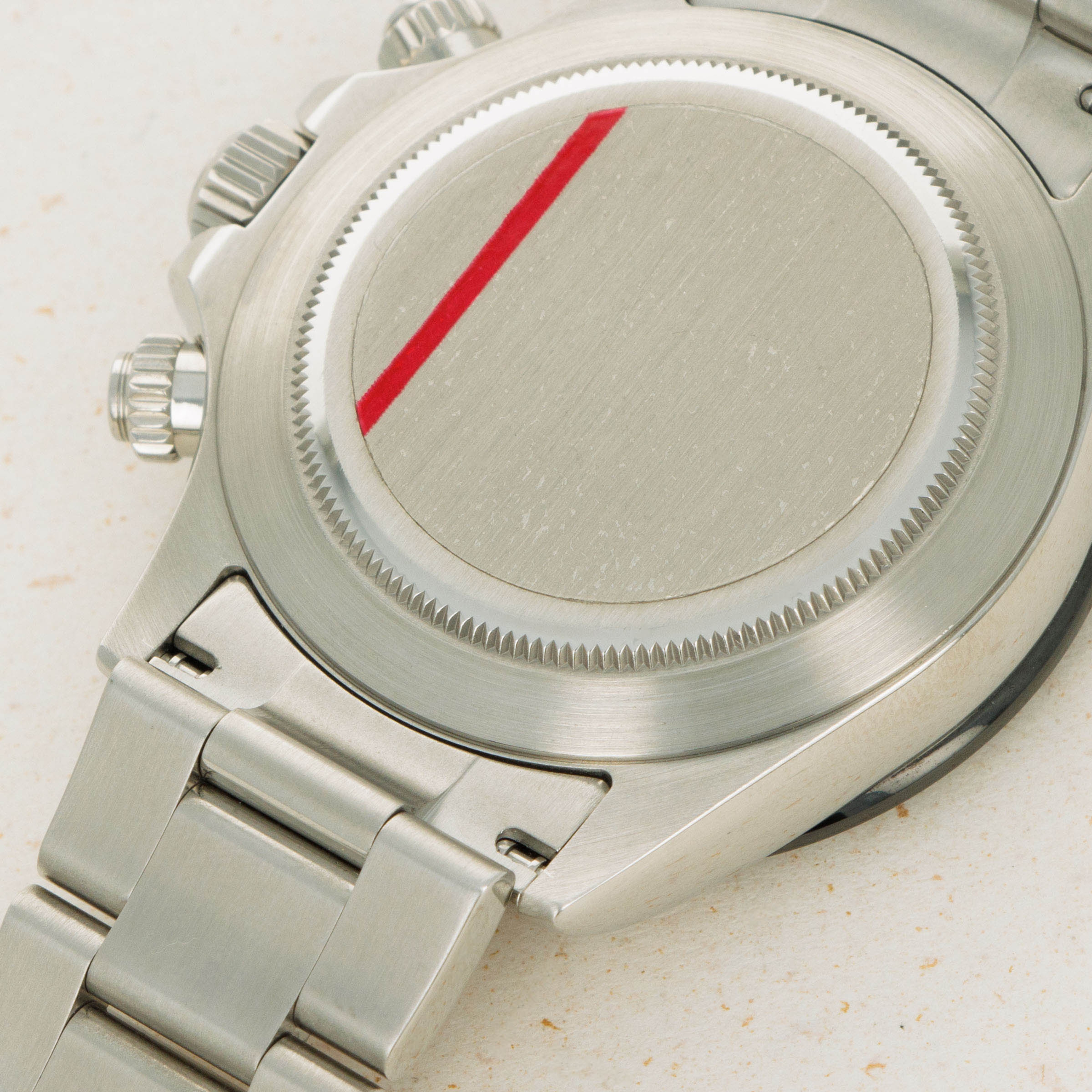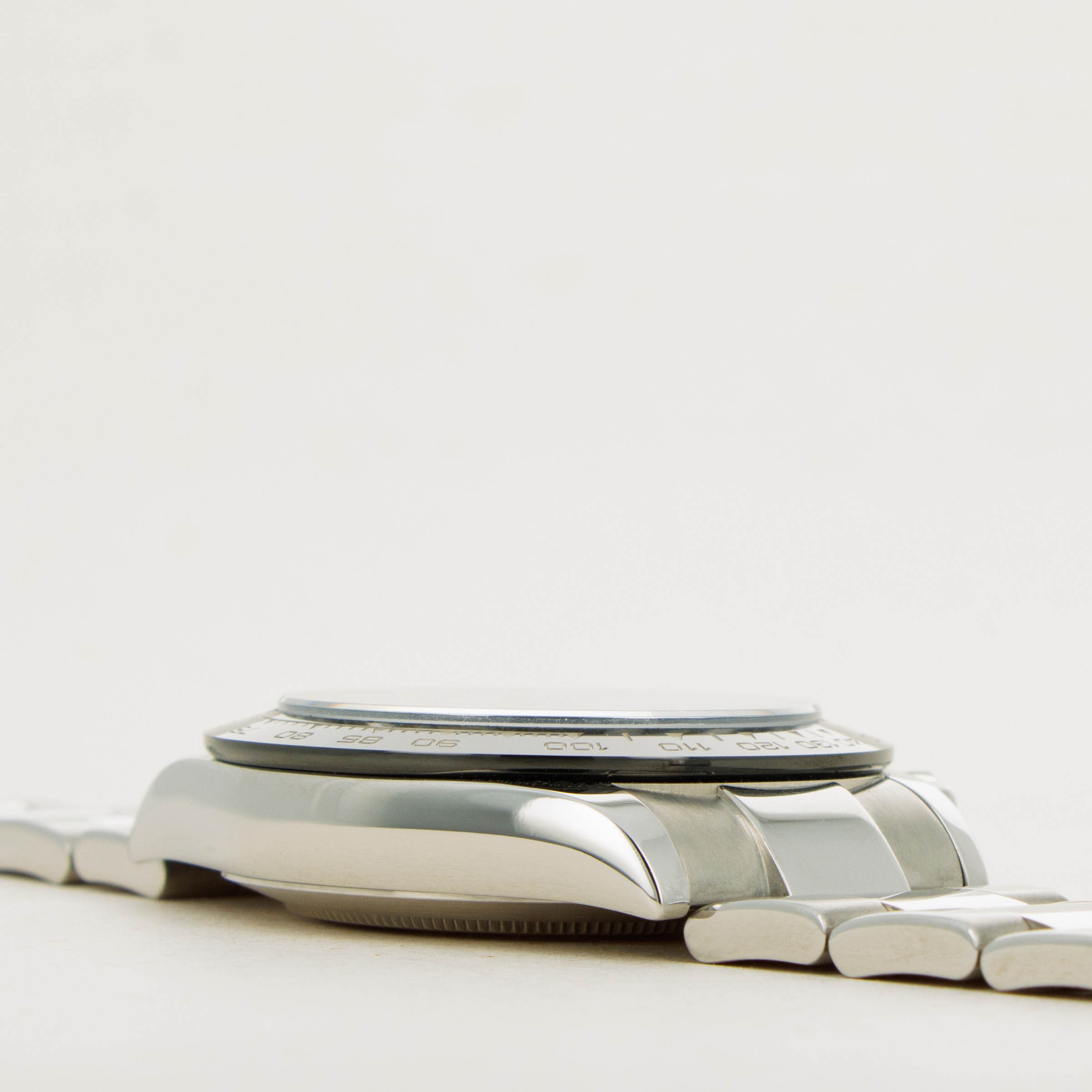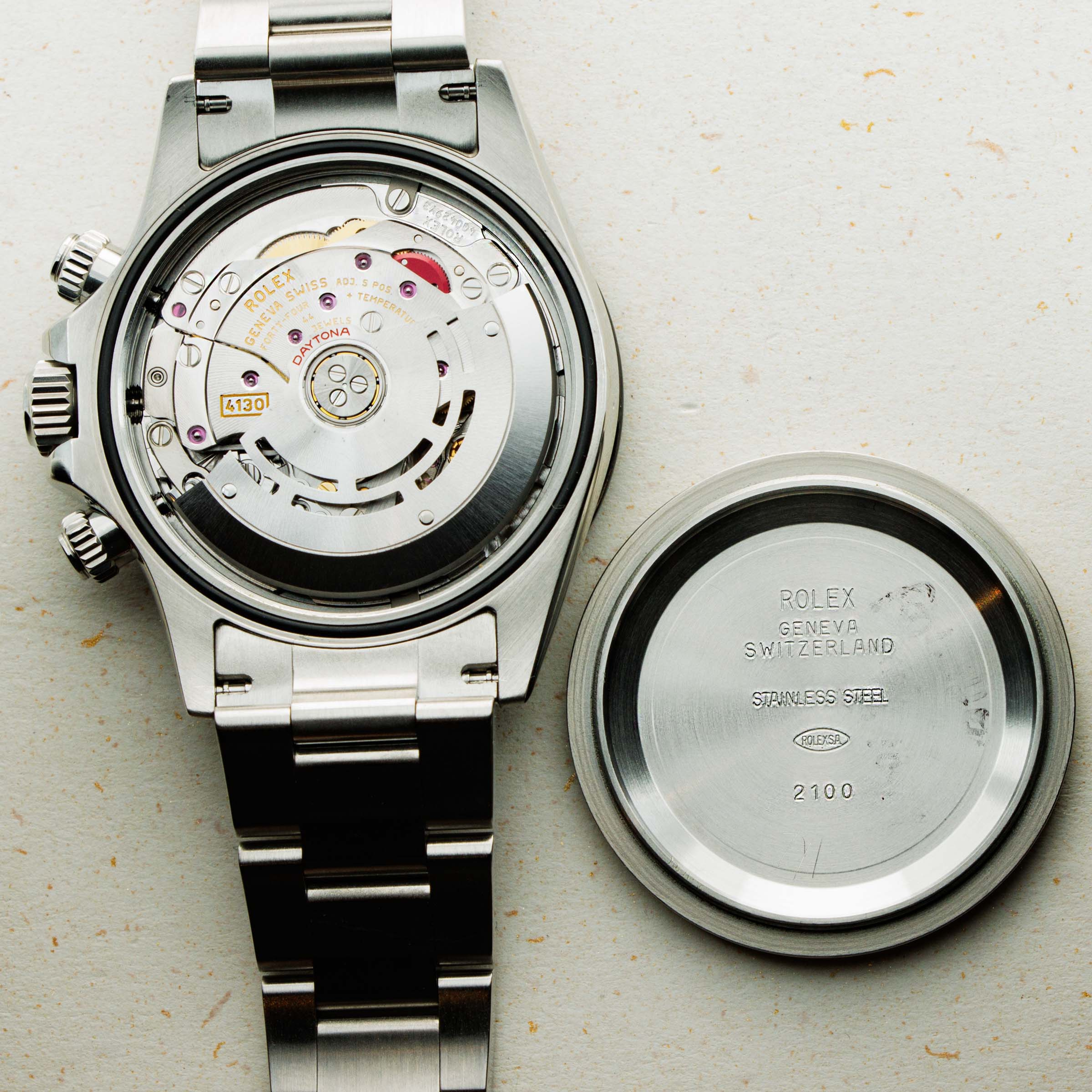 Released in 2000 as a brand new generation of Daytona, Rolex made several subtle changes to the previous “Zenith” Daytona. To begin with, the dial layout had changed slightly, with the running seconds subdial moving from 9 o'clock to 6' clock. Additionally, the subdials were no longer in line with the center of the dial. Instead, they moved up slightly above the middle of the dial (running from 9 to 3 o'clock). Additionally, Rolex gave the new Daytona broader indices to accommodate more lume, longer lugs, and a mirror finish on the case flanks to differentiate the latest generation even further. But, without doubt, the latest generation’s most significant upgrade was Rolex’s new (at the time) in-house automatic cal. 4130 chronograph movement. Designed to be ruthlessly efficient, it has just 201 parts - a 20% decrease on the previous movement, the cal. 4030, making for an even more reliable movement requiring even less servicing. Additionally, with more space free to accommodate a larger mainspring, Rolex increased the cal. 4030's power reserve from 50 to 72 hours in the cal. 4130. All in all, even for a 20+ year old movement, the cal. 4130 is incredible even by today’s standards and fitting for the Daytona’s legendary legacy.