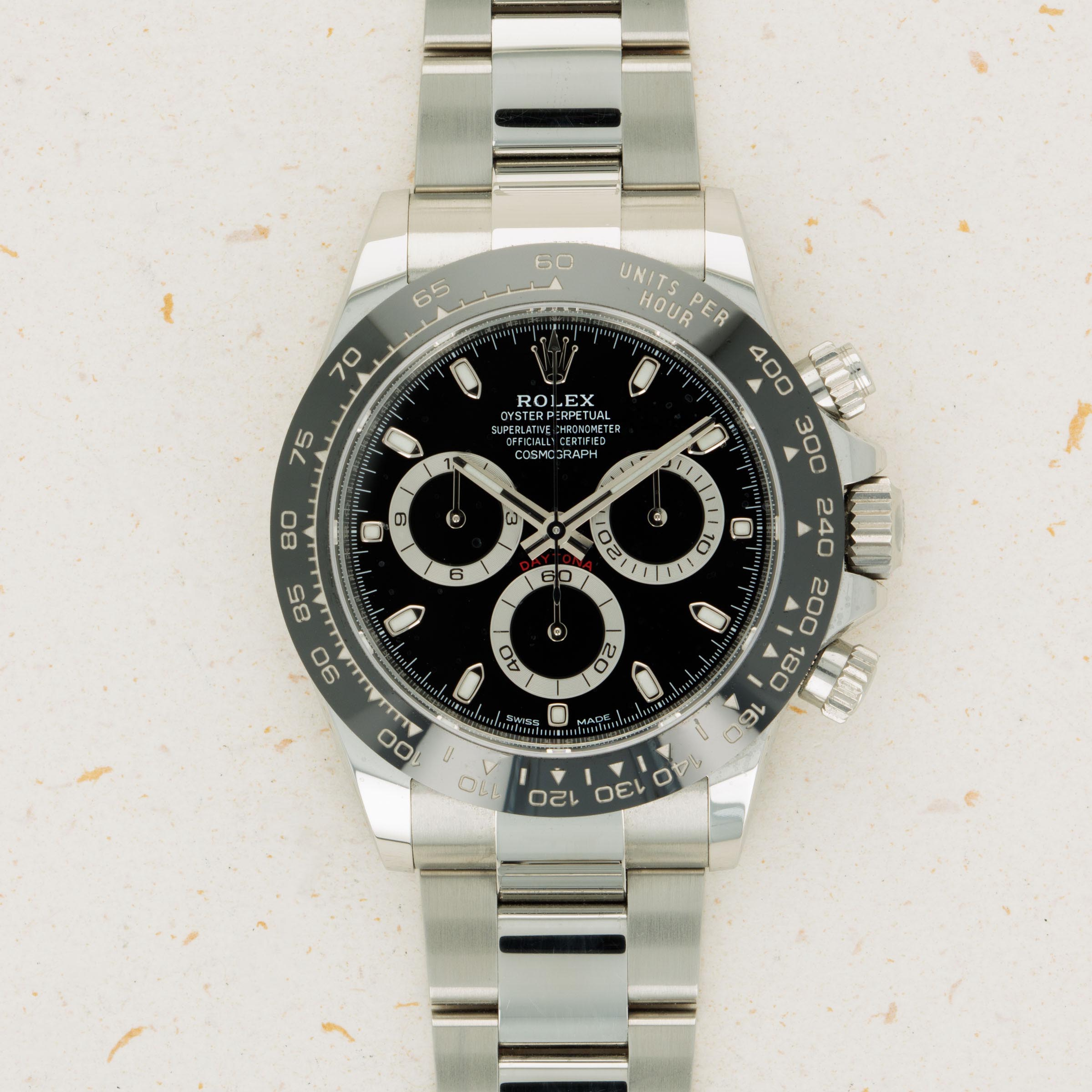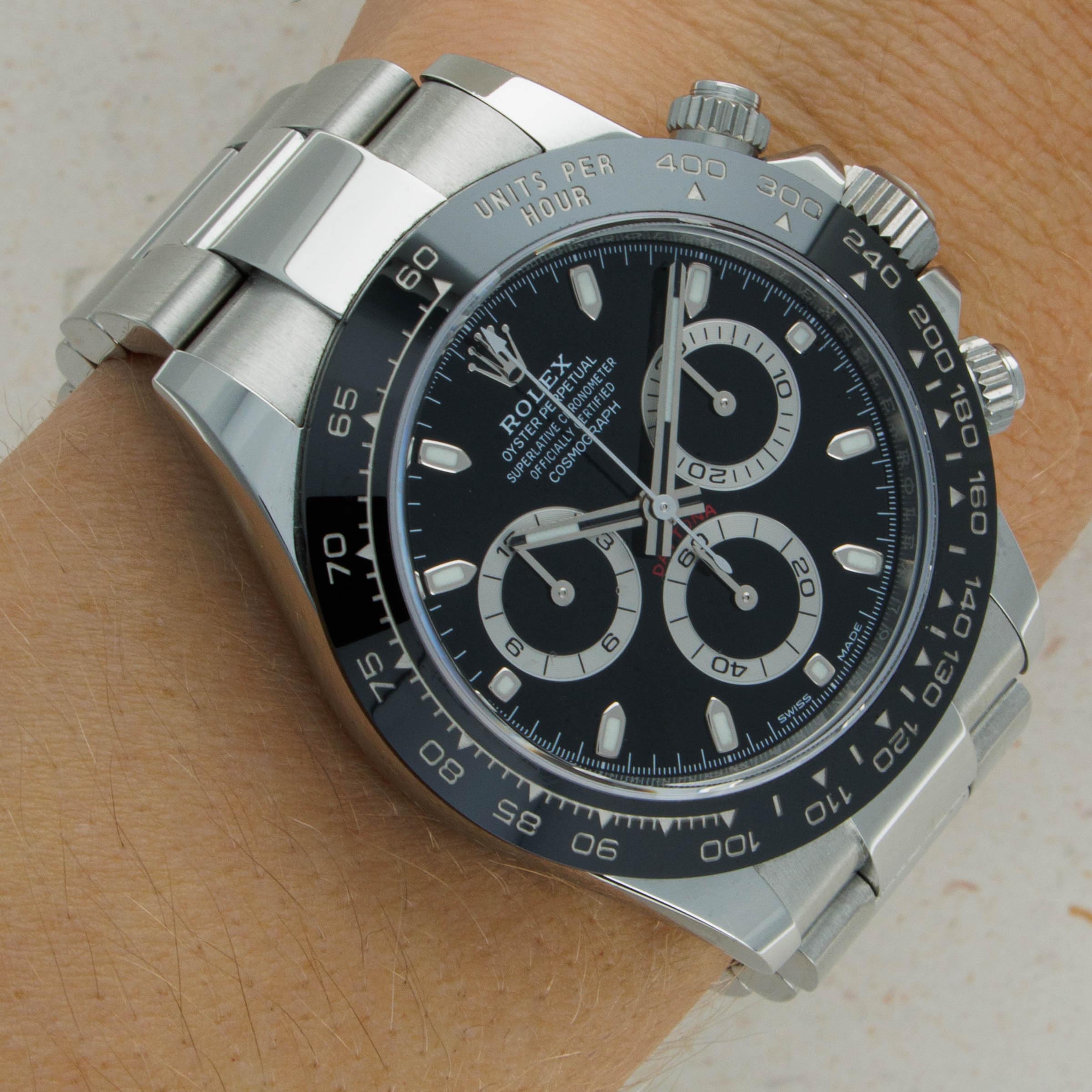 Measuring 40mm in diameter, the Daytona wears on the wrist with a comfortable familiarity that enables anyone to easily pull it off.