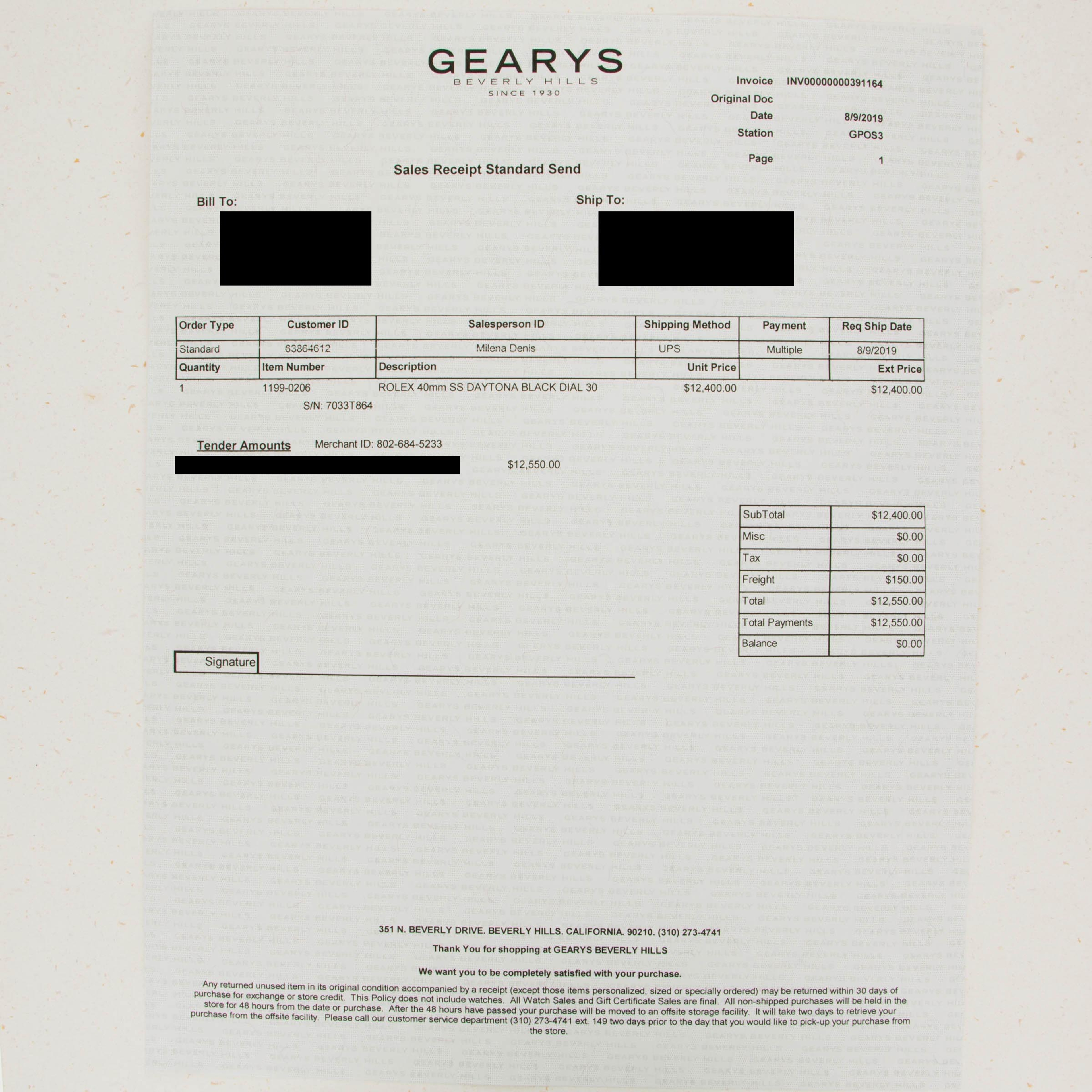 Watch, box, papers, original receipt and hang tags