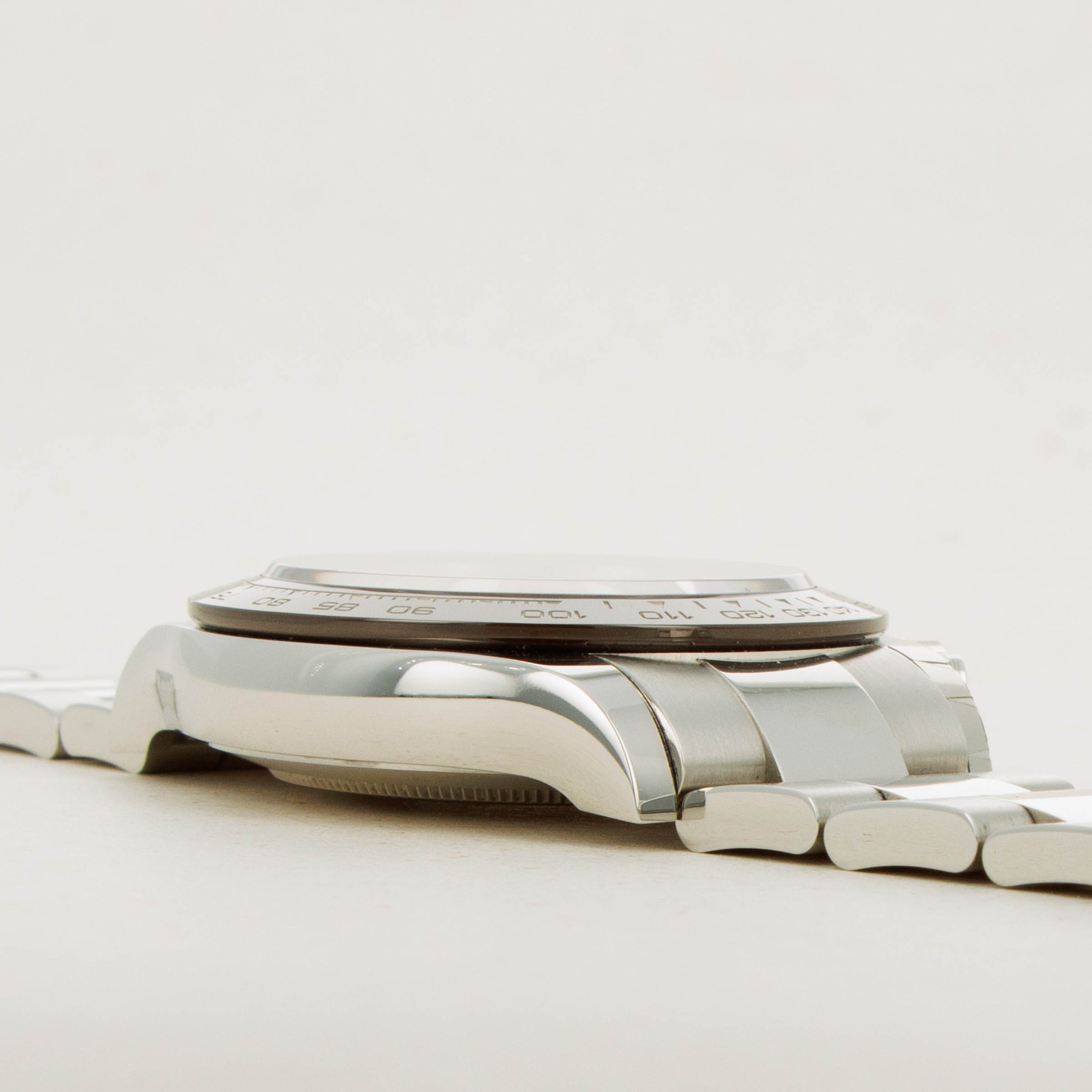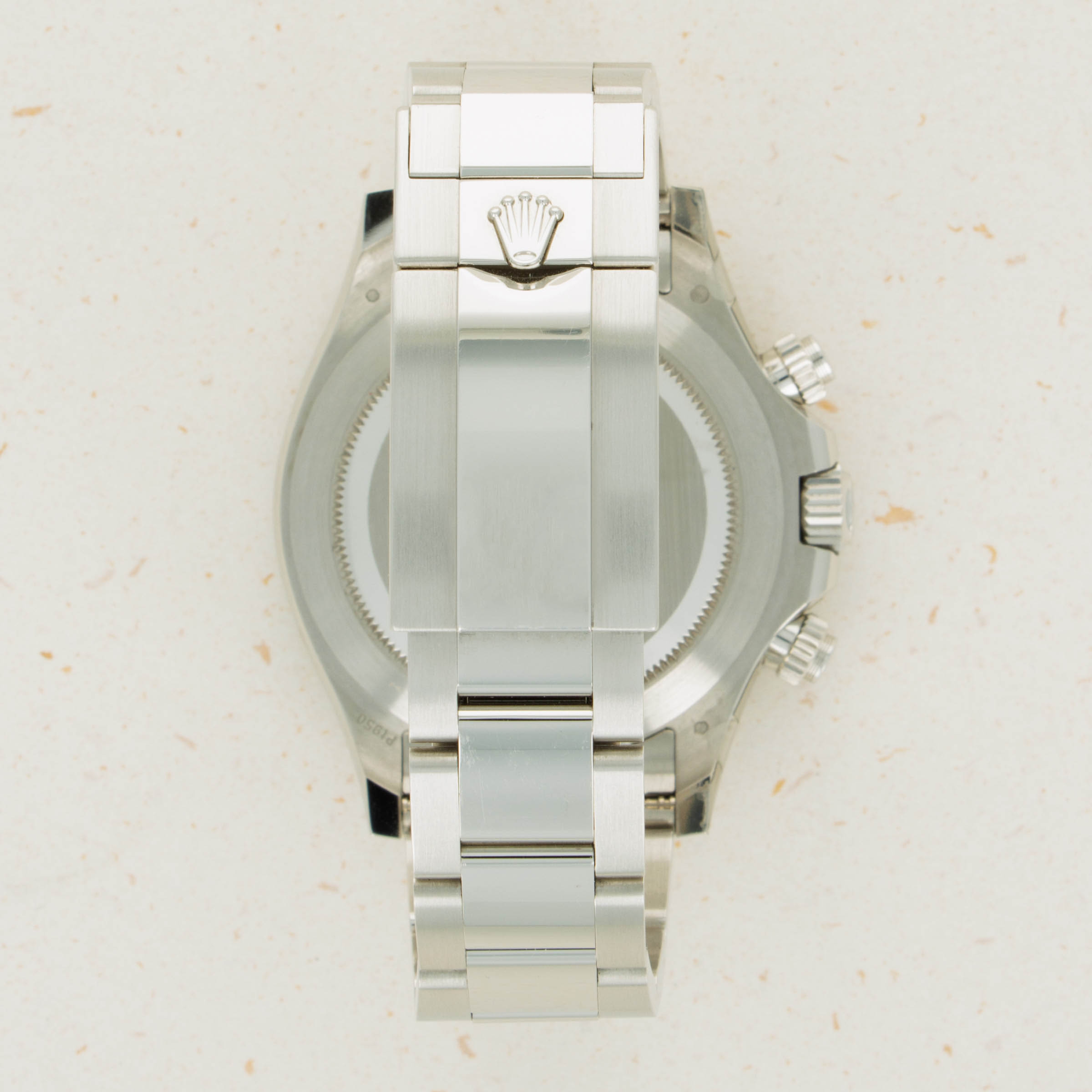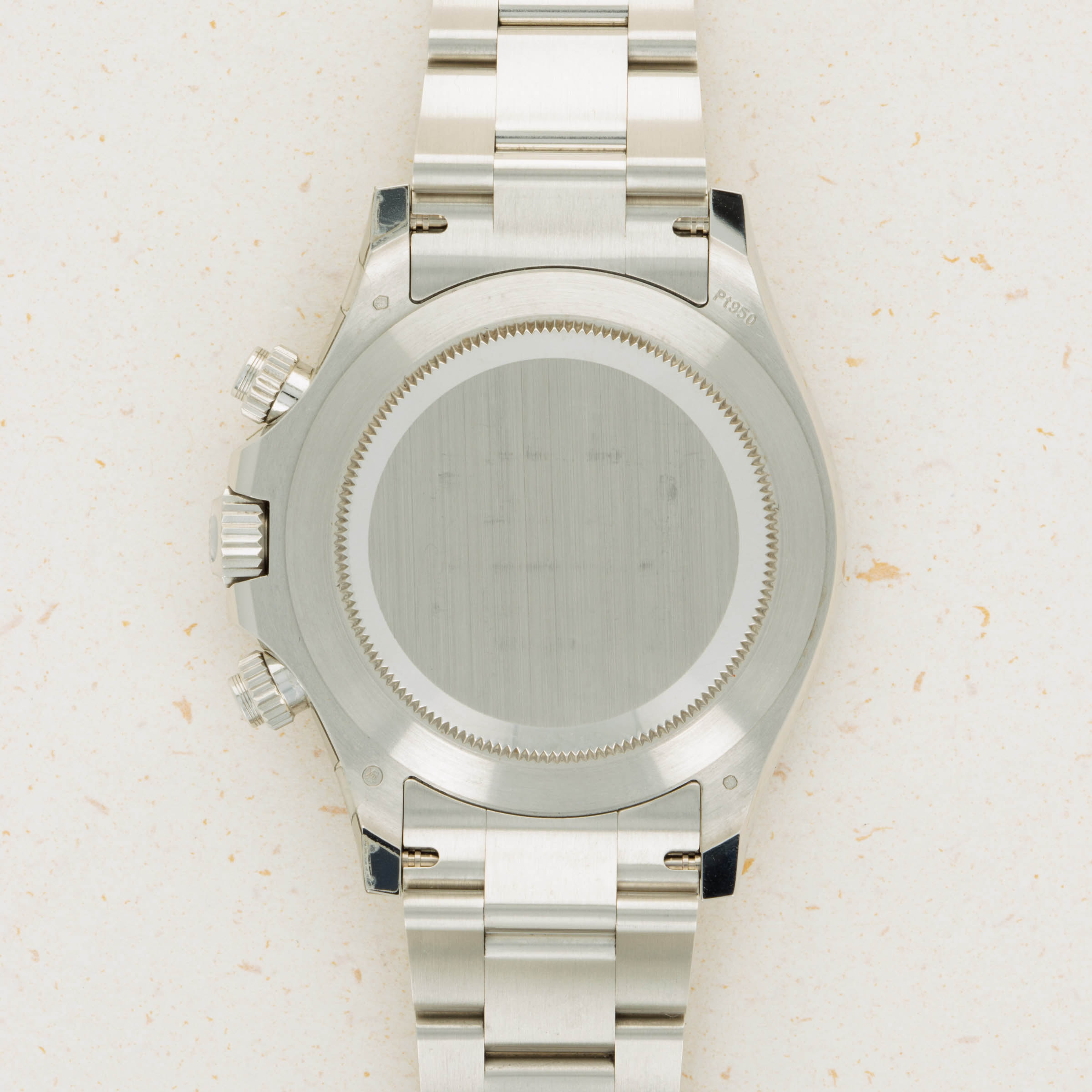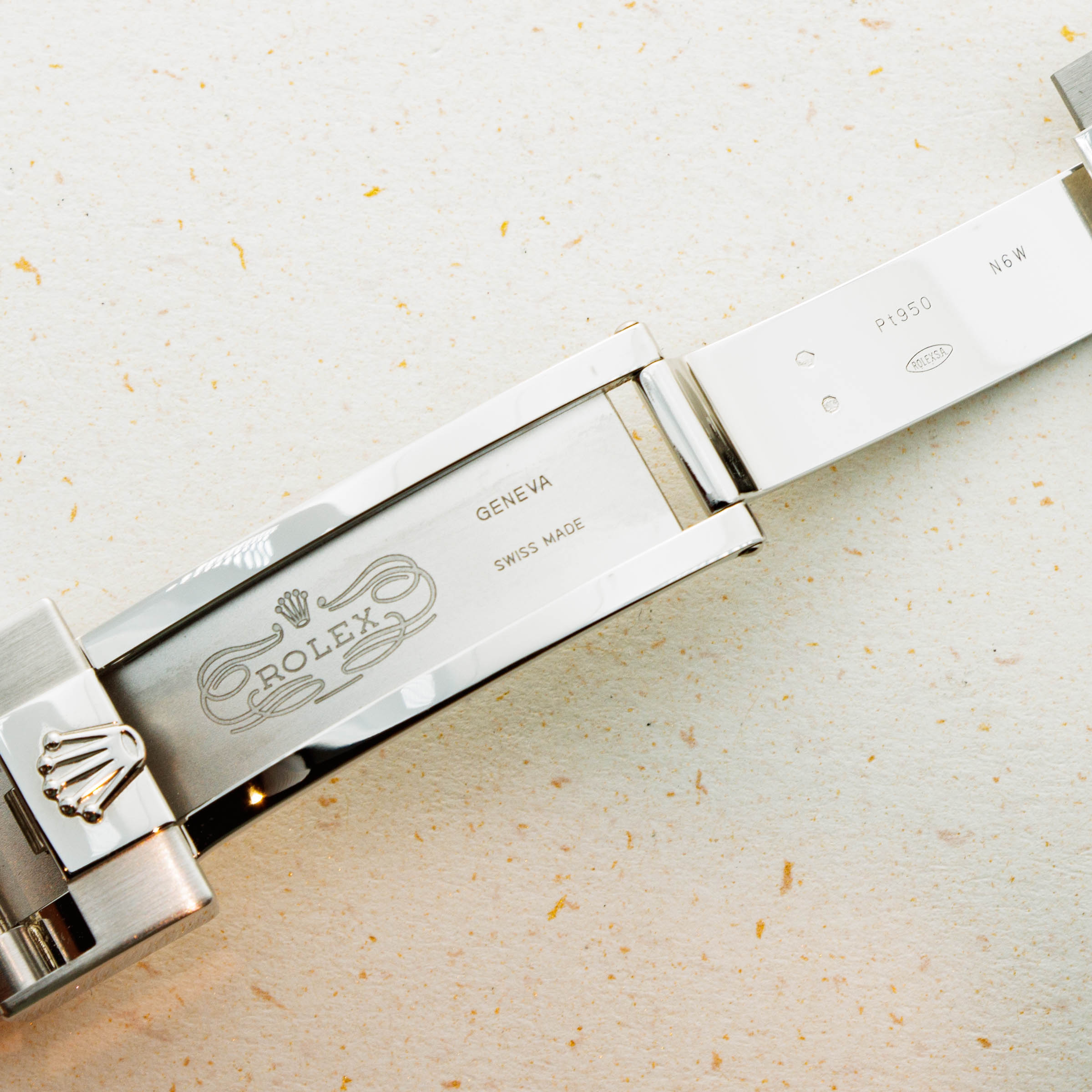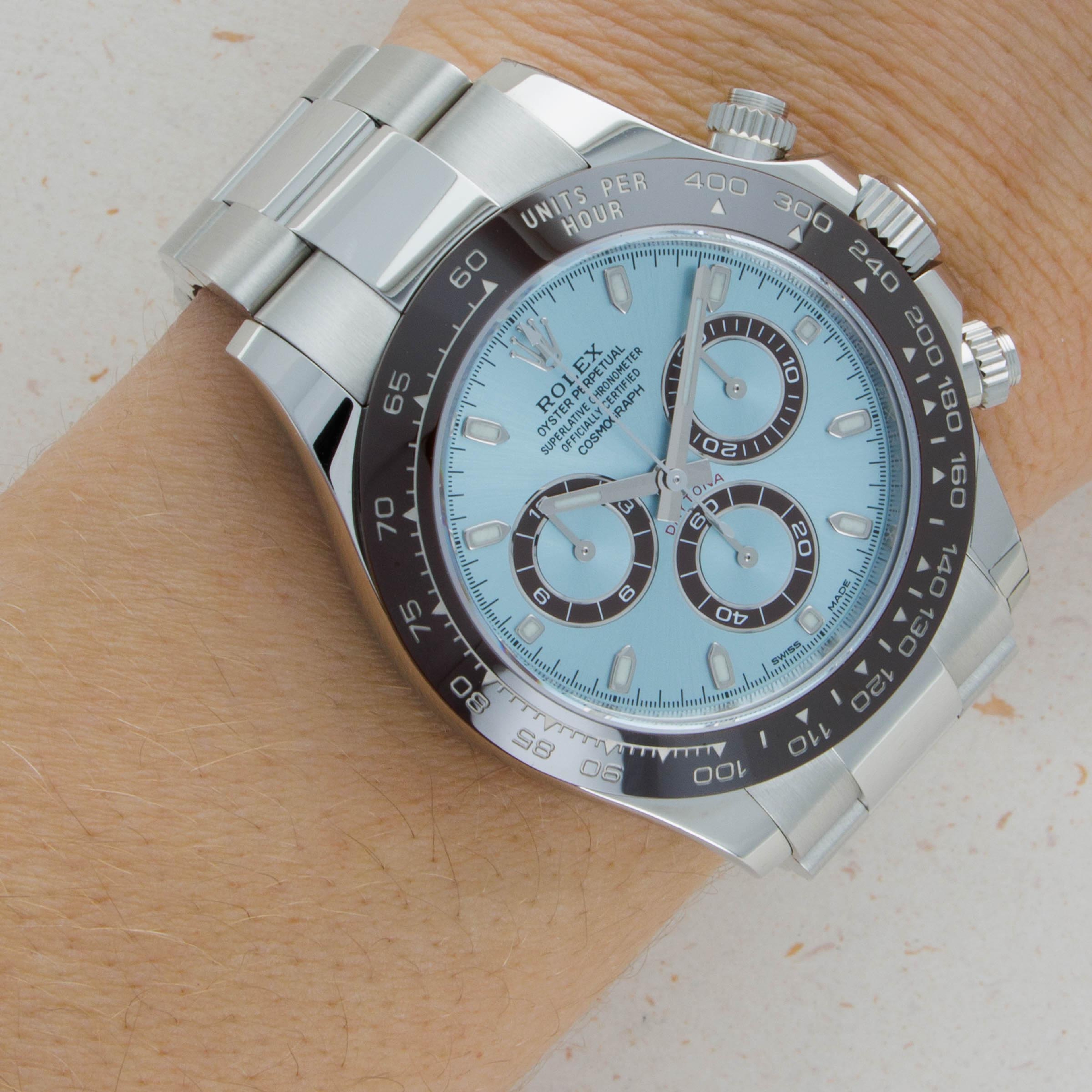 Boasting an ice blue dial that is exclusive to platinum Rolex models, this Daytona immediately reveals to those in the know that this a special watch indeed.
