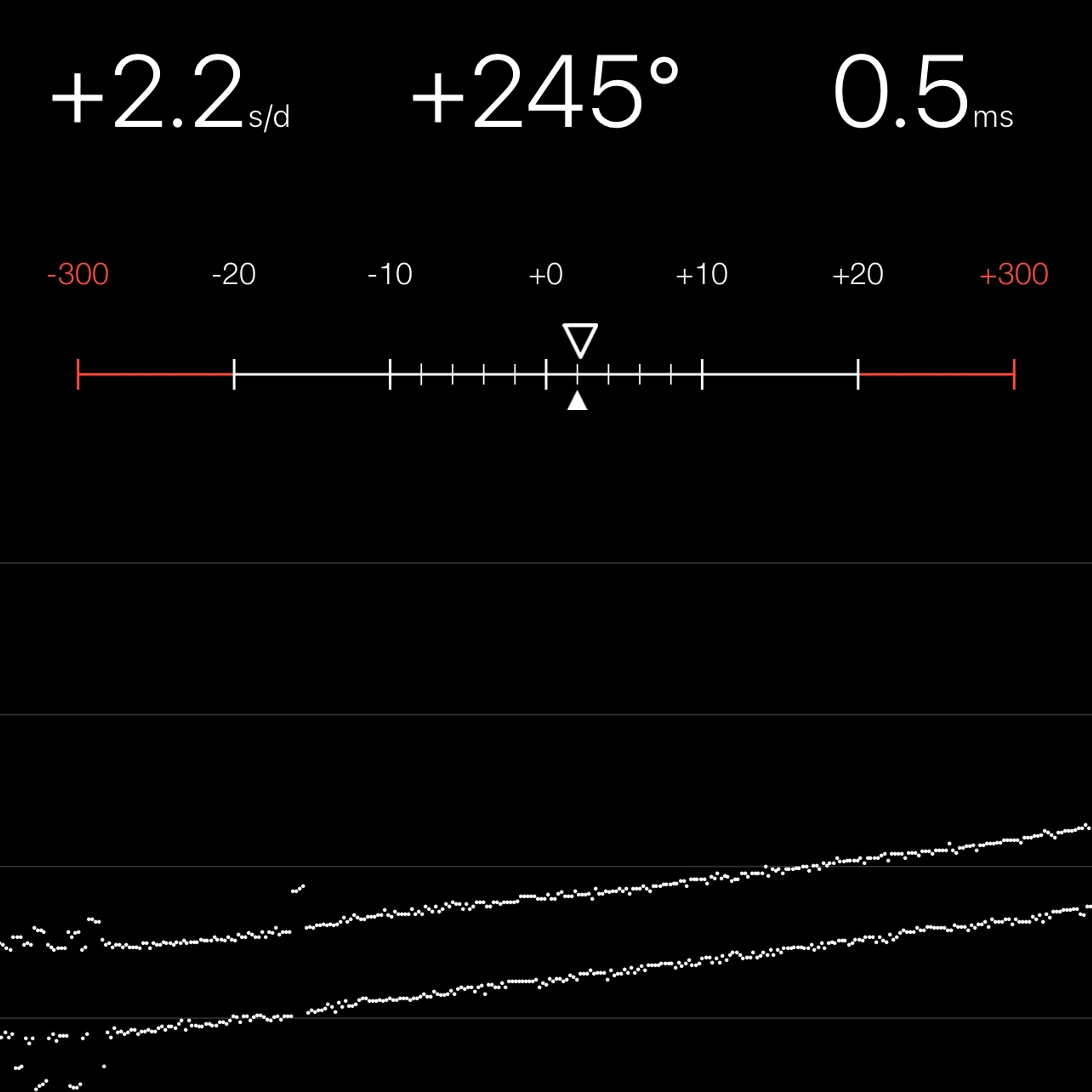 This reading was taken (crown down) with a ONEOF Accuracy Boutique Edition timing machine at time of cataloging. It is provided as a courtesy only, and shall not be construed as a warranty or guarantee of any kind. Please refer to our terms and conditions of sale for more information.