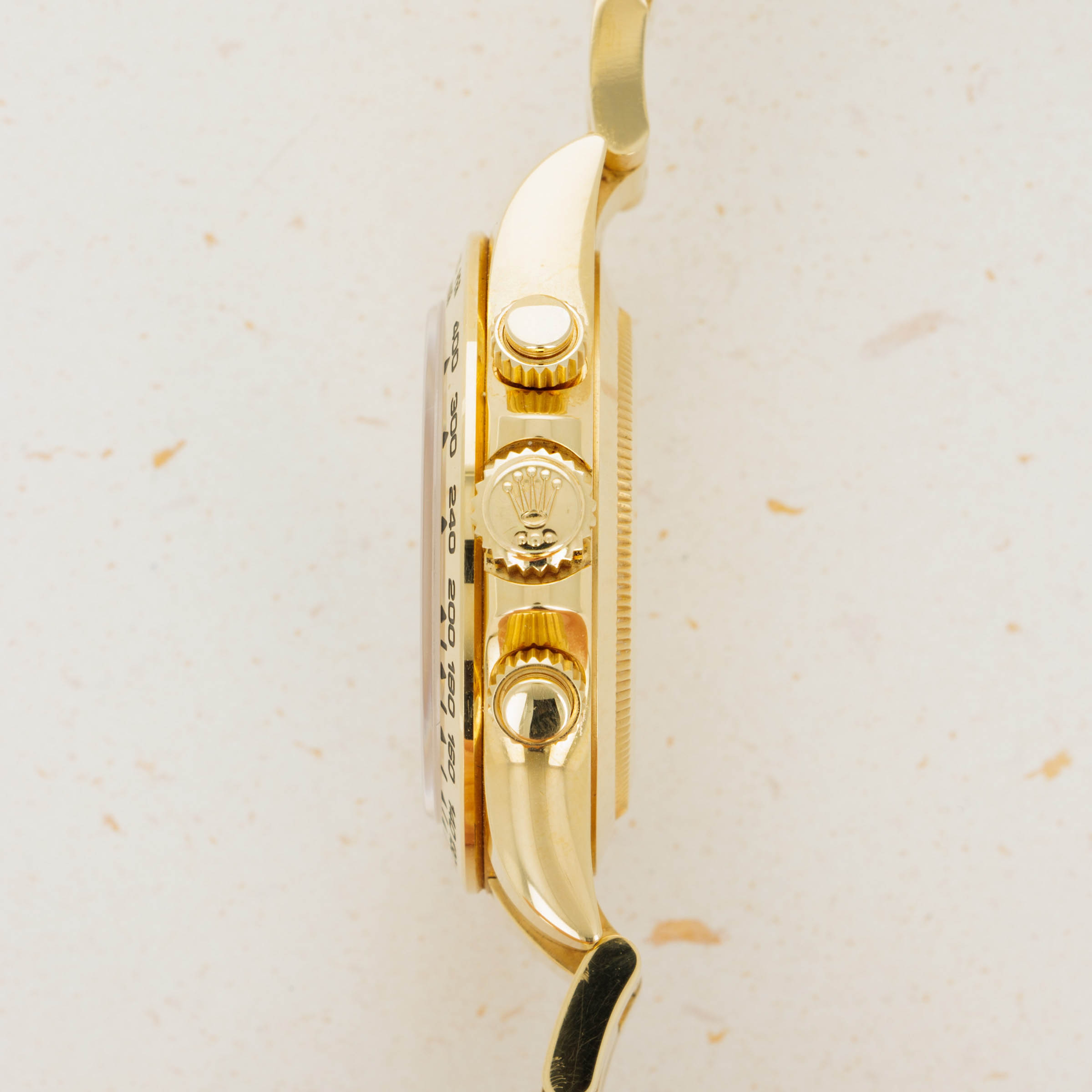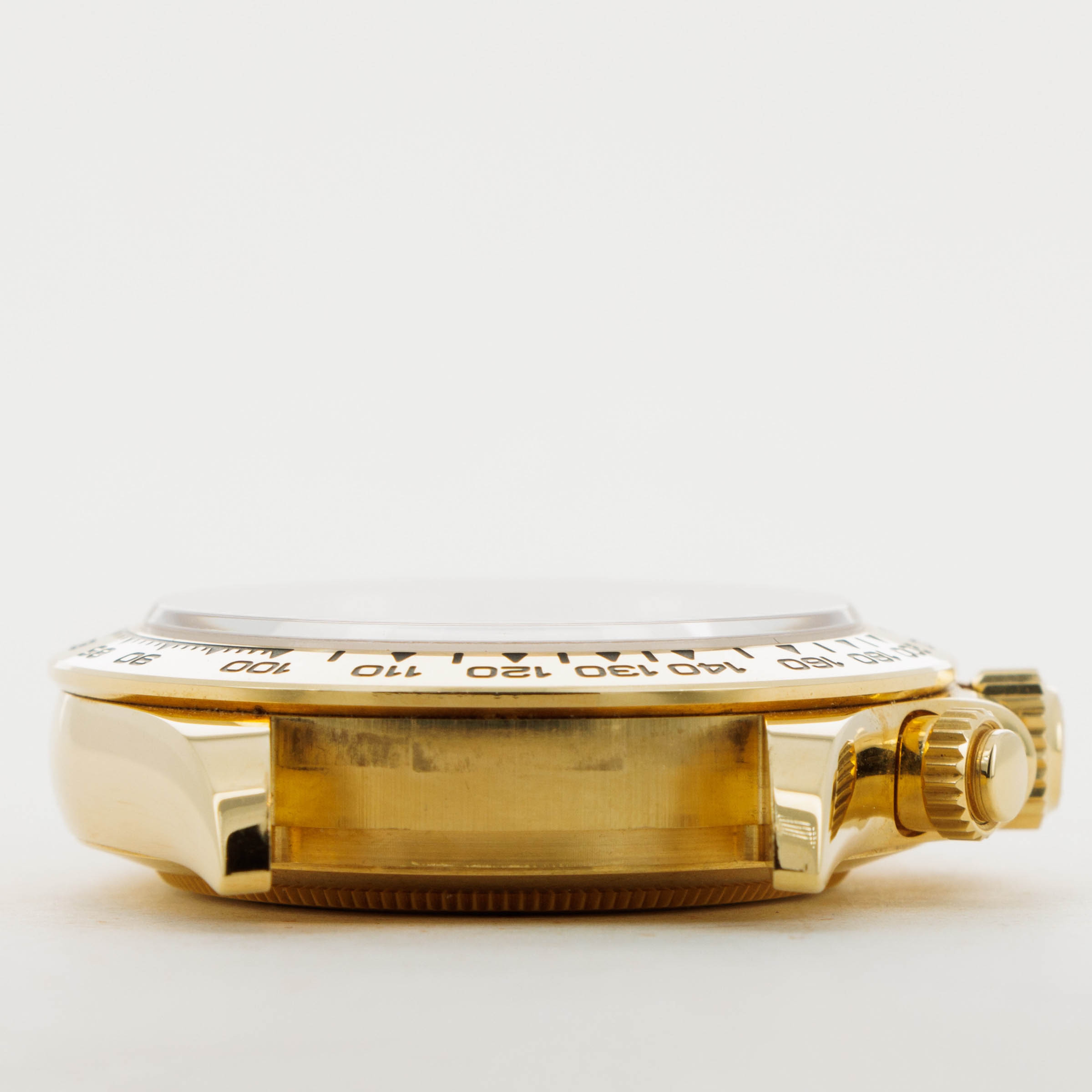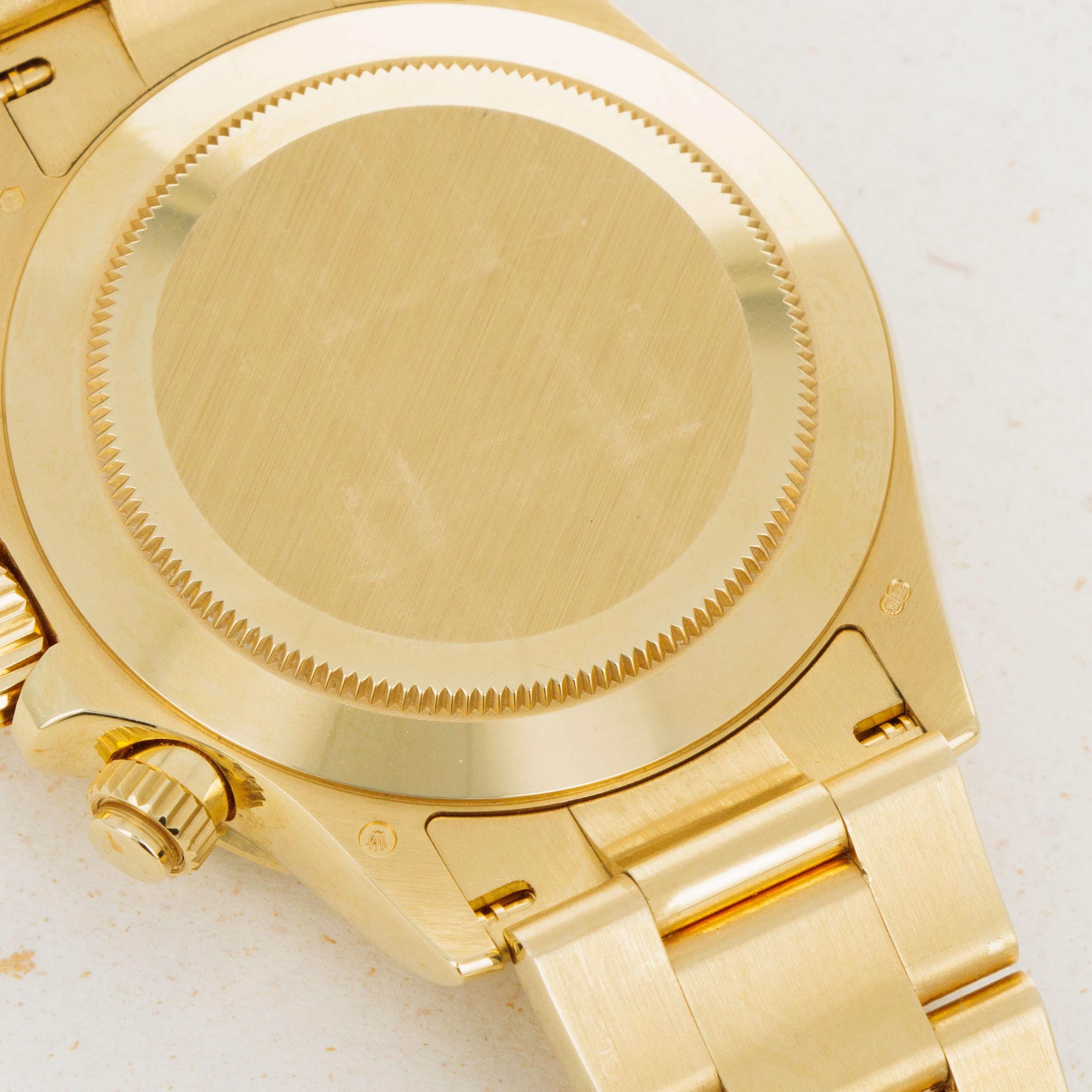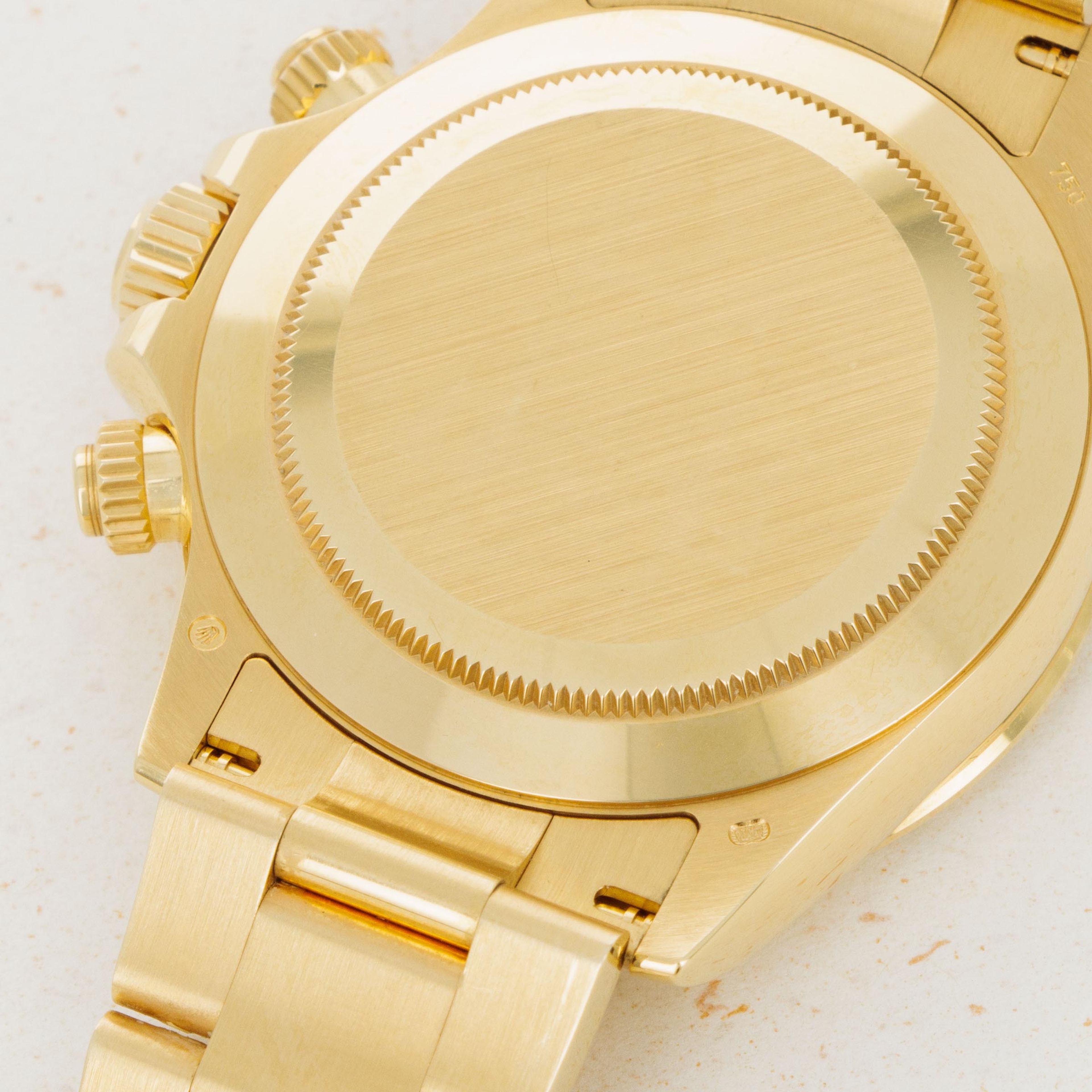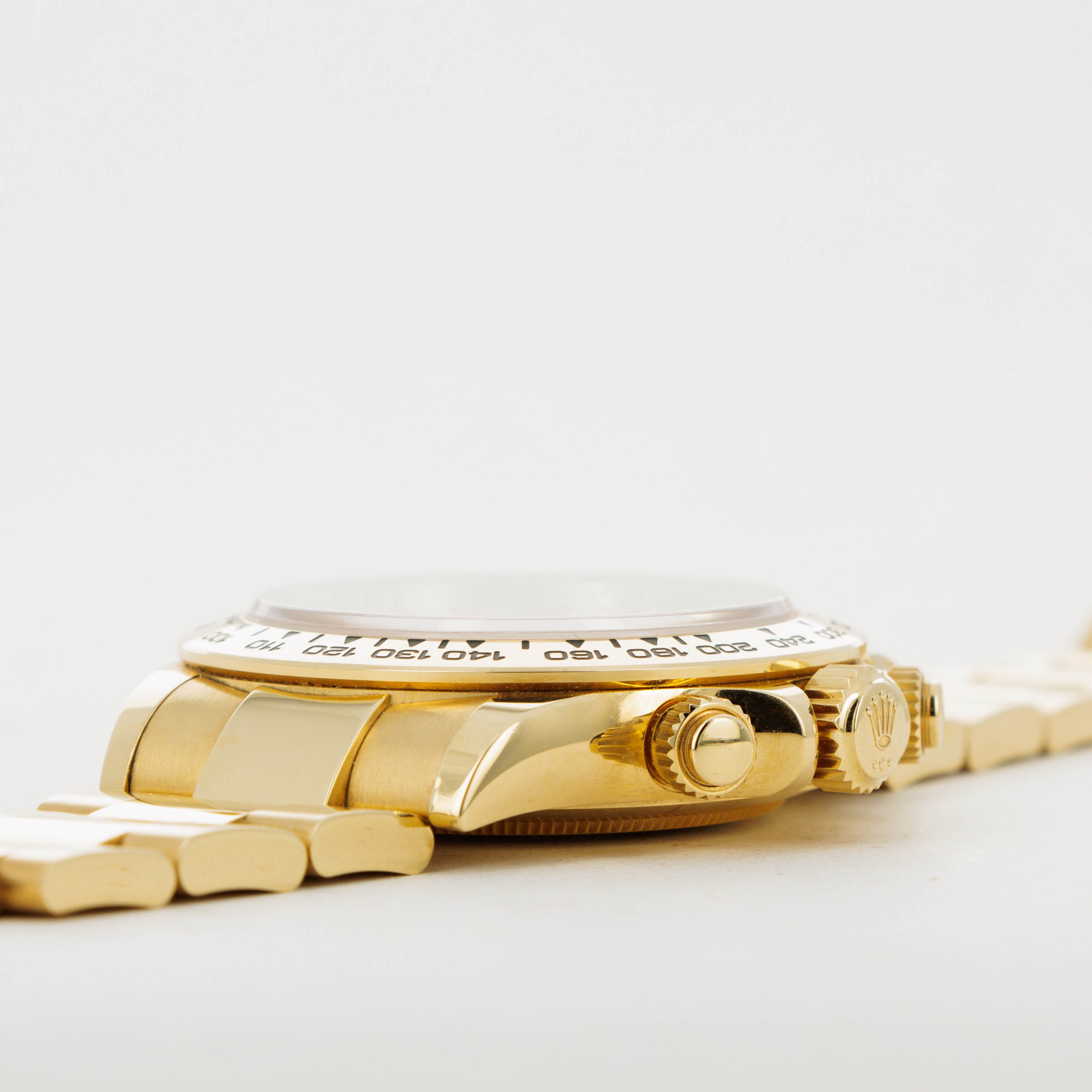 Made of 18kt yellow gold, the ref. 116508's construction is that of total luxury. and is complete with an 18kt yellow gold bracelet, an increasingly rare feature of precious metal Daytonas due to the proliferation of the Oysterflex bracelet across the collection.