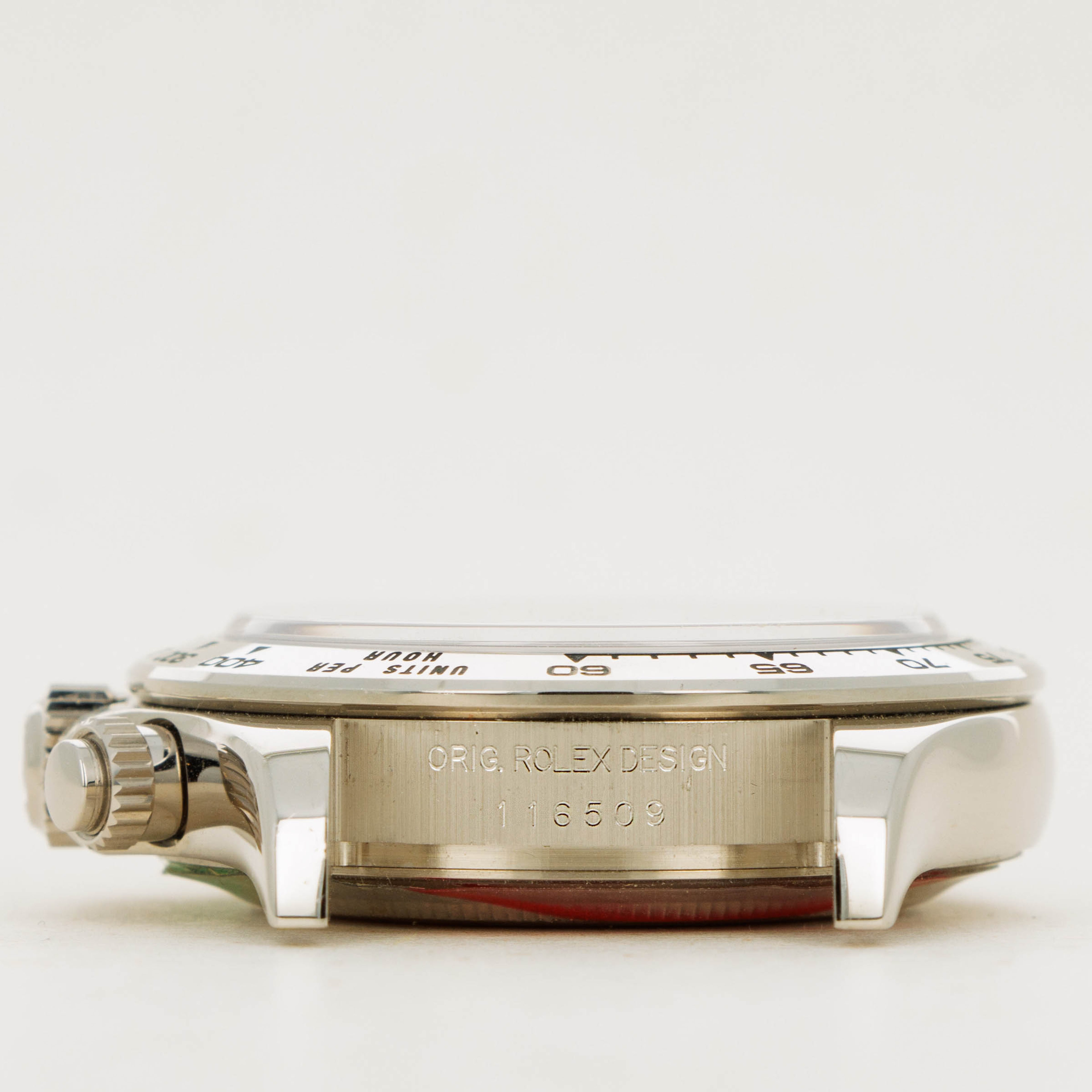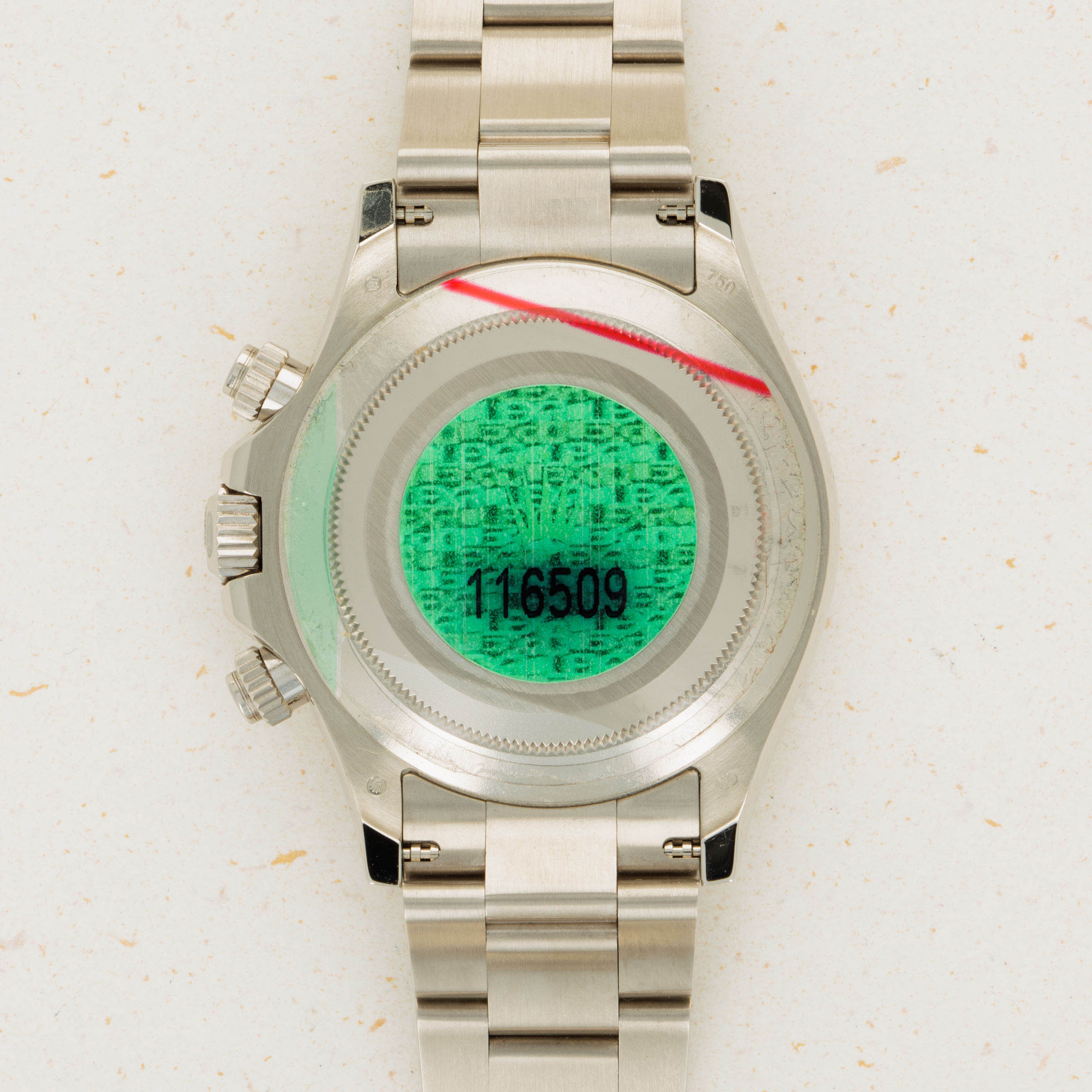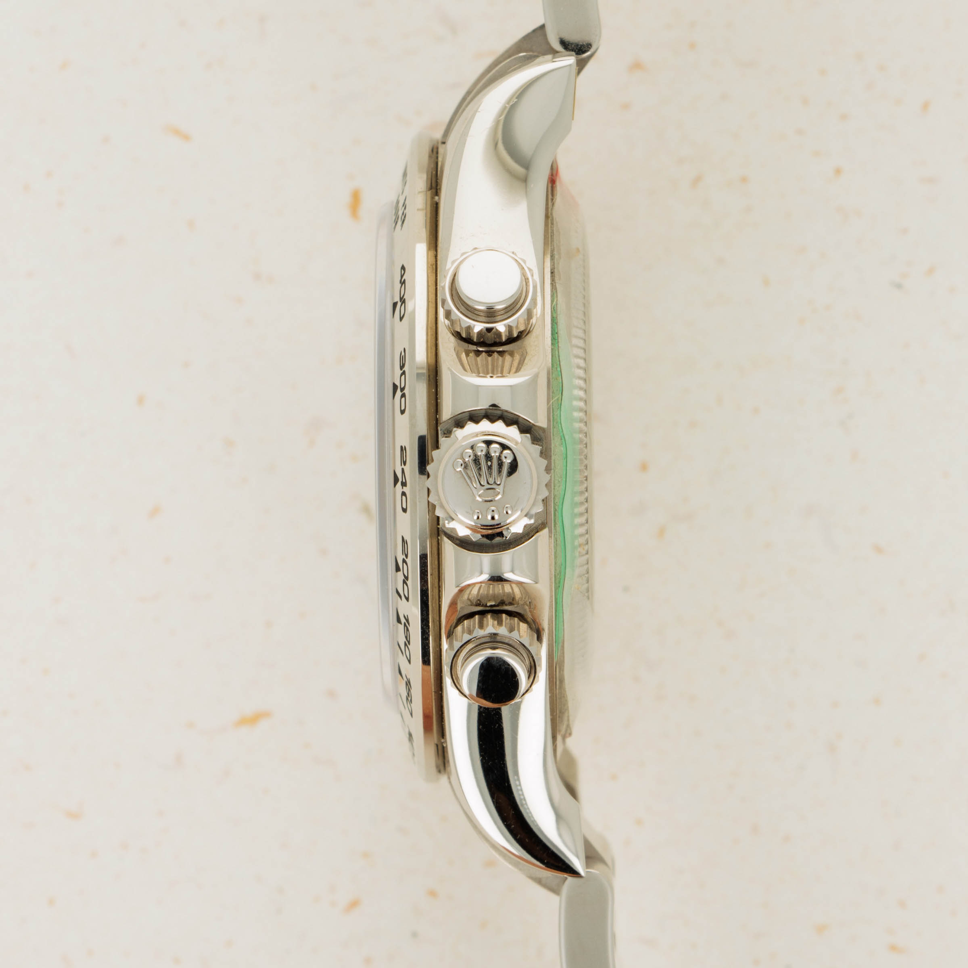 Ever since it was first launched in 1963, the Rolex Daytona has had an abundance of incredible variants join its ranks. From vintage diamond-studded yellow gold variants to modern stainless steel variants with ceramic bezels, the collection has seen it all. Perhaps one of the most luxurious of all of those is the ref. 116509 that we have here. Debuting in the year 2000 alongside the birth of the current third generation of Daytona, the ref. 116509 features the Daytona’s latest movement, the automatic cal. 4130. However, since its discontinuation, it has remained as one of the most simultaneously luxurious and understated Daytona variants around. Sporting an entirely 18kt white gold construction, the ref. 116509 is a hefty timepiece indeed, but with the added weight of its mother-of-pearl dial, it is a watch whose aesthetic is entirely monochromatic, and its luxurious heft is almost entirely unrivaled. Featuring understated 0-60 minute-style applied Arabic numerals atop its mother of pearl dial, the ref. 116509’s appearance is simply out of this world. Combined with the fact that its internals are almost exactly as capable as Rolex's most modern chronograph movement, and its construction is made of the finest materials, the ref. 116509 is seriously deserving of its position as one of the best and most luxurious neo-vintage Daytona variants on the market.