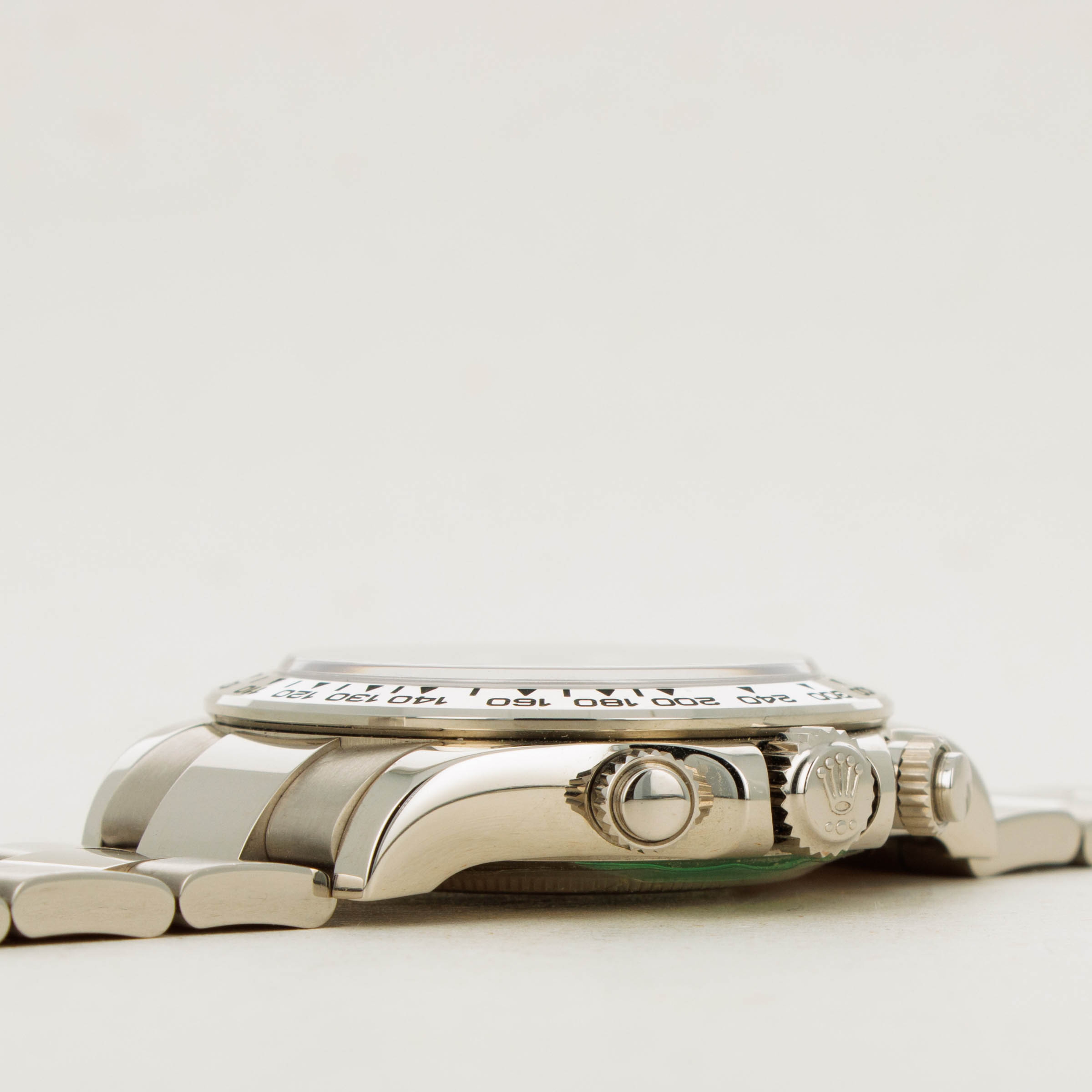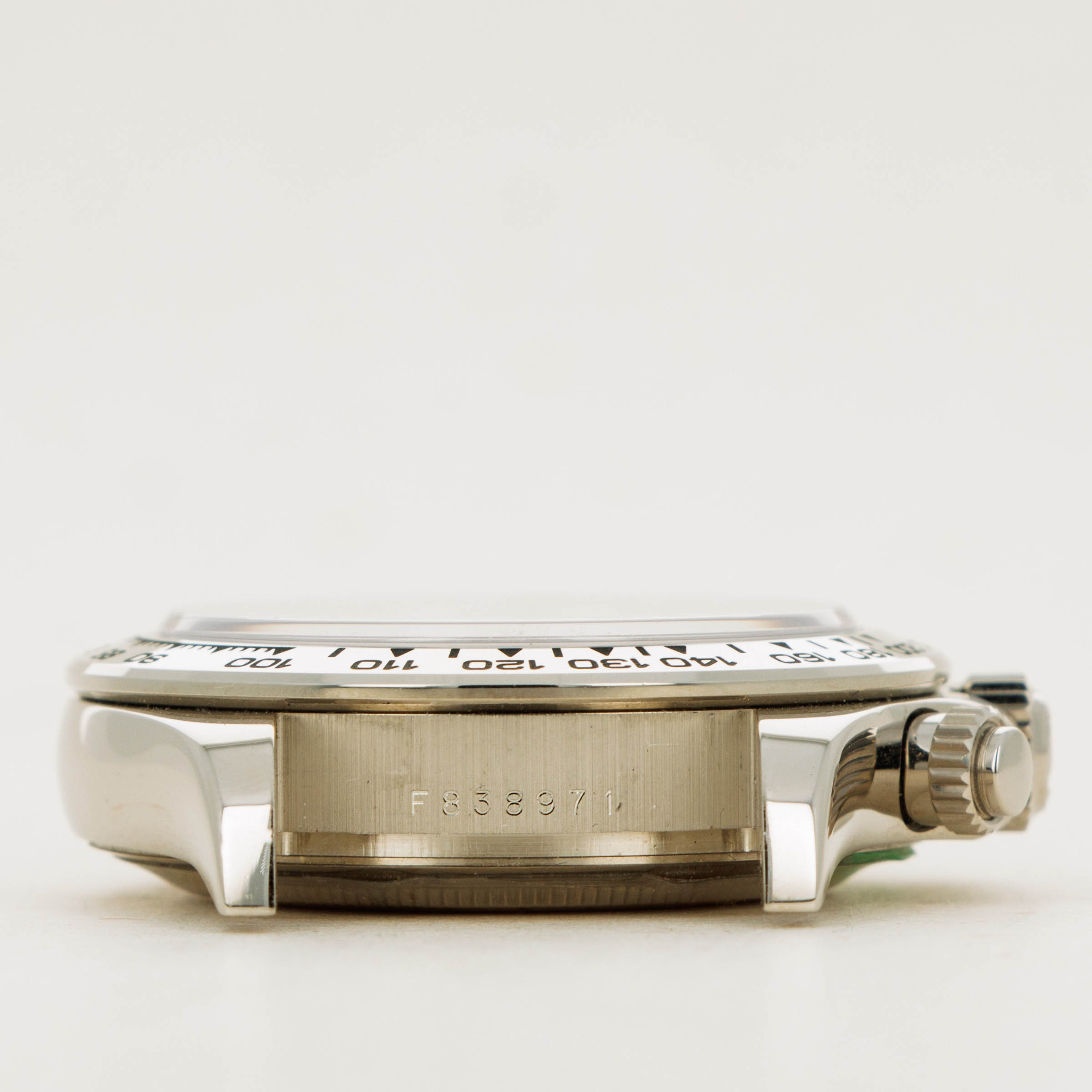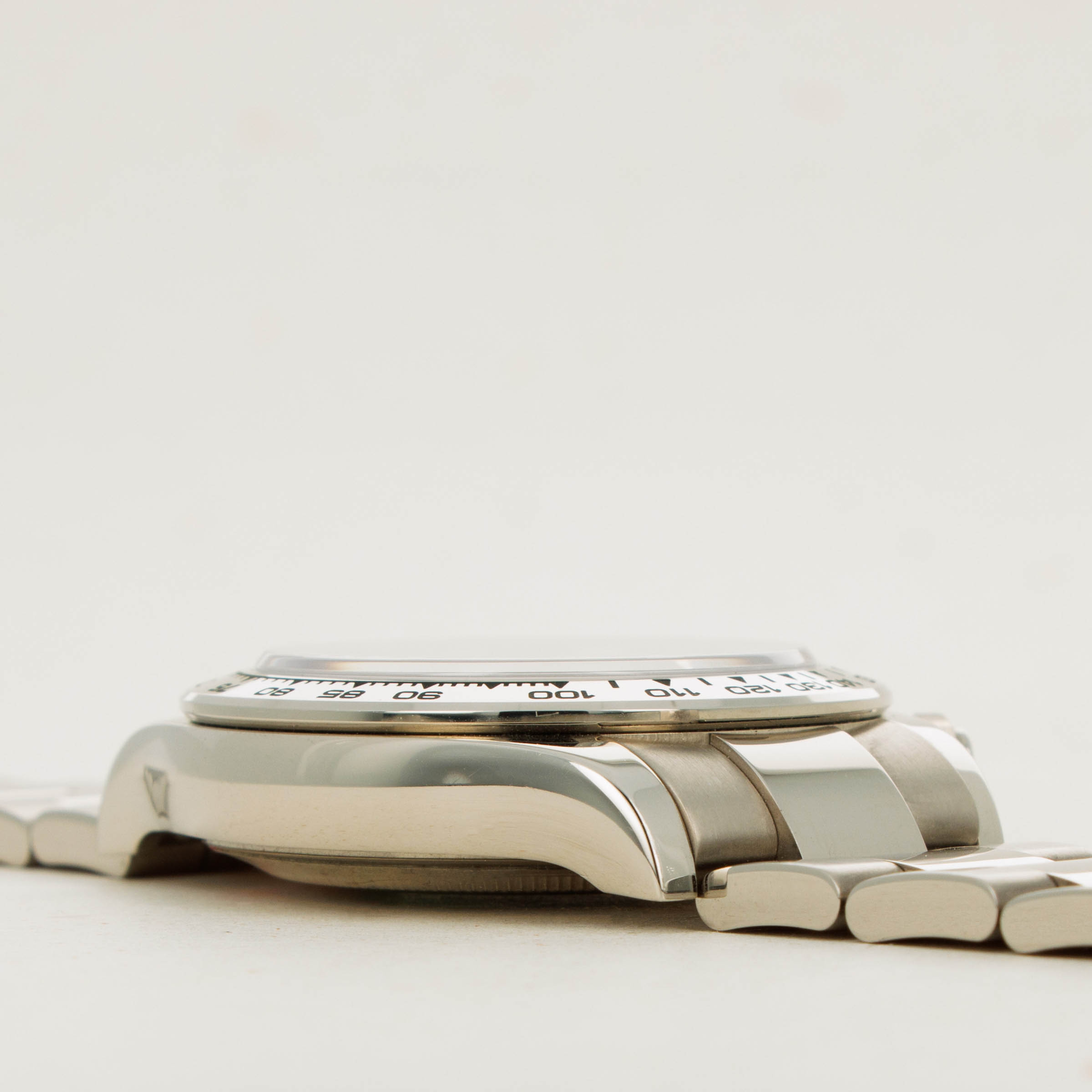 Ever since it was first launched in 1963, the Rolex Daytona has had an abundance of incredible variants join its ranks. From vintage diamond-studded yellow gold variants to modern stainless steel variants with ceramic bezels, the collection has seen it all. Perhaps one of the most luxurious of all of those is the ref. 116509 that we have here. Debuting in the year 2000 alongside the birth of the current third generation of Daytona, the ref. 116509 features the Daytona’s latest movement, the automatic cal. 4130. However, since its discontinuation, it has remained as one of the most simultaneously luxurious and understated Daytona variants around. Sporting an entirely 18kt white gold construction, the ref. 116509 is a hefty timepiece indeed, but with the added weight of its mother-of-pearl dial, it is a watch whose aesthetic is entirely monochromatic, and its luxurious heft is almost entirely unrivaled. Featuring understated 0-60 minute-style applied Arabic numerals atop its mother of pearl dial, the ref. 116509’s appearance is simply out of this world. Combined with the fact that its internals are almost exactly as capable as Rolex's most modern chronograph movement, and its construction is made of the finest materials, the ref. 116509 is seriously deserving of its position as one of the best and most luxurious neo-vintage Daytona variants on the market.