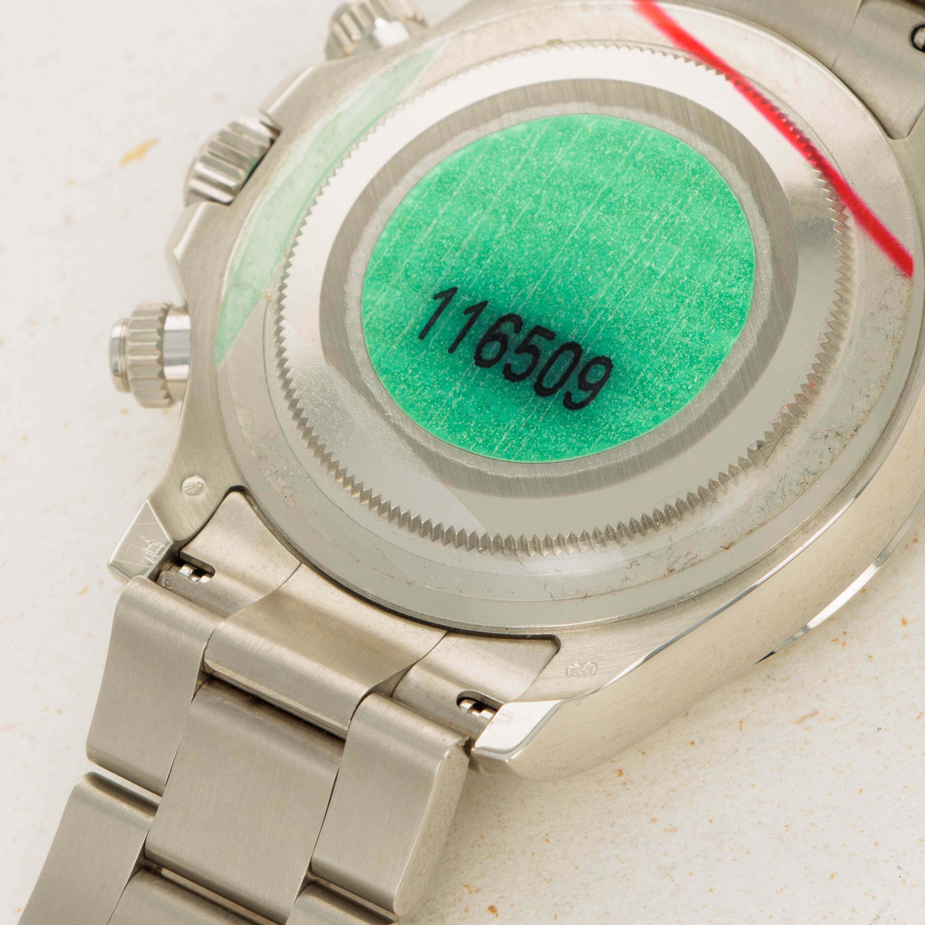 Featuring a silver Mother of Pearl dial with a translucent shimmering effect on its surface that reveals a breadth of subtle colors, this ref. 116509 feeds into the subtle luxury of a white gold timepiece all the more.