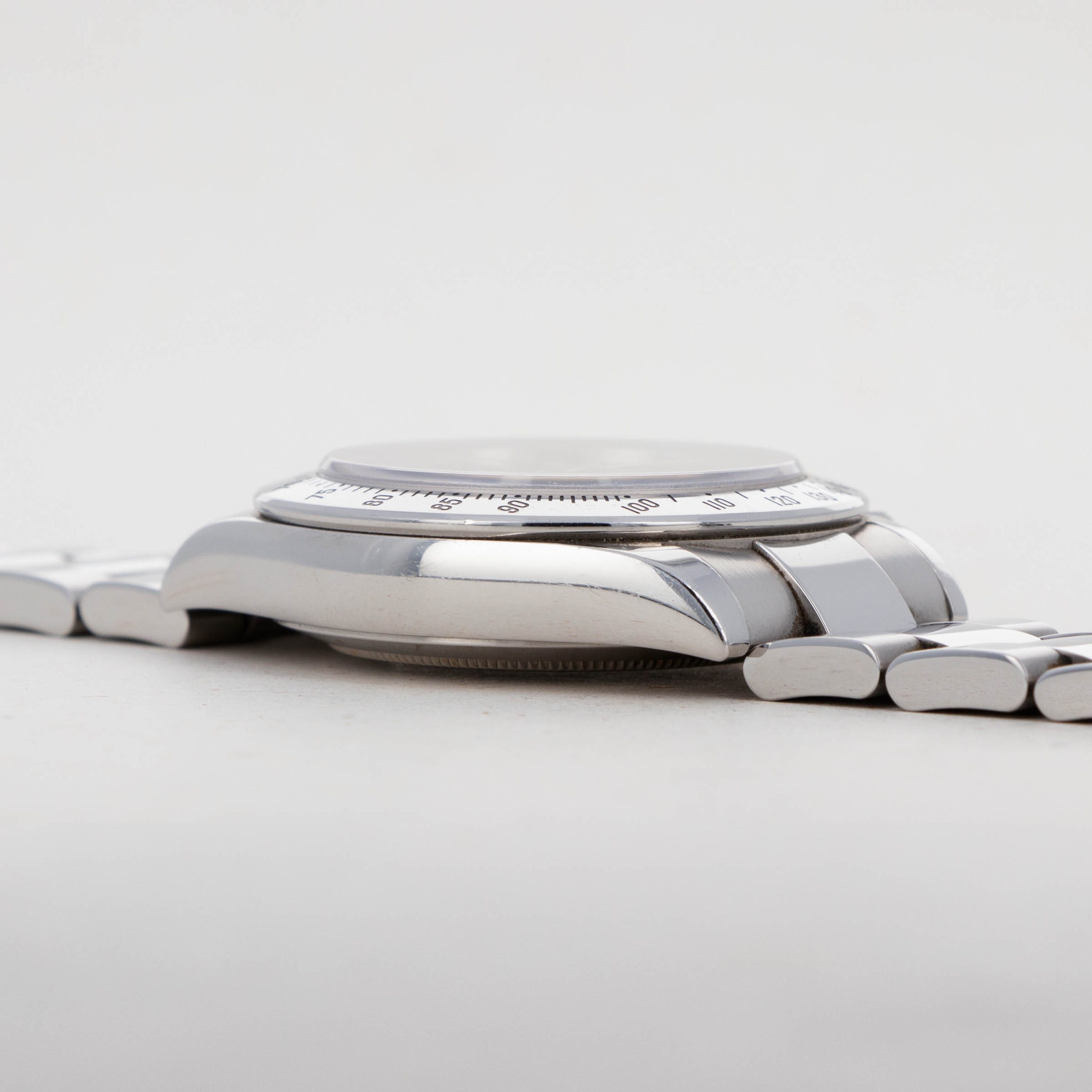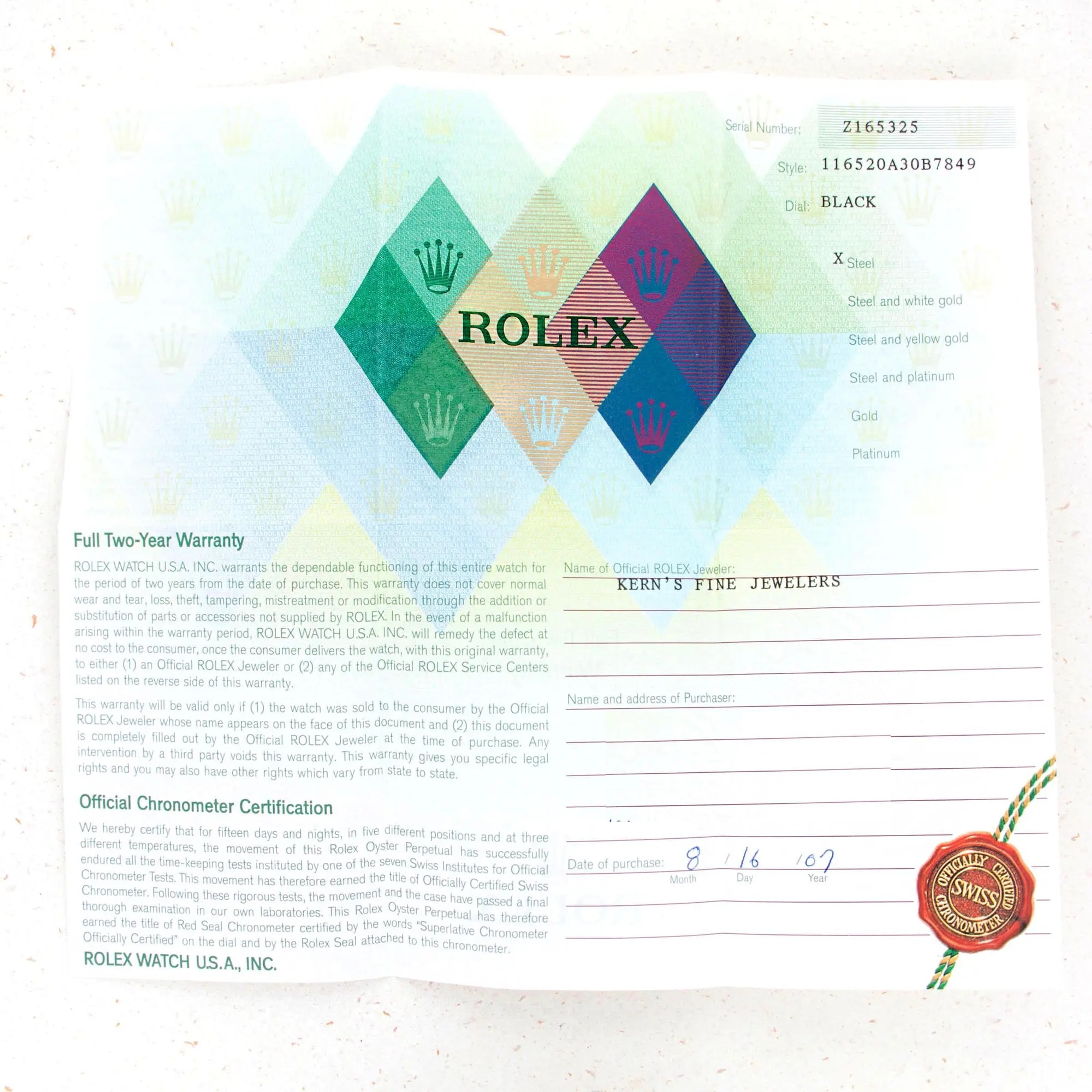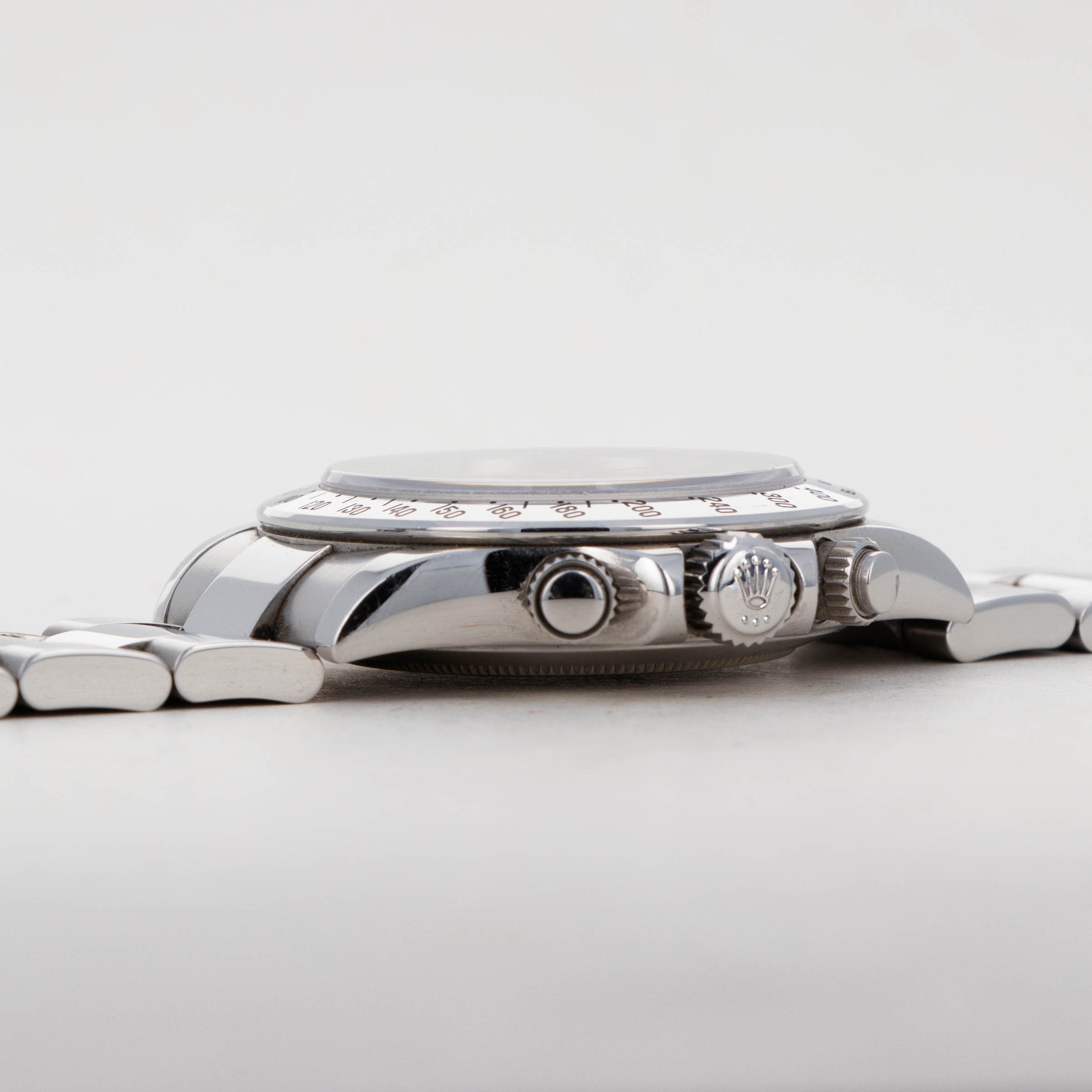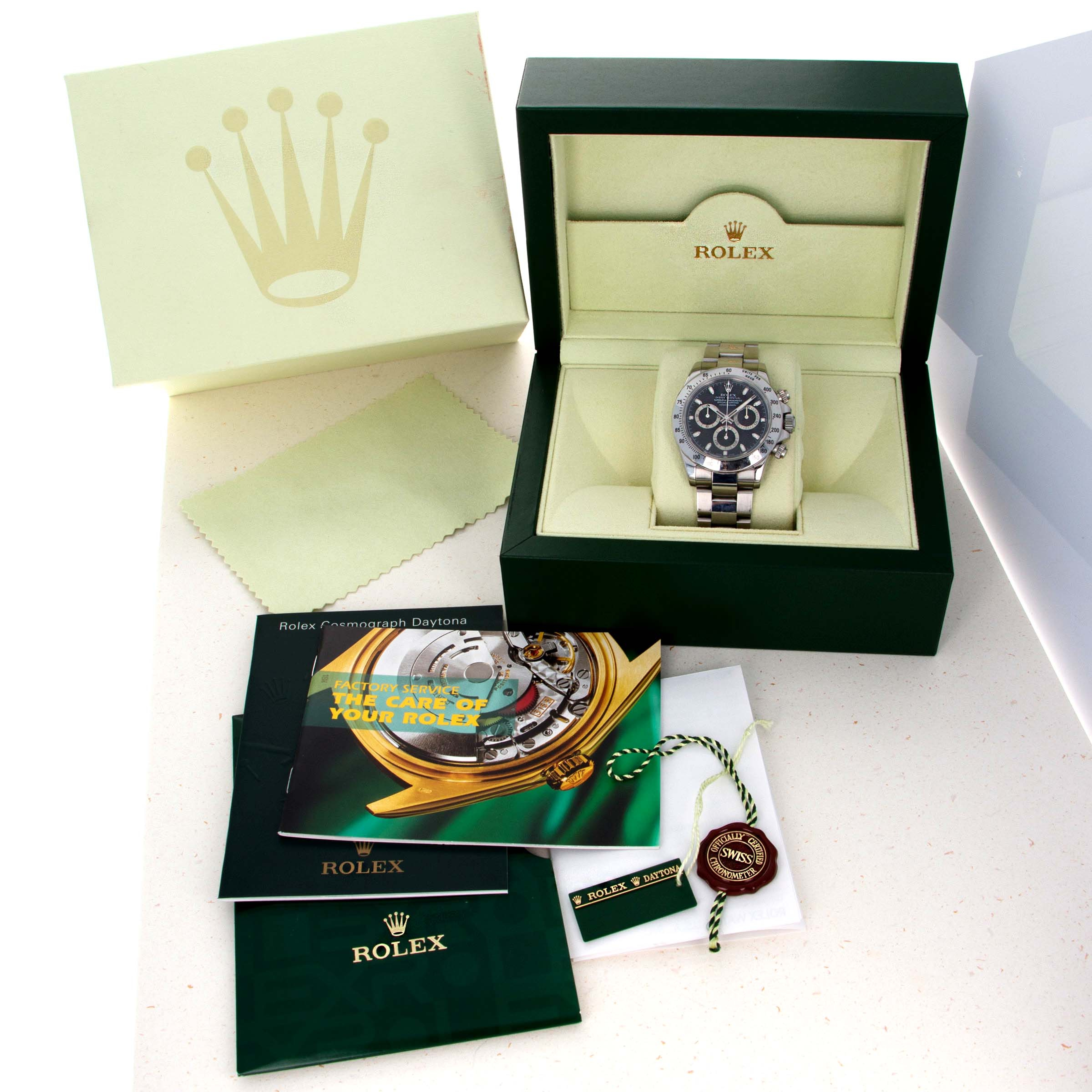 Featuring one of the most recognizable dials in all of watchmaking, the ref. 116520 sports silver subdials and 18kt white gold applied indices and hands which sit atop its black dial and reflect the aesthetic of its famed stainless steel construction.