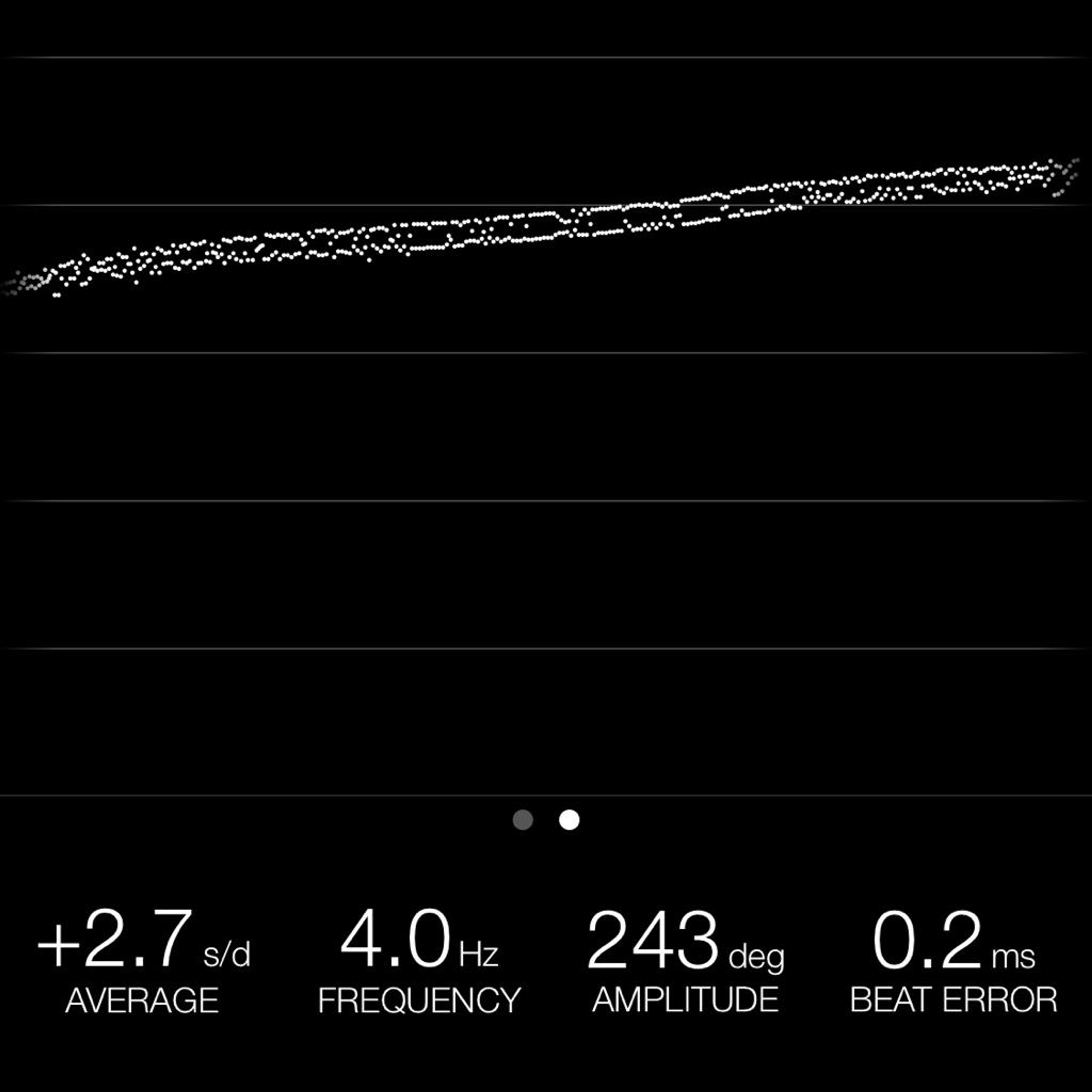 This reading was taken (crown down) with a ONEOF Accuracy Boutique Edition timing machine at time of cataloging. It is provided as a courtesy only, and shall not be construed as a warranty or guarantee of any kind. Please refer to our terms and conditions of sale for more information.