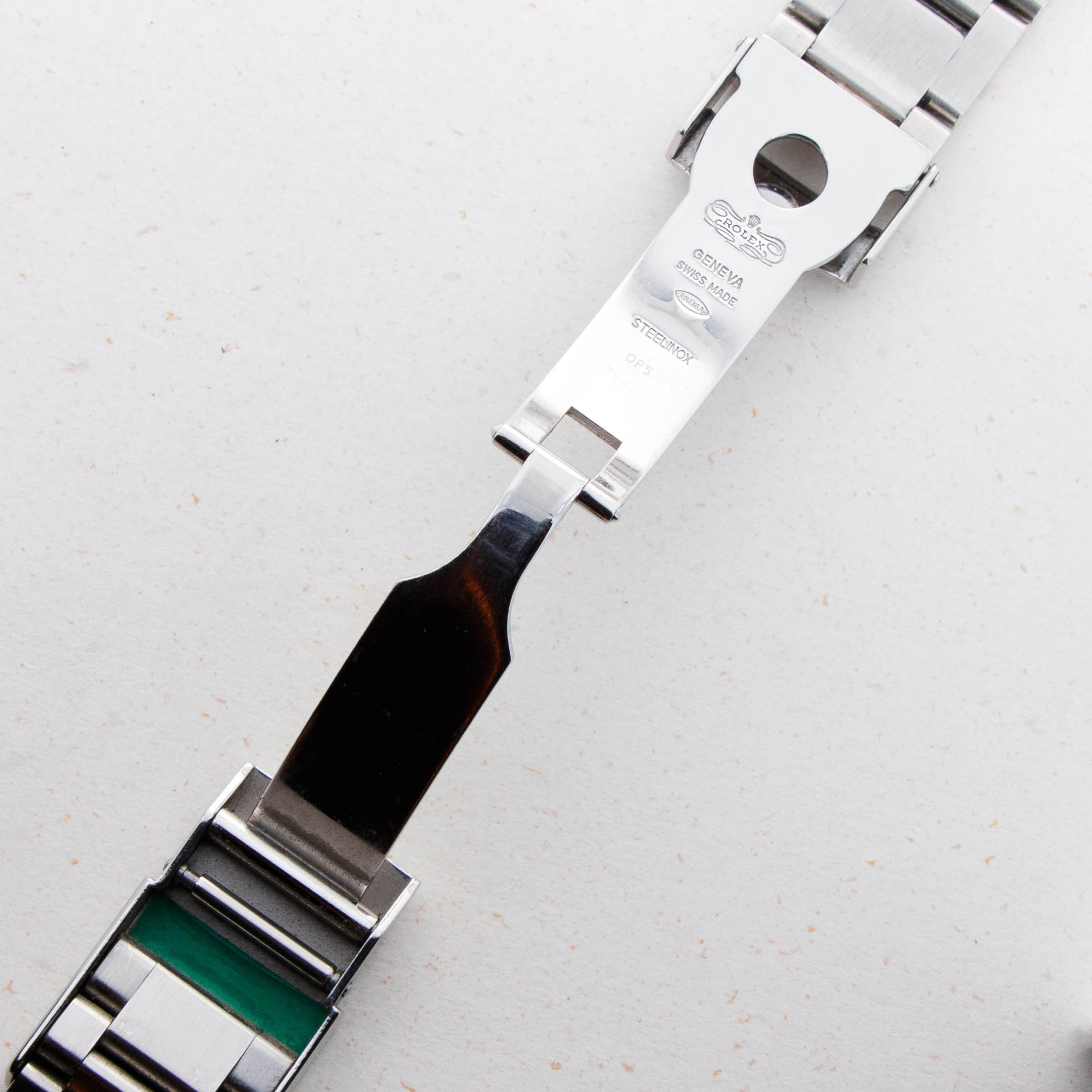 Watch is in excellent to near mint condition. There is minor surface wear evident on the watch, but nothing major. The bezel still retains all of its black enameling. Bracelet has minor surface wear through, and is full length and has little to no stretch.