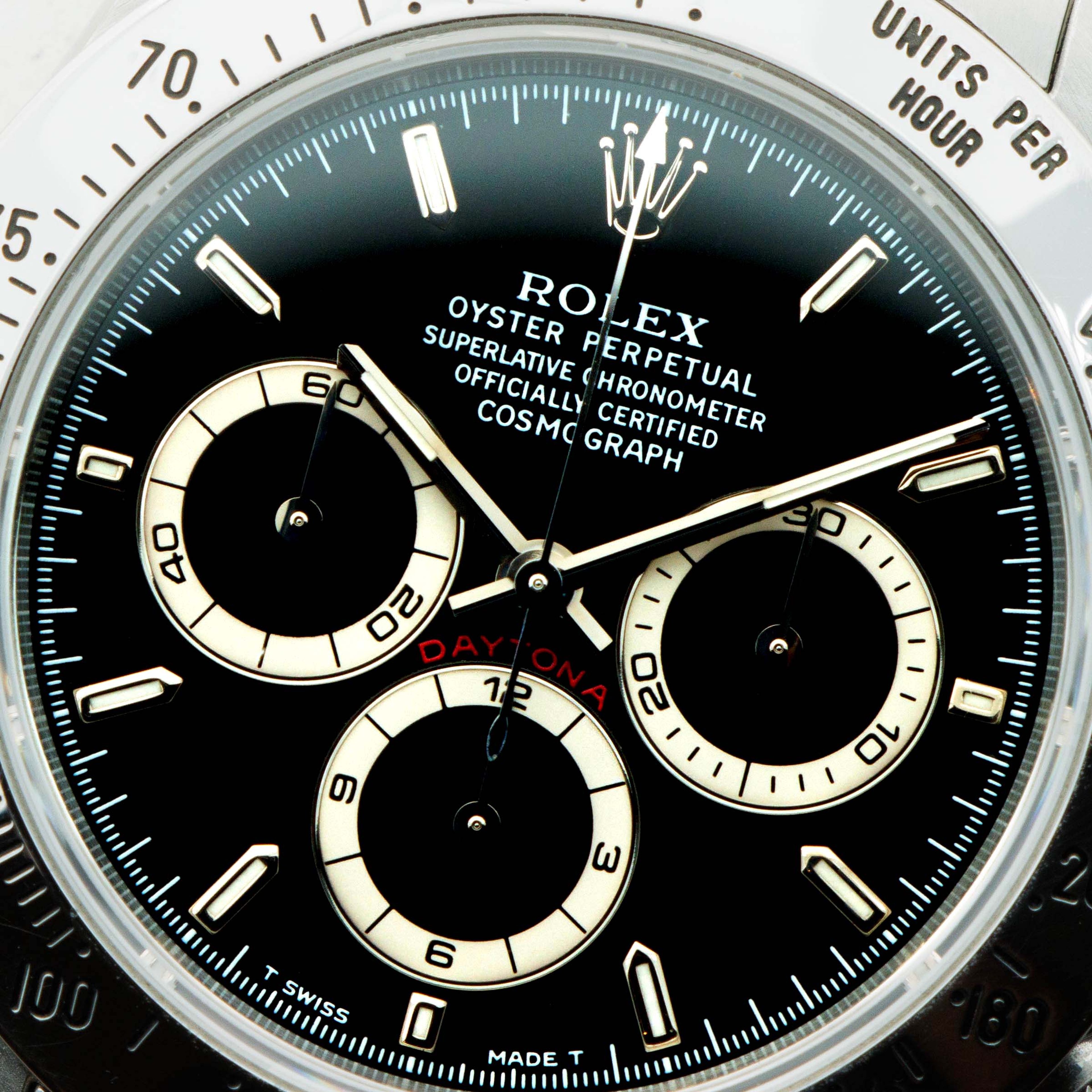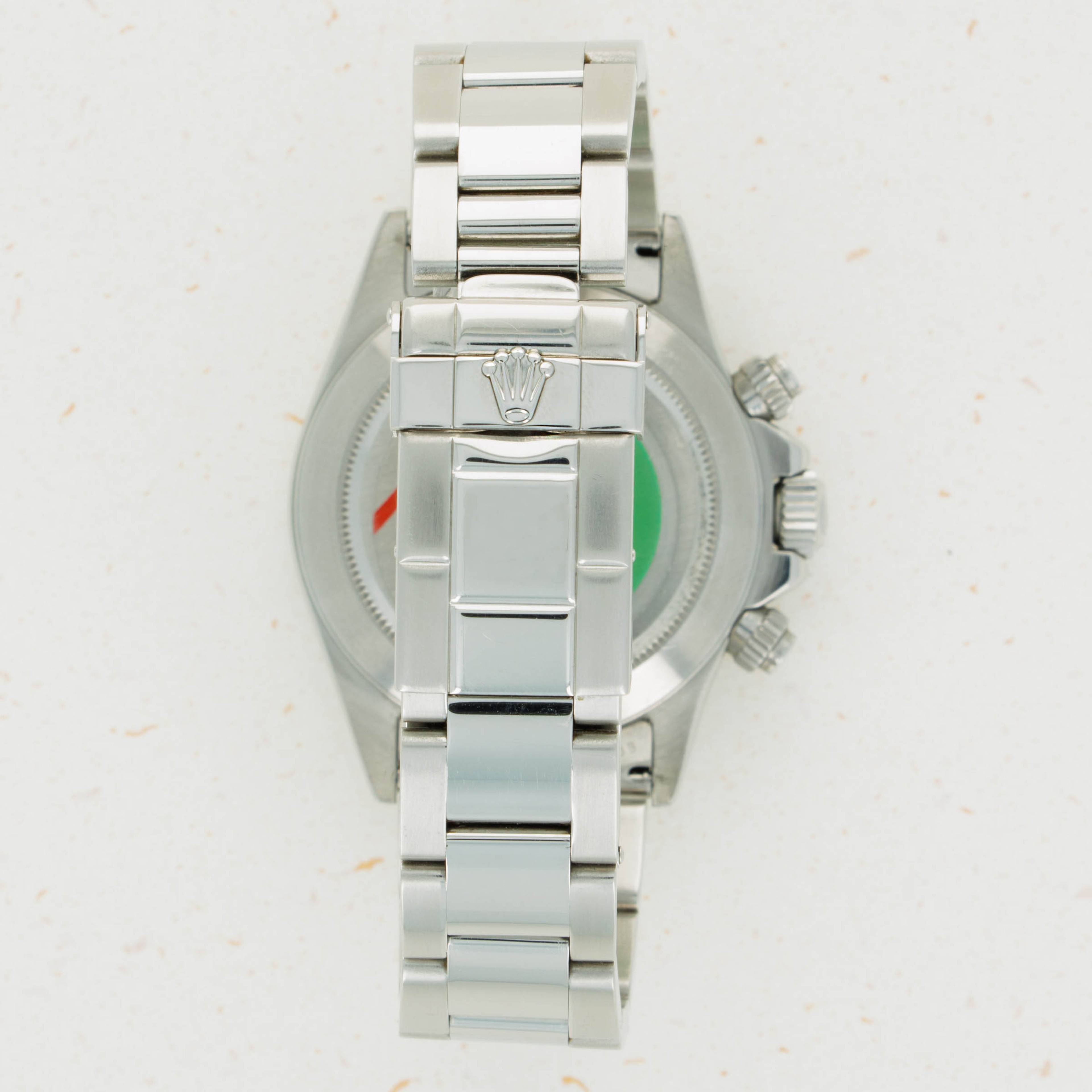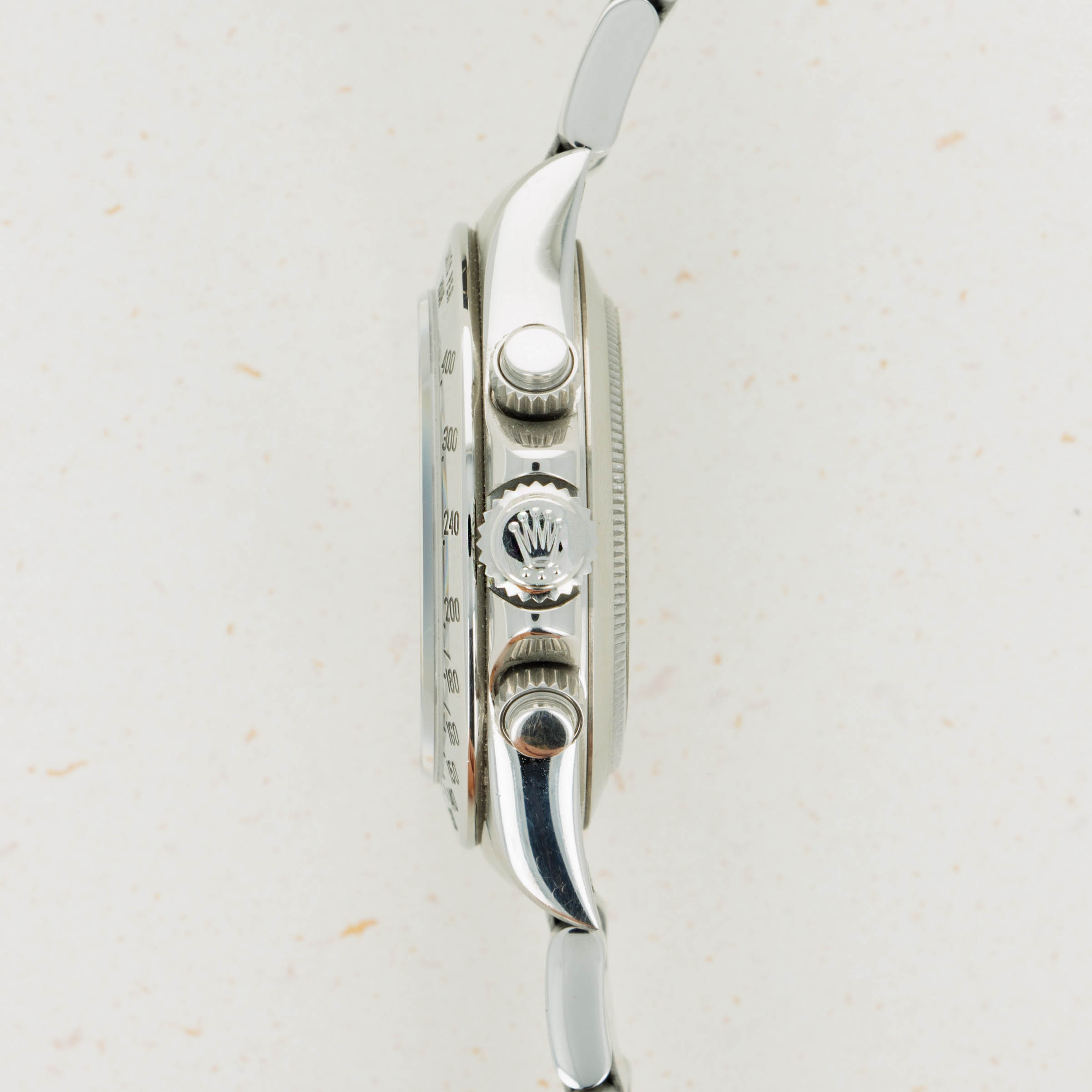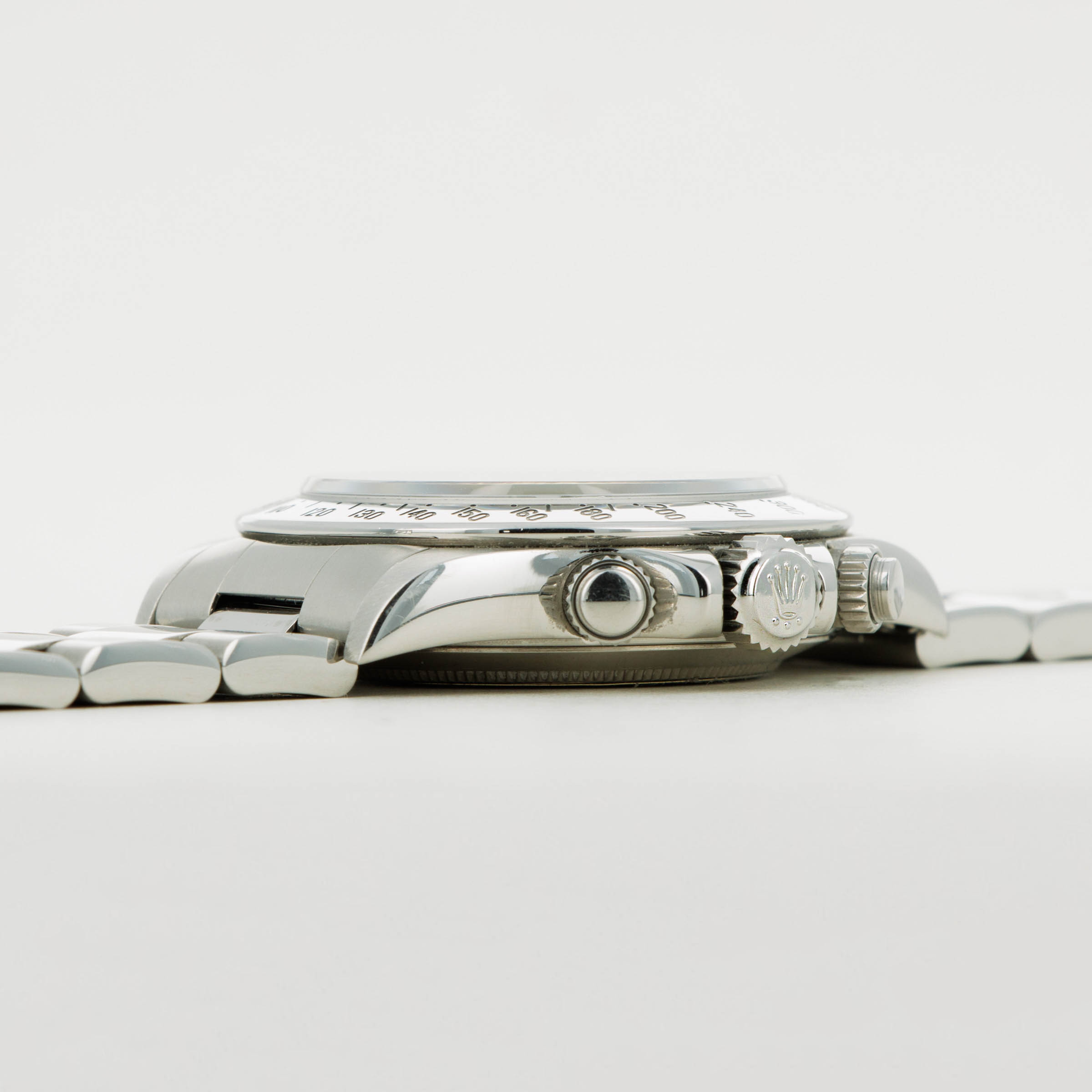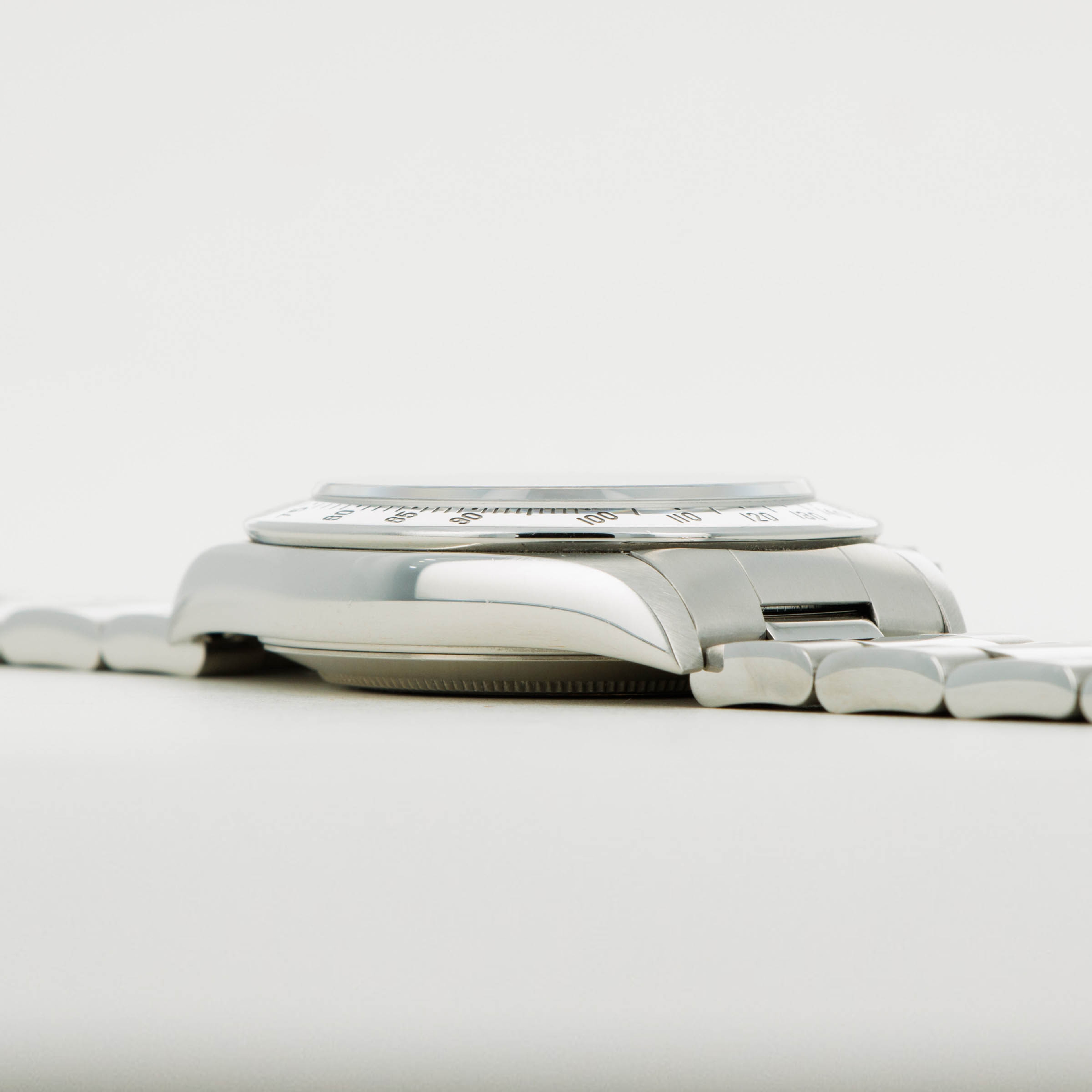 Fitted with a stainless steel case, bracelet, and bezel, the ref. 16520 is the purest form of Daytona, with its aesthetic harking back to the Rolex chronographs of old, unlike its more contemporary ceramic bezel cousin.